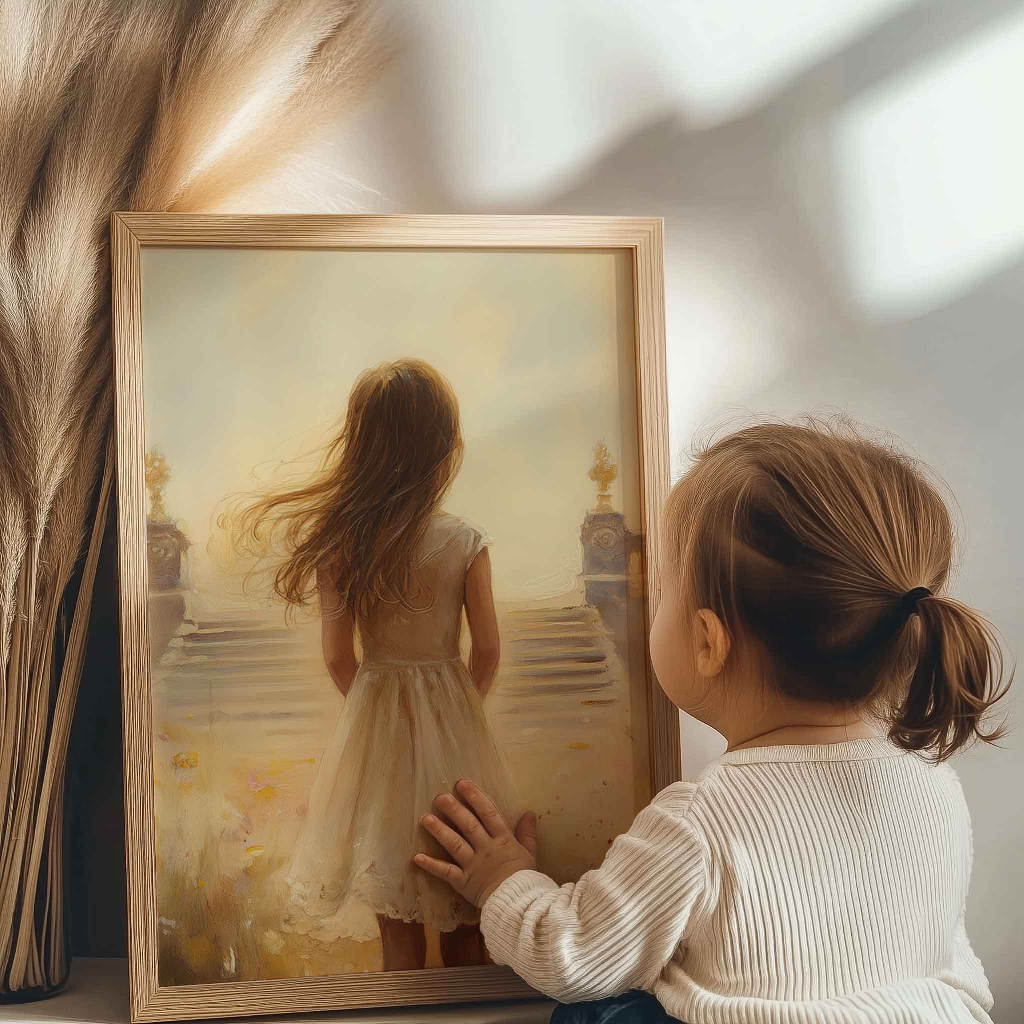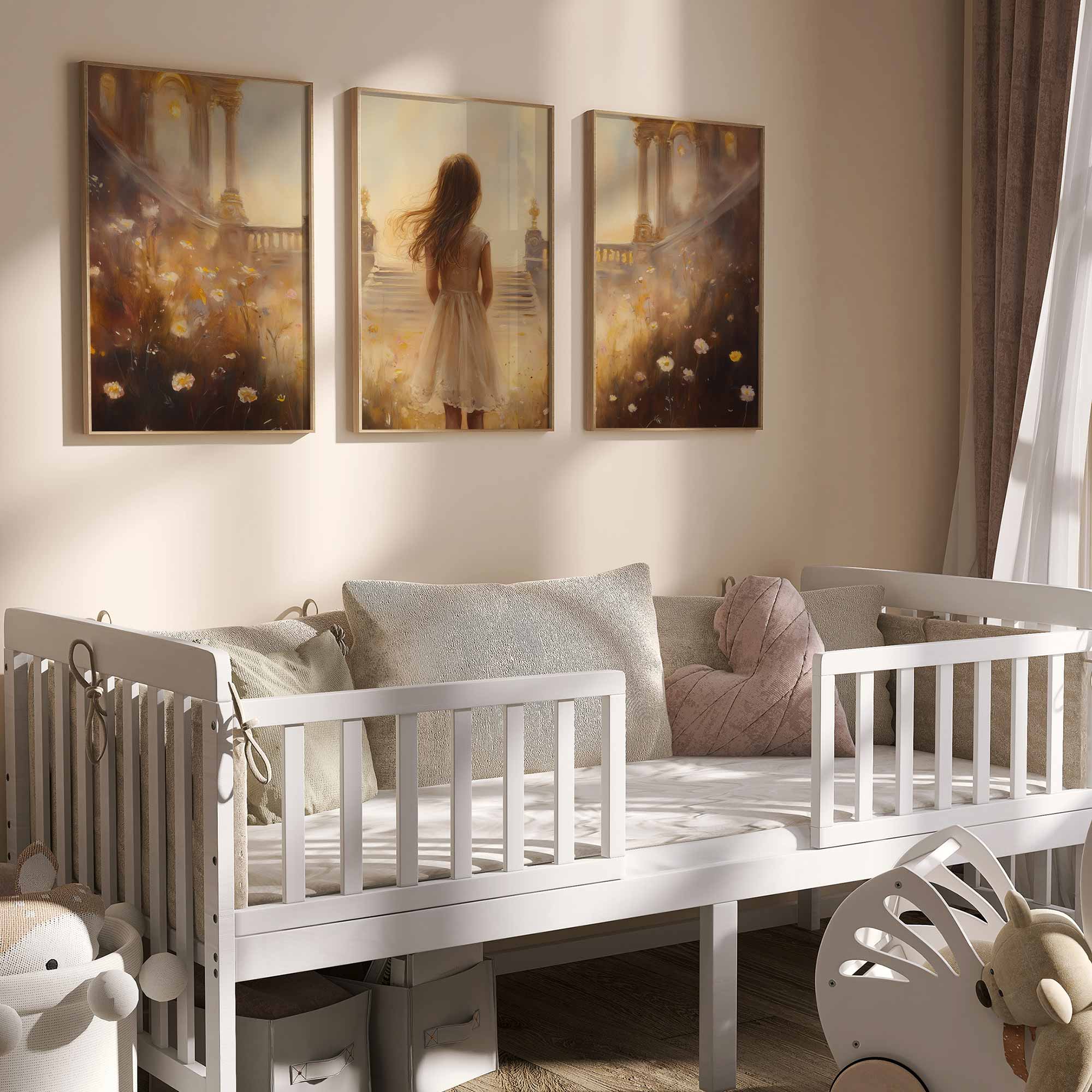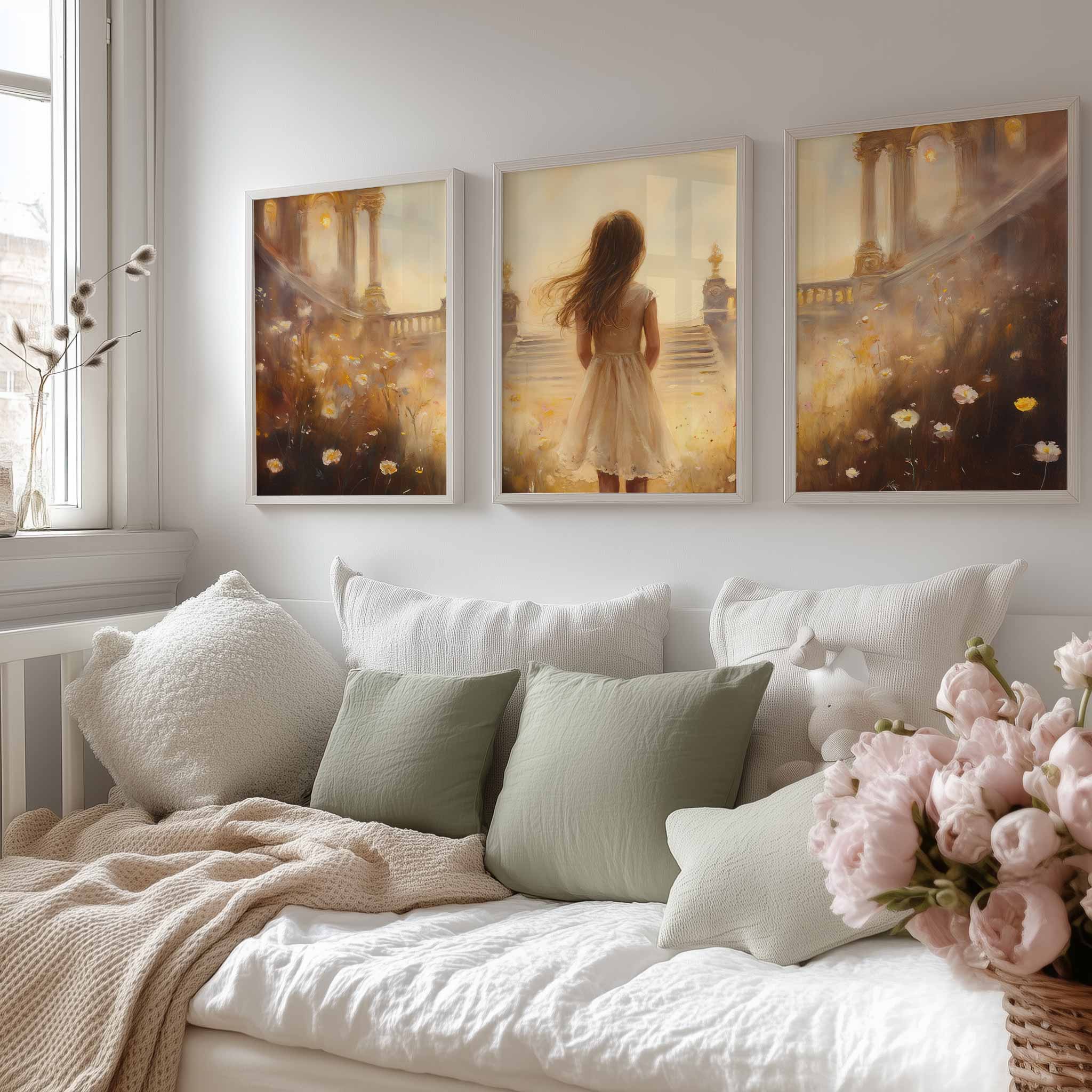 Magisch Meisje in Bloemenveld met Gouden Kasteel