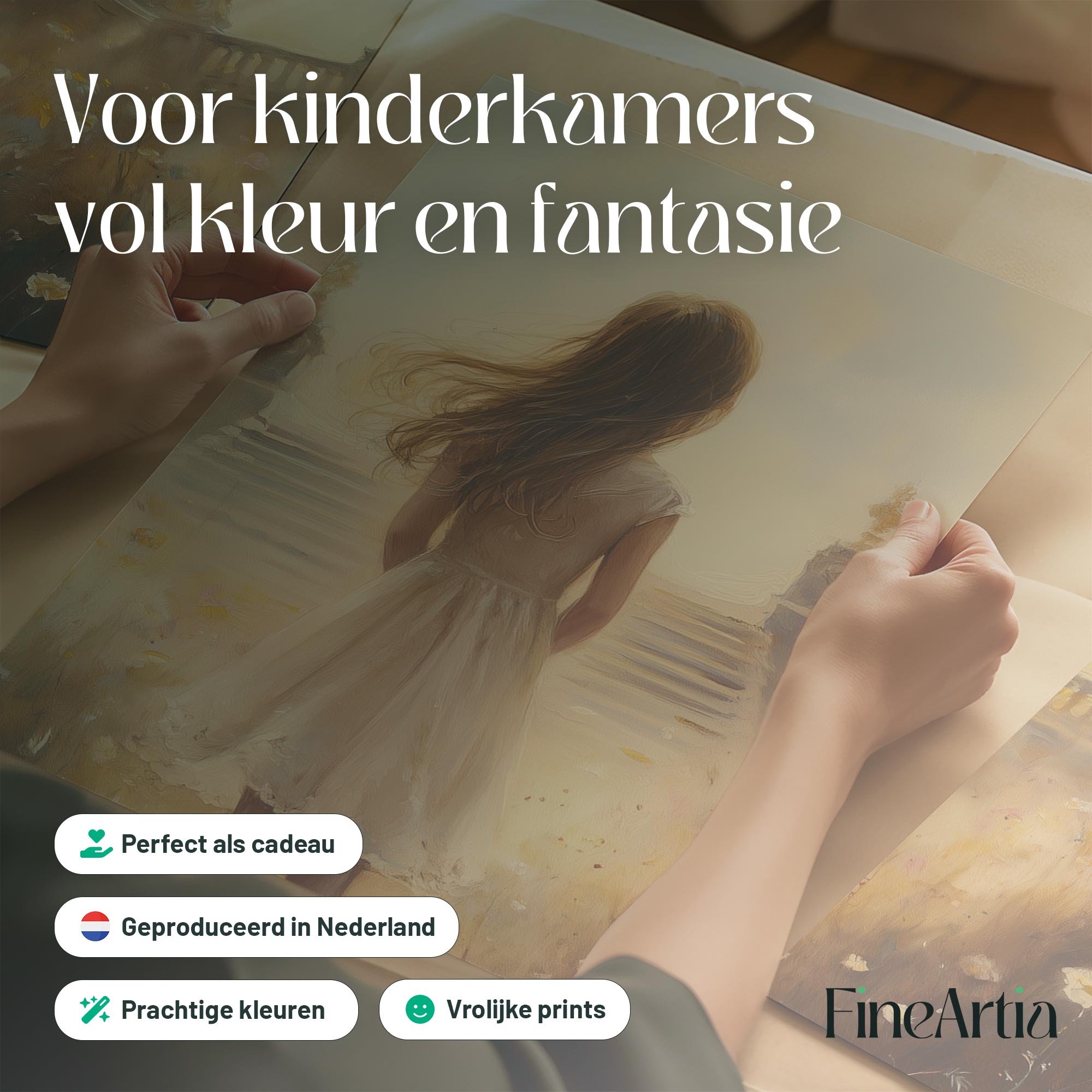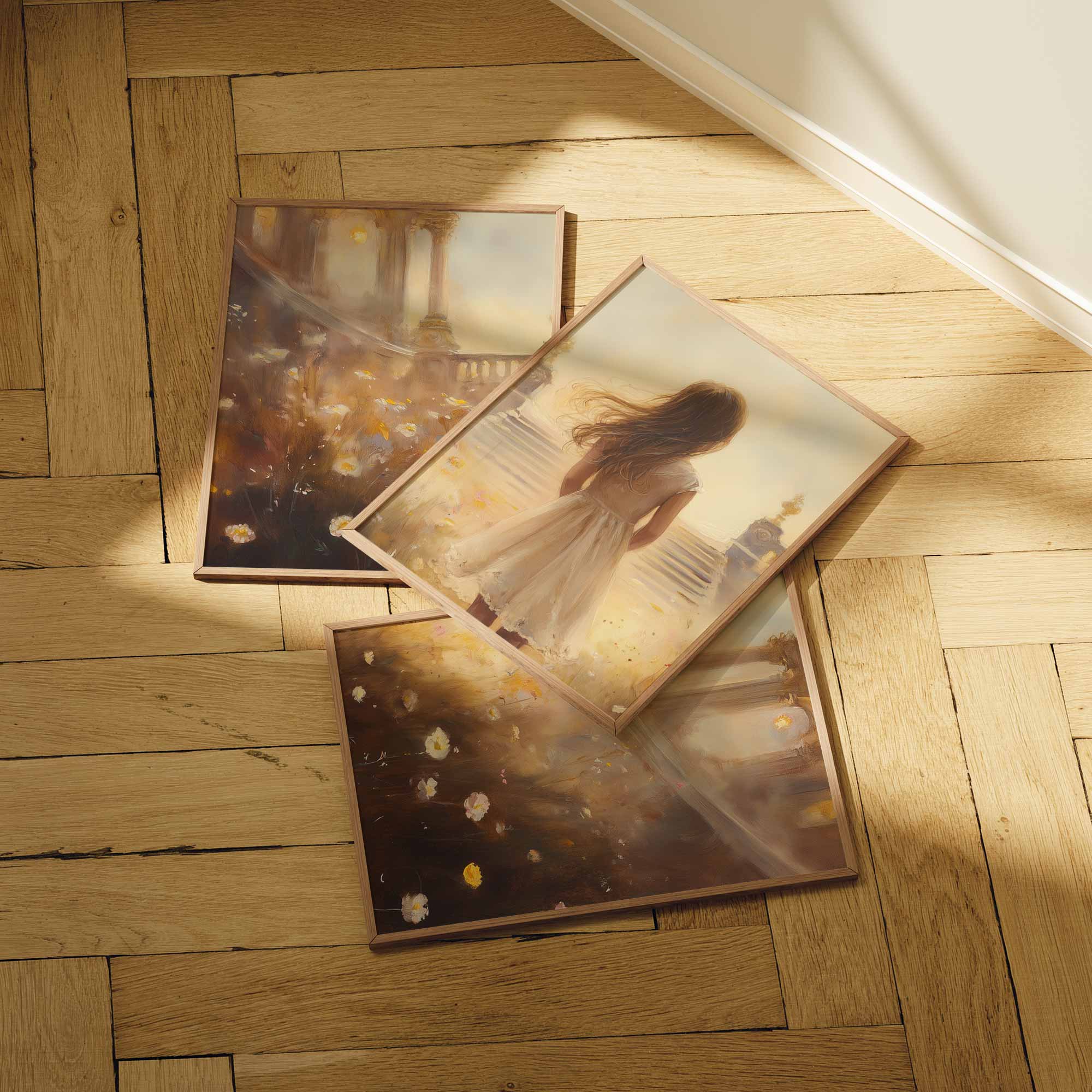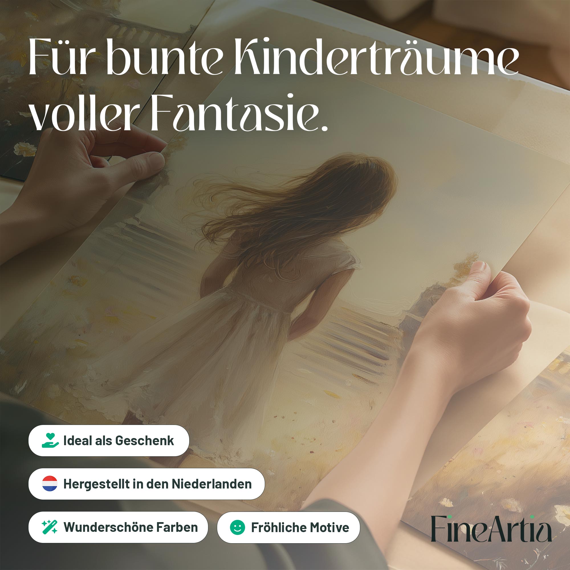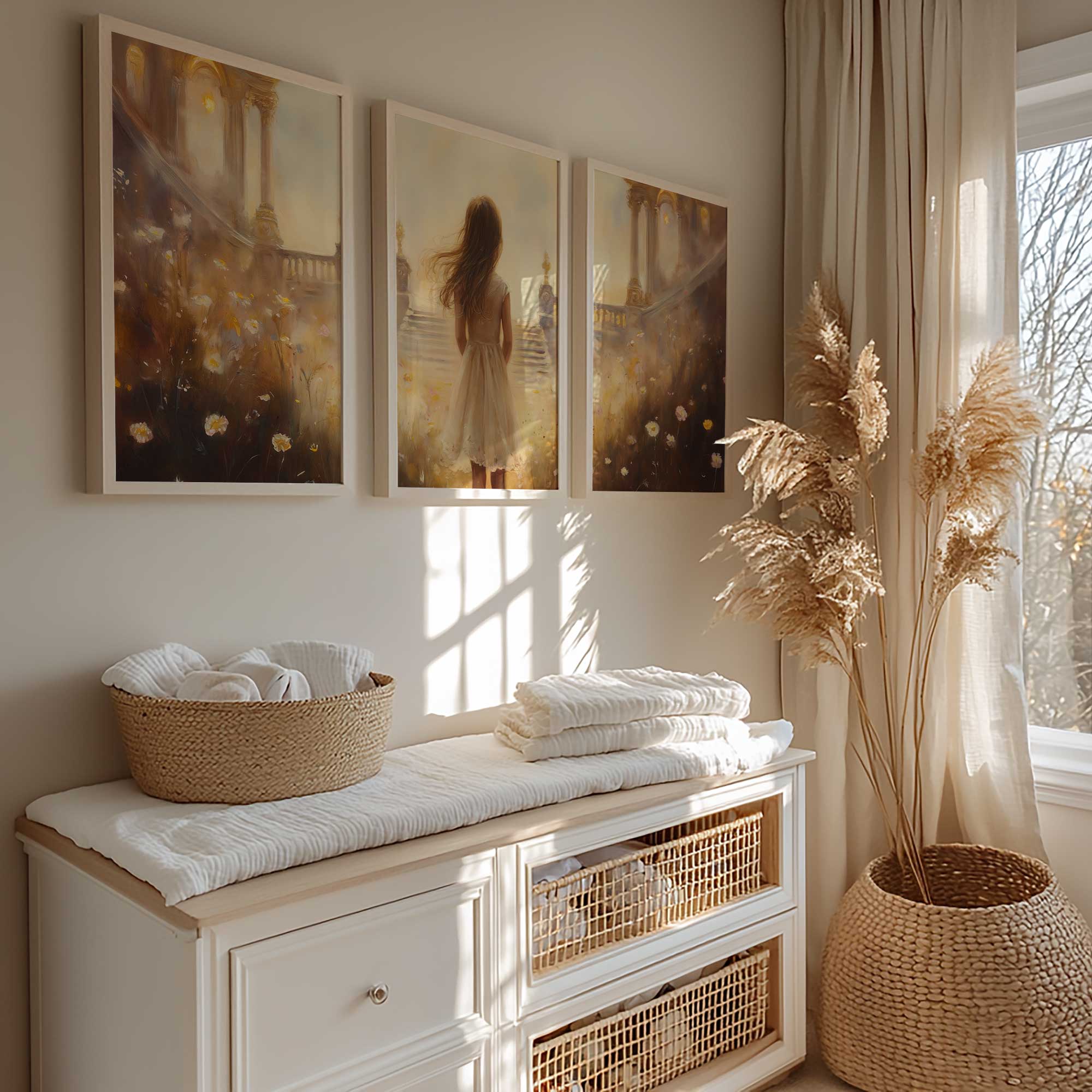 Magisch Meisje in Bloemenveld met Gouden Kasteel