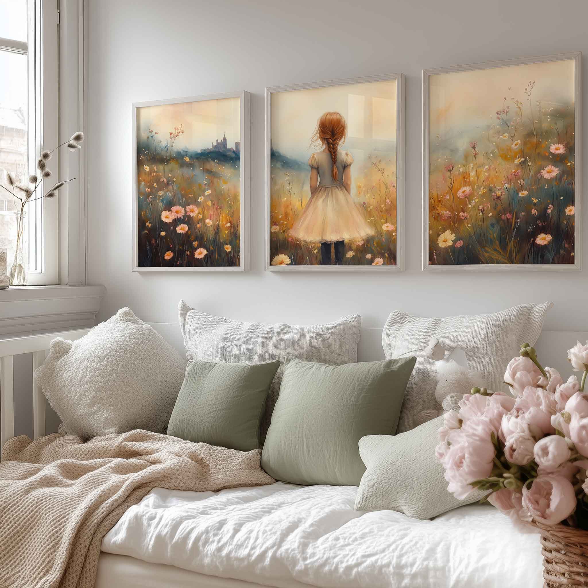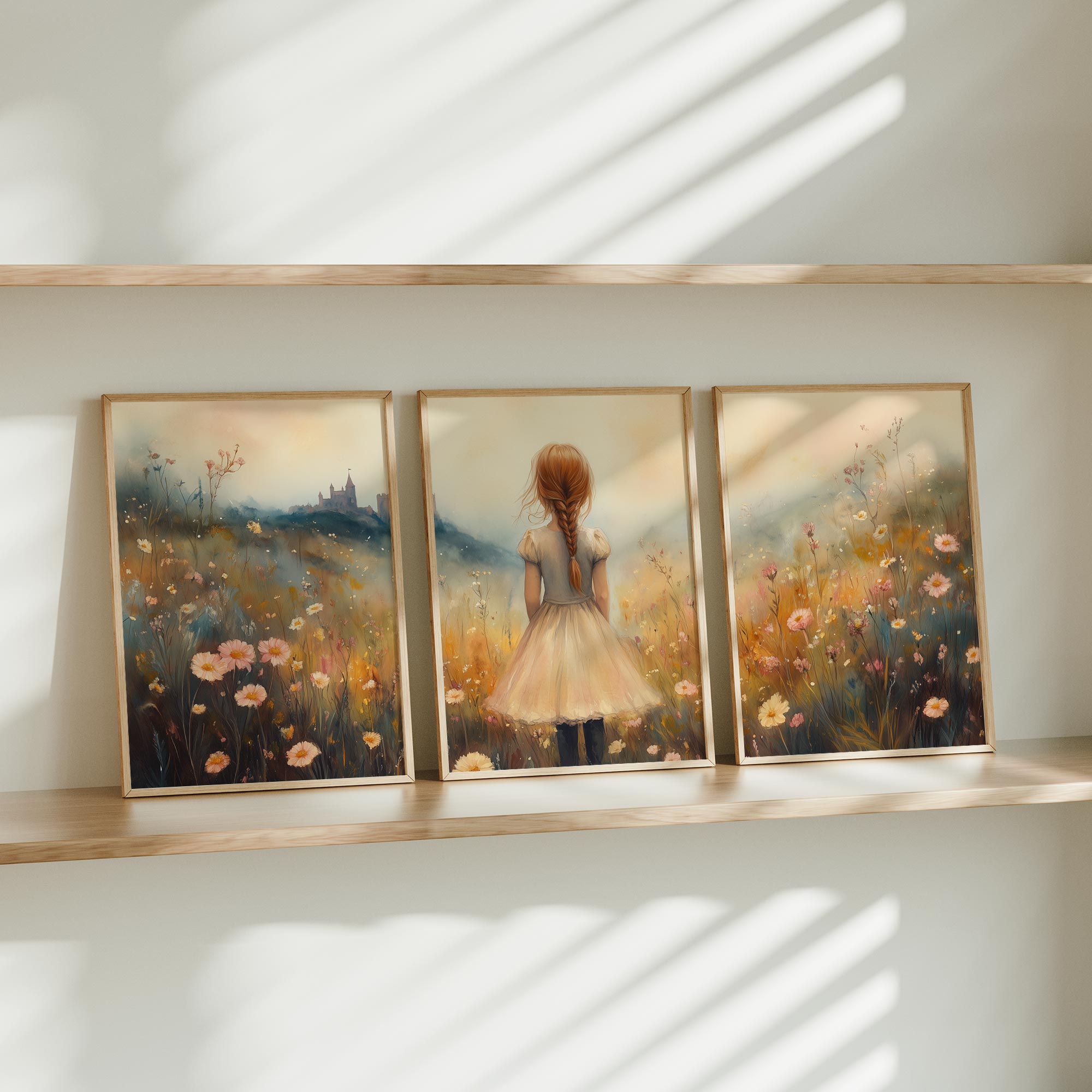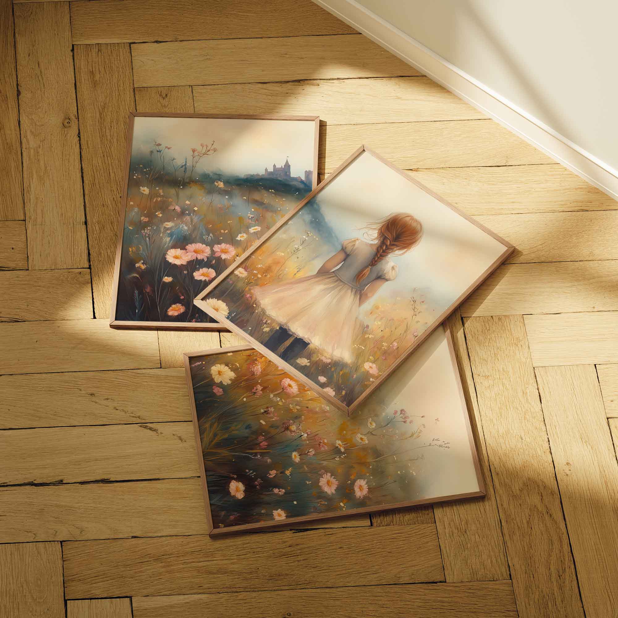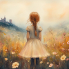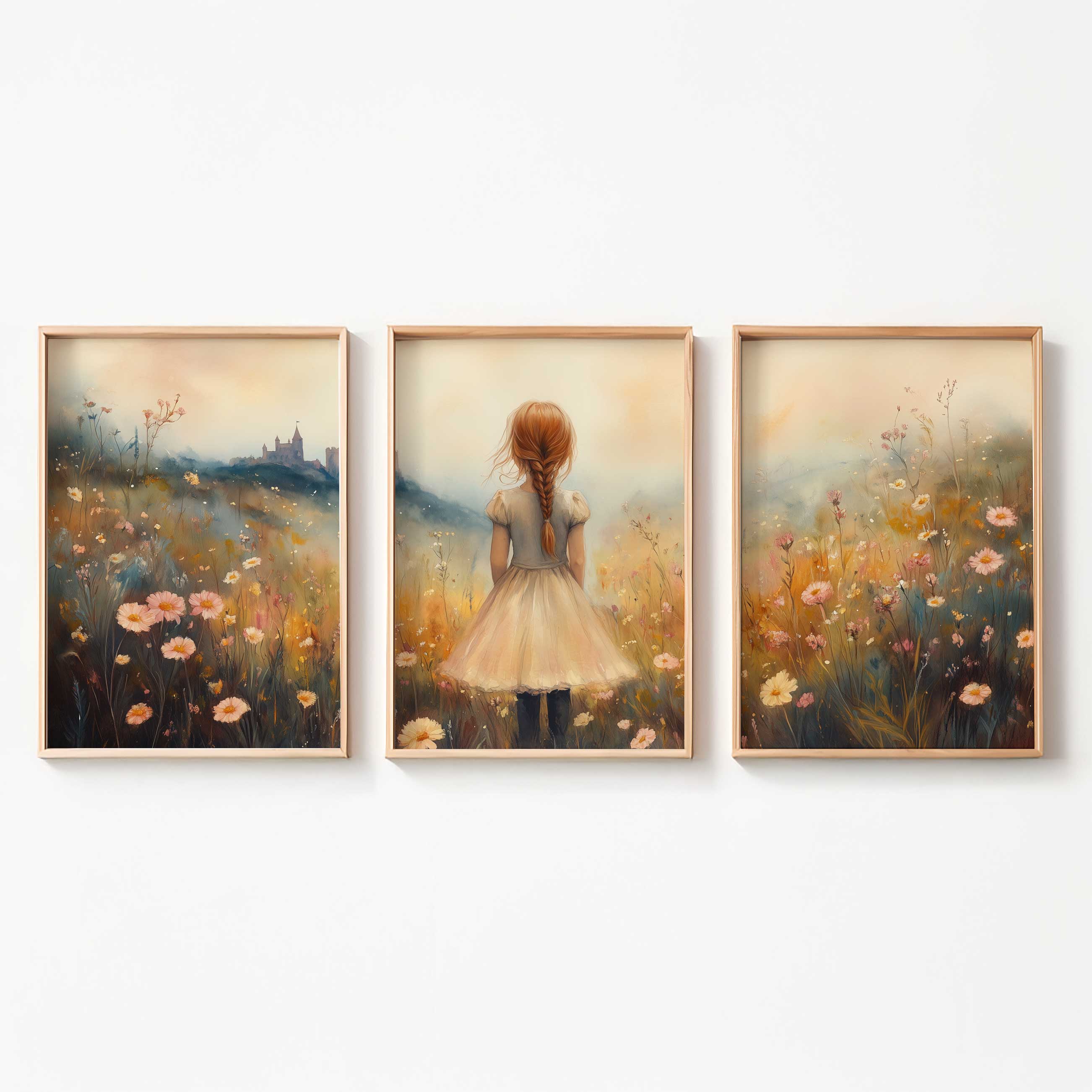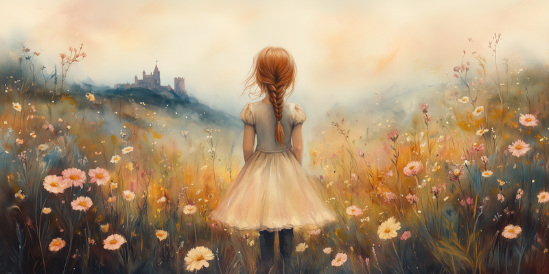 Magisch Meisje in Bloemenveld met Kasteel