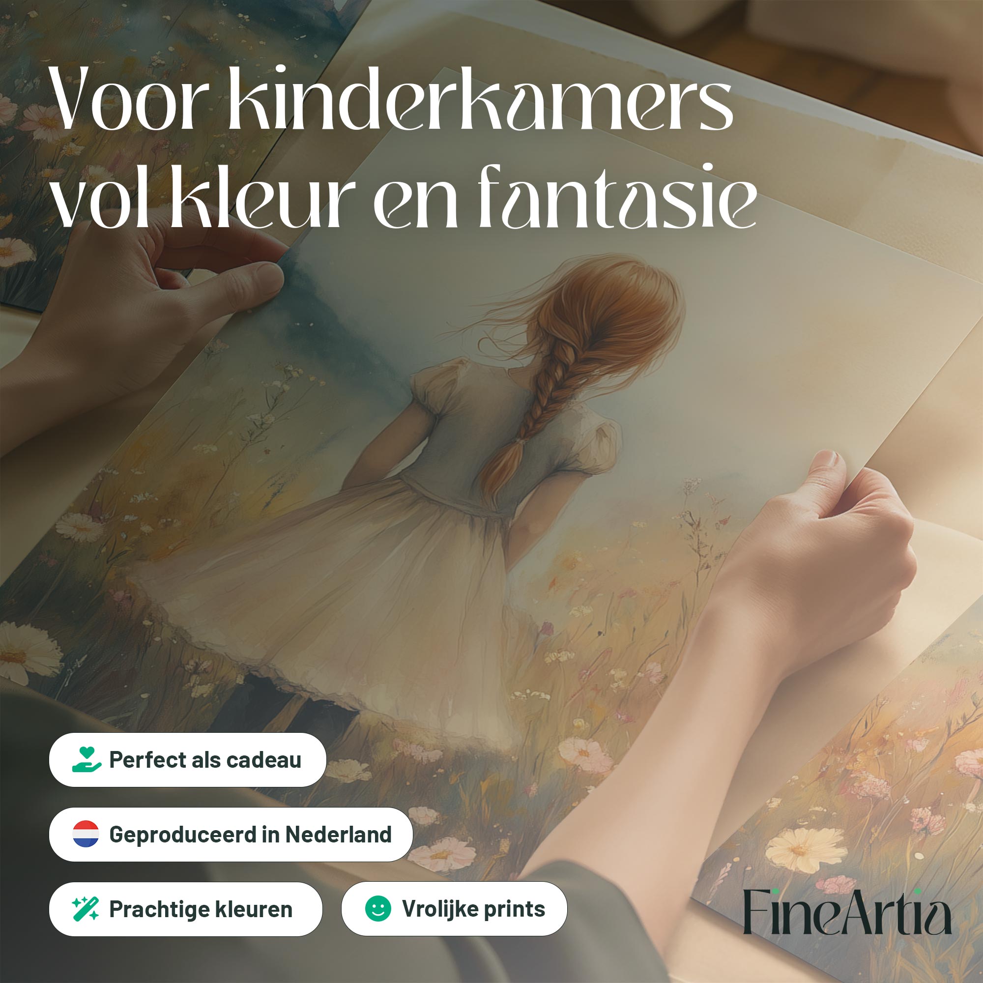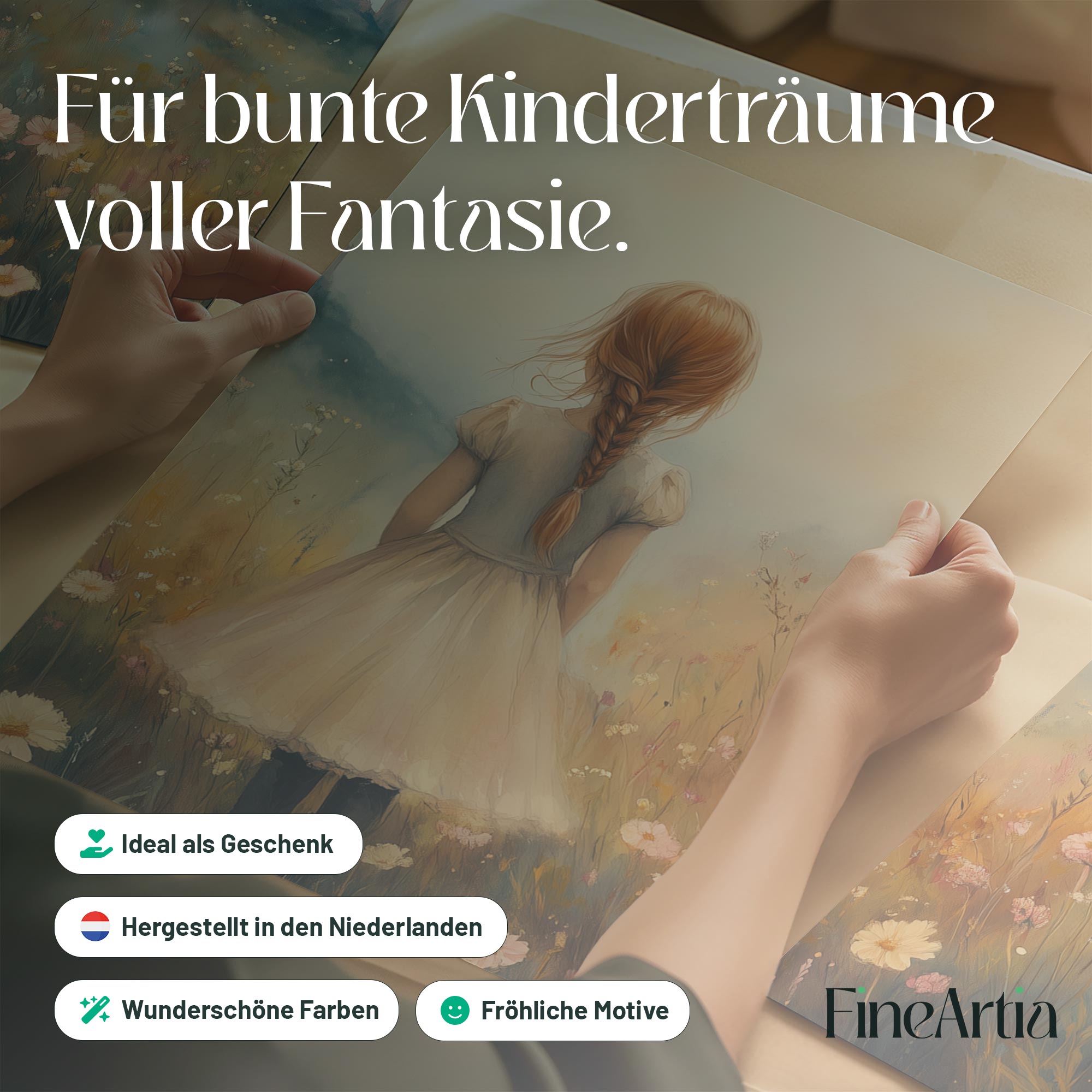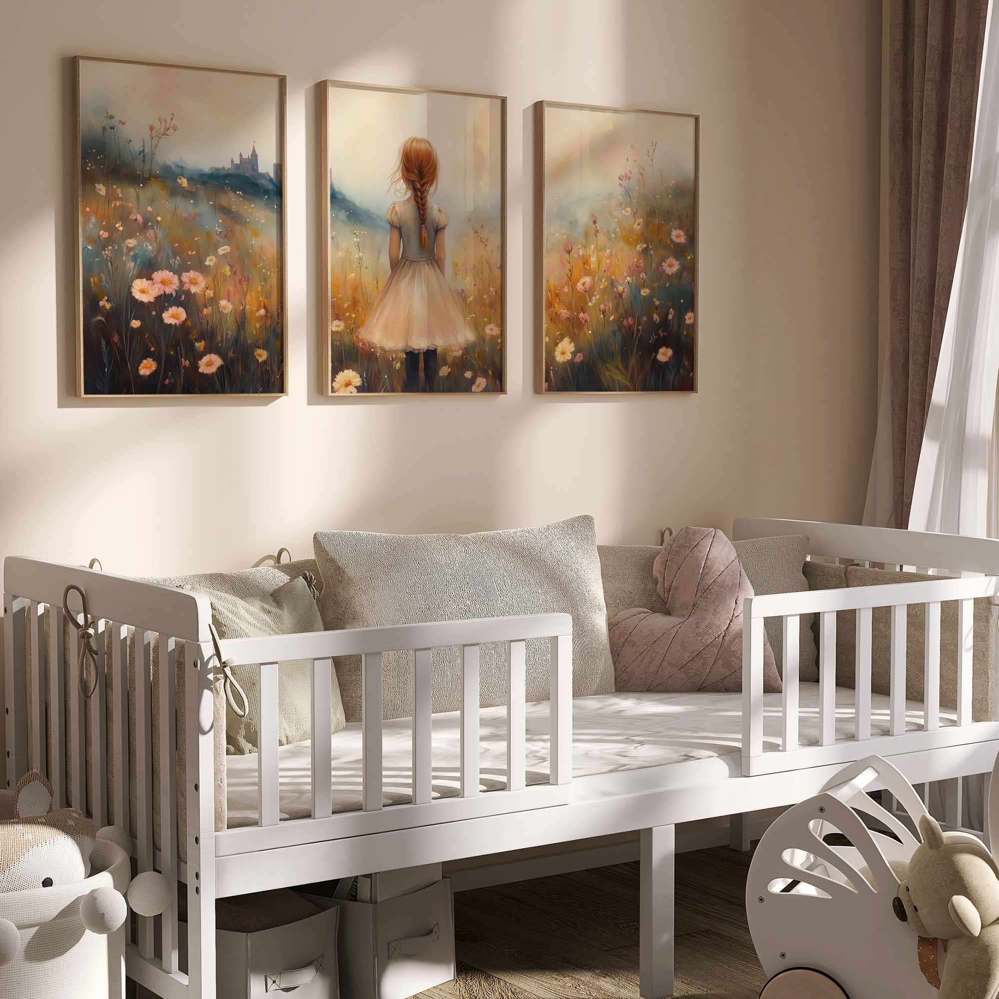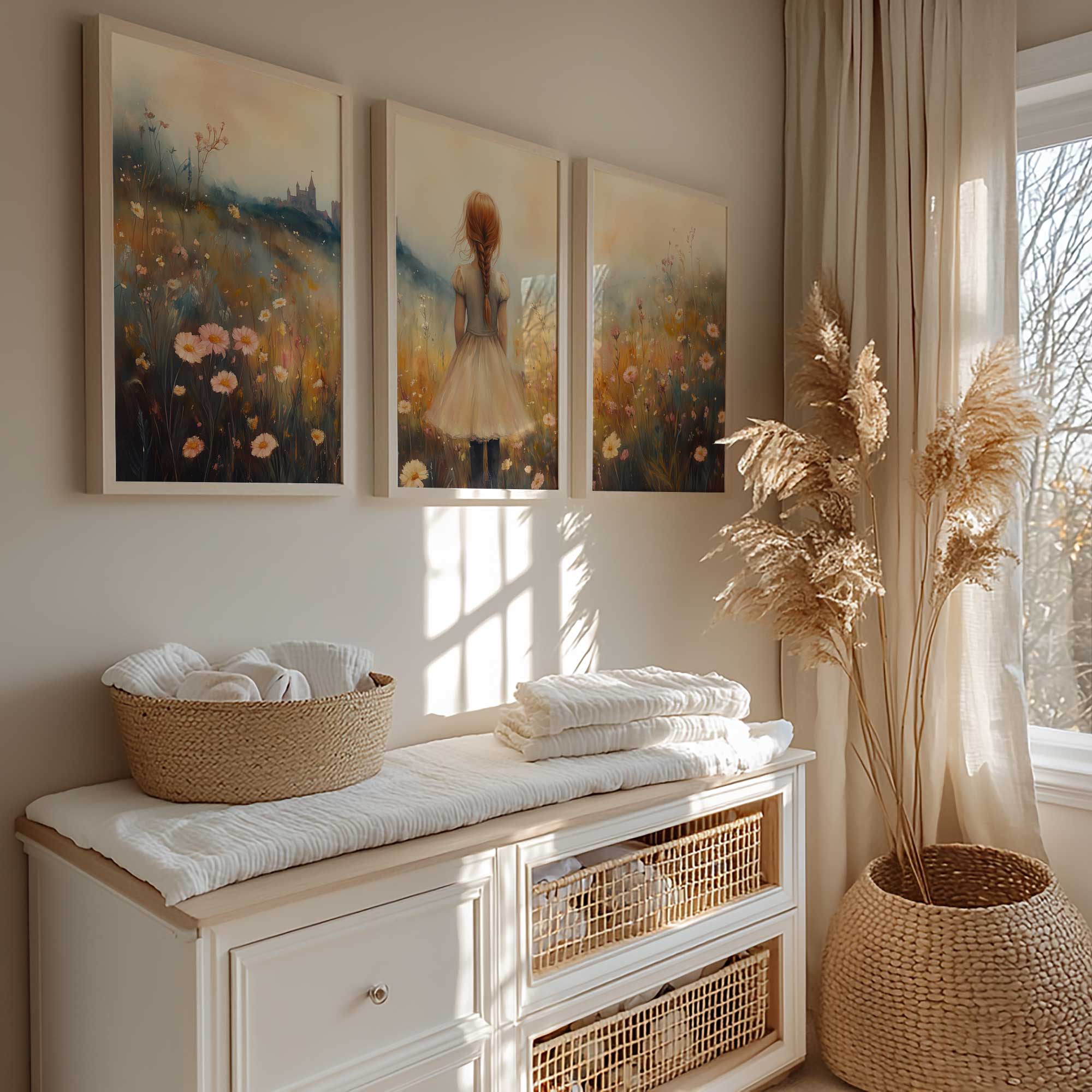 Magisch Meisje in Bloemenveld met Kasteel