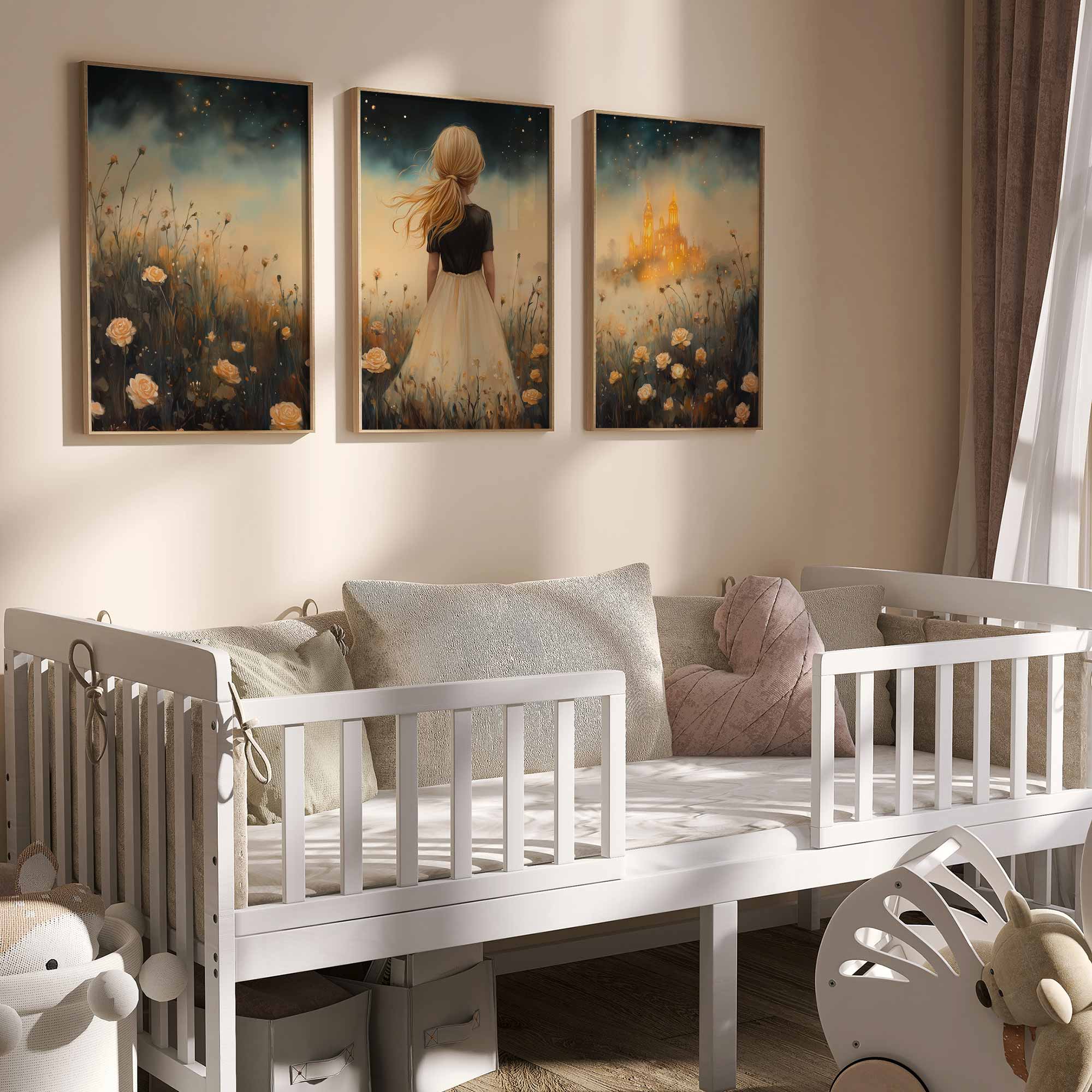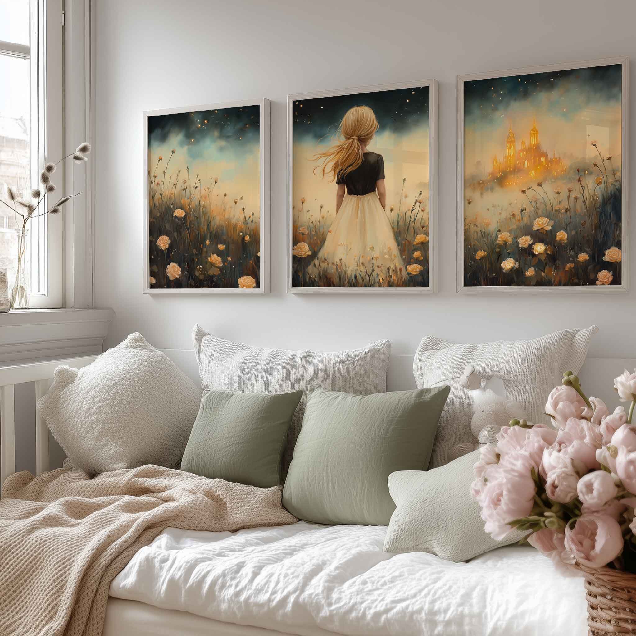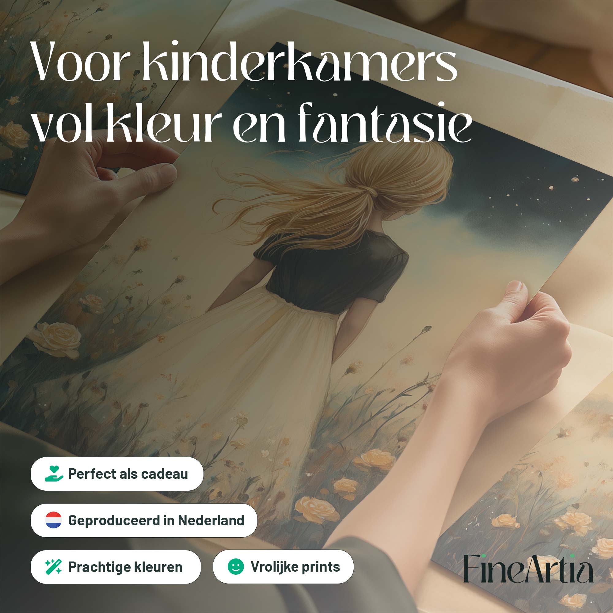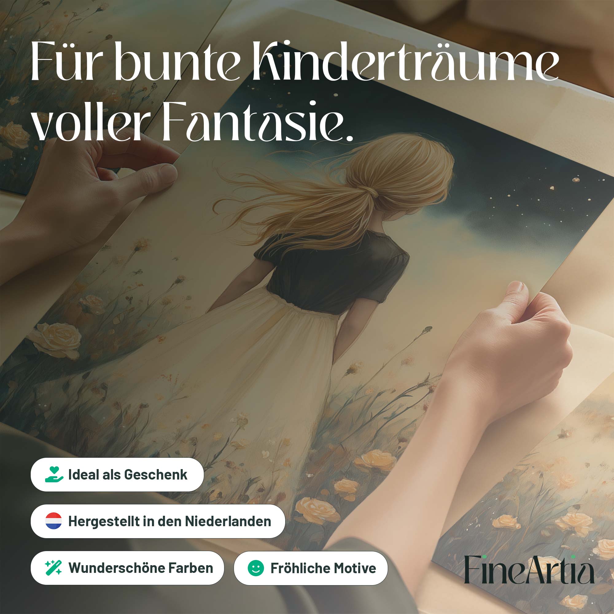 Terug naar collectie Posters Magisch Meisje in Bloemenveld met Kasteel