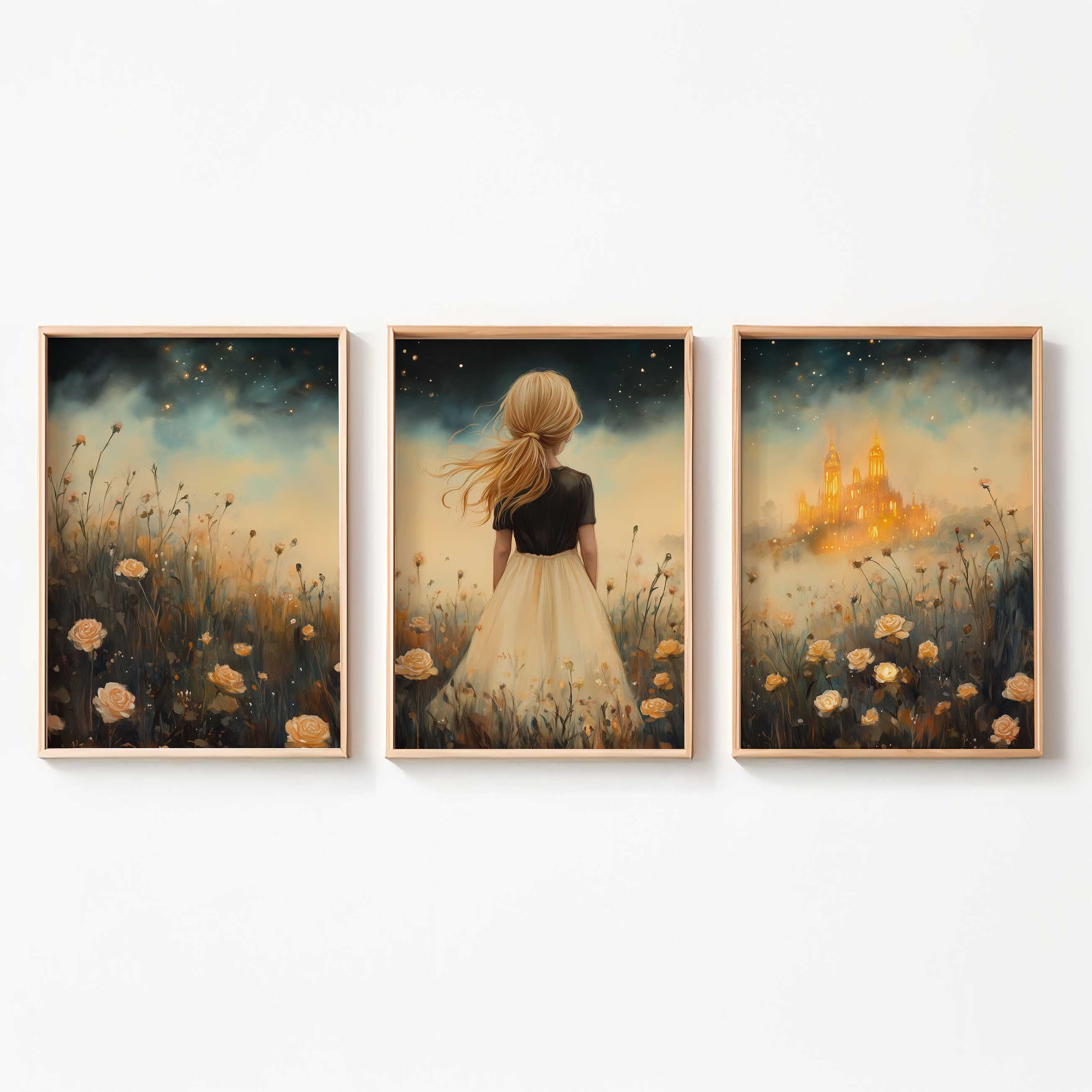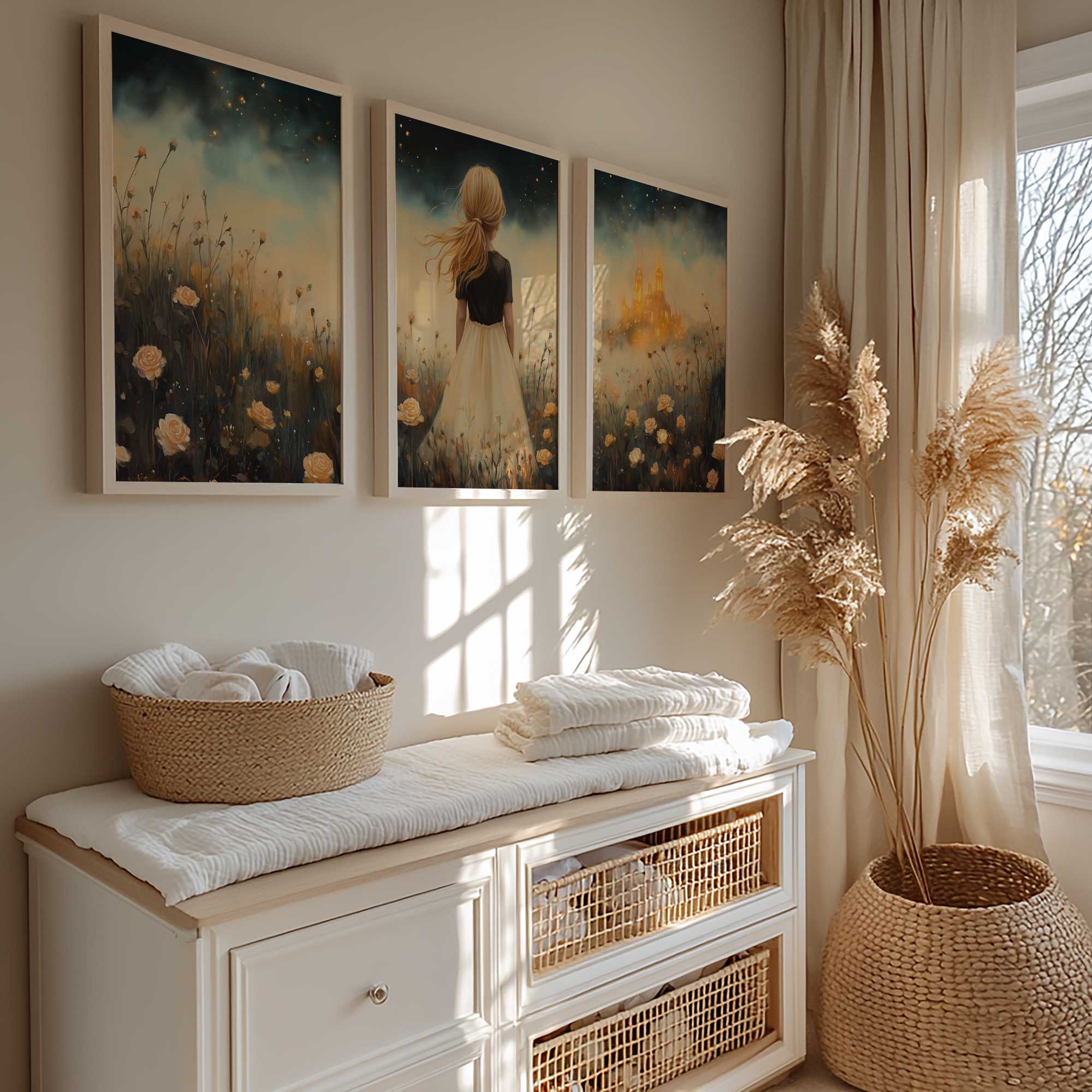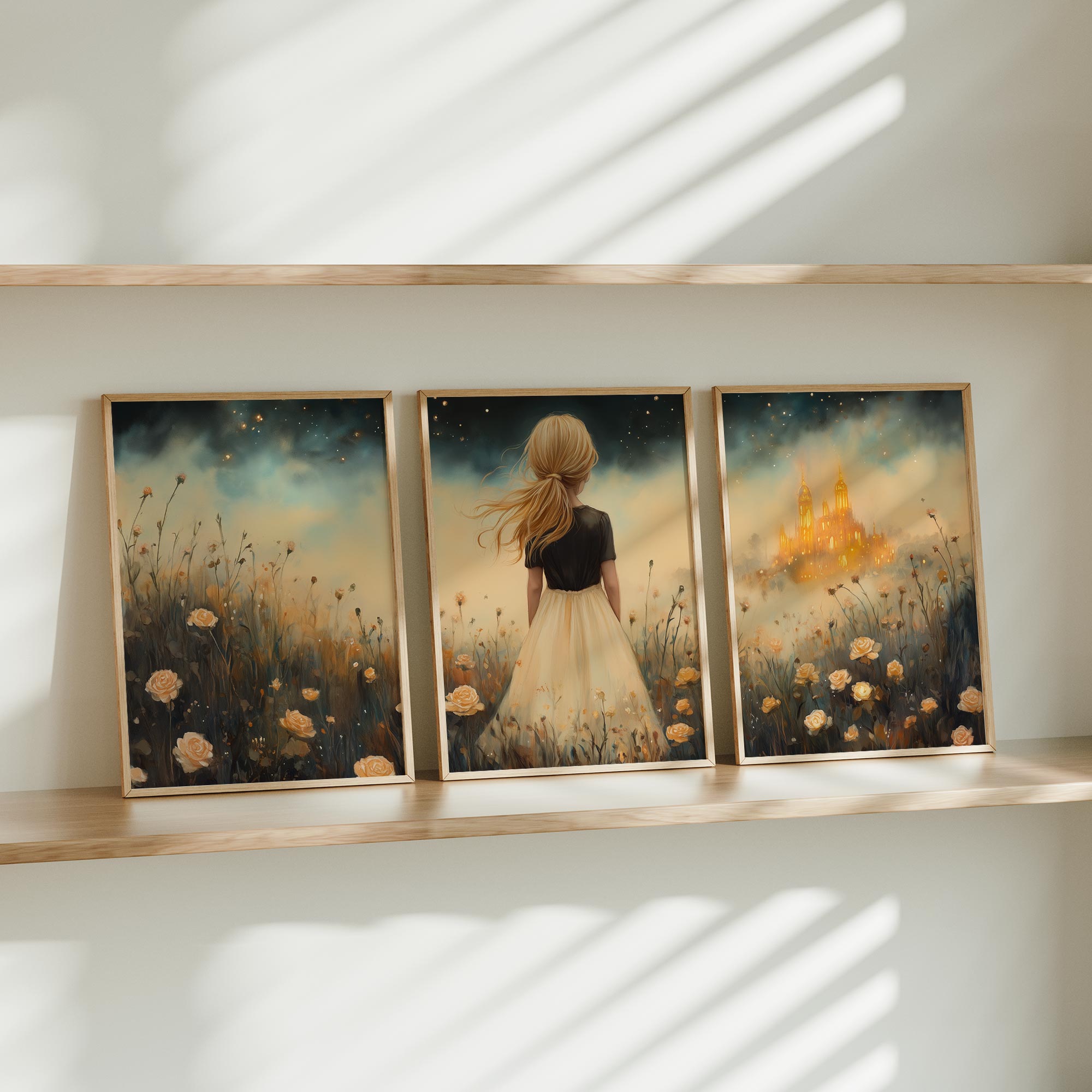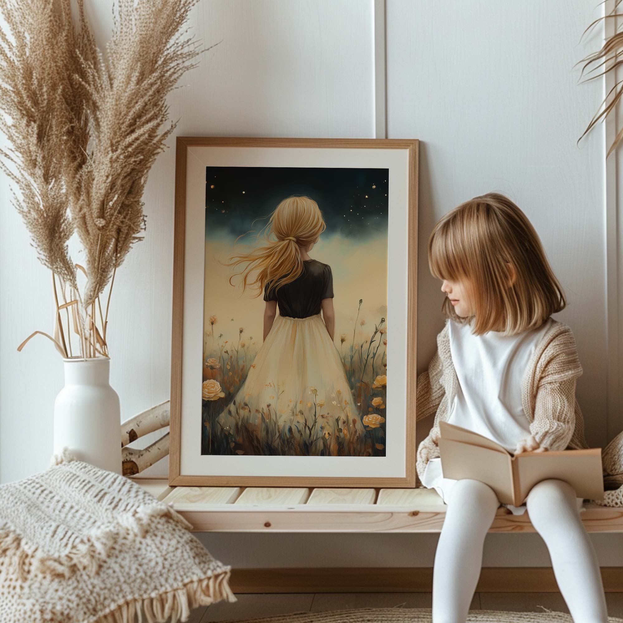 Terug naar collectie Posters Magisch Meisje in Bloemenveld met Kasteel