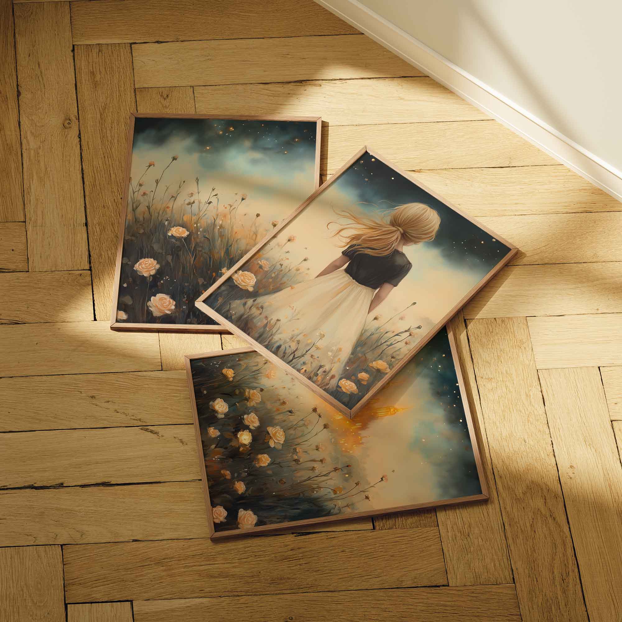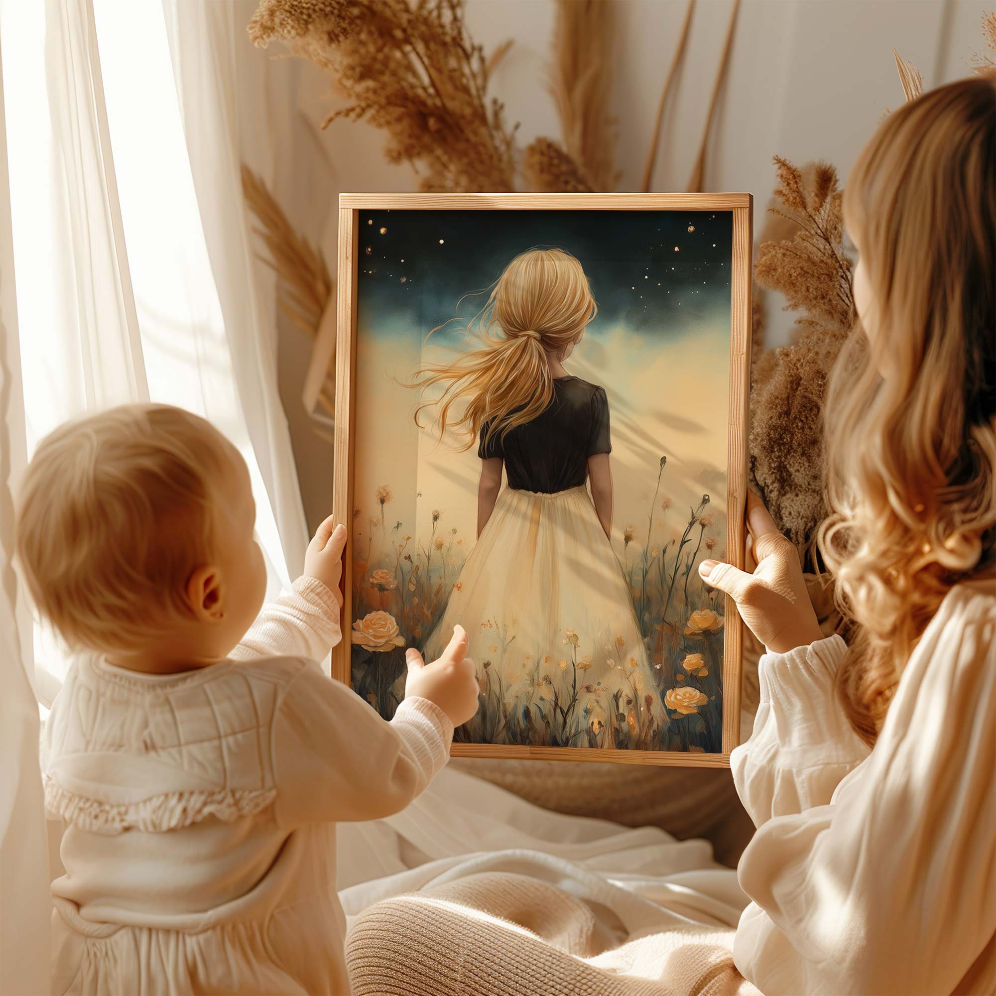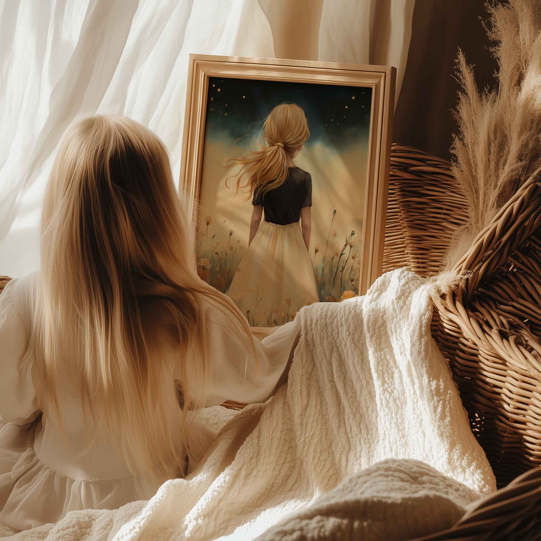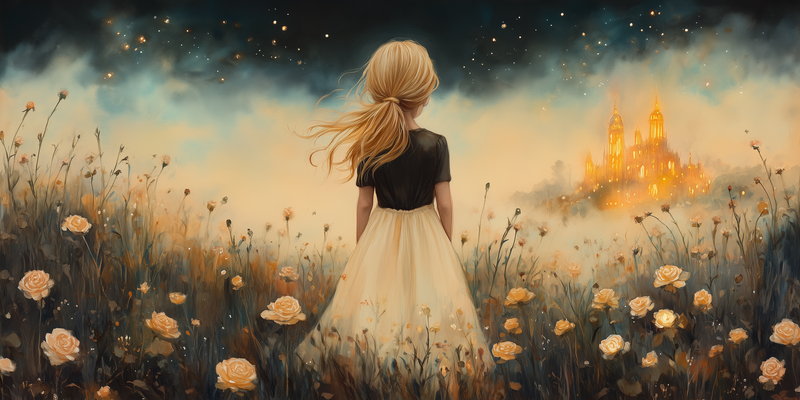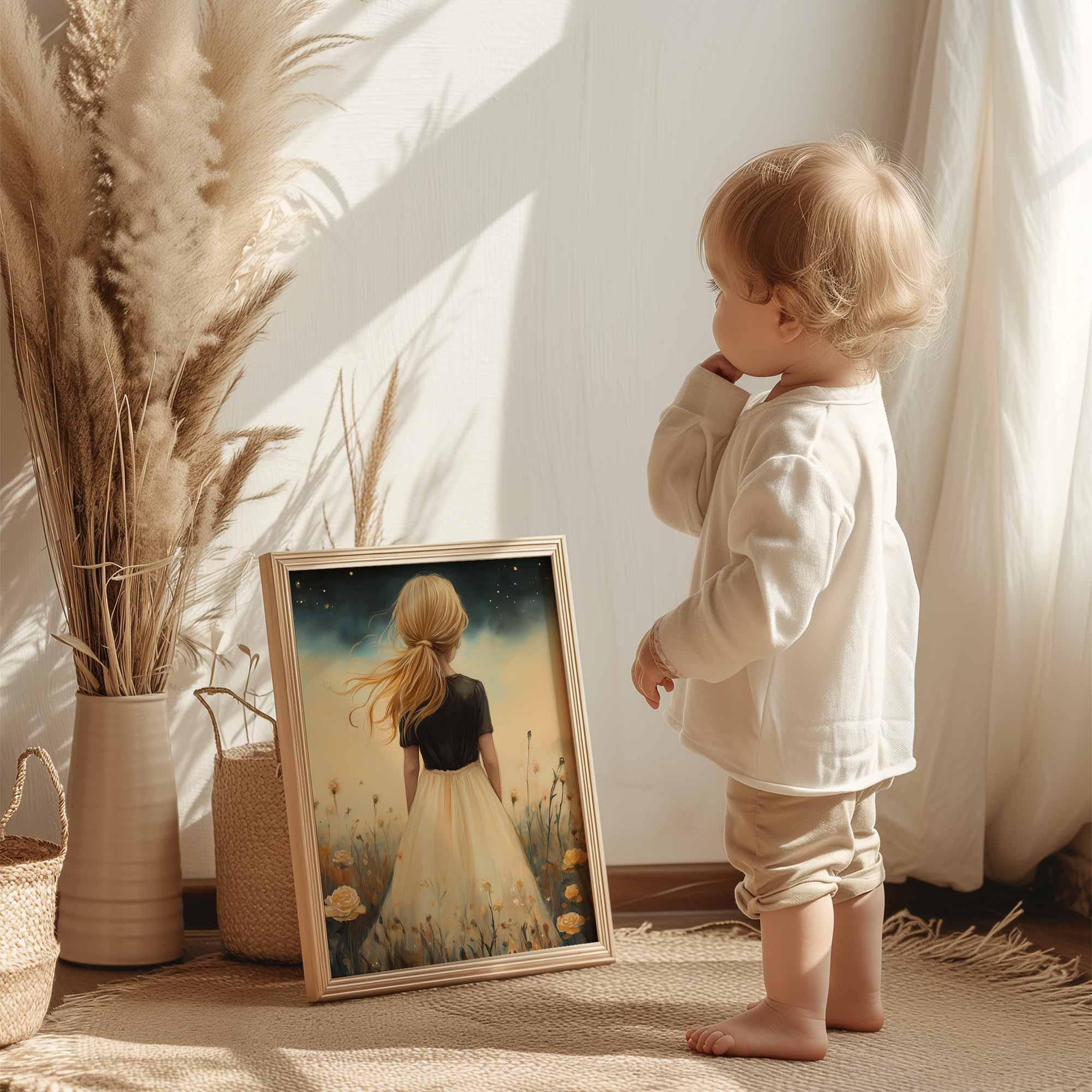 Terug naar collectie Posters Magisch Meisje in Bloemenveld met Kasteel