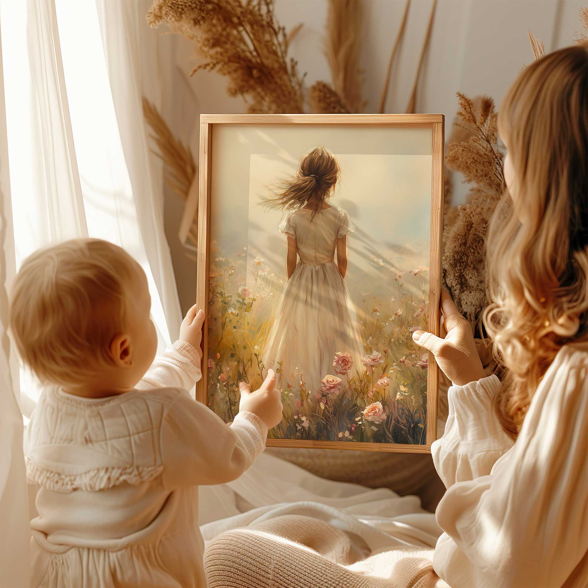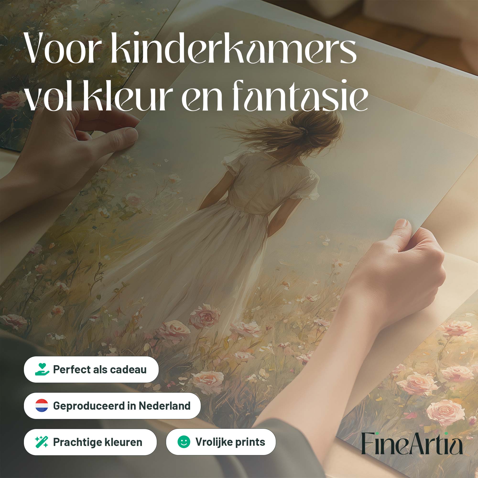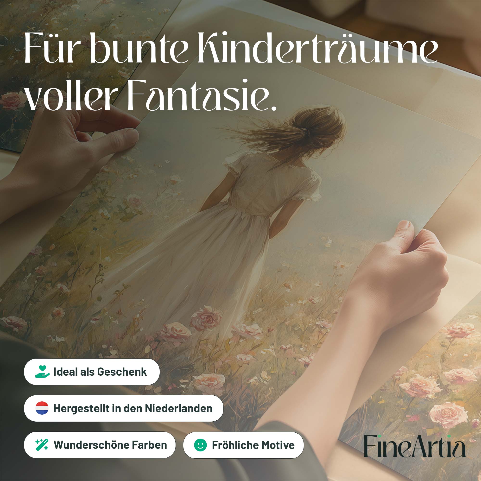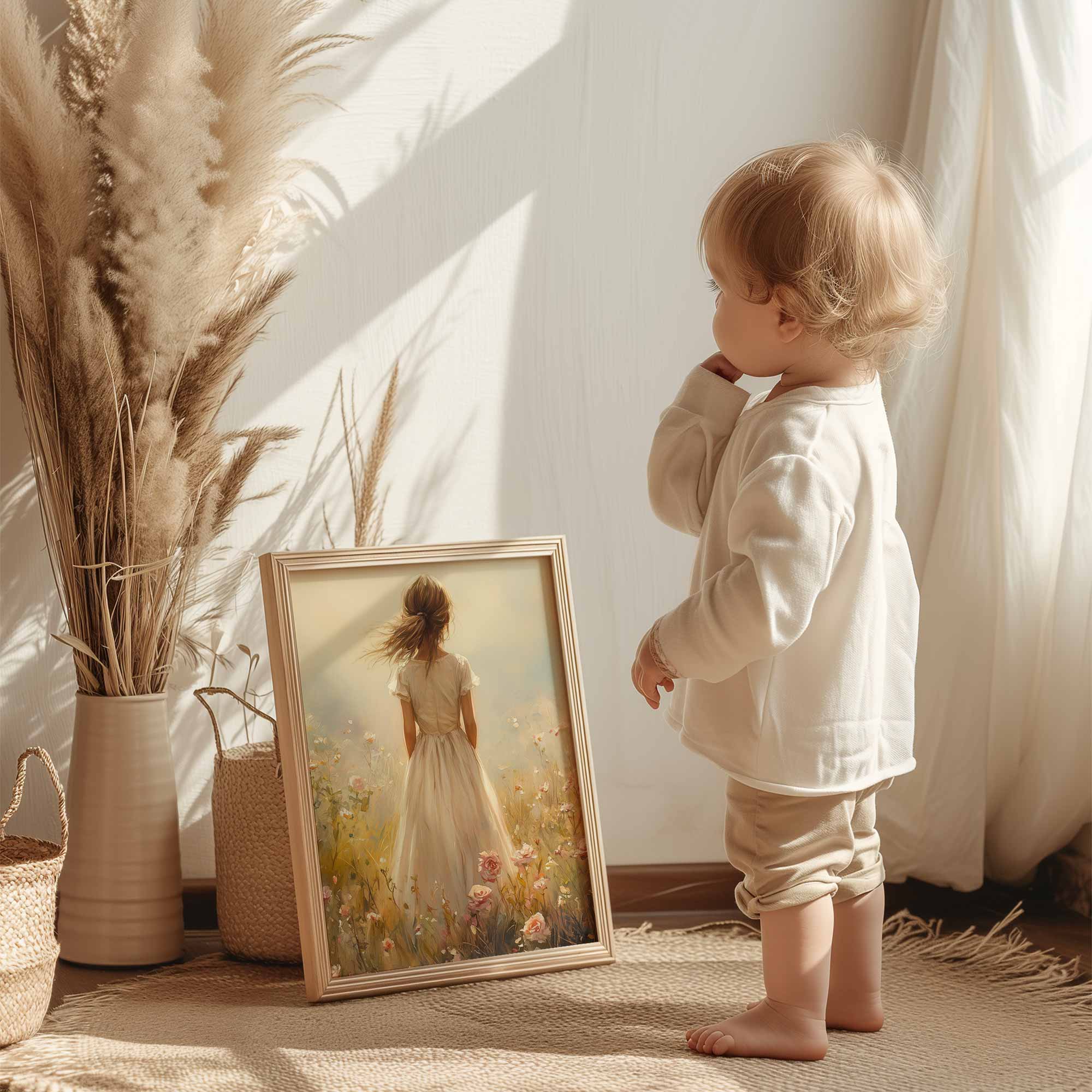 Magisch Meisje in Bloemenveld met Kasteelachtergrond