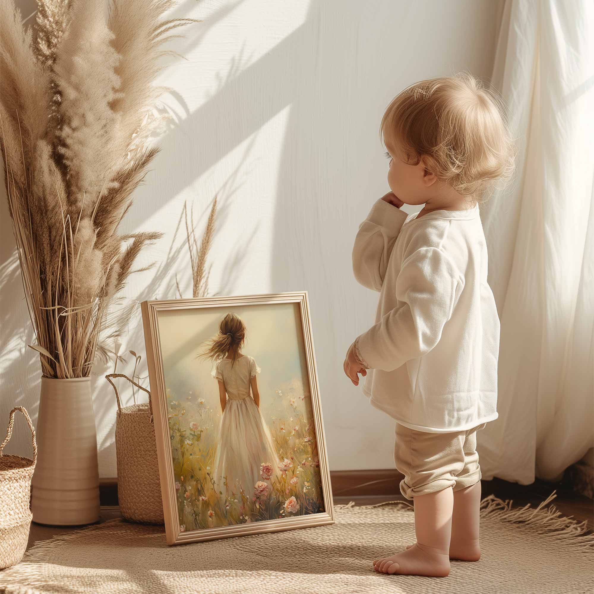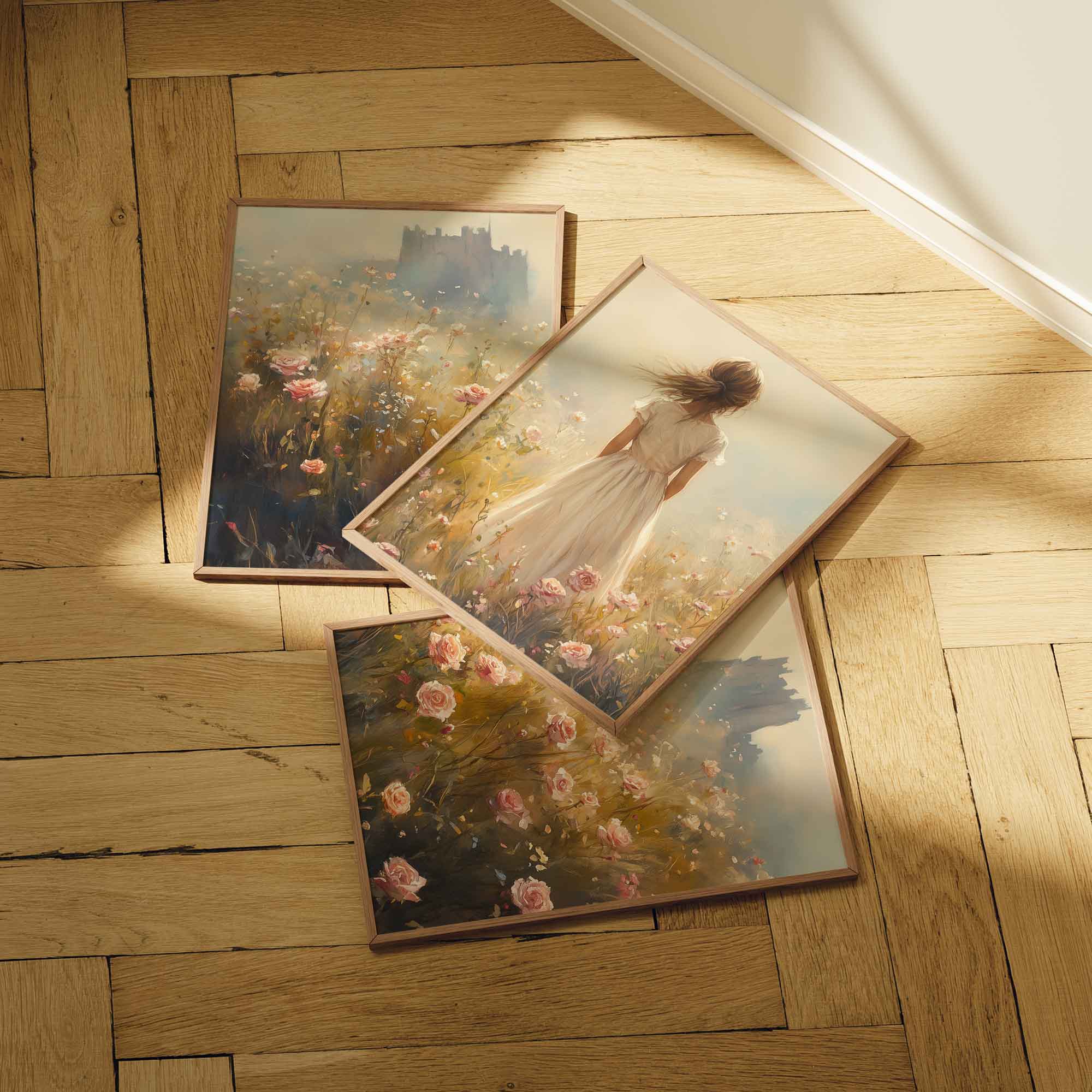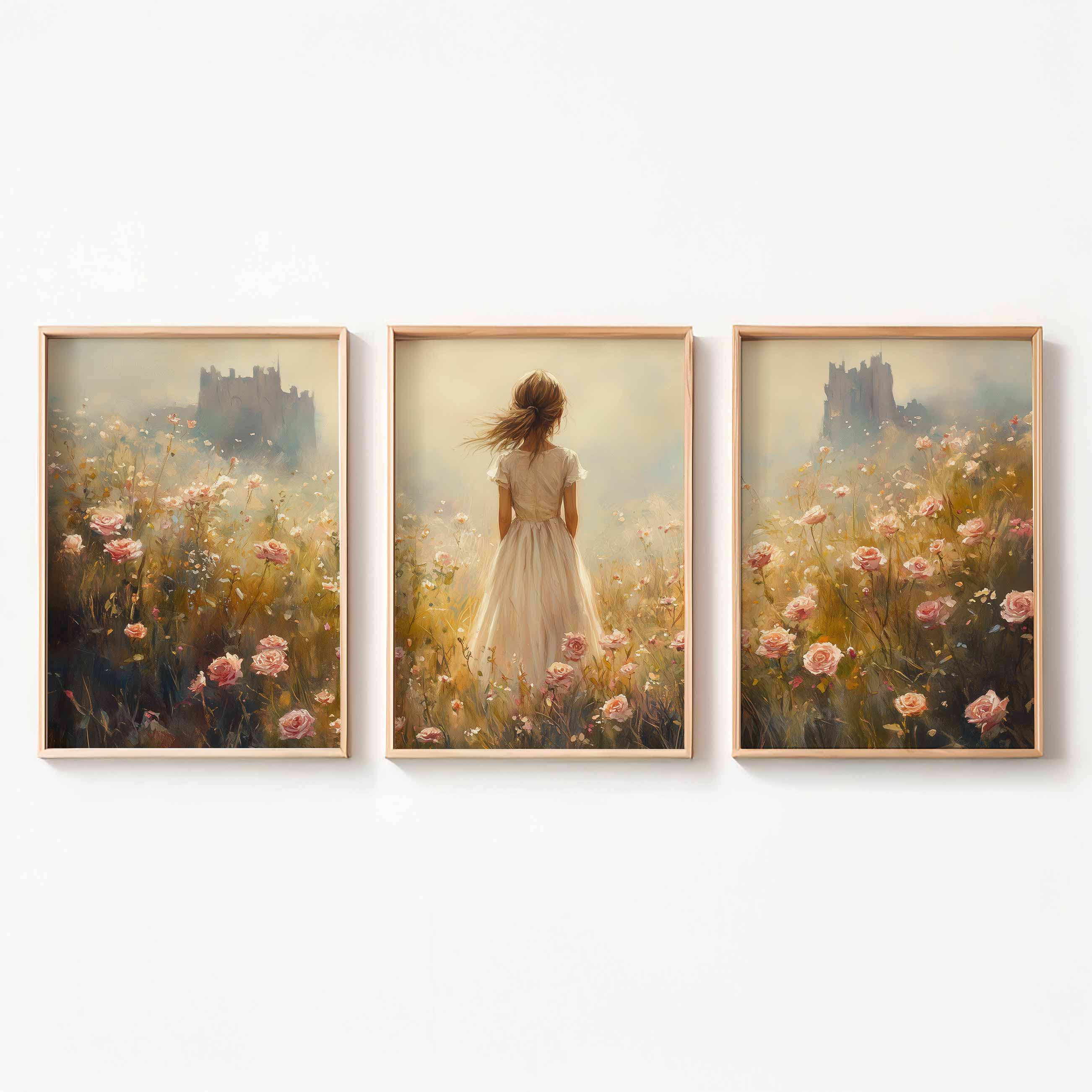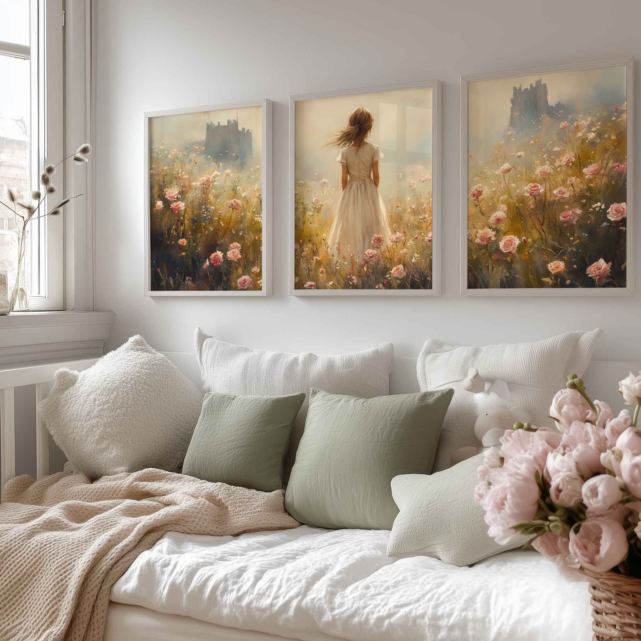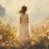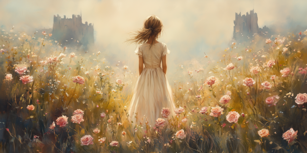 Magisch Meisje in Bloemenveld met Kasteelzicht