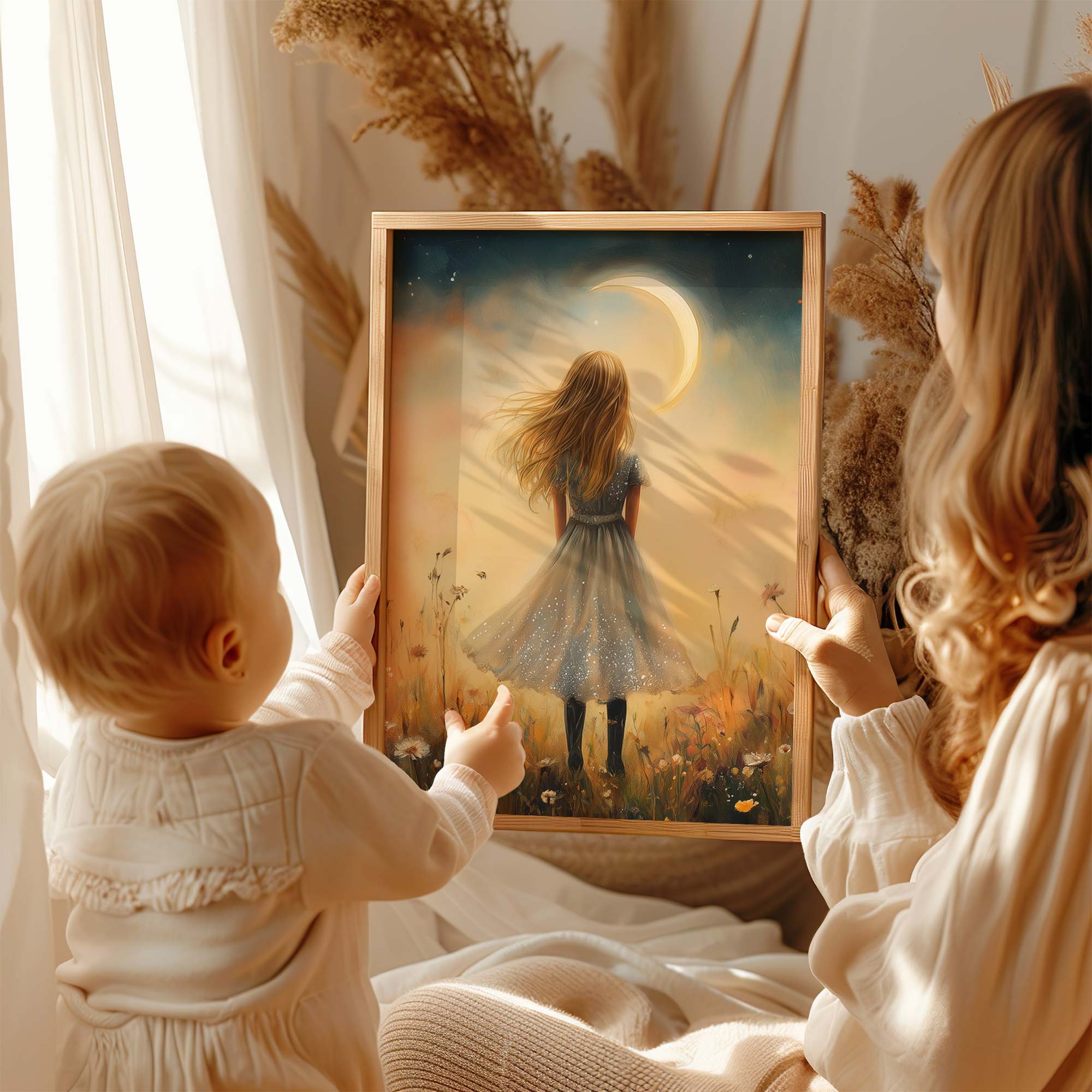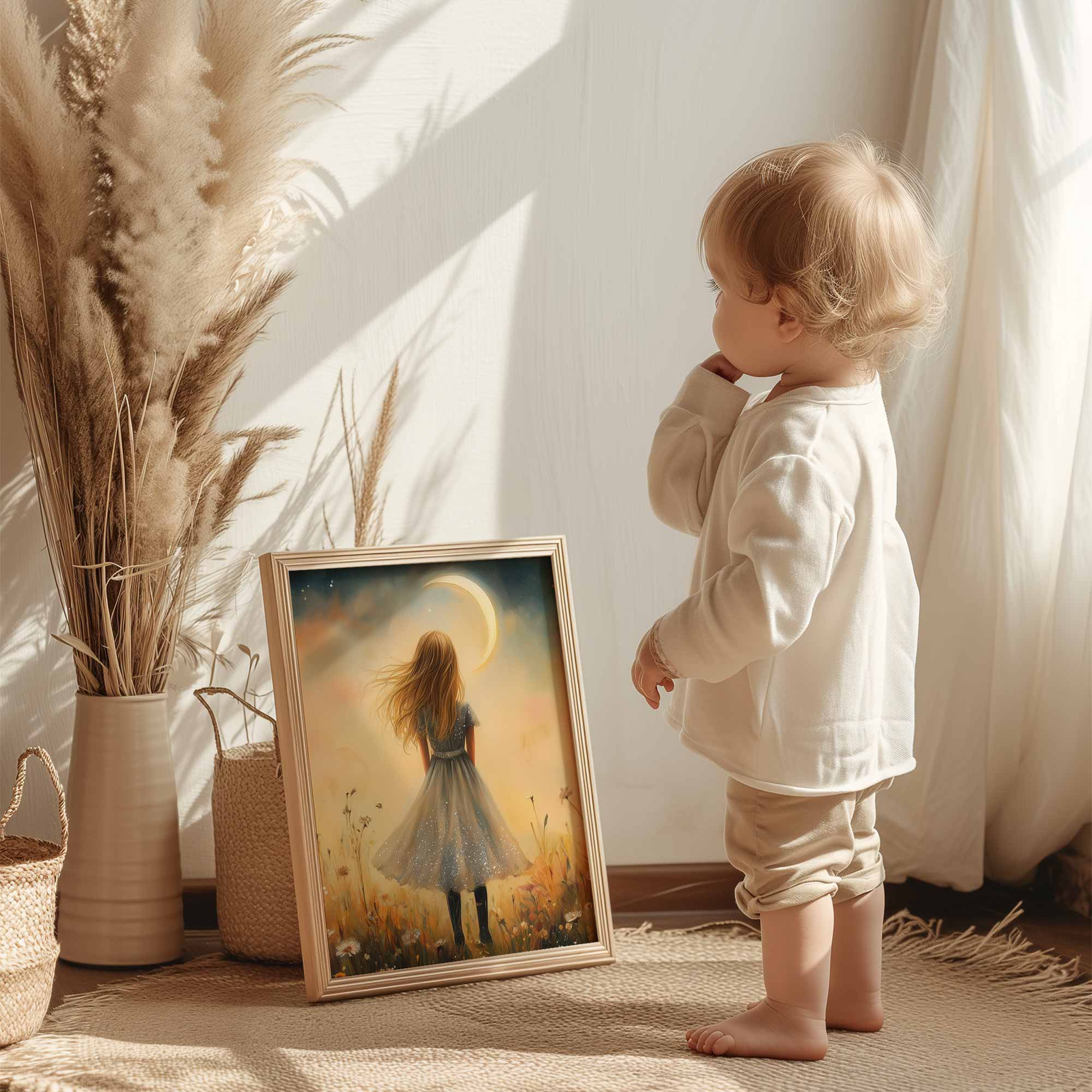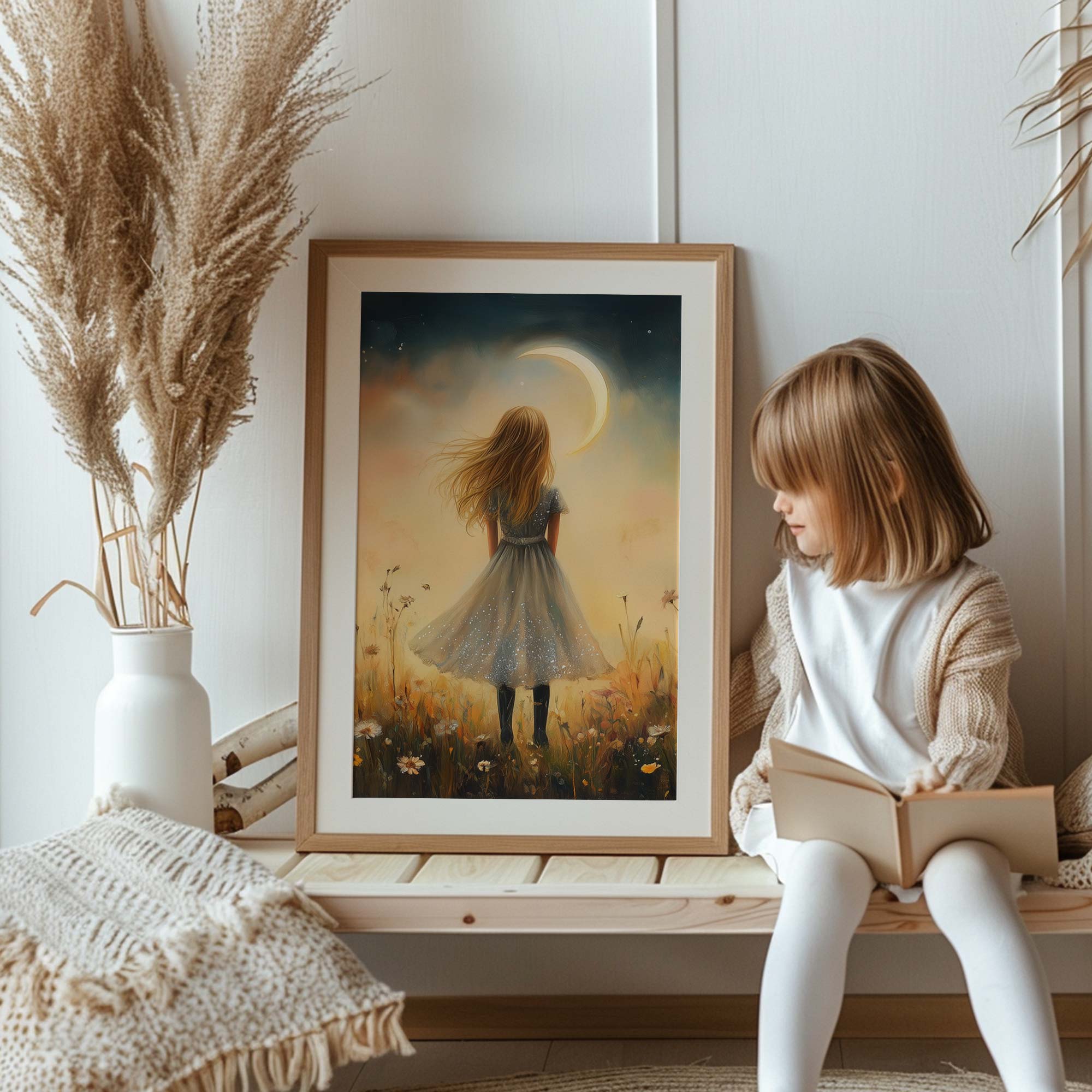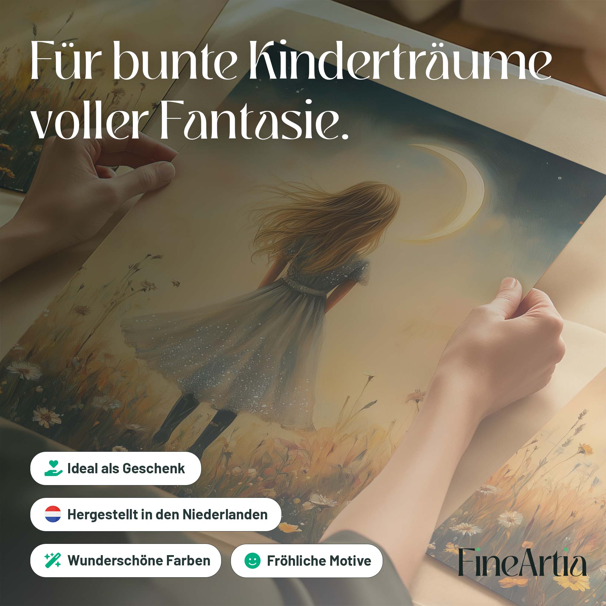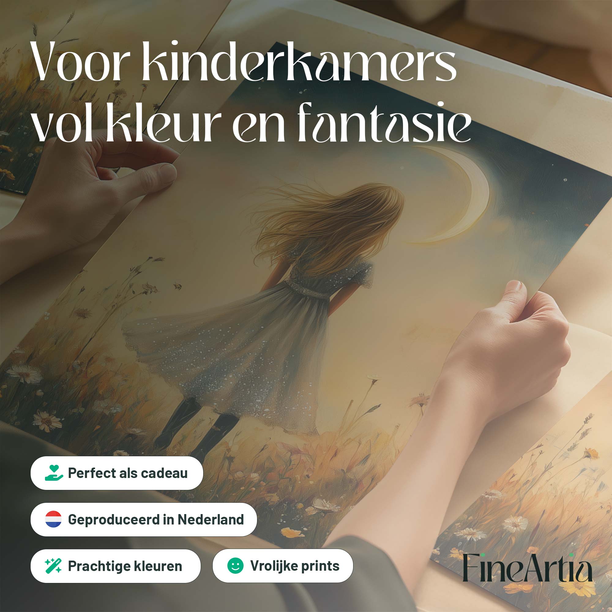 Terug naar collectie Posters Magisch Meisje in Bloemenveld met Maan