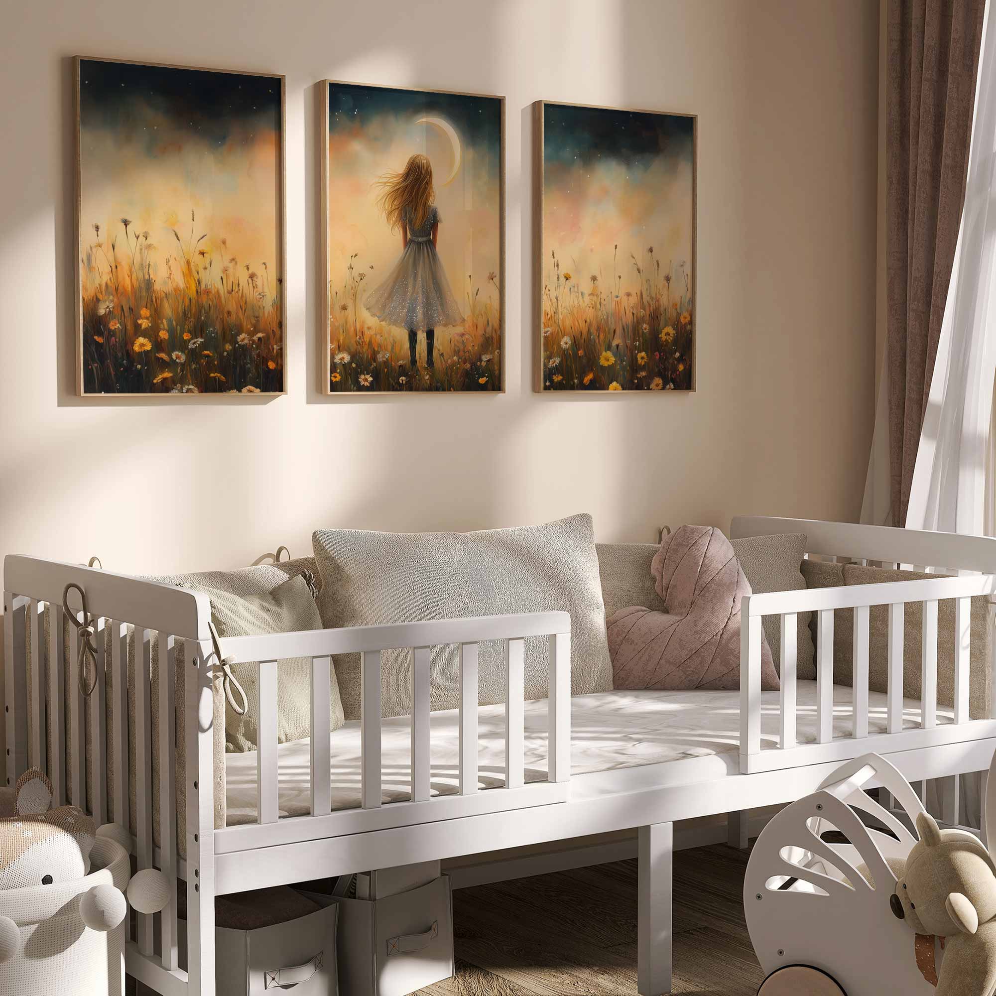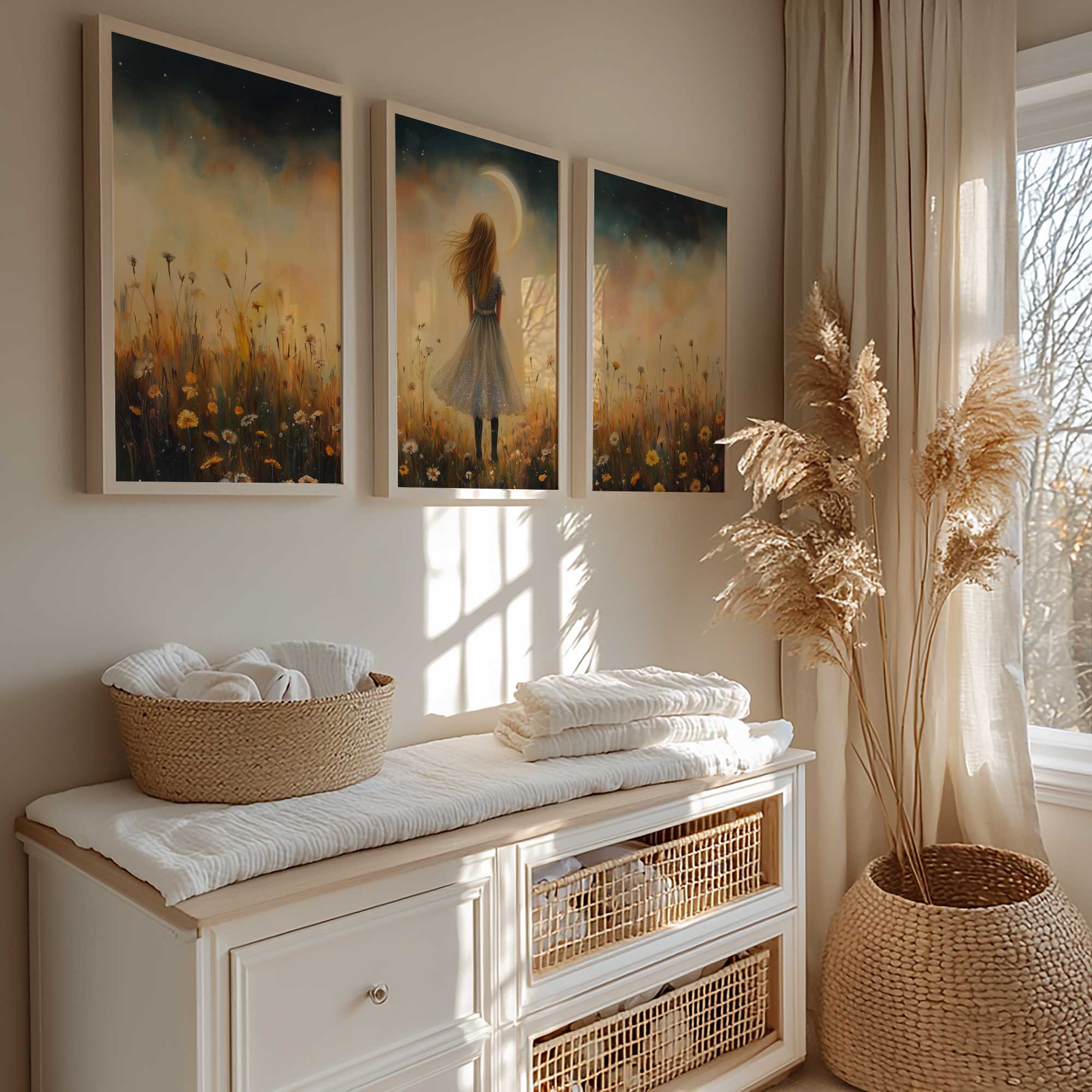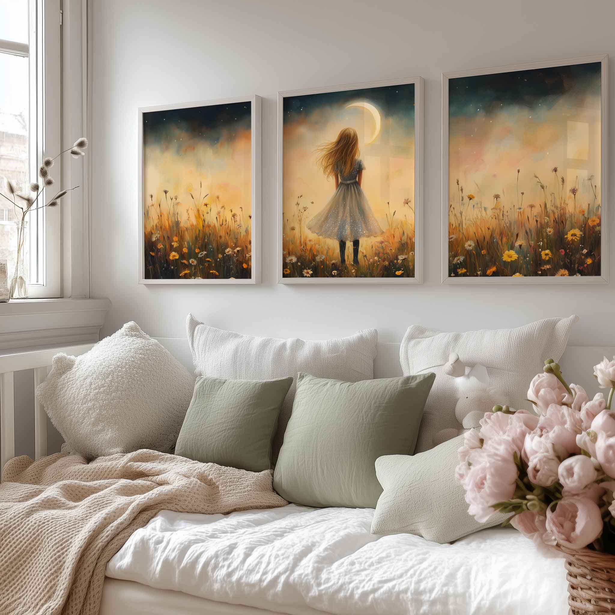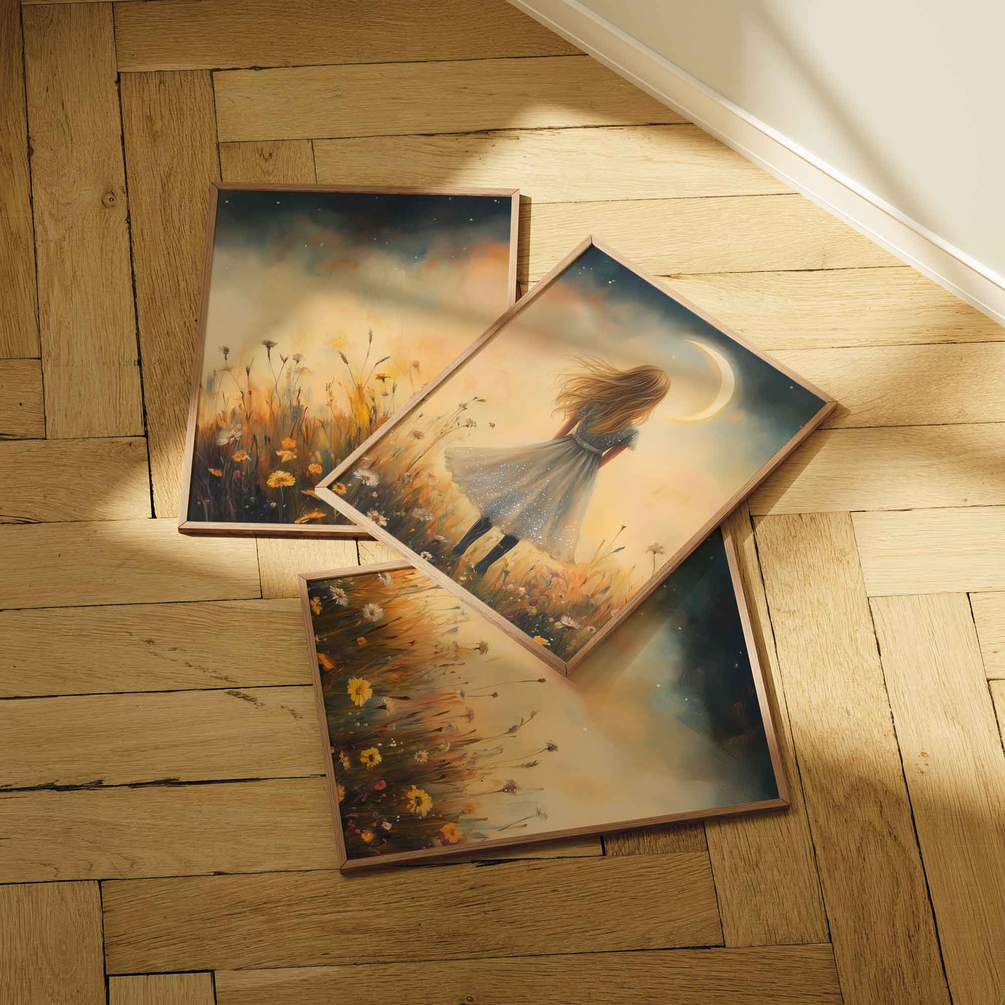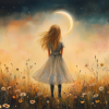 Terug naar collectie Posters Magisch Meisje in Bloemenveld met Maan