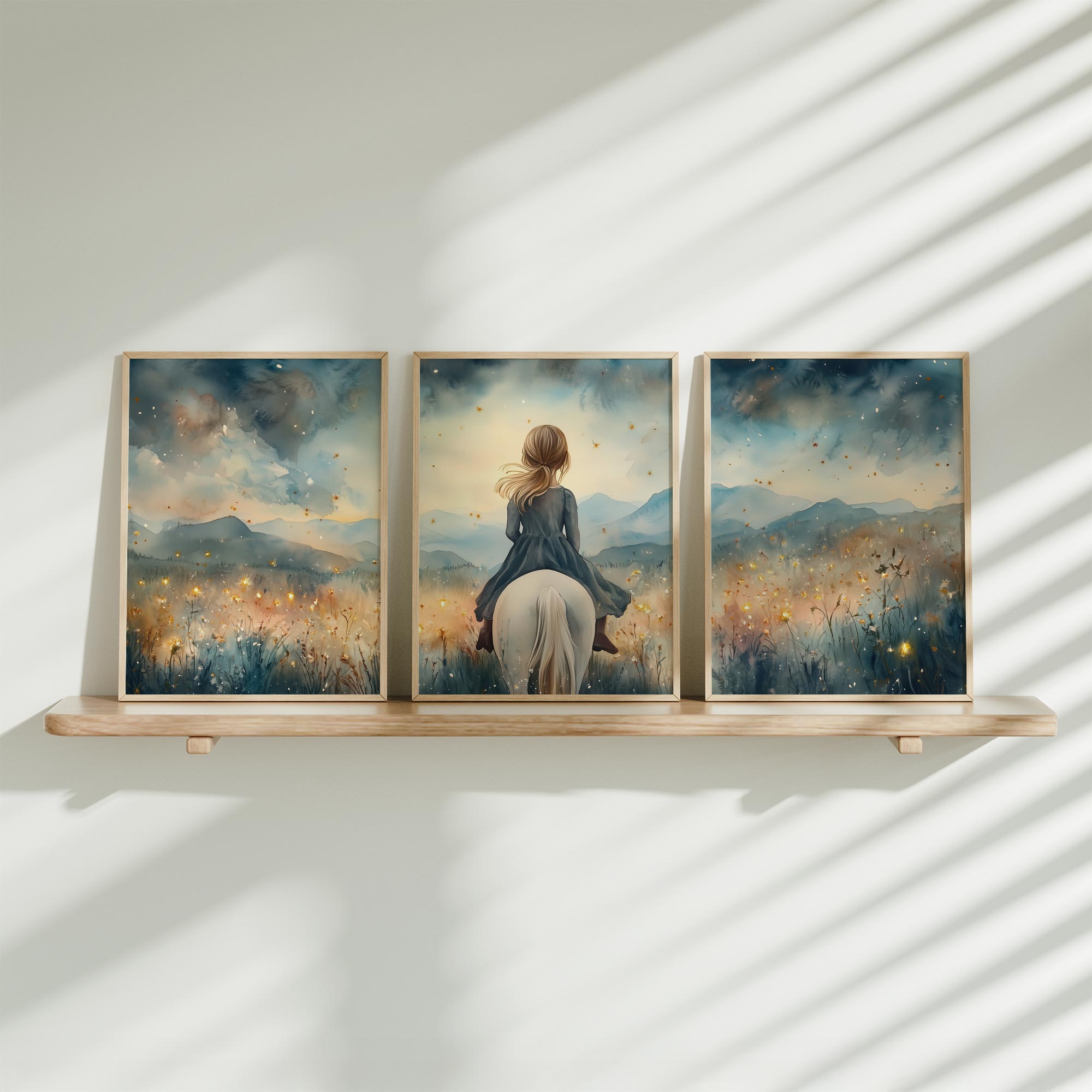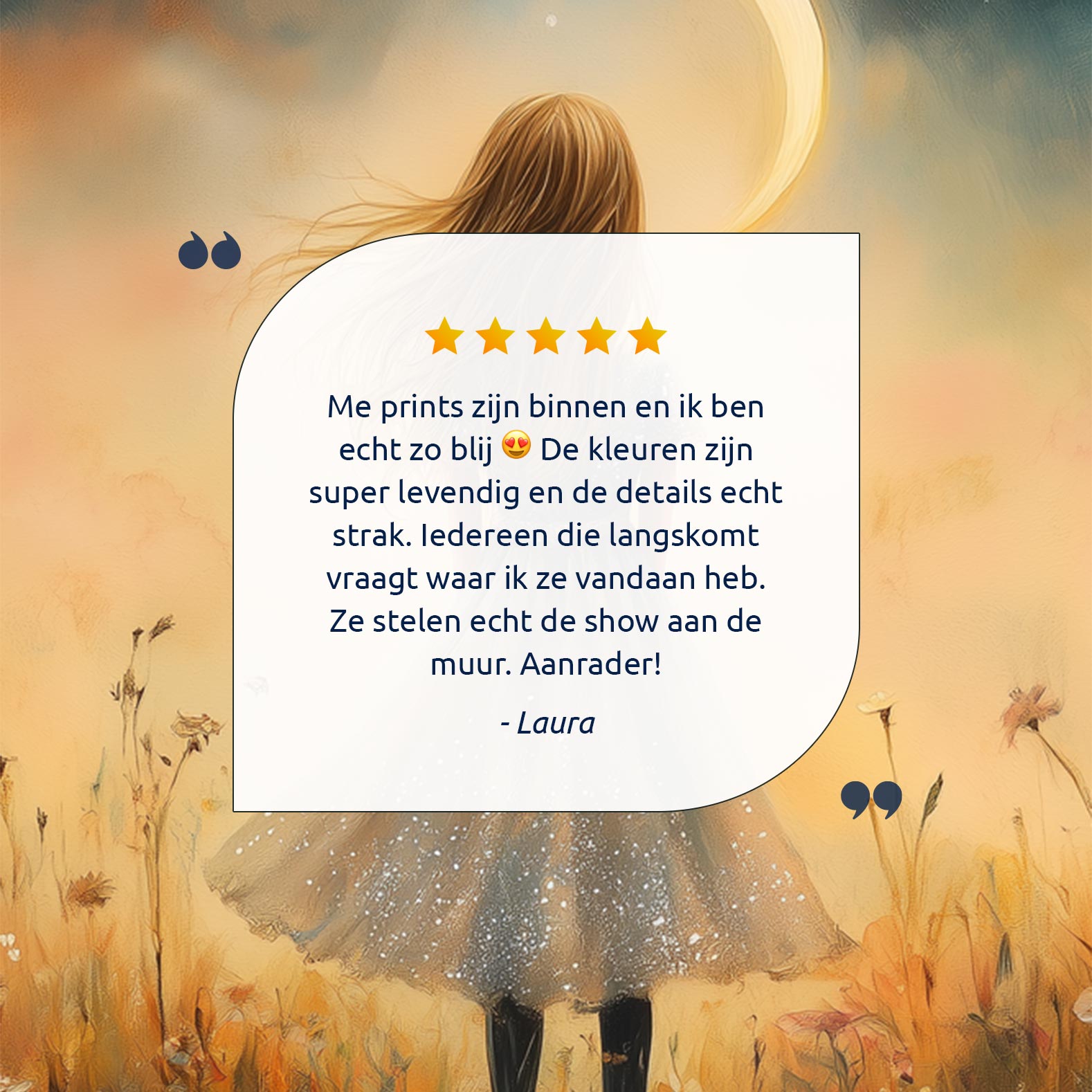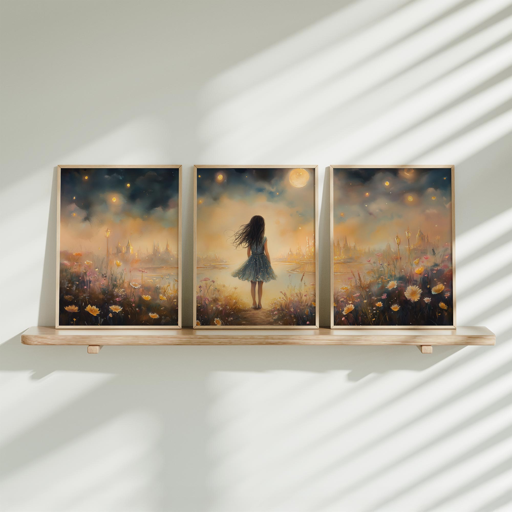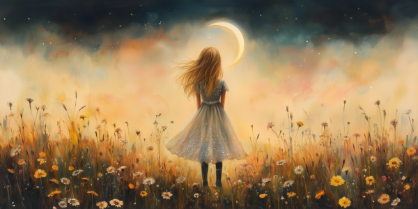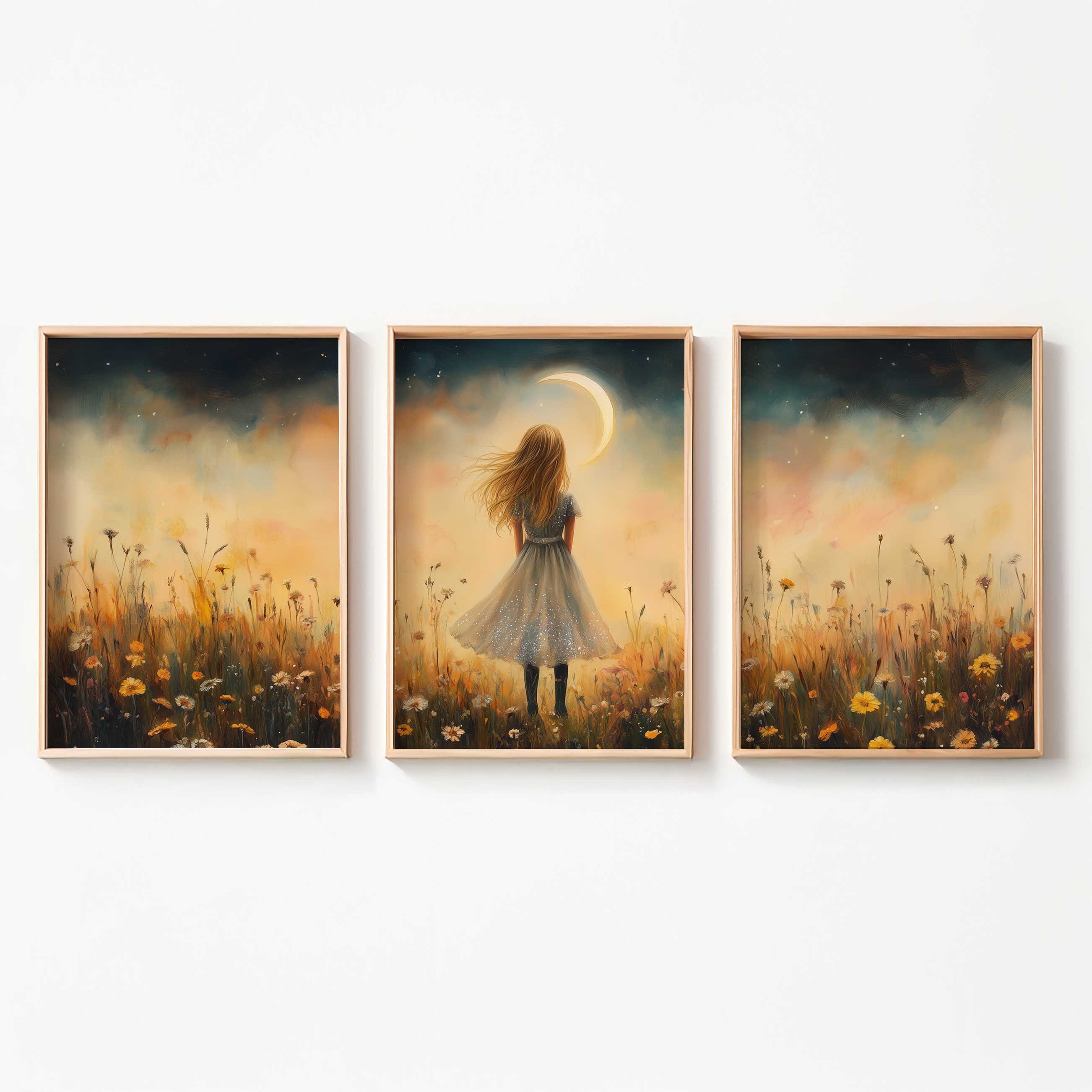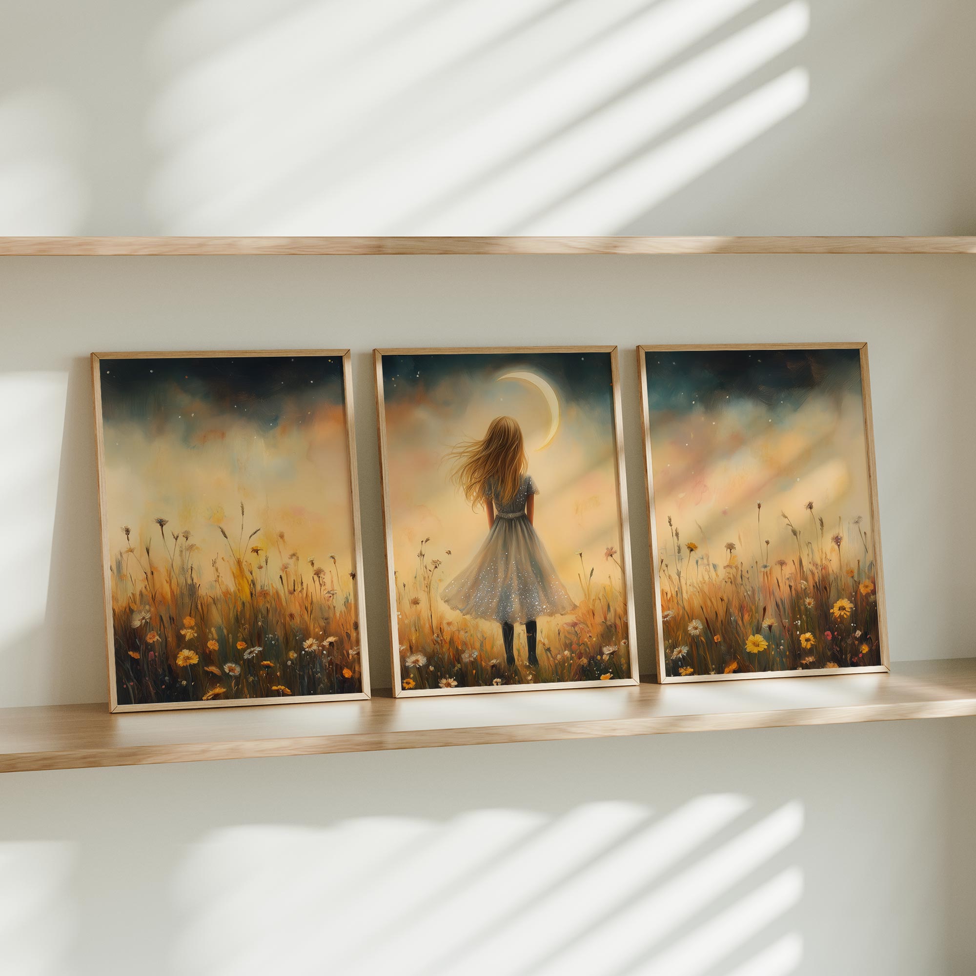 Terug naar collectie Posters Magisch Meisje in Bloemenveld met Maan