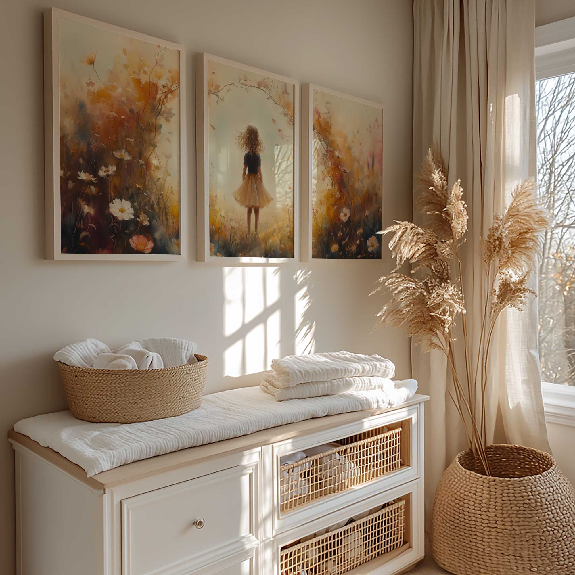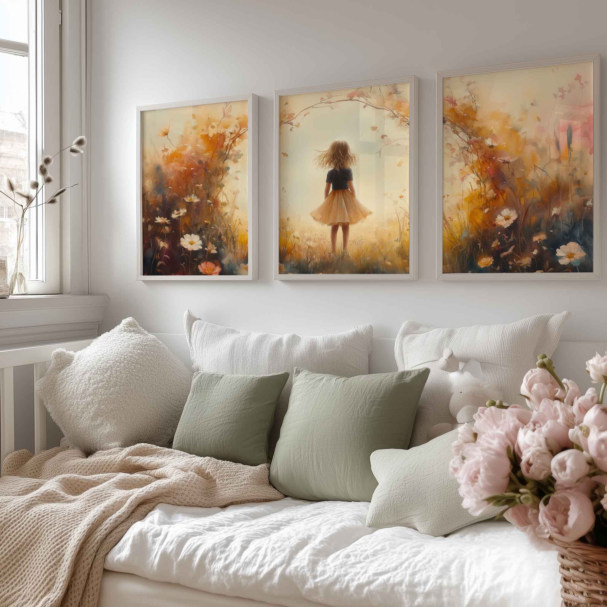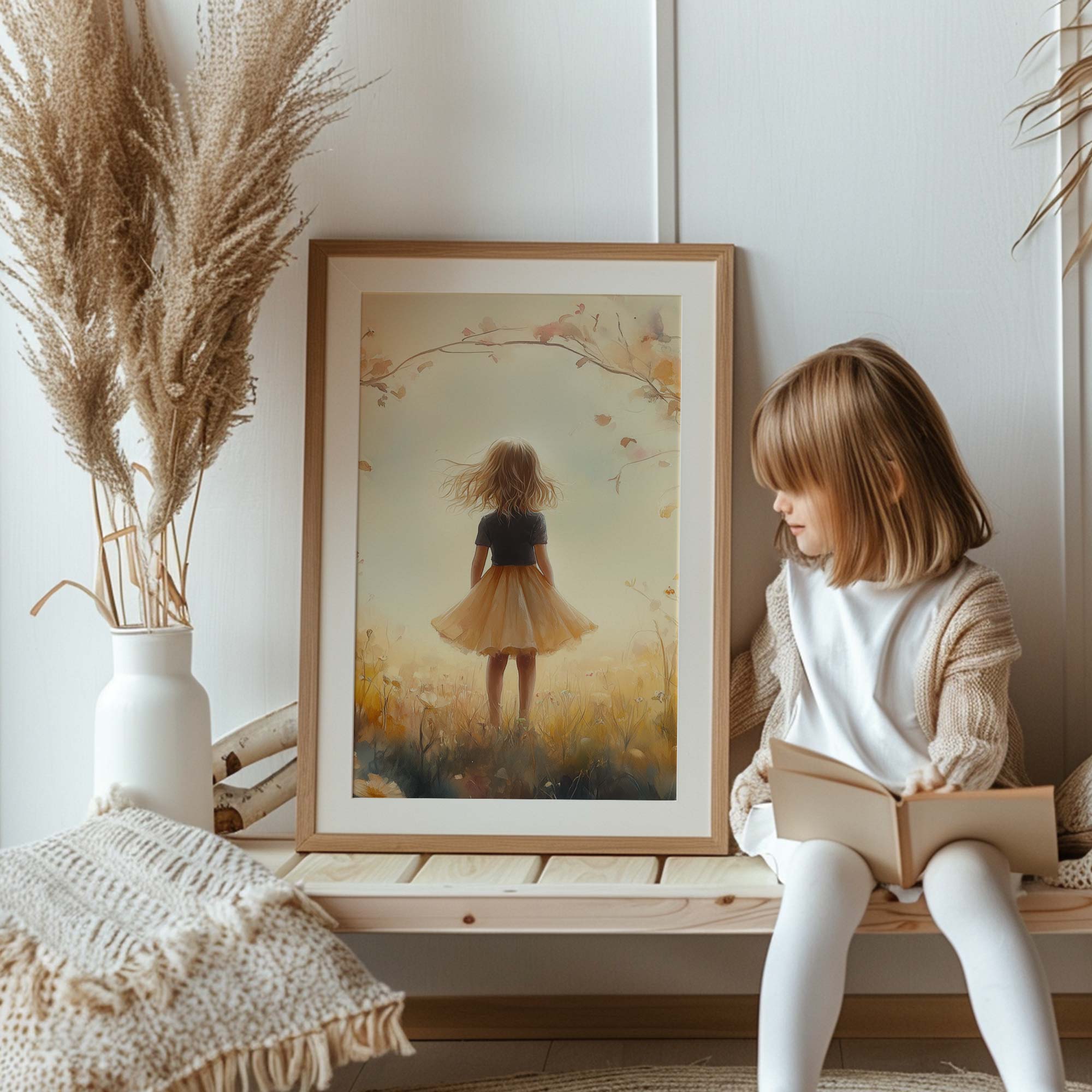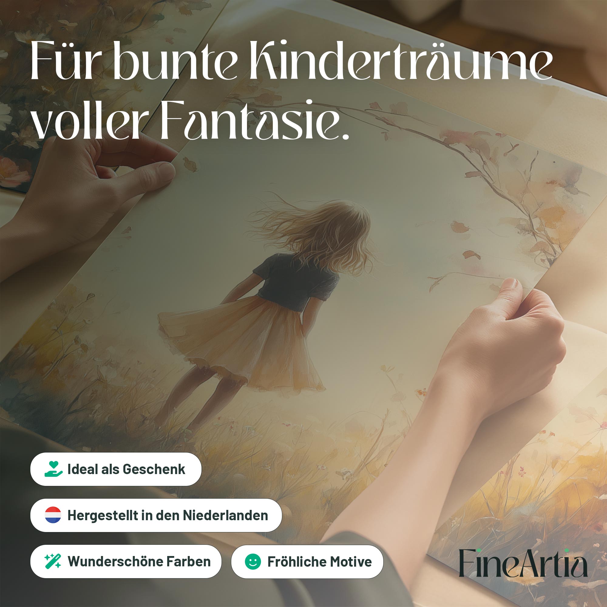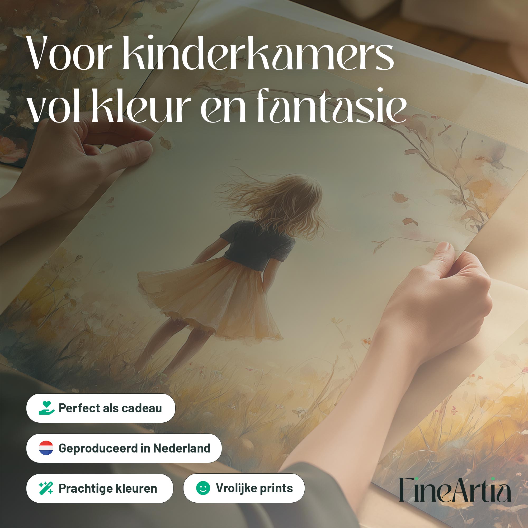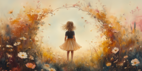 Magisch Meisje in Bloemenveld met Pastelkleuren