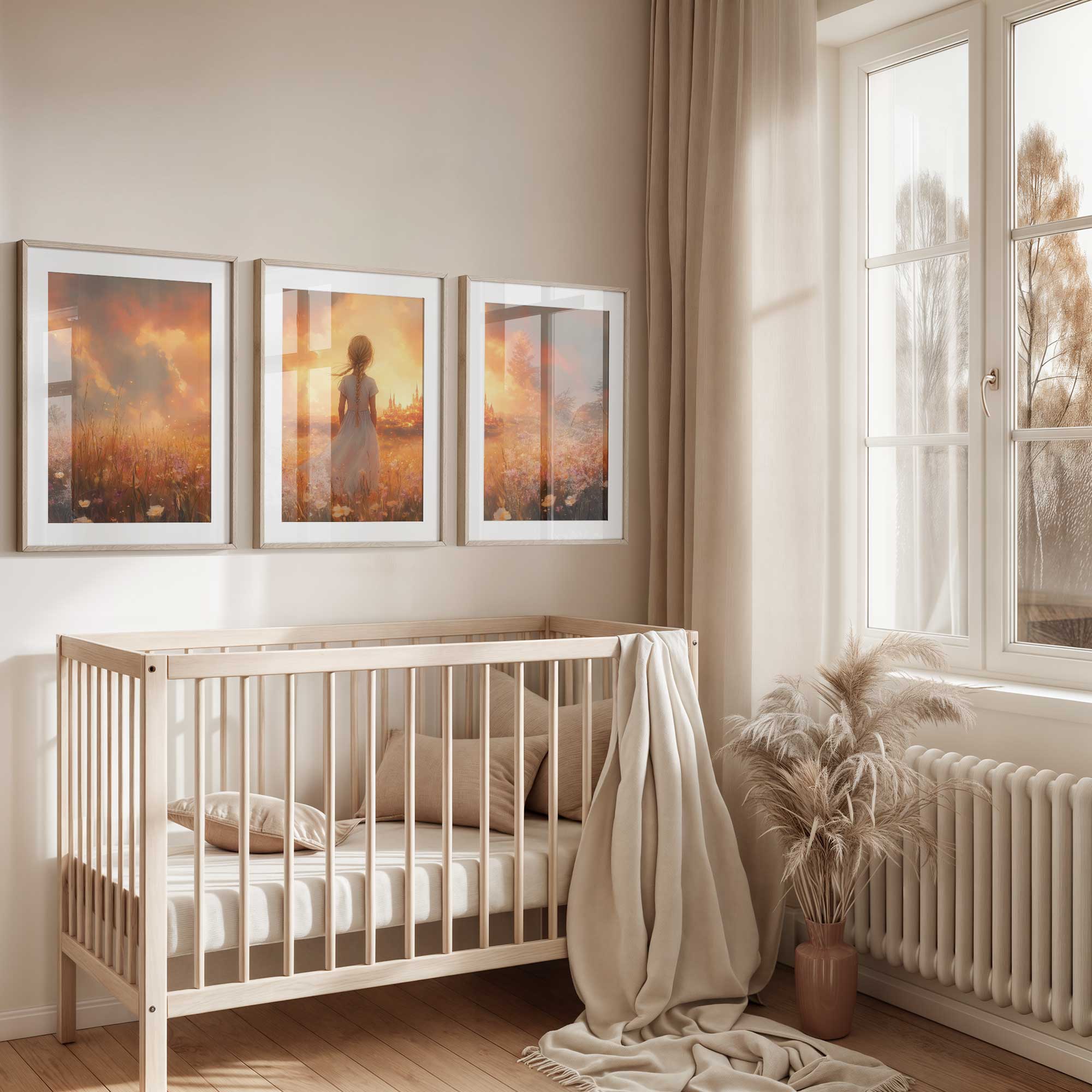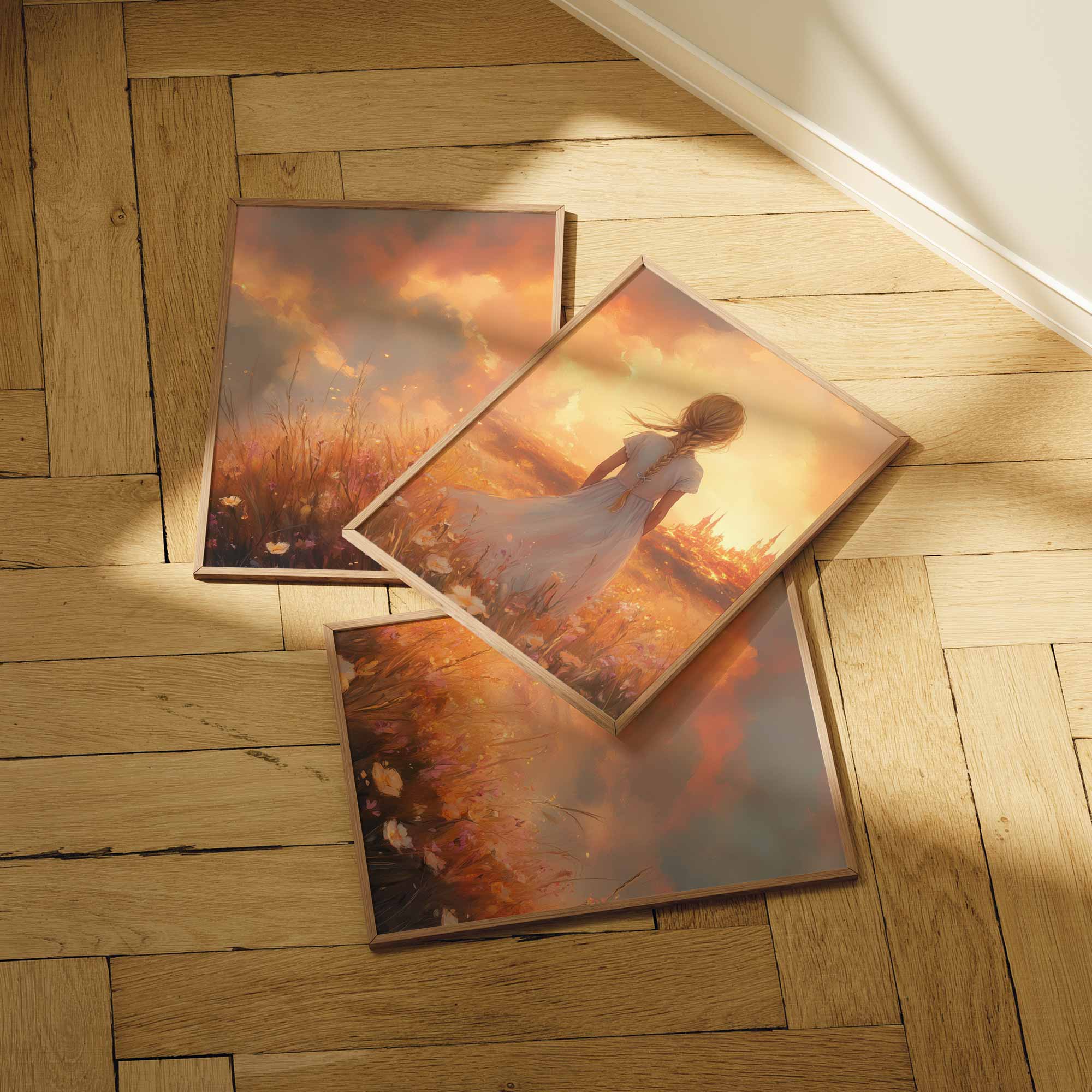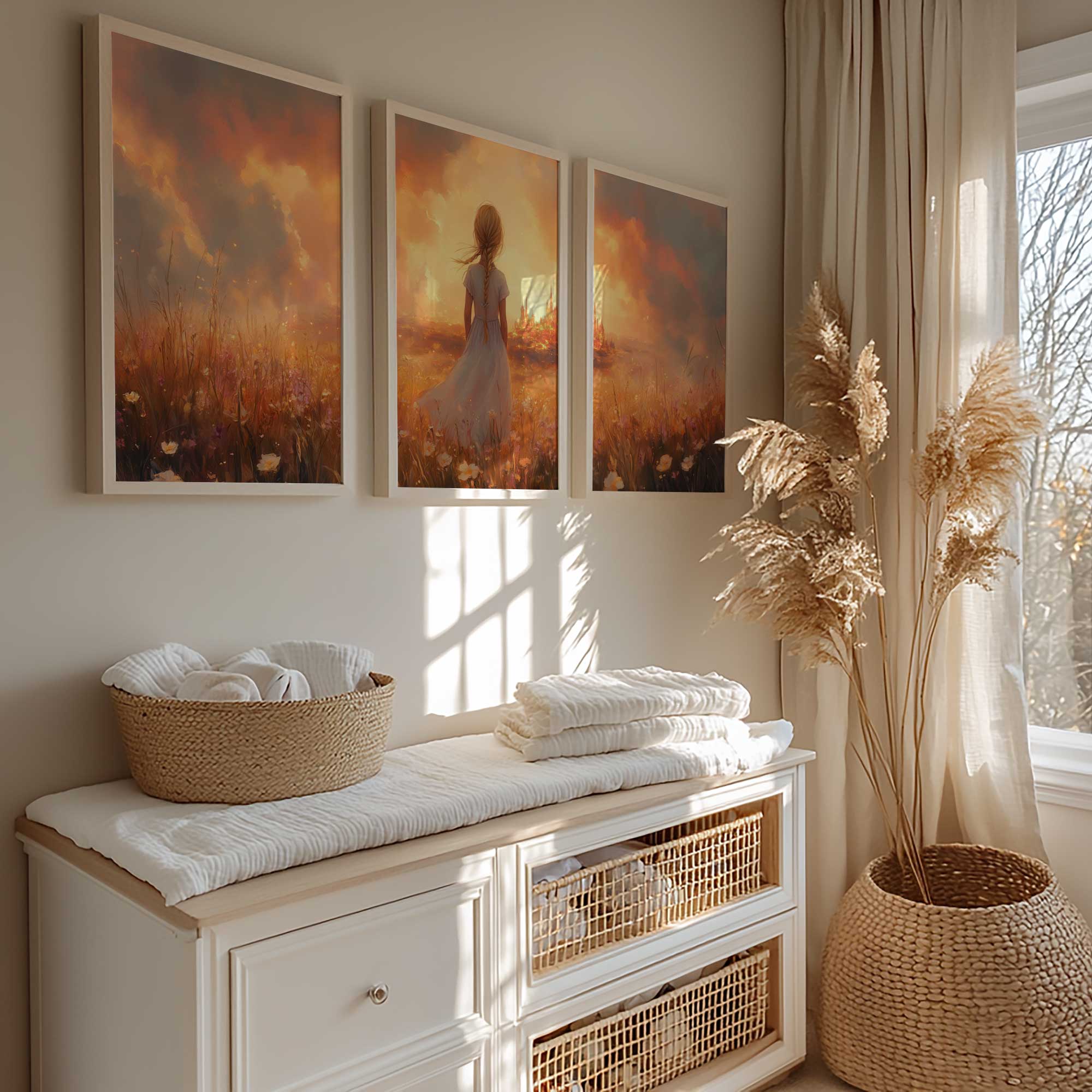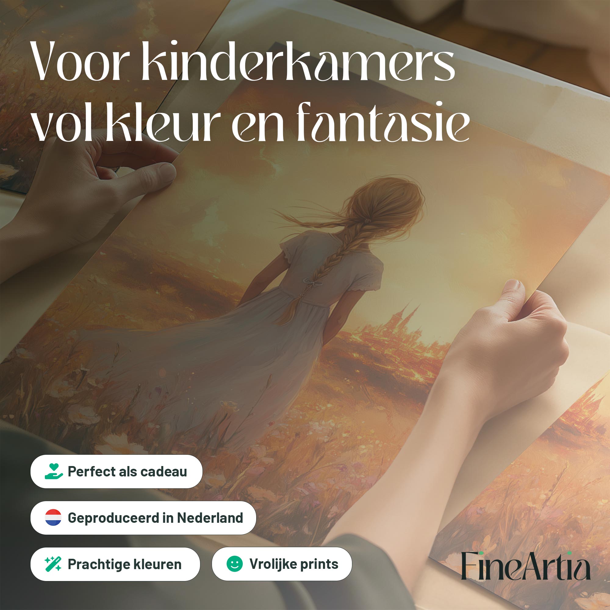 Magisch Meisje in Bloemenveld met Sprookjeskasteel