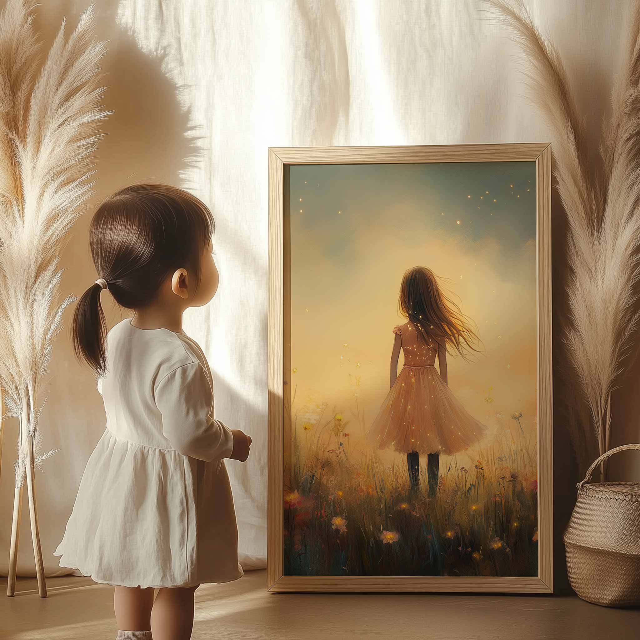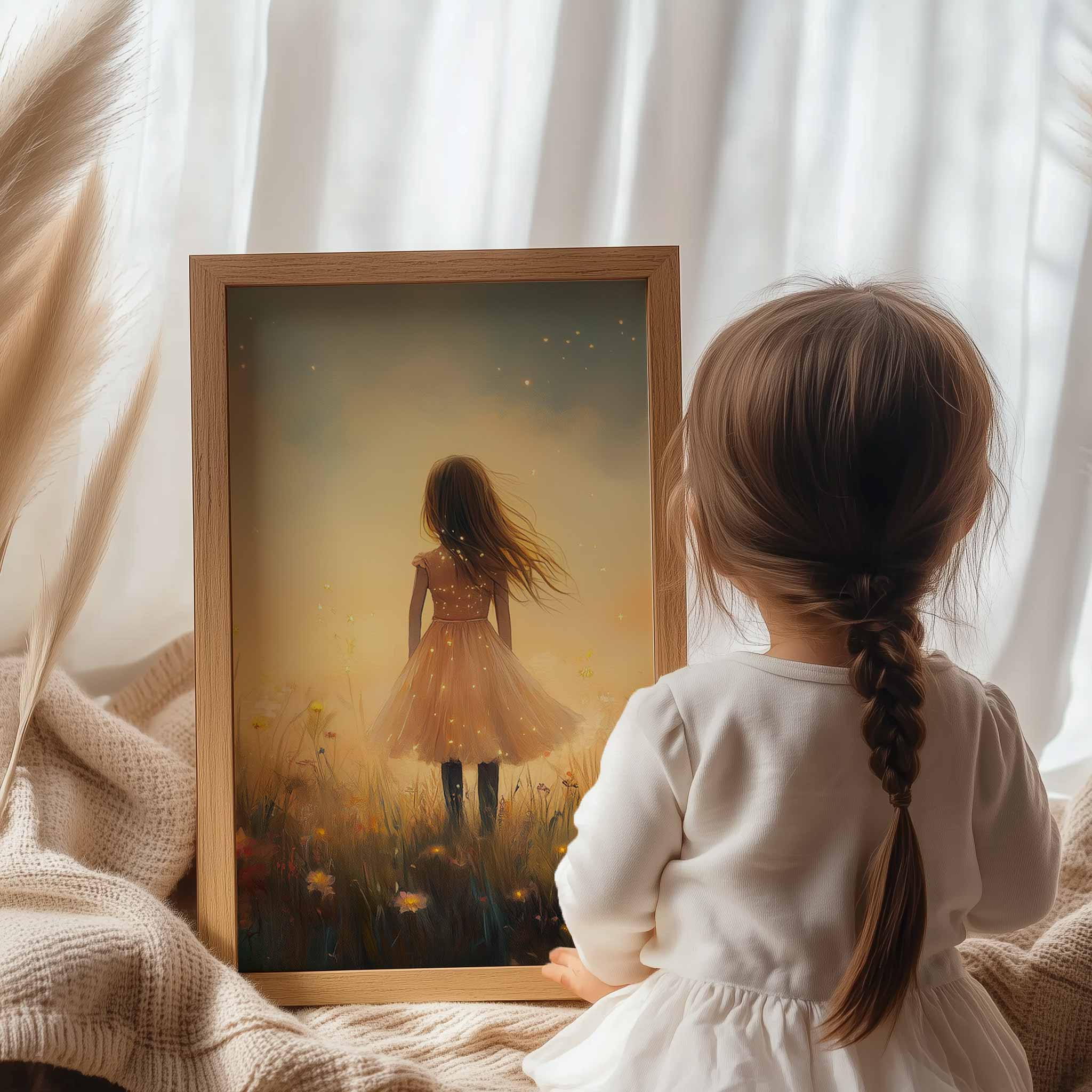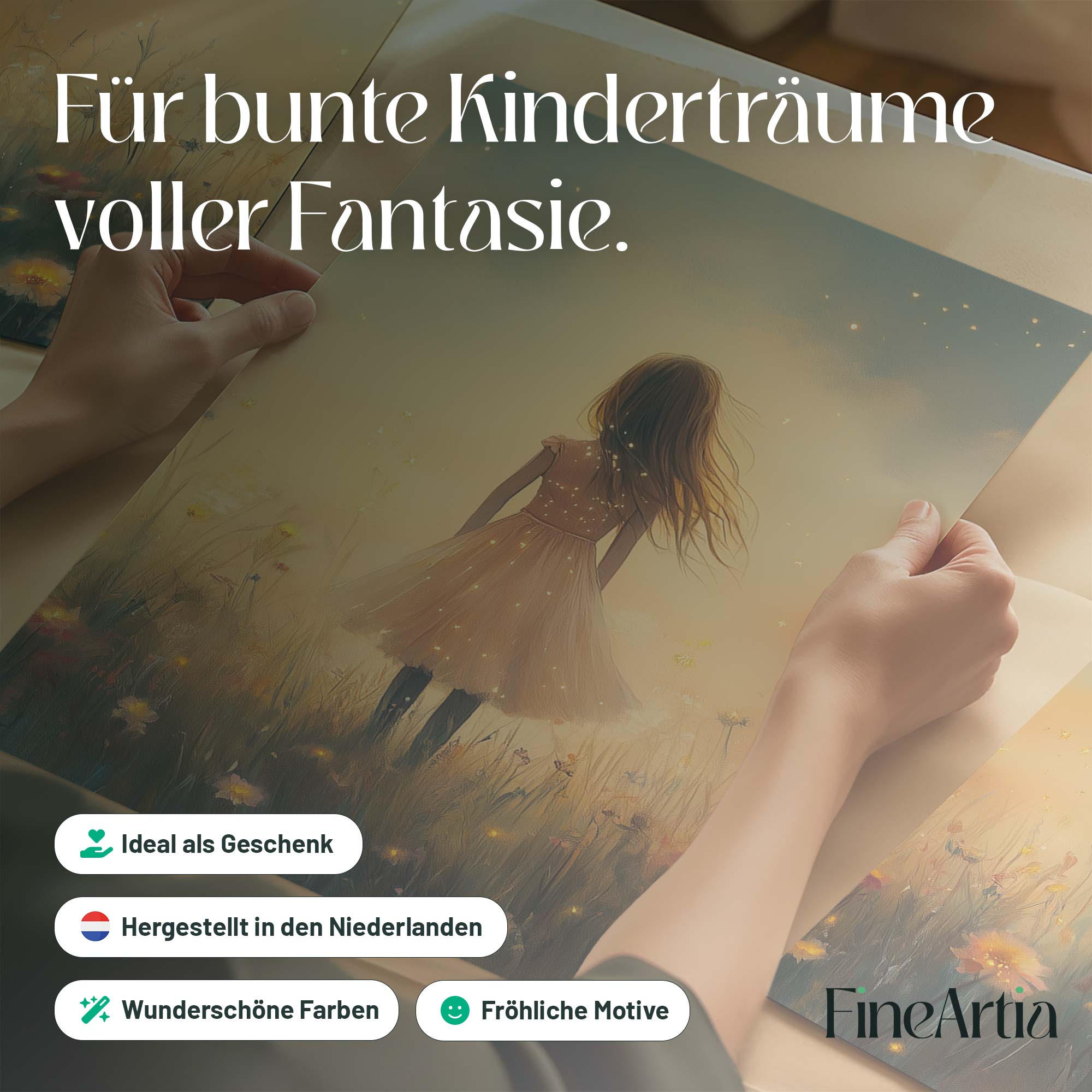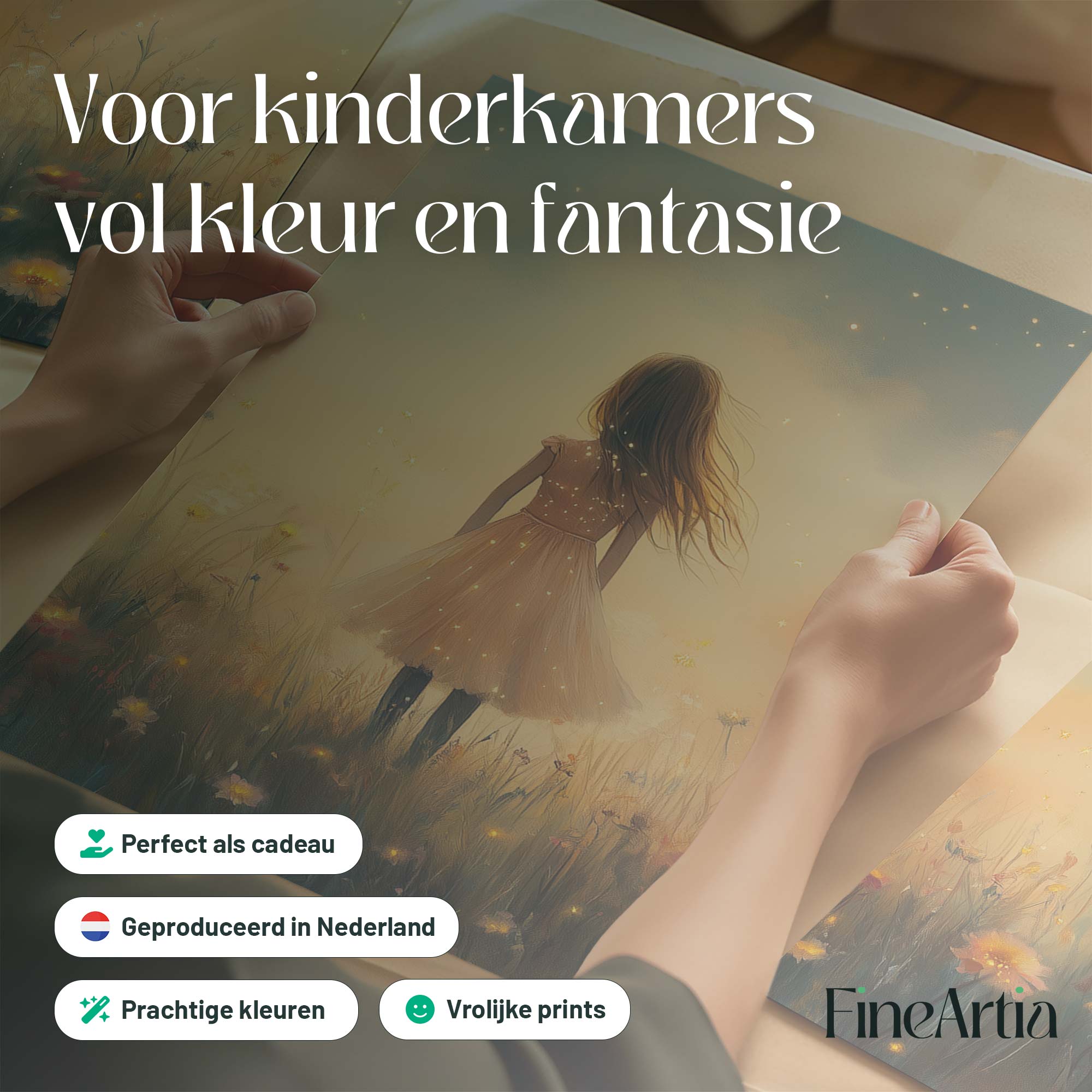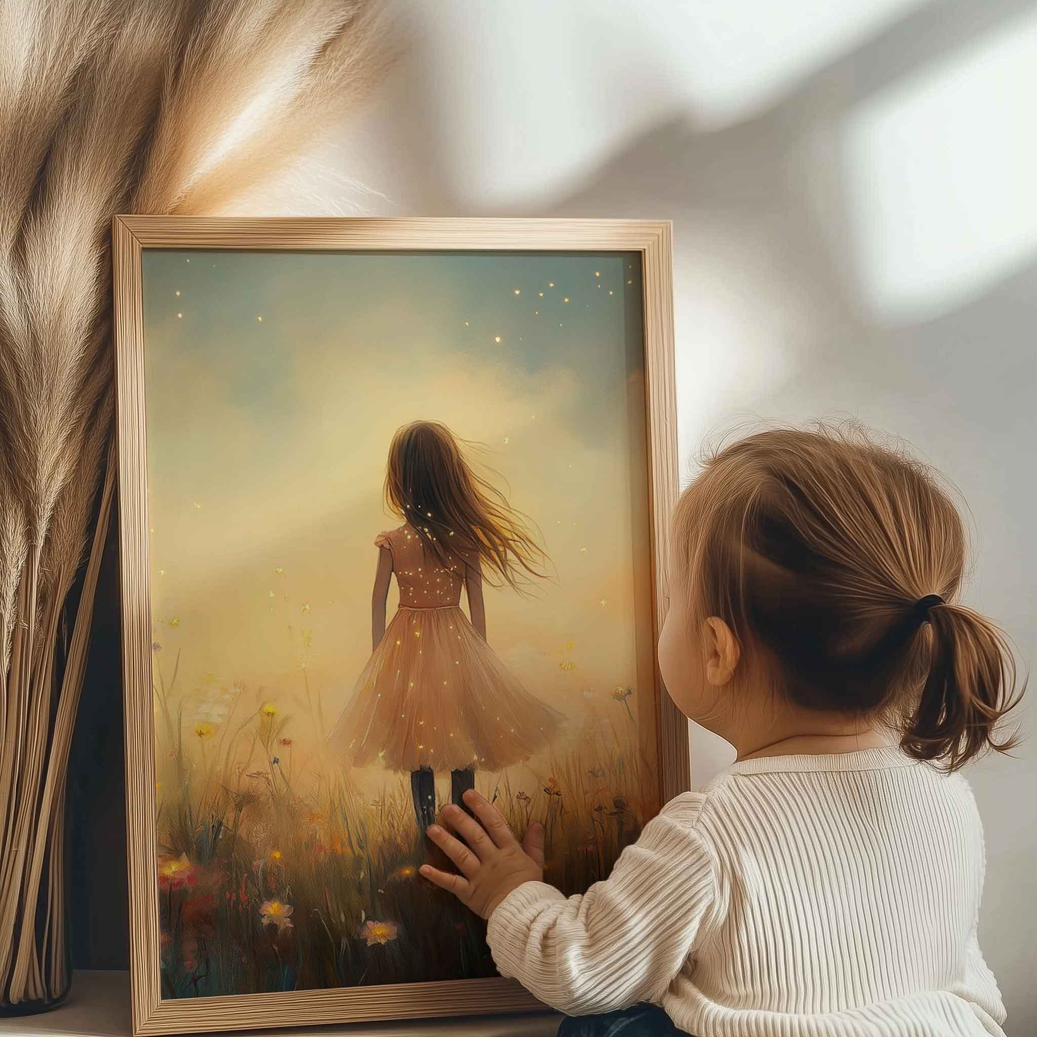 Terug naar collectie Posters Magisch Meisje in Bloemenveld onder Sterrenhemel