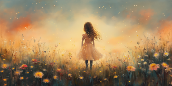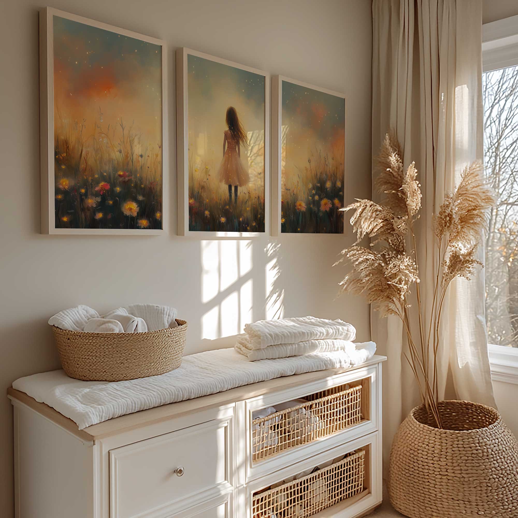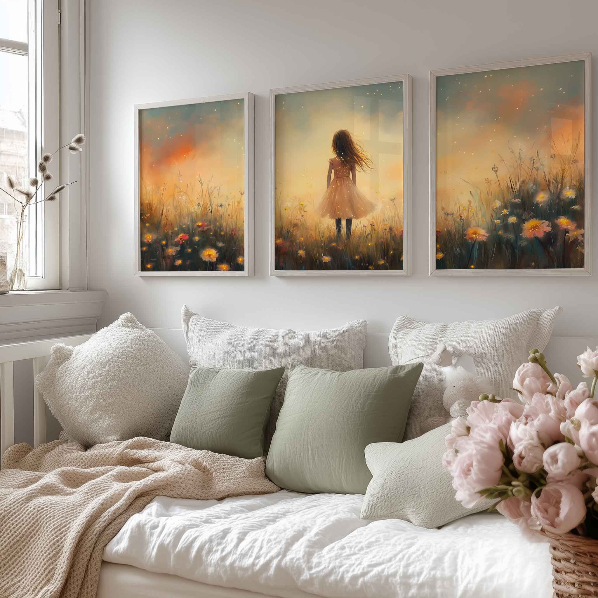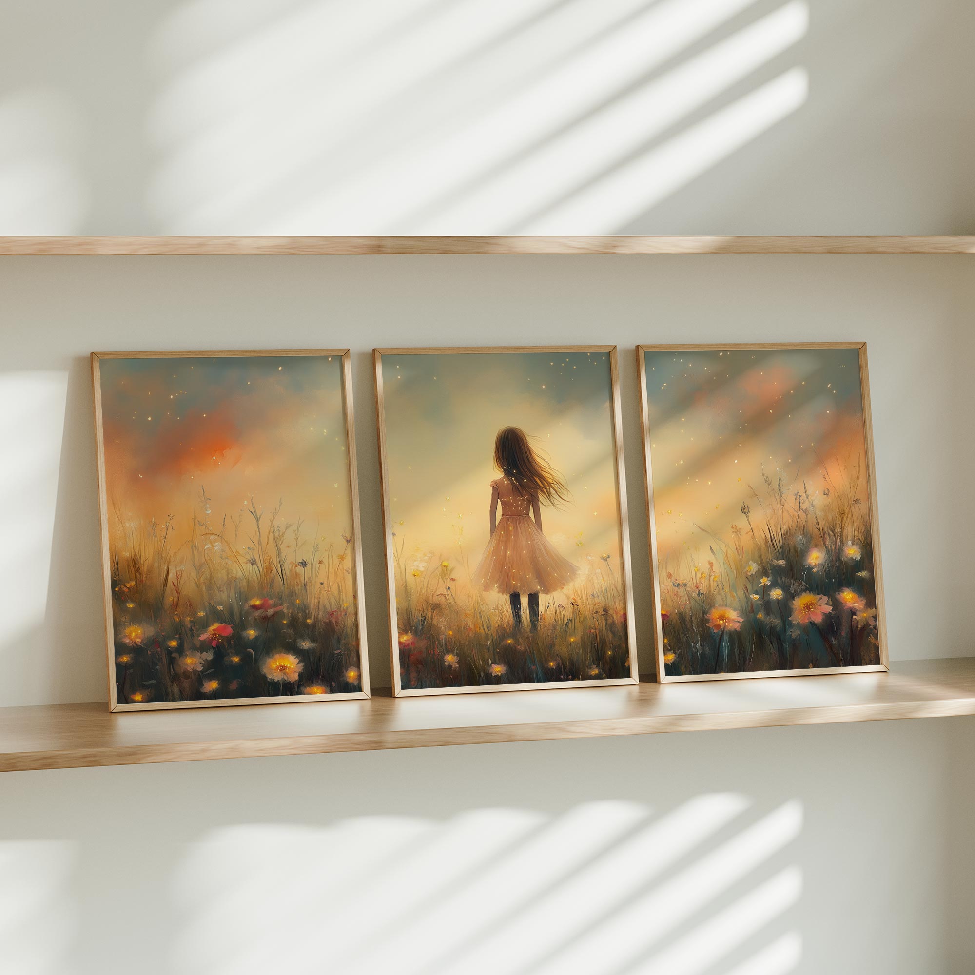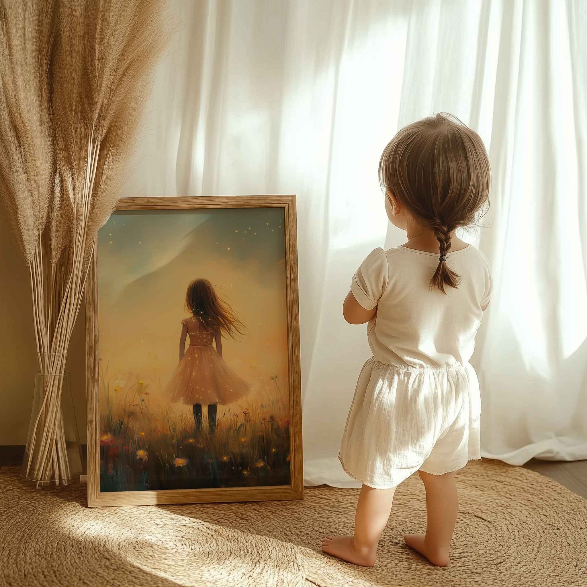 Terug naar collectie Posters Magisch Meisje in Bloemenveld onder Sterrenhemel