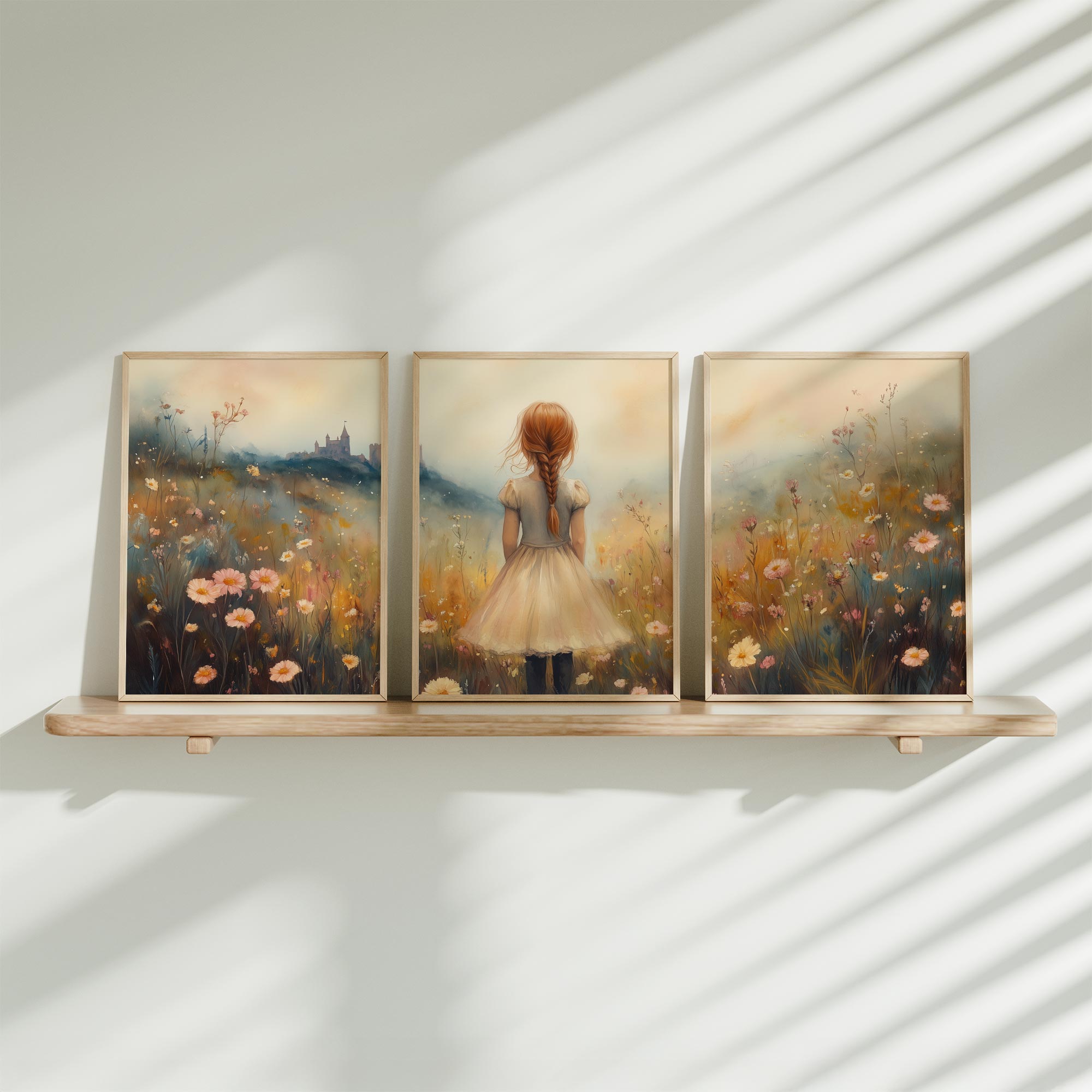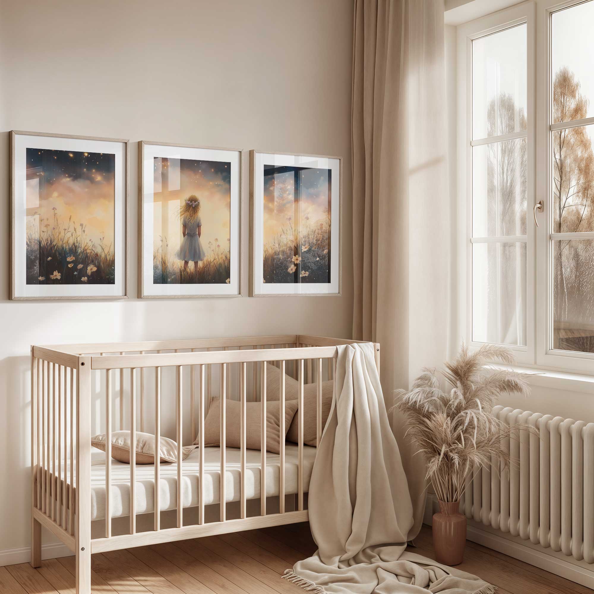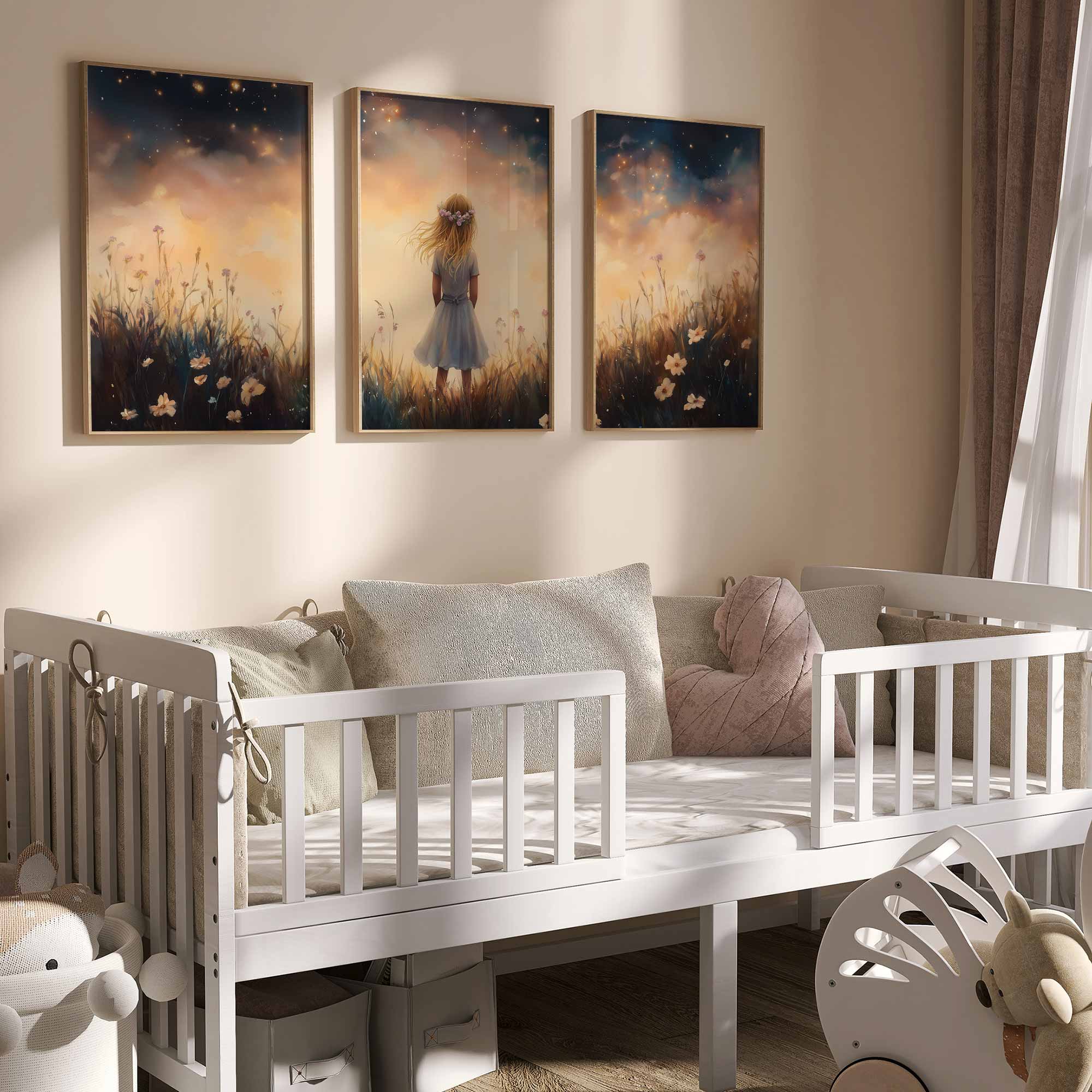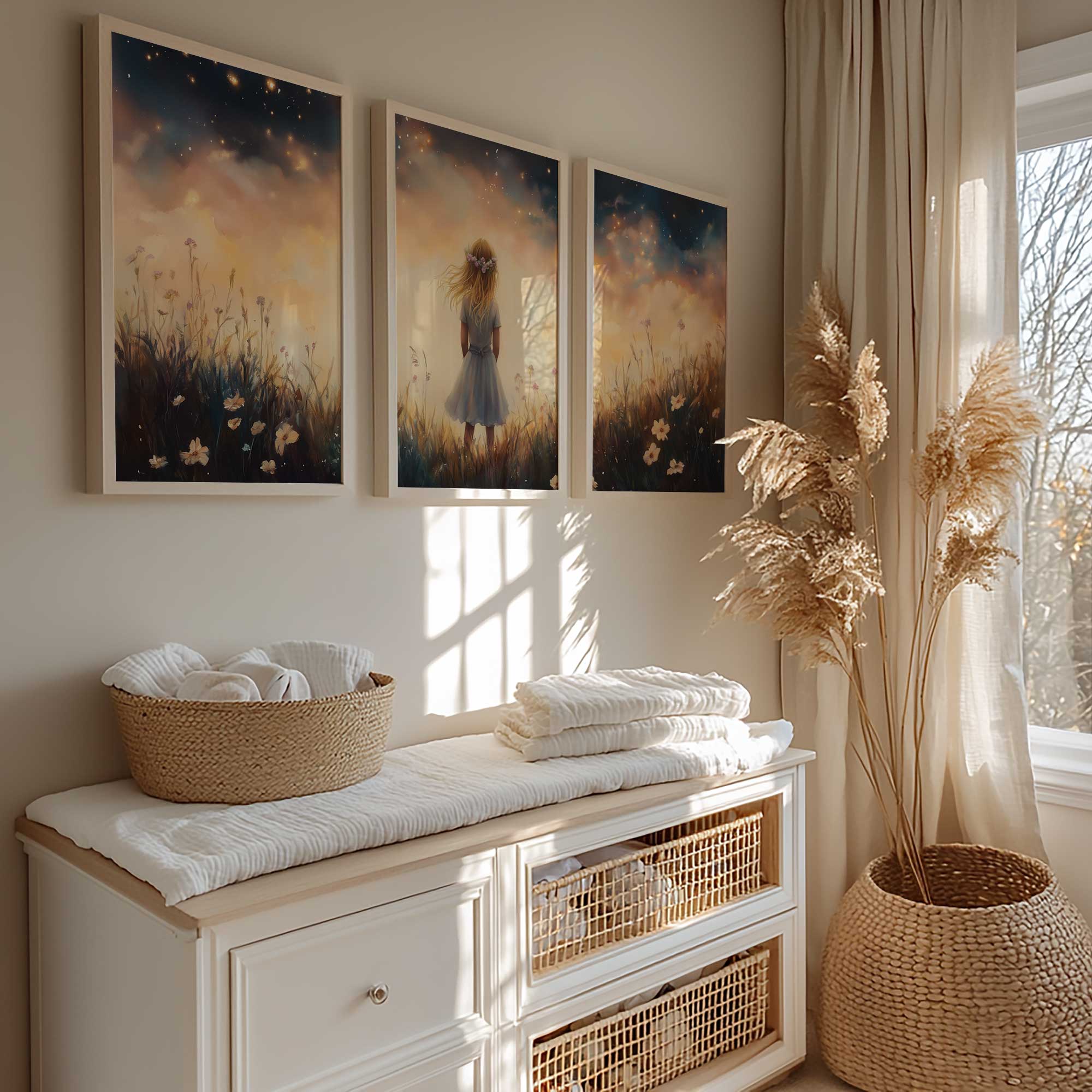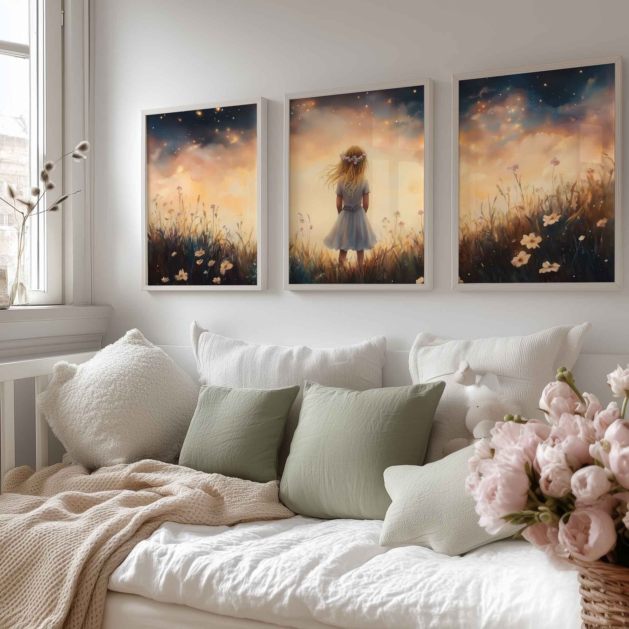 Magisch Meisje in Bloemenveld onder Sterrenhemel