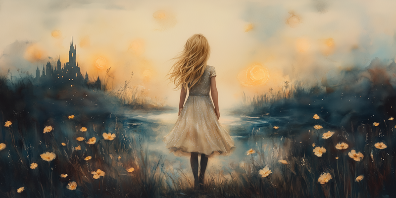 Terug naar collectie Posters Magisch Meisje in Dromerig Bloemenveld