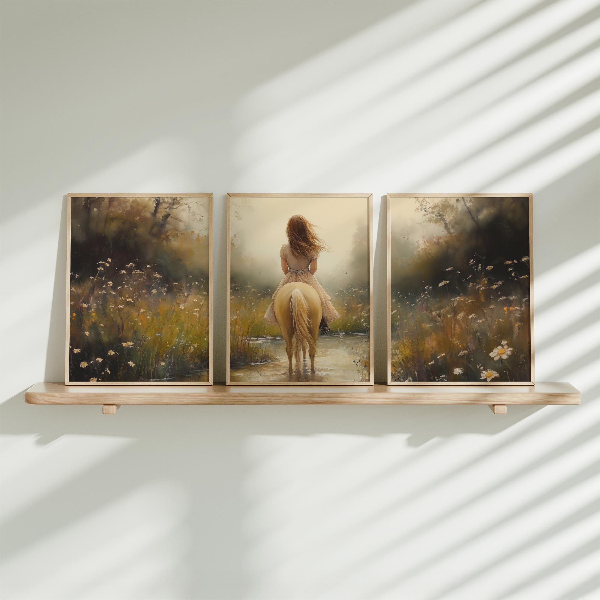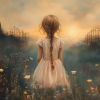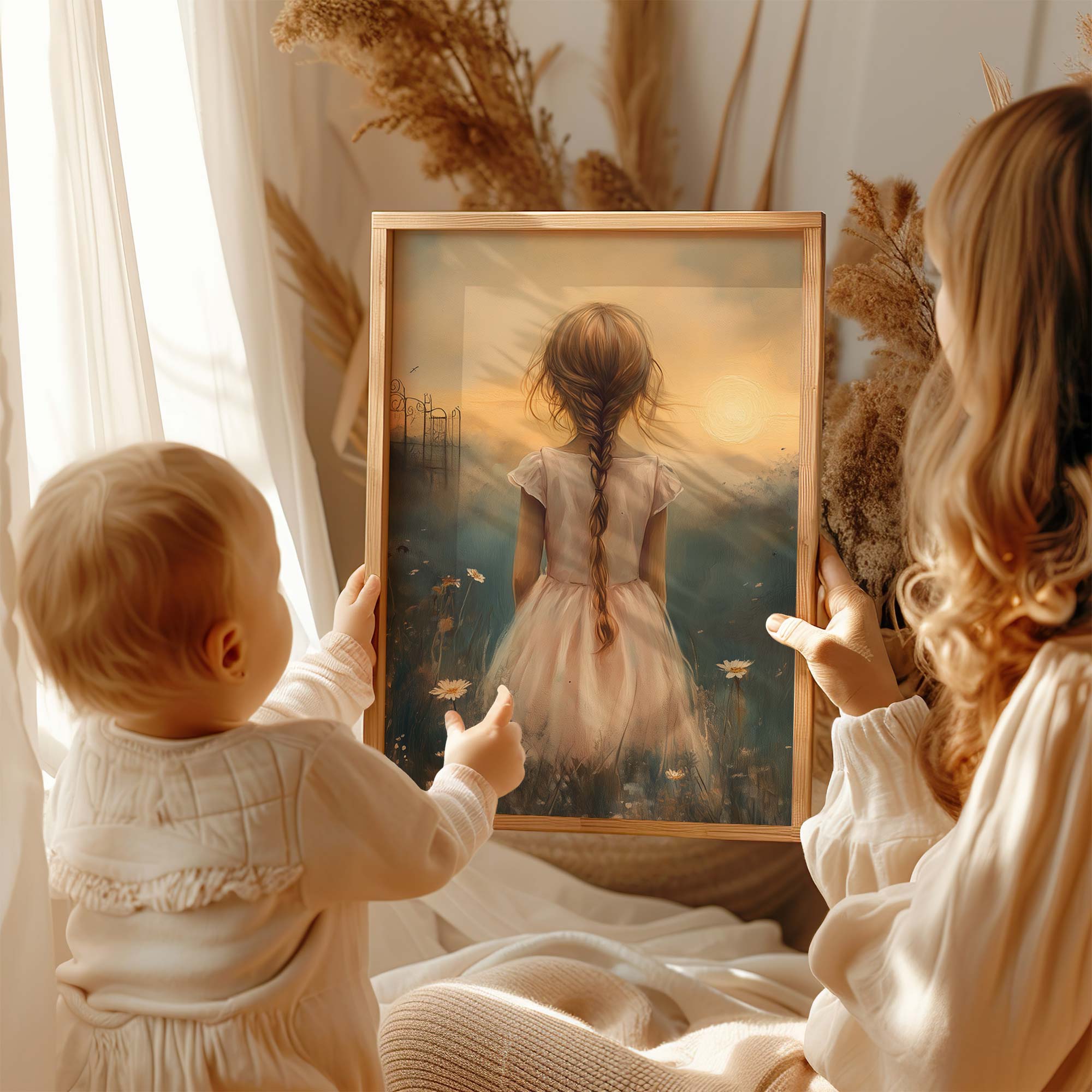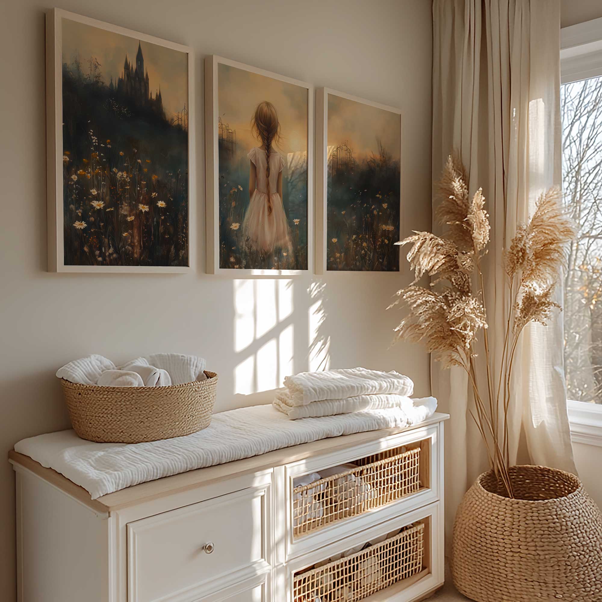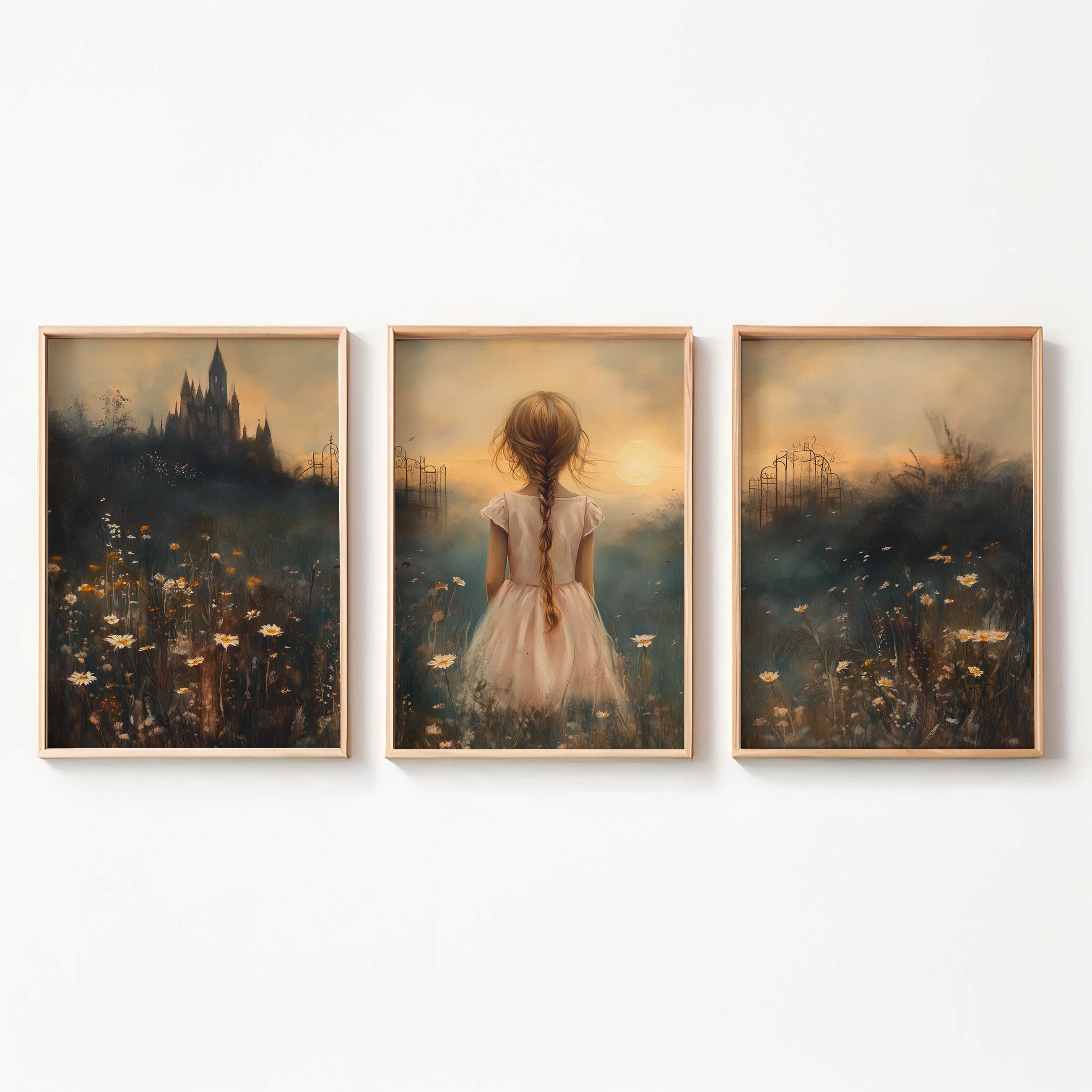 Terug naar collectie Posters Magisch Meisje in Dromerig Bloemenveld met Kasteel