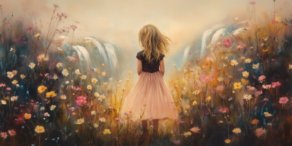 Terug naar collectie Posters Magisch Meisje in een Dromerig Bloemenveld