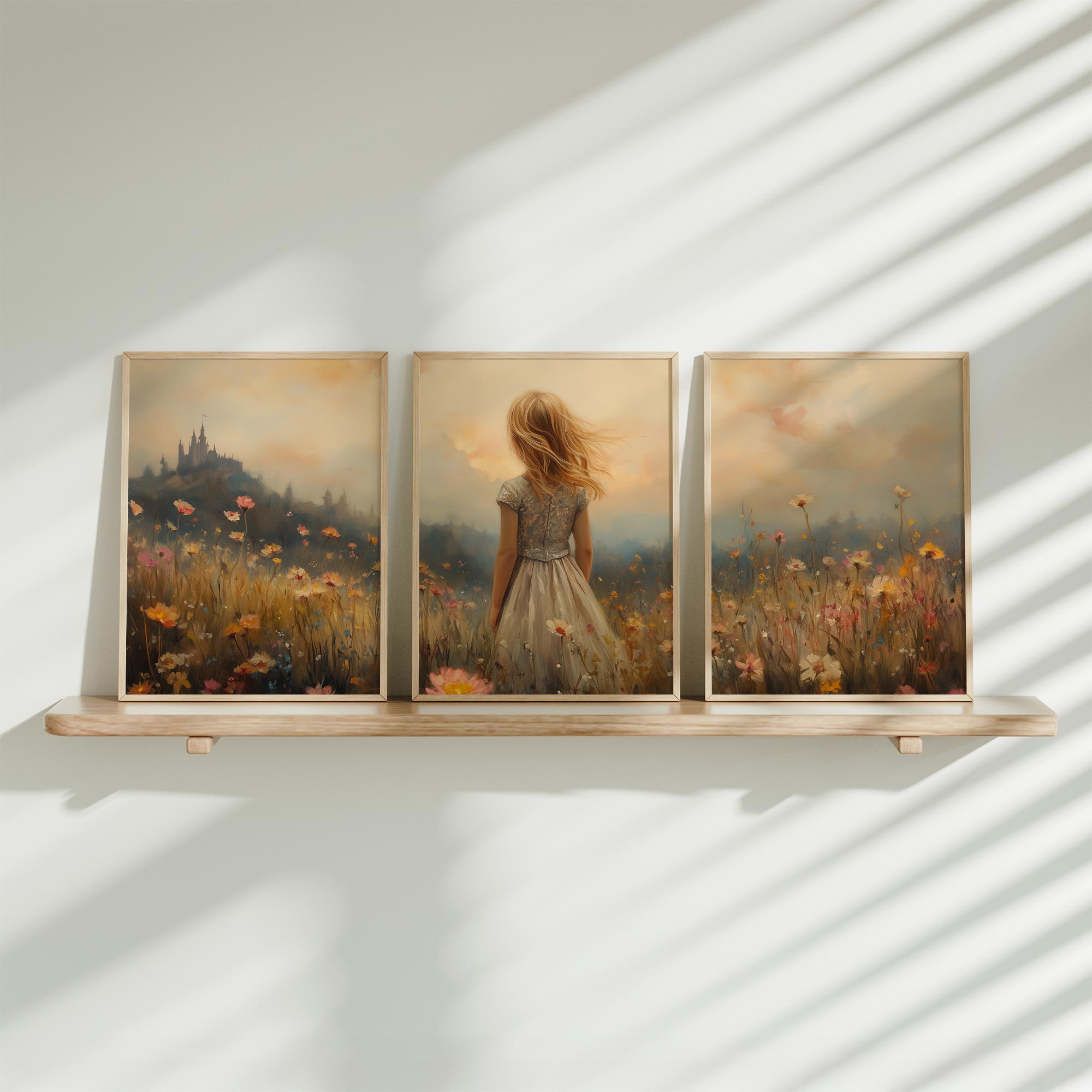 Magisch Meisje in Paddenstoelenveld met Kasteel