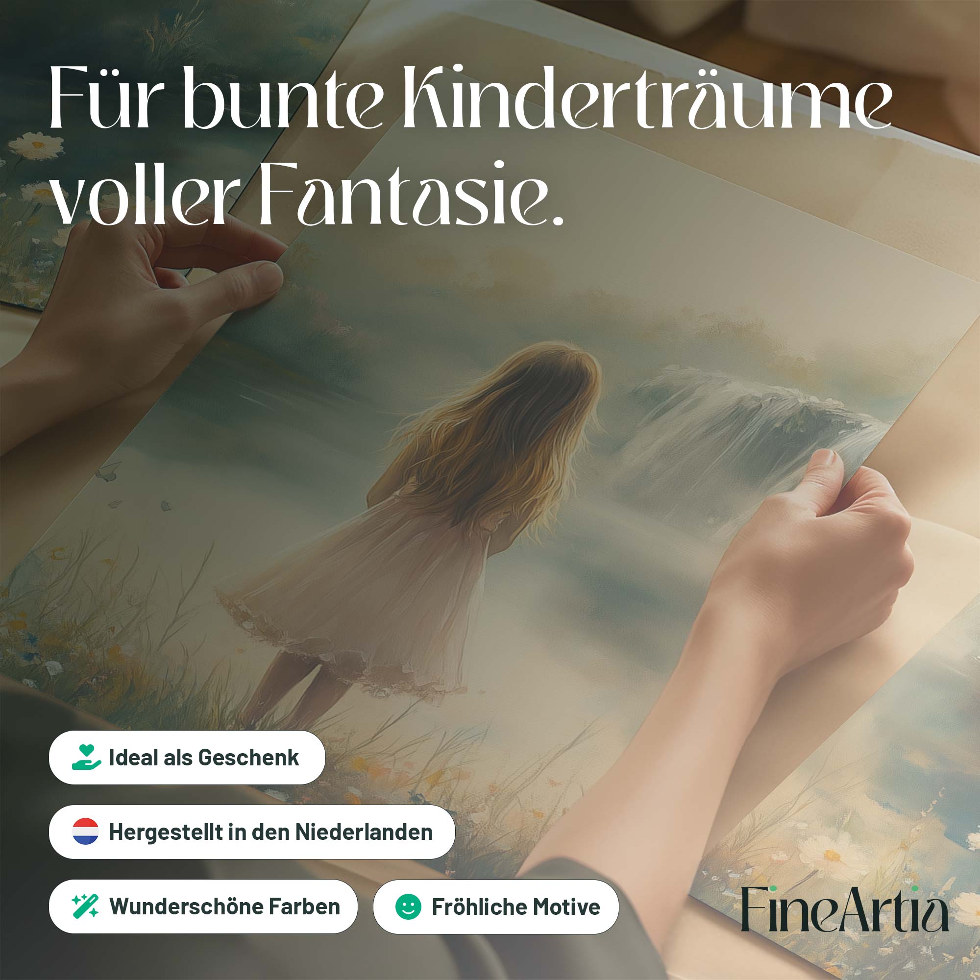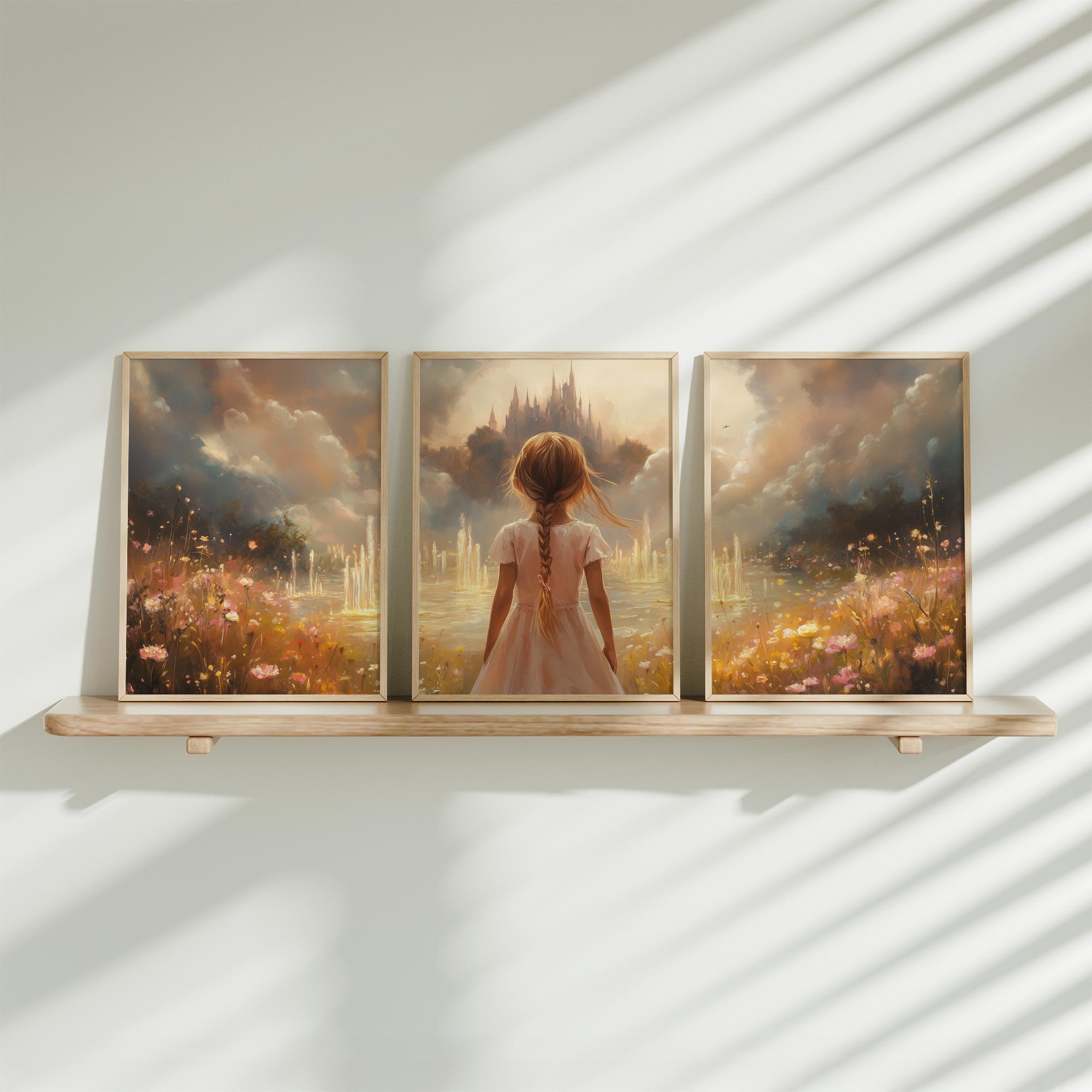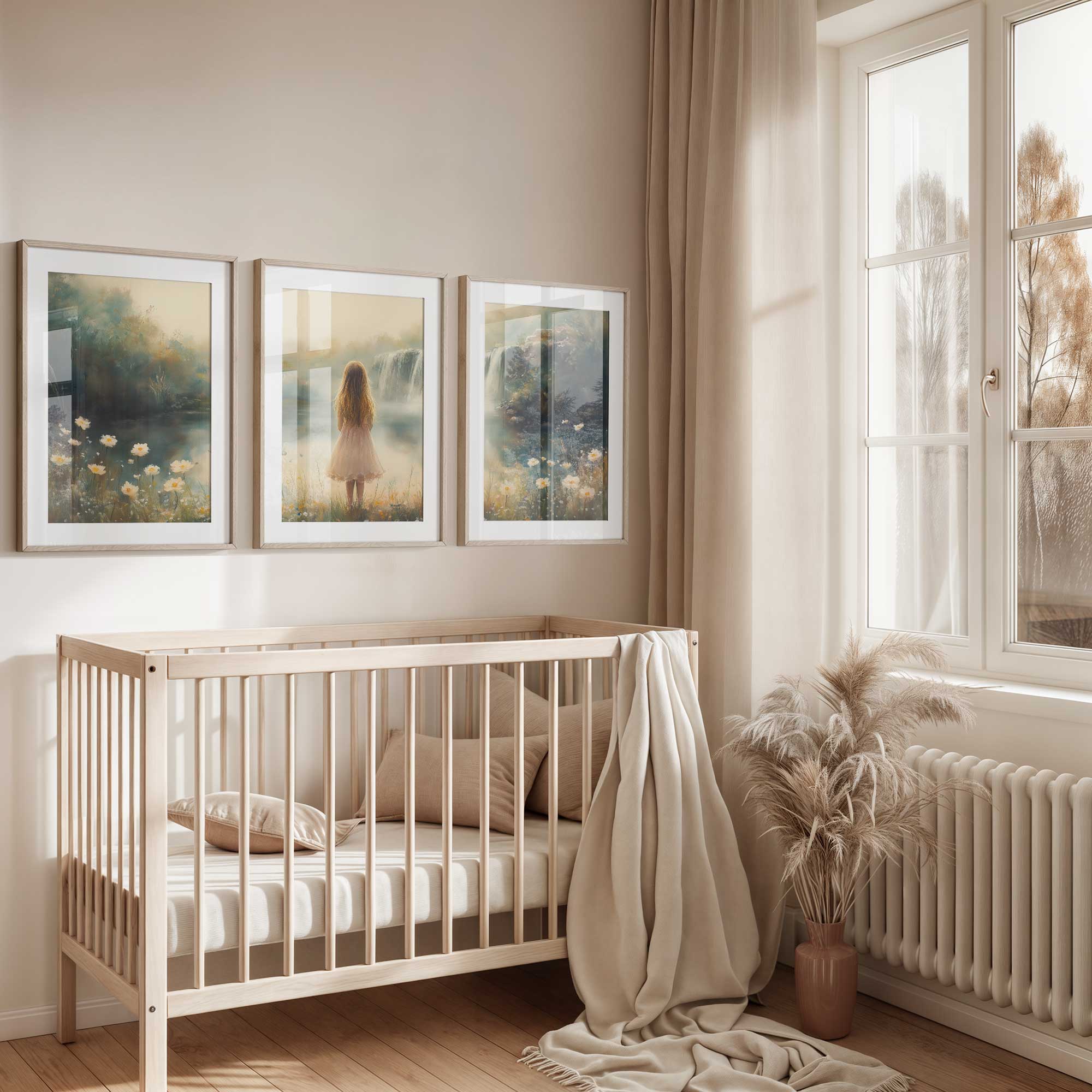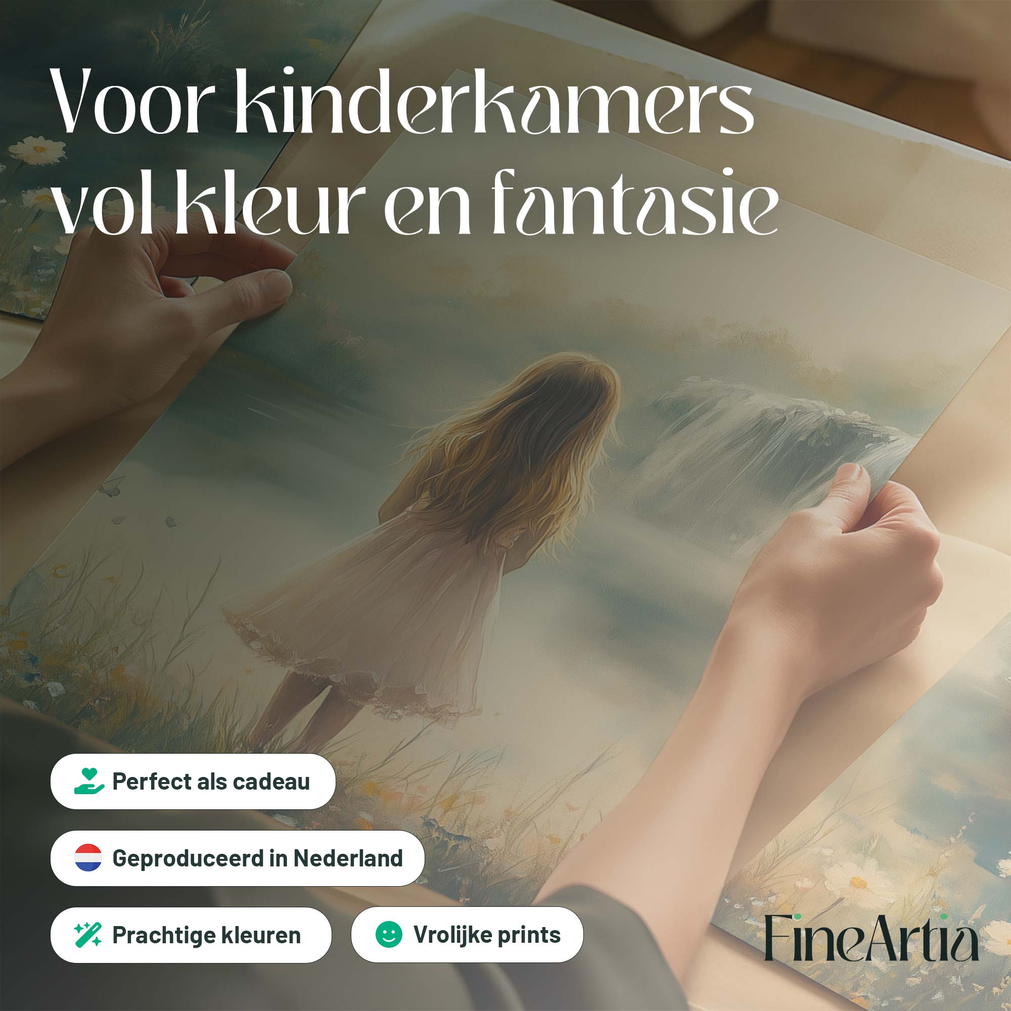 Magisch Meisje in Pastel Bloemenveld bij Waterval