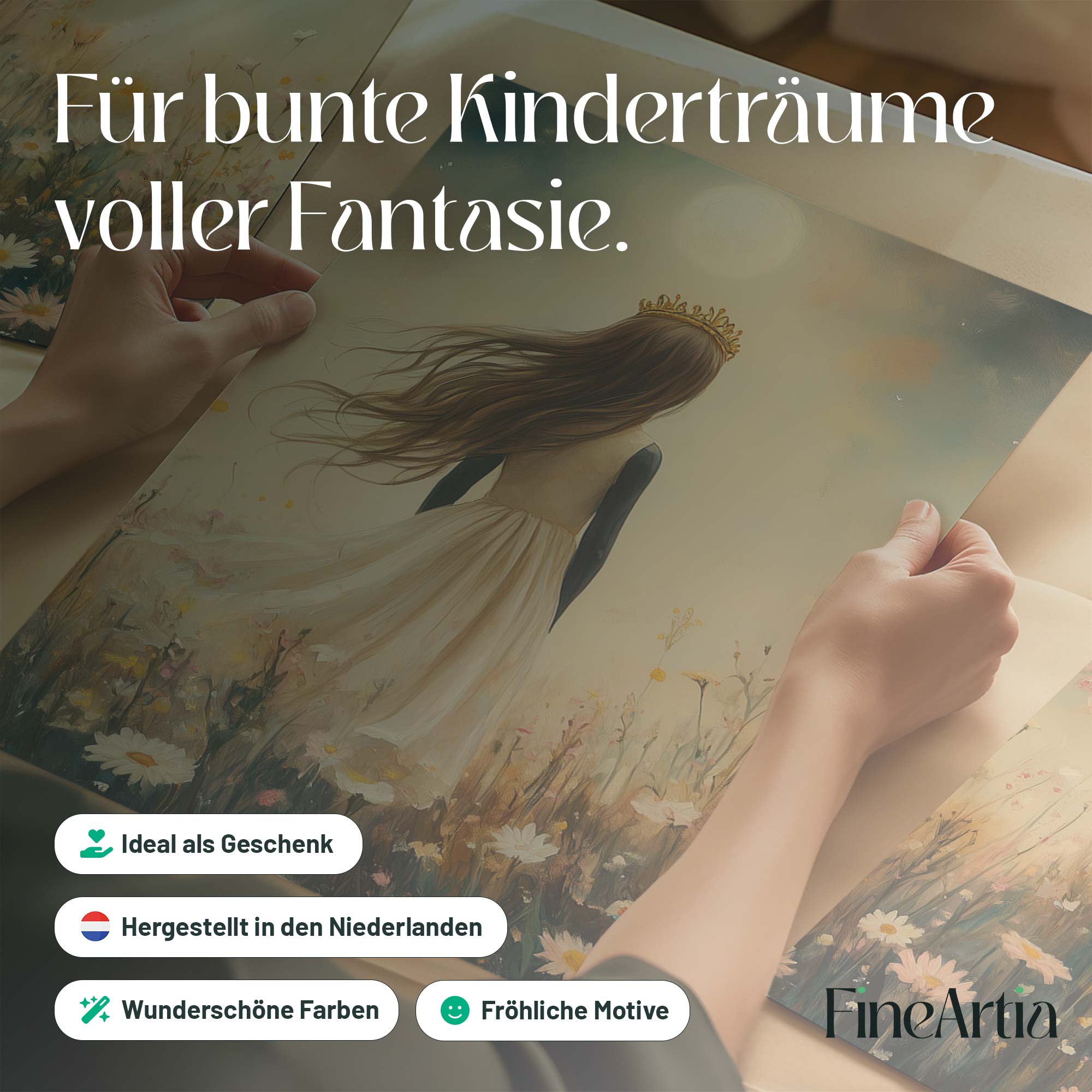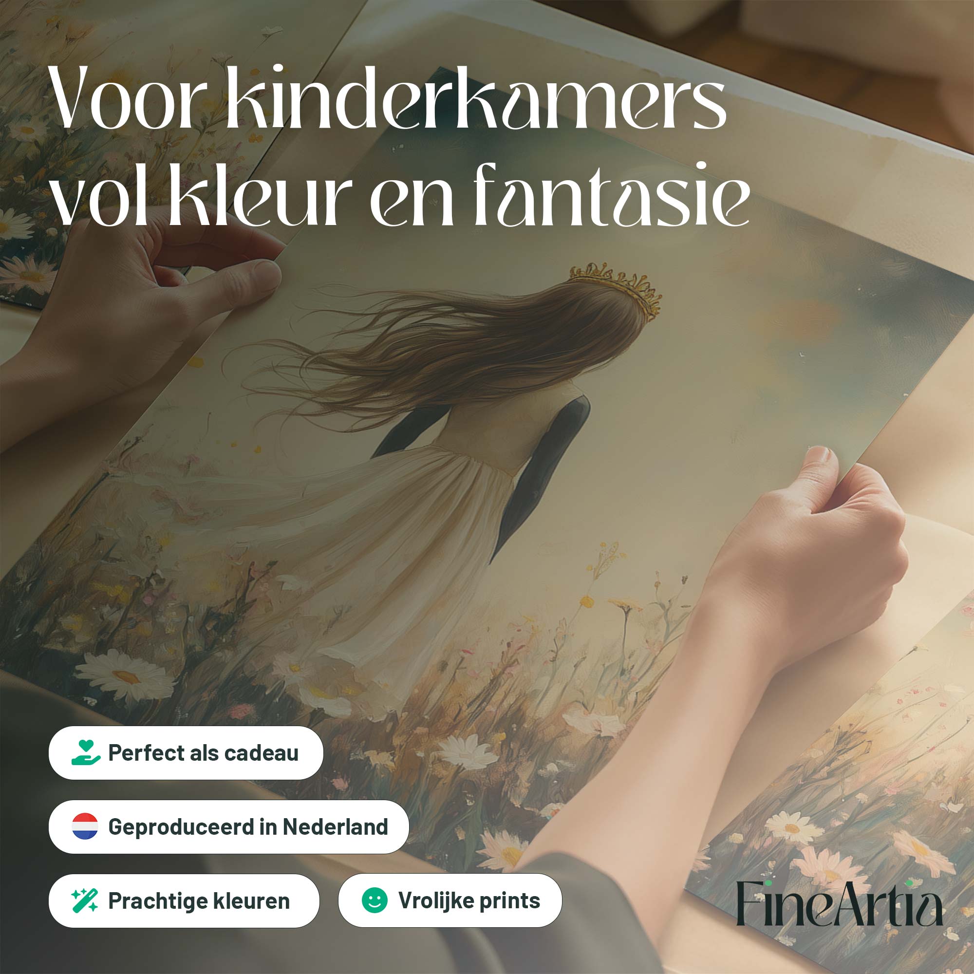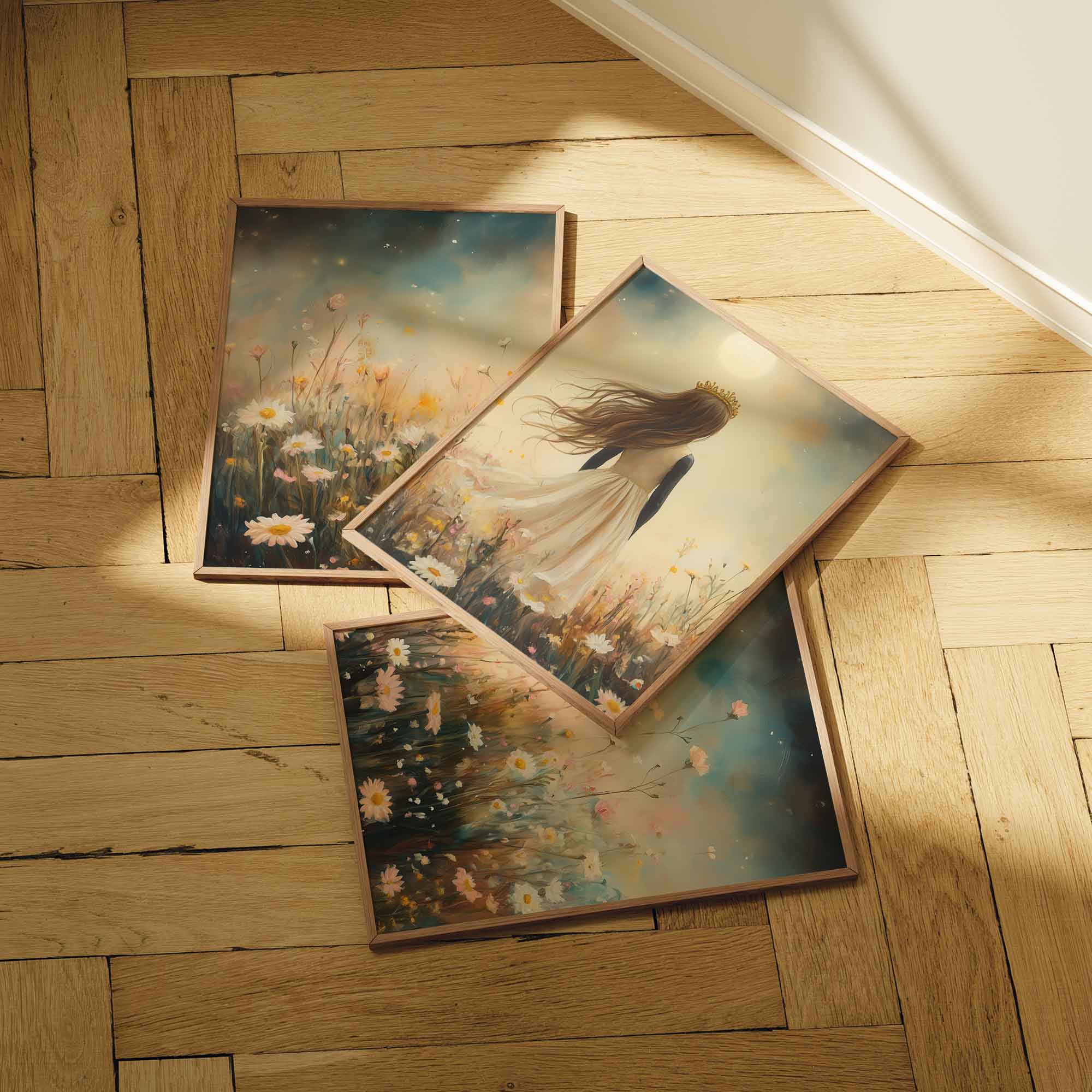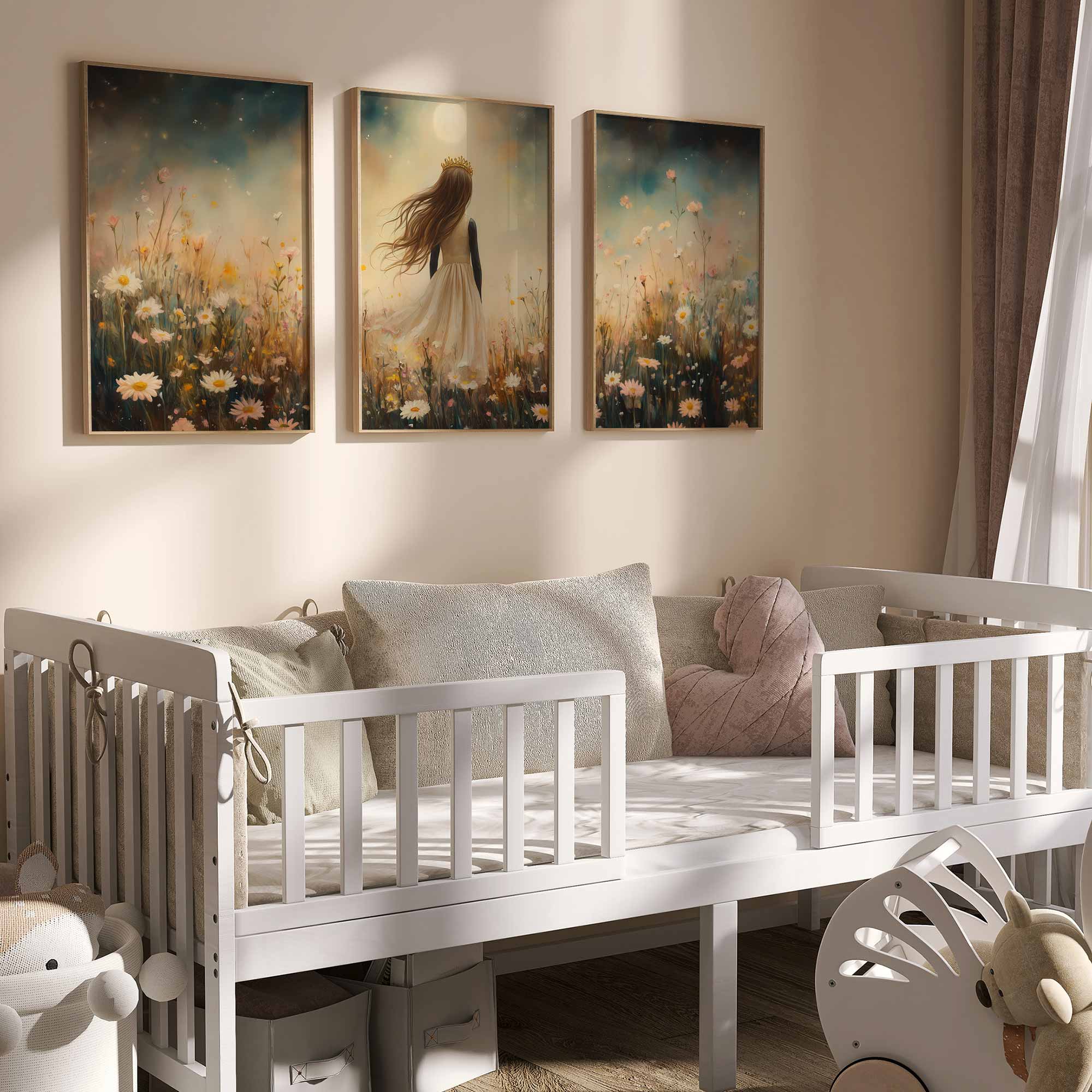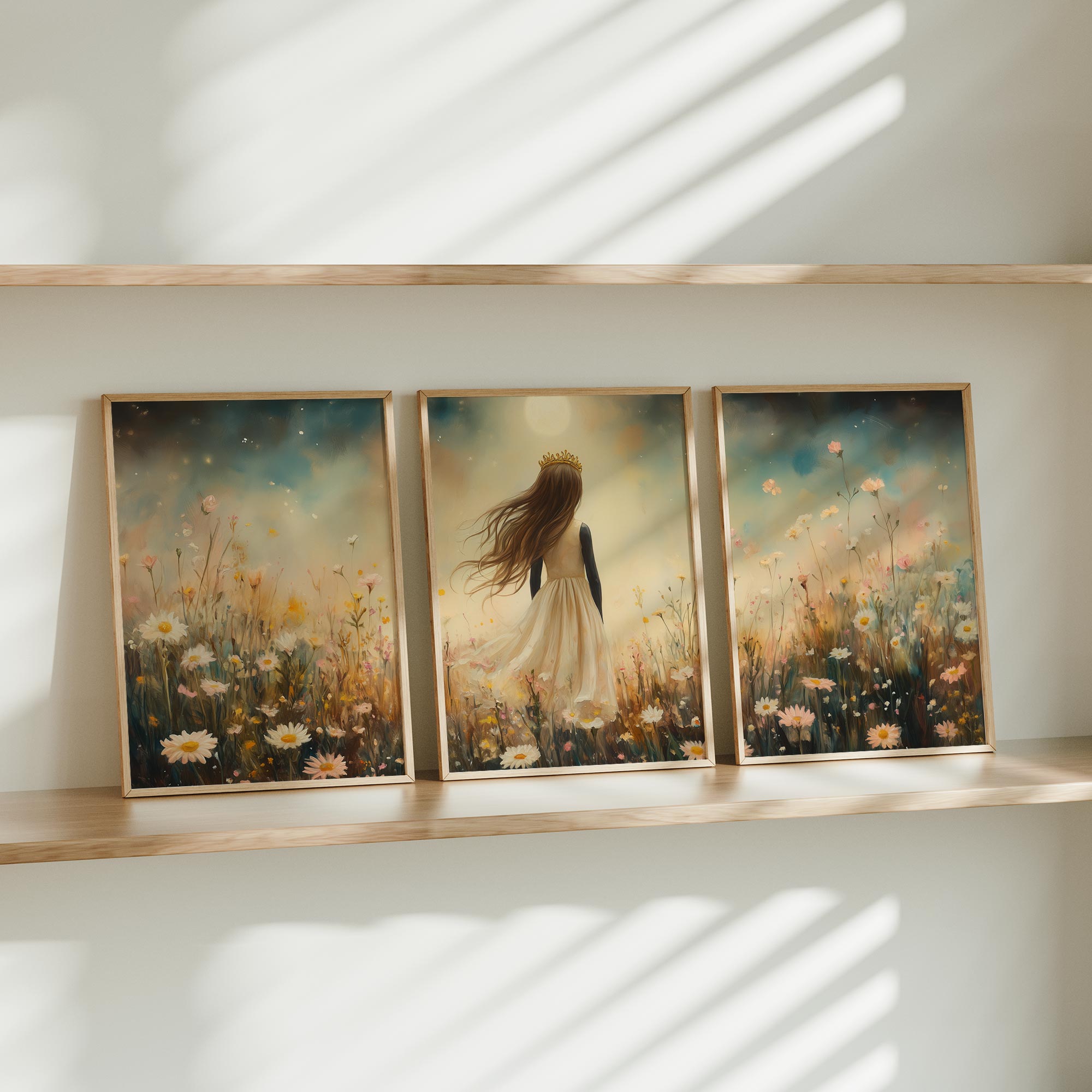 Magisch Meisje met Kroon in Maanlicht en Bloemenveld