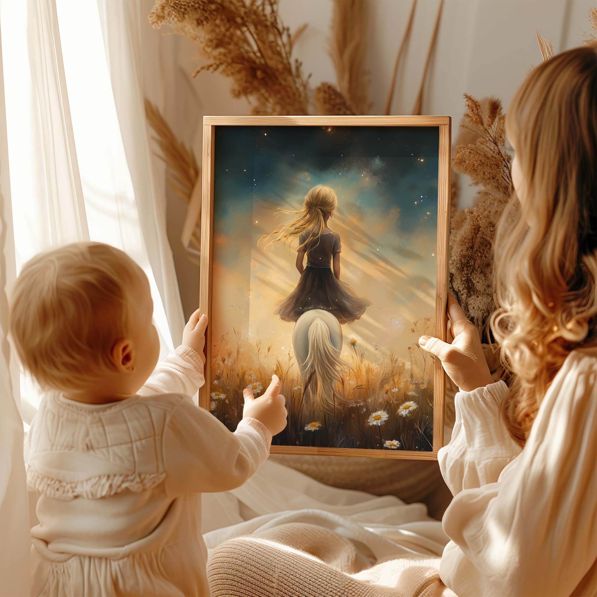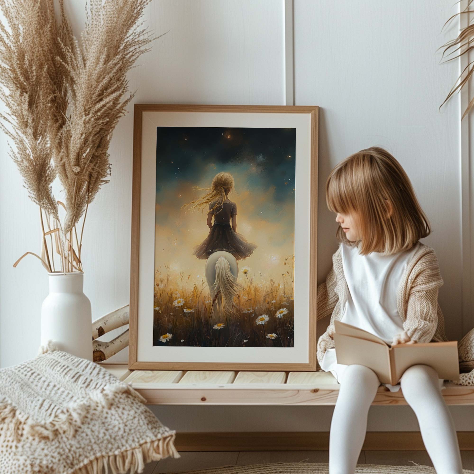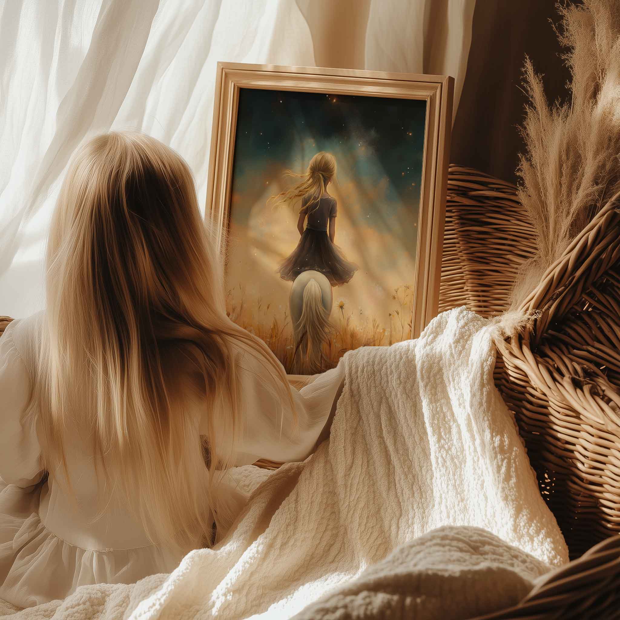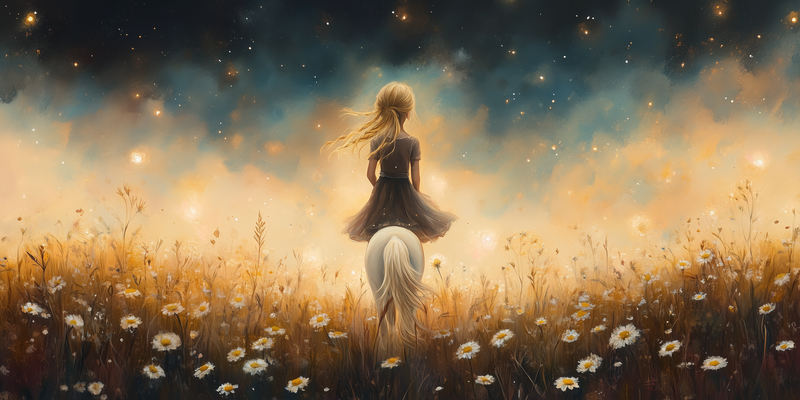 Magisch Meisje met Paard onder Sterrenhemel