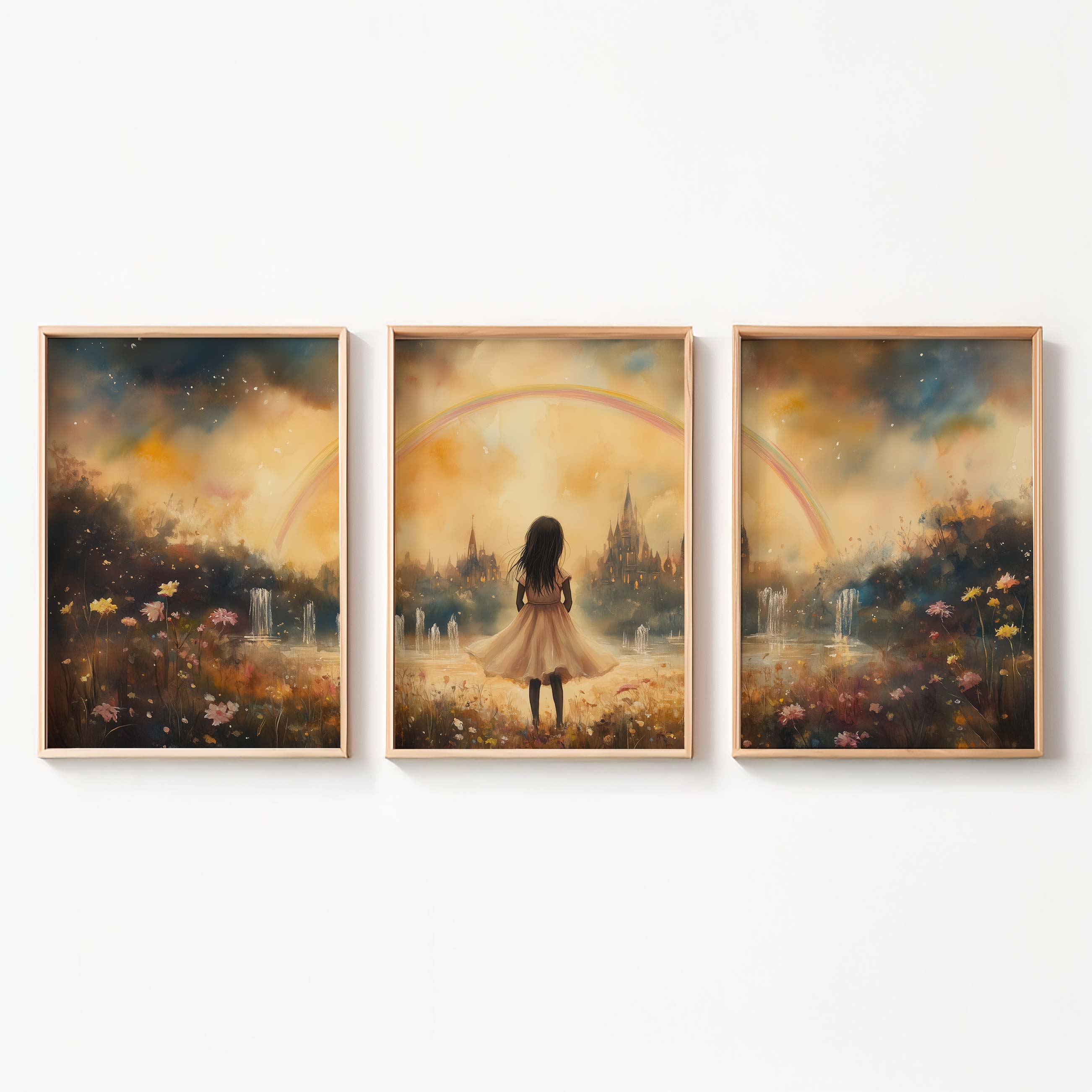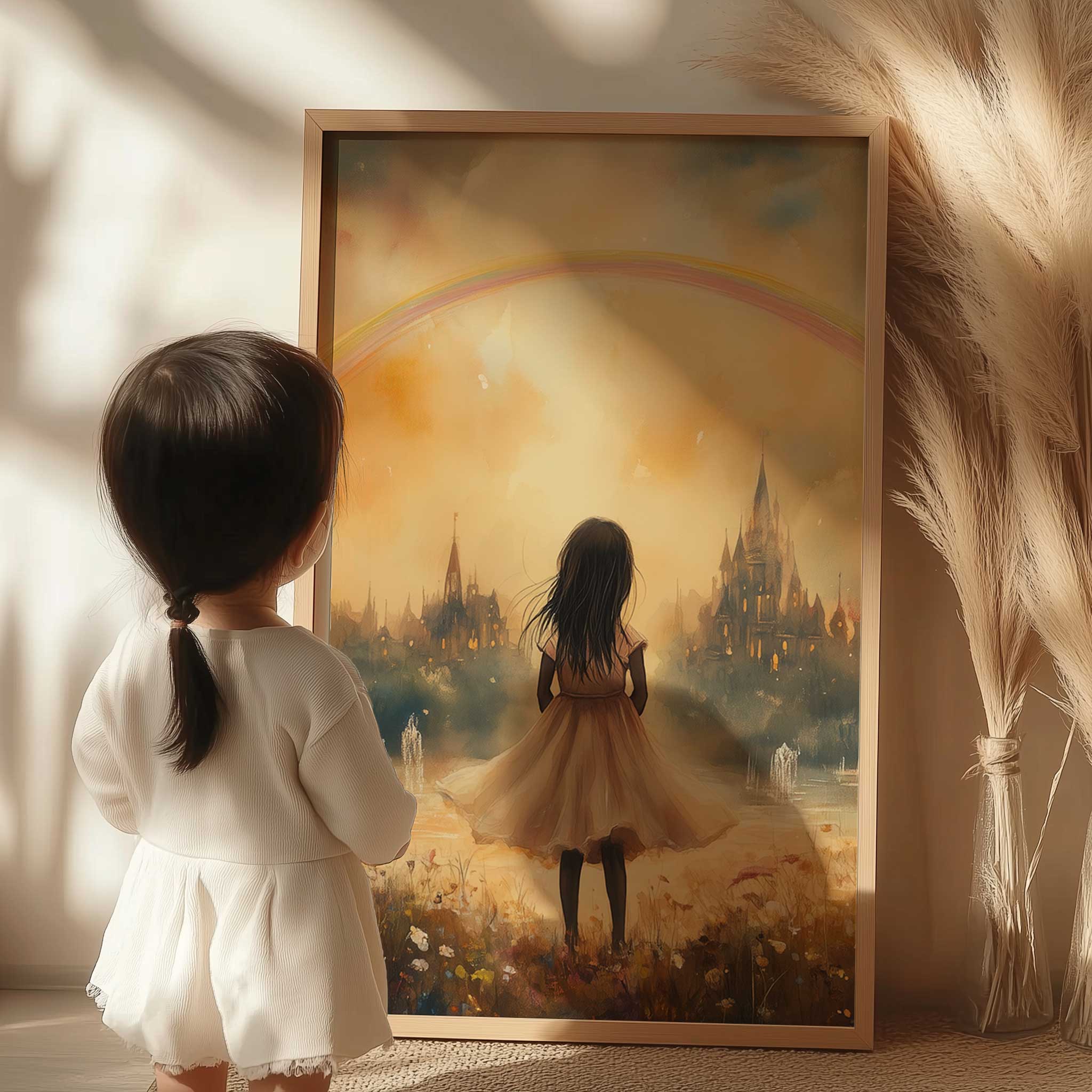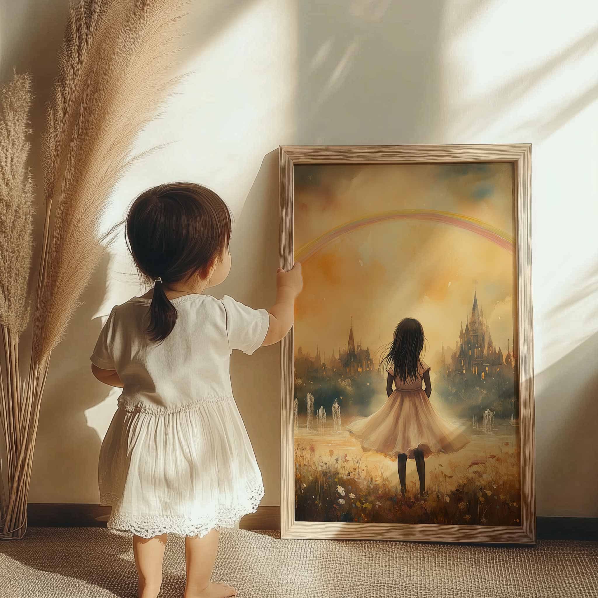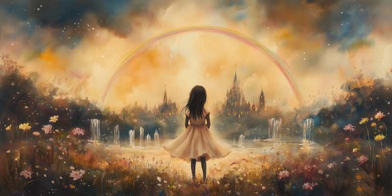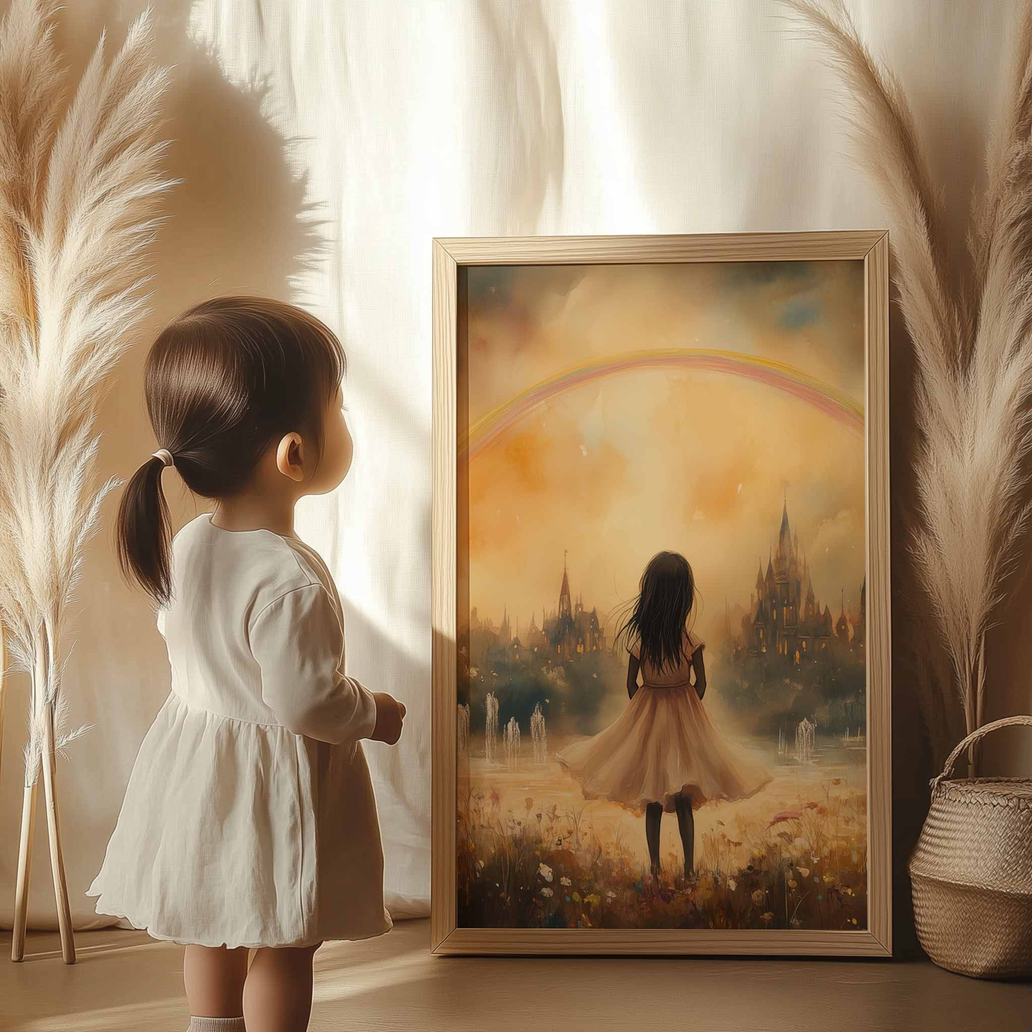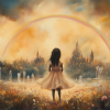 Magisch Meisje onder de Regenboog – Dromerig Pastel Schilderij