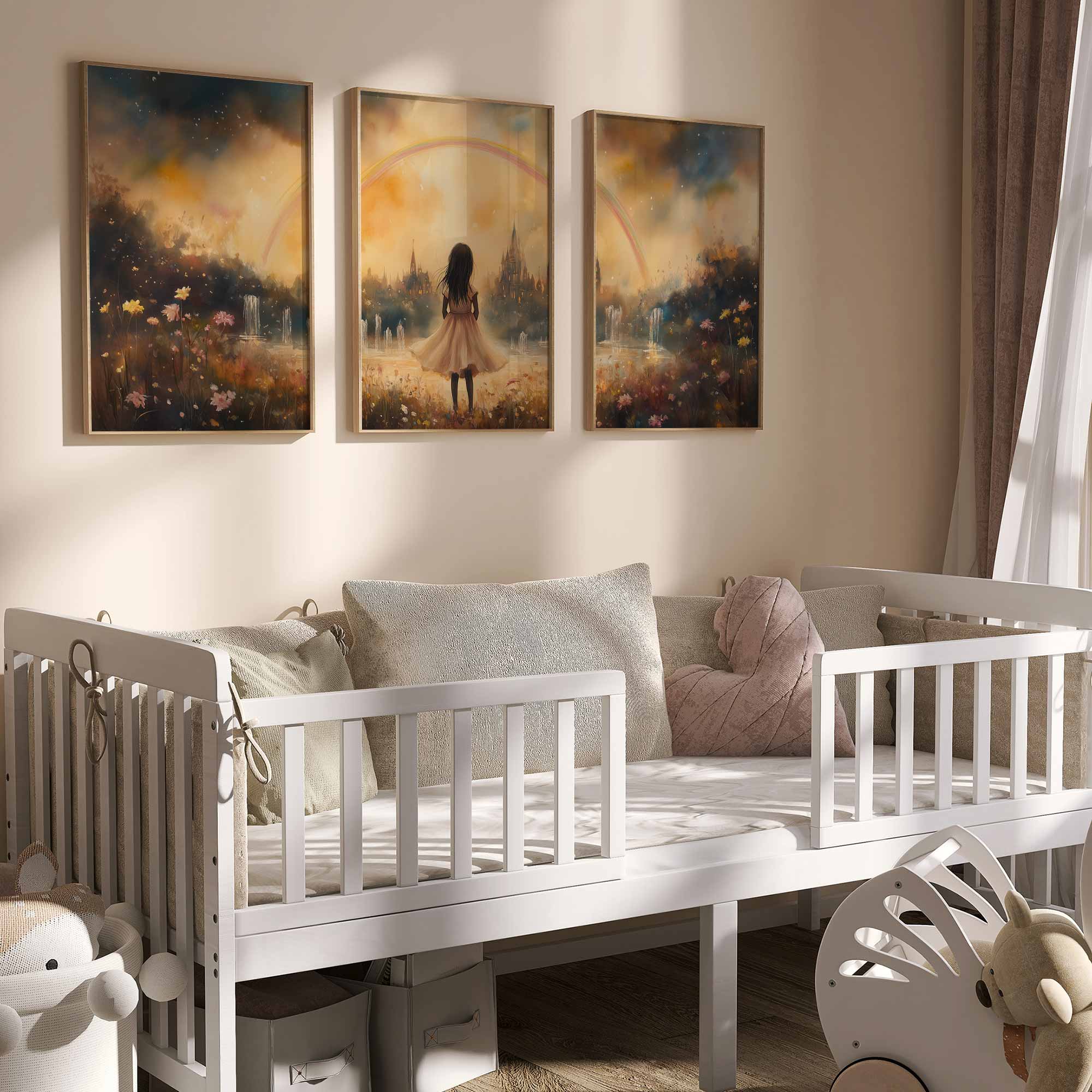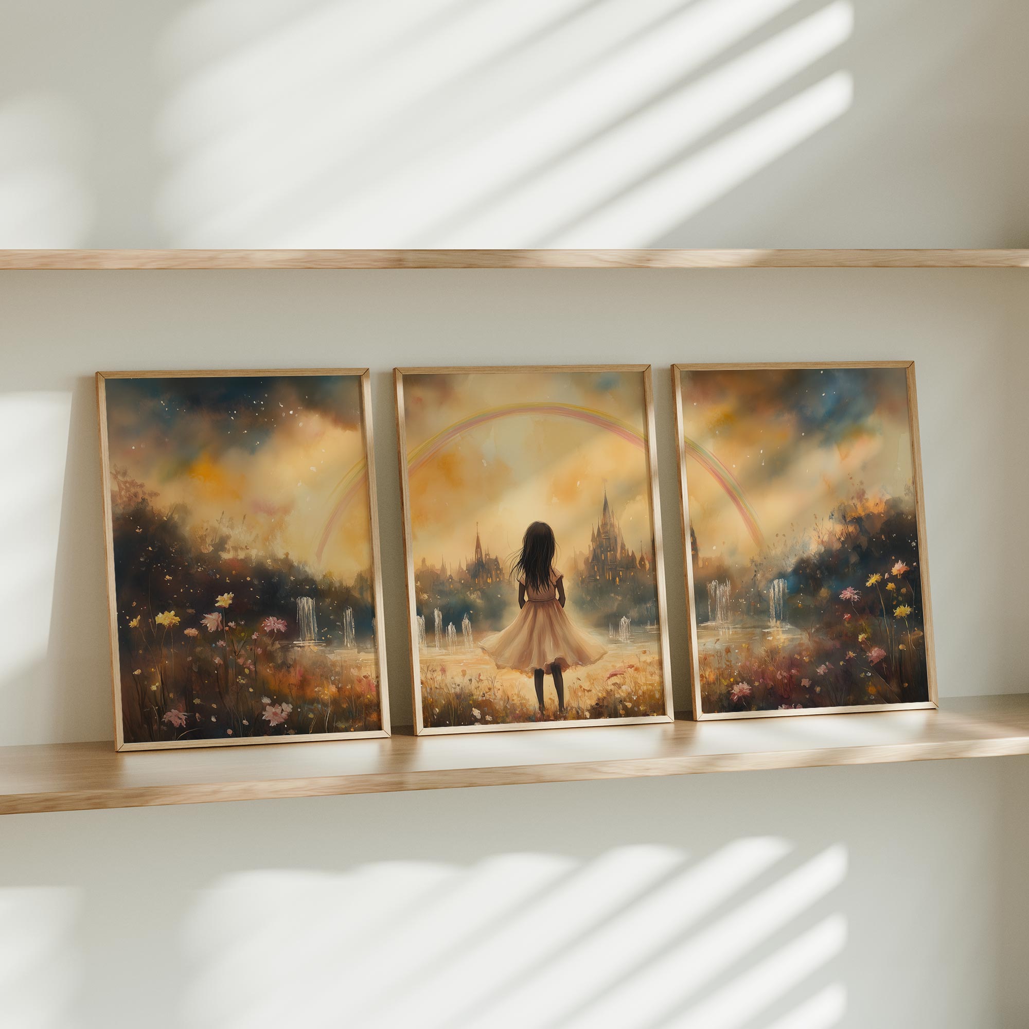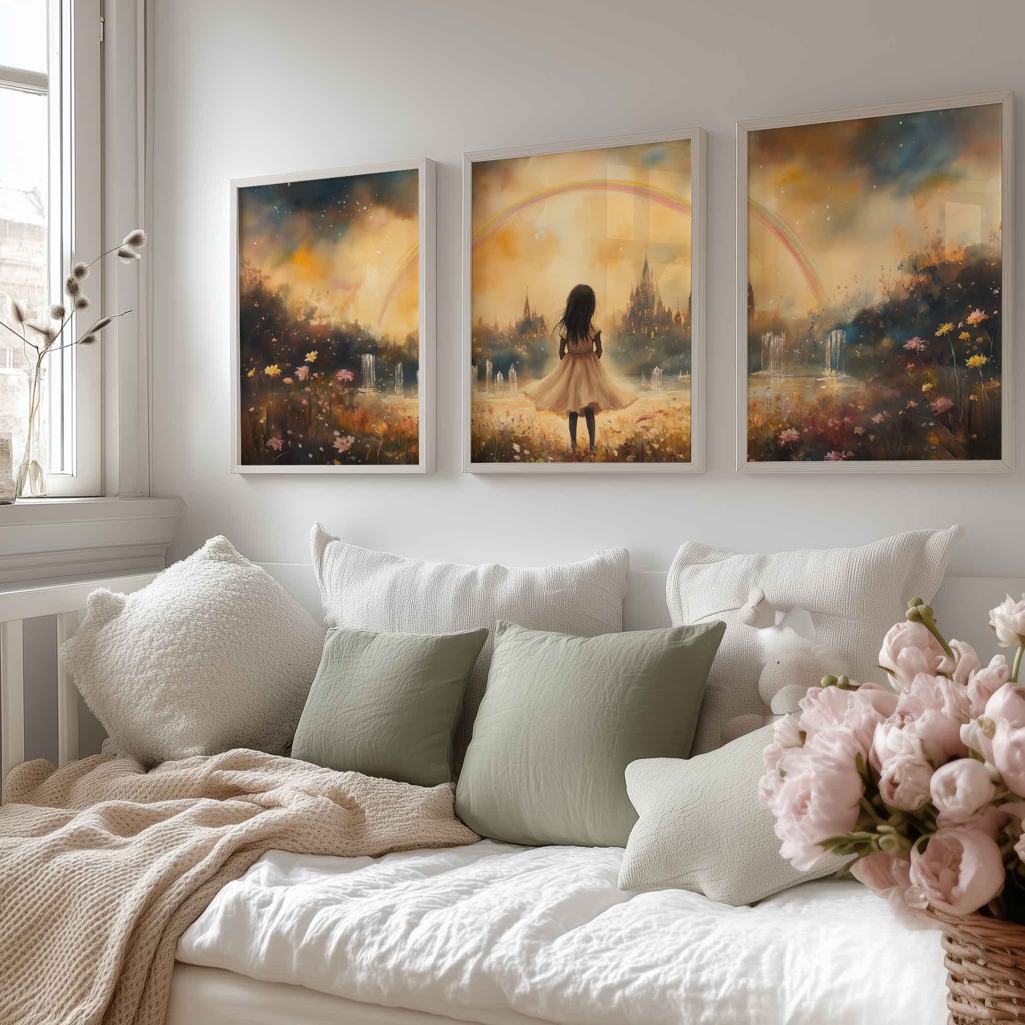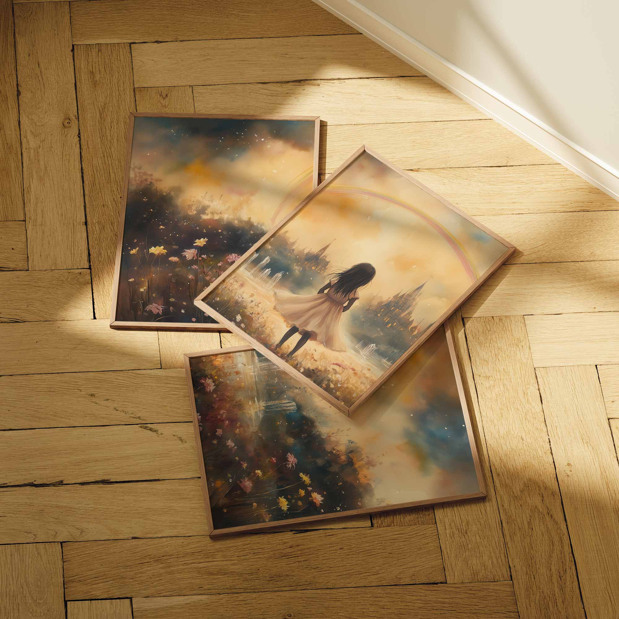 Magisch Meisje onder de Regenboog – Dromerig Pastel Schilderij