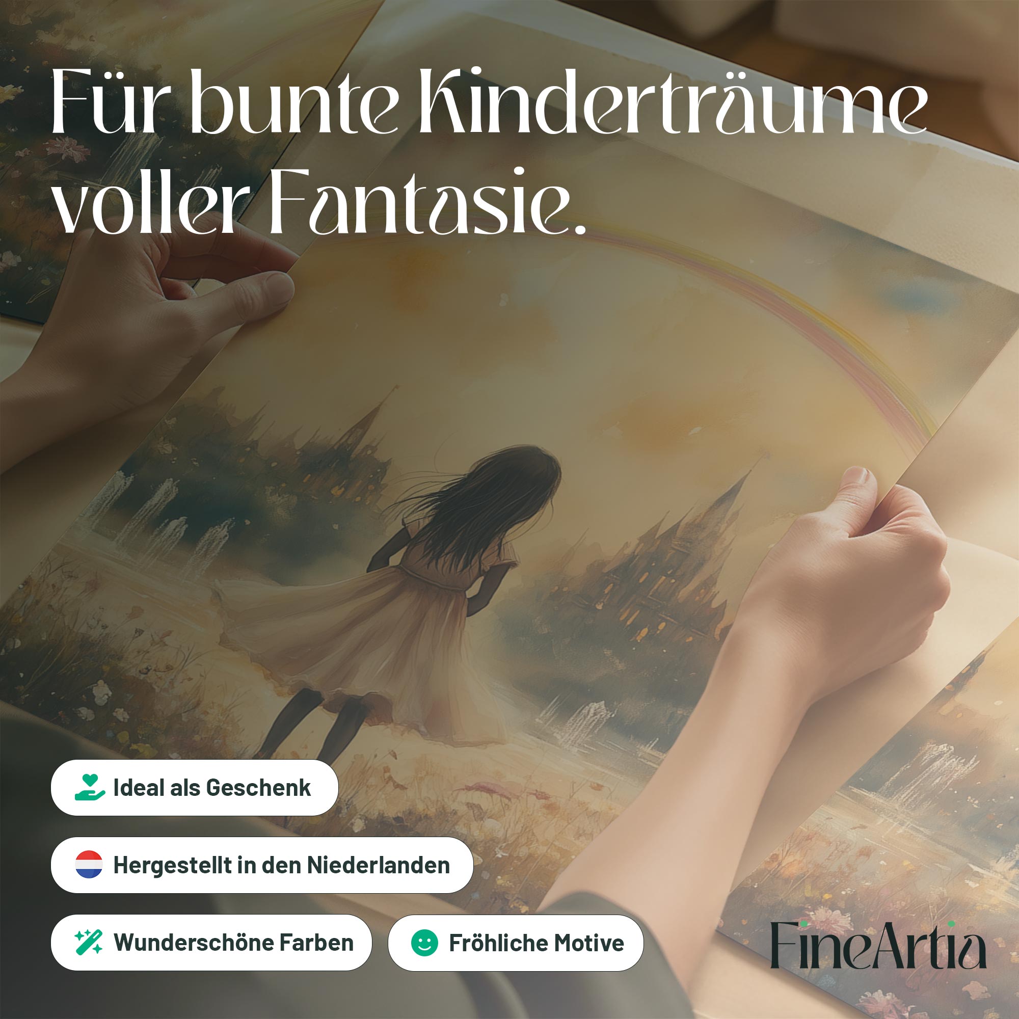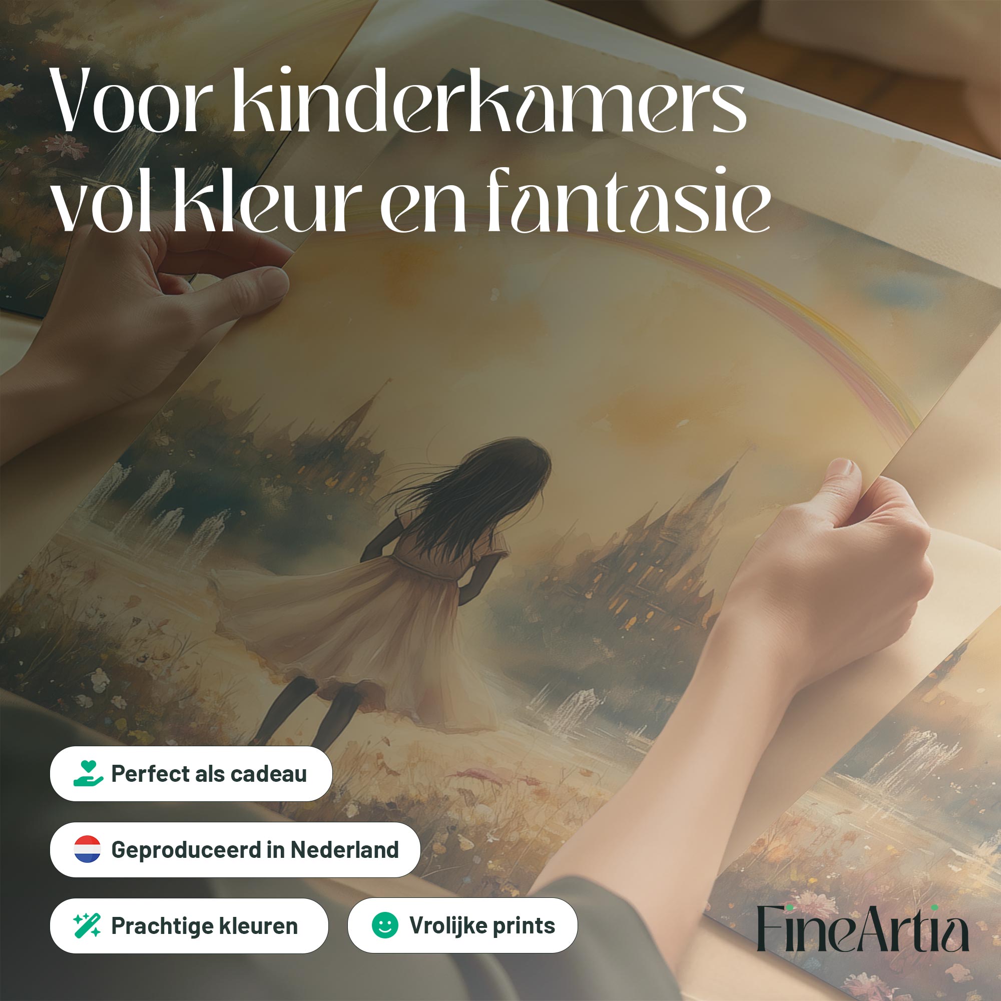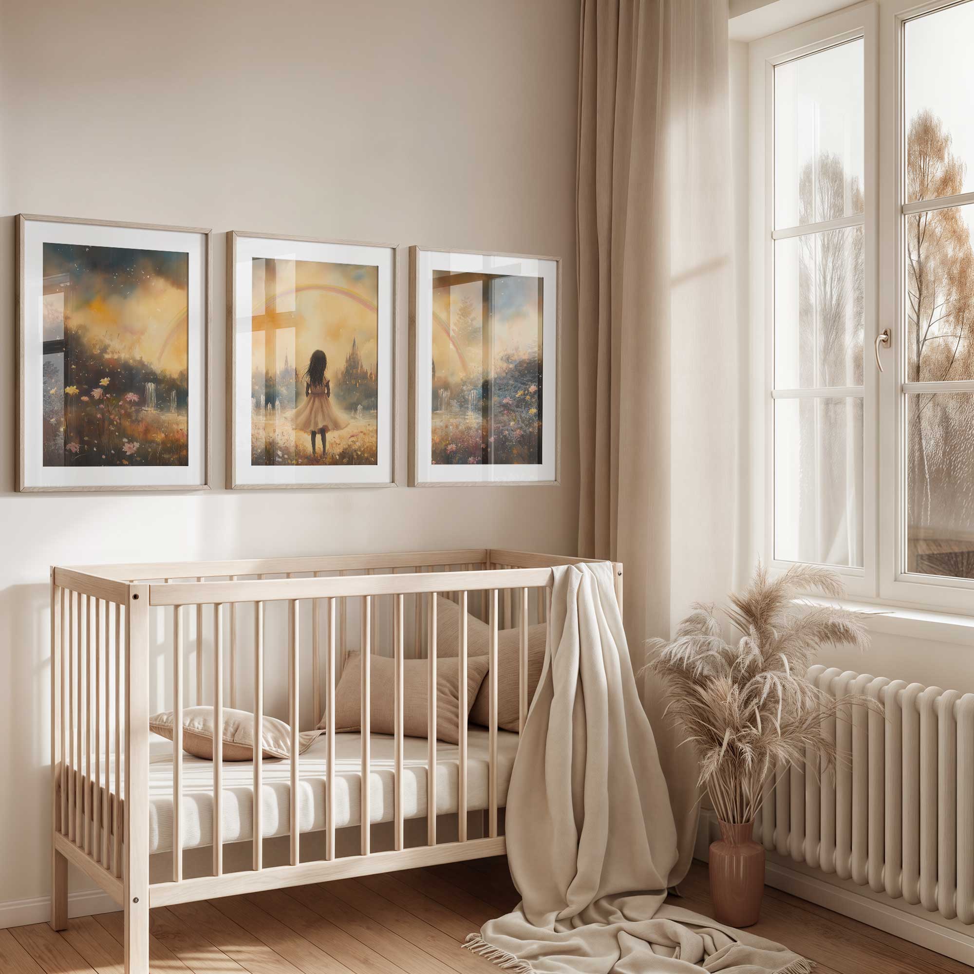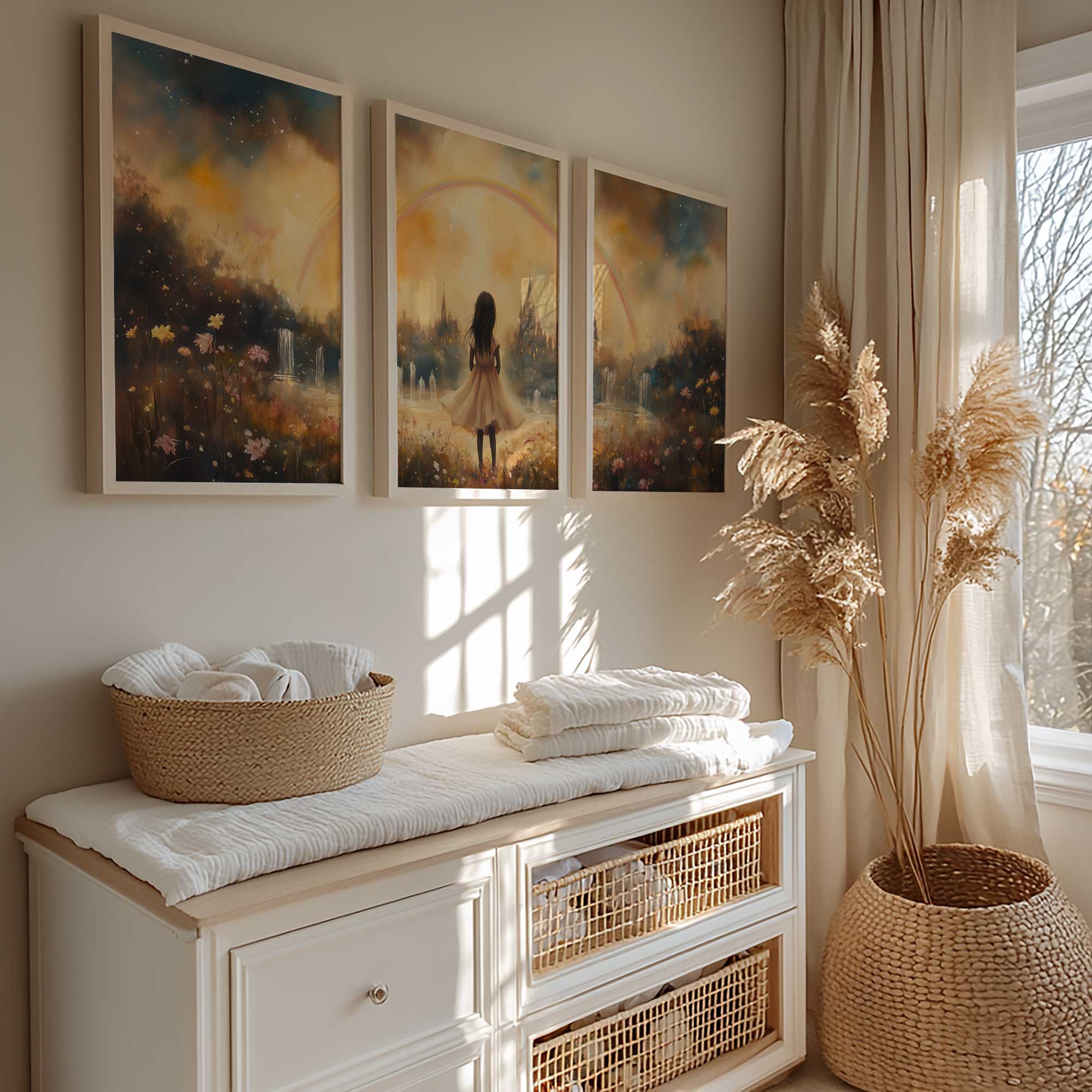Magisch Meisje onder de Regenboog – Dromerig Pastel Schilderij