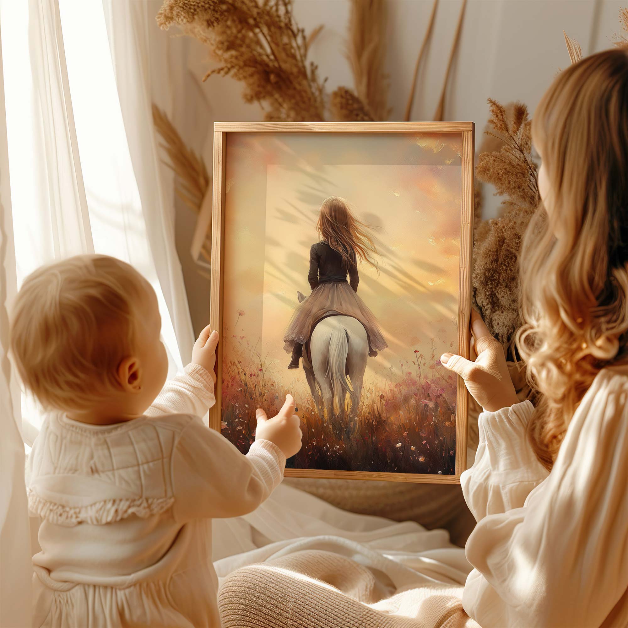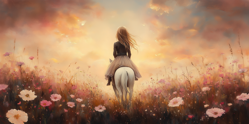 Magisch Meisje op Paard in Bloemenveld
