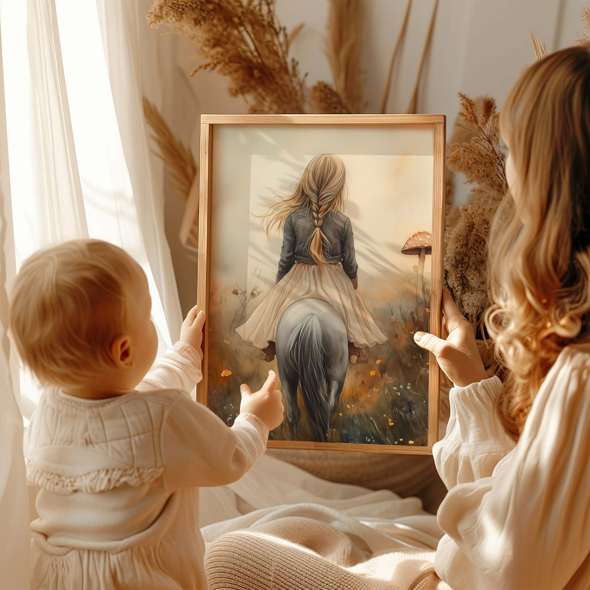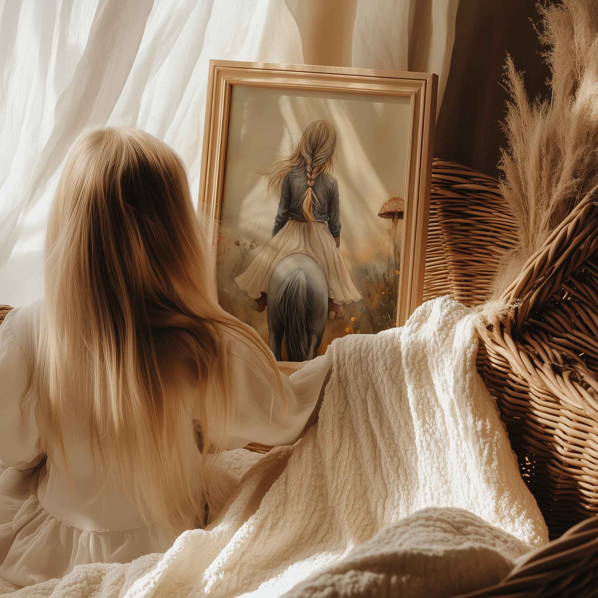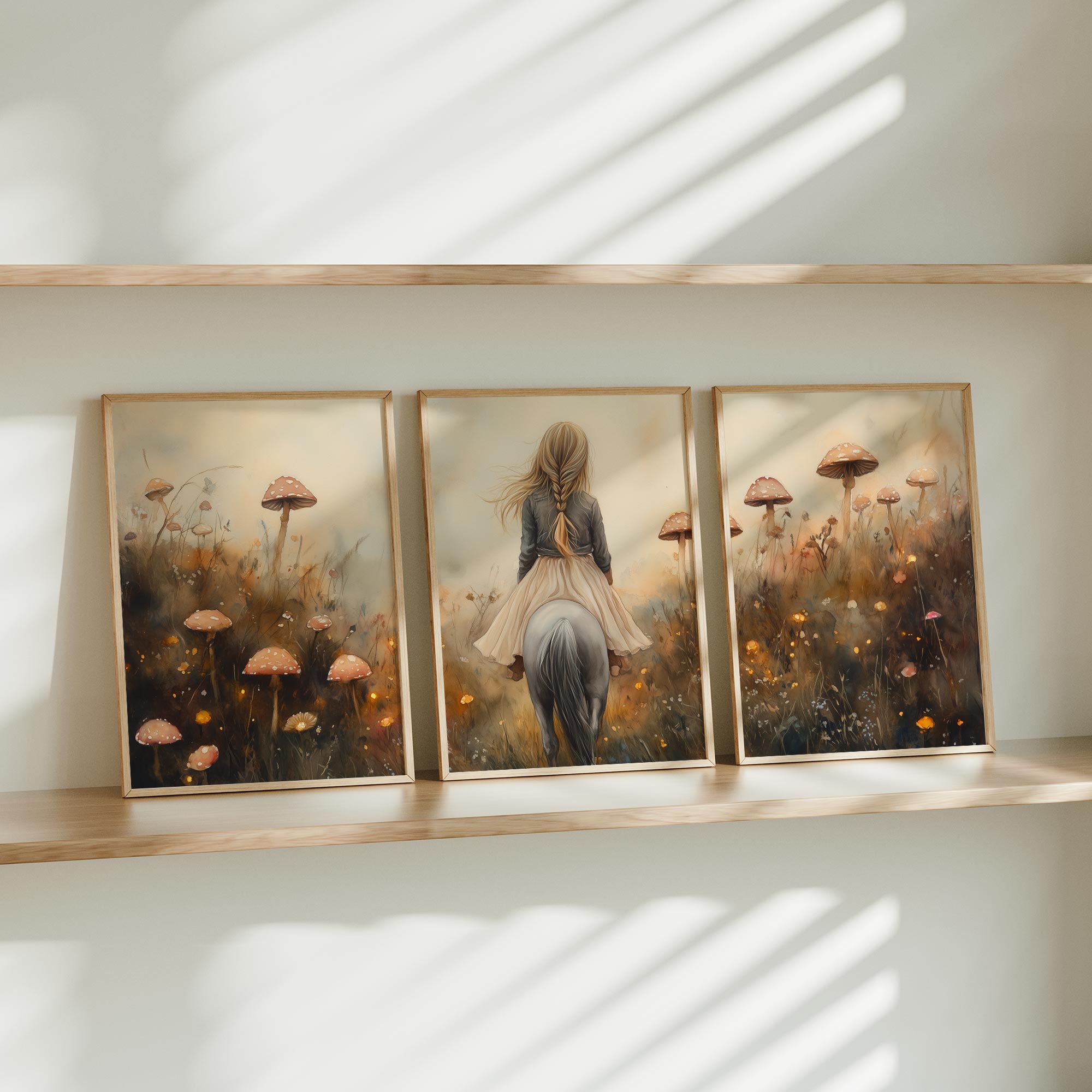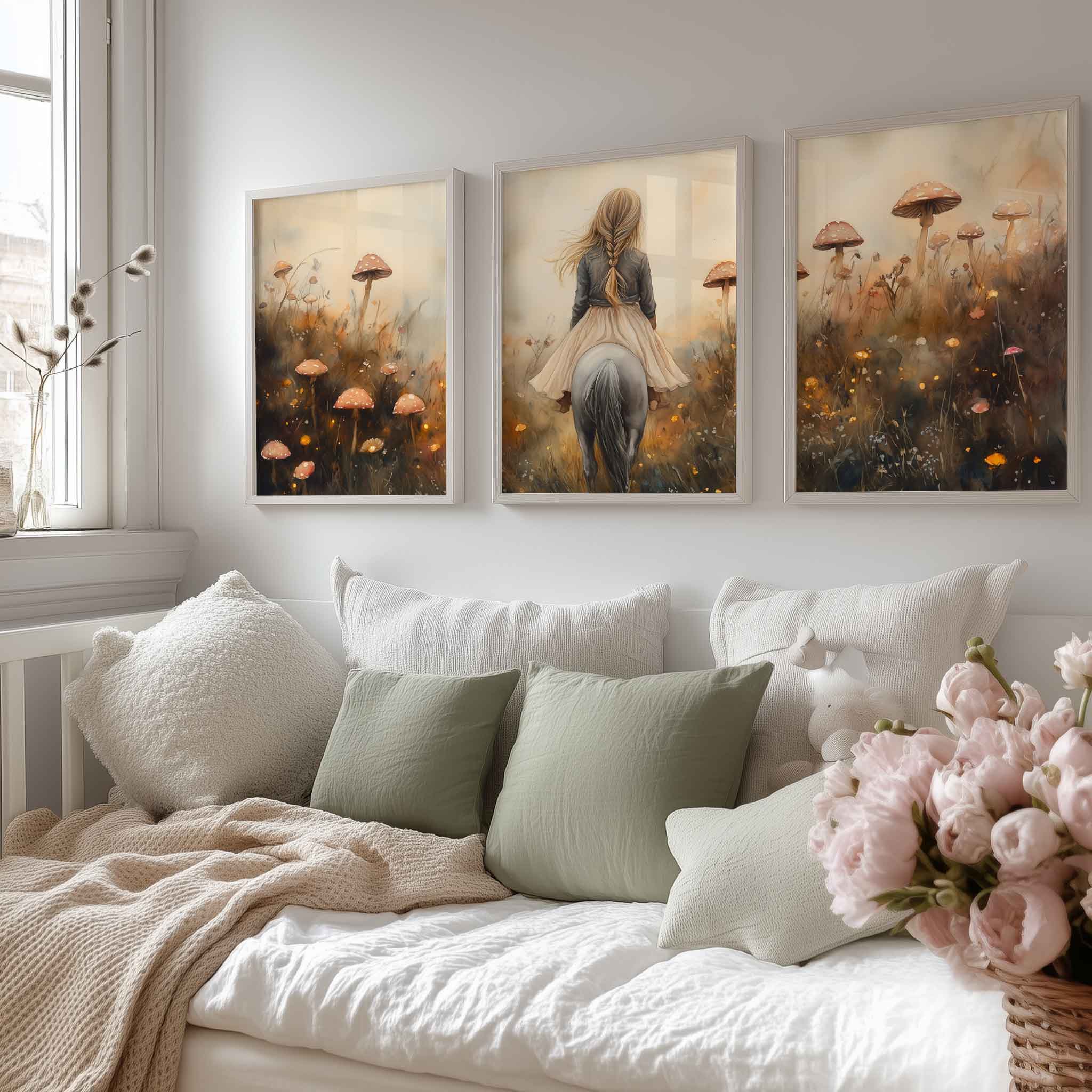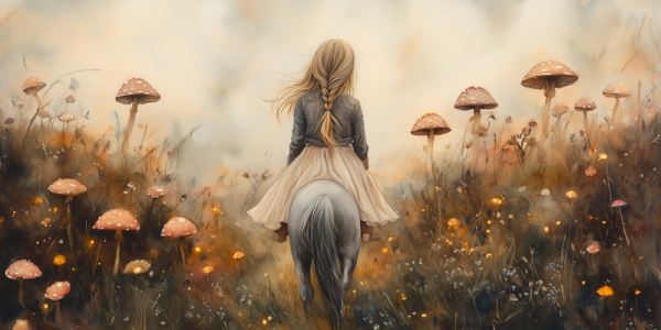 Magisch Meisje op Paard tussen Betoverende Paddenstoelen