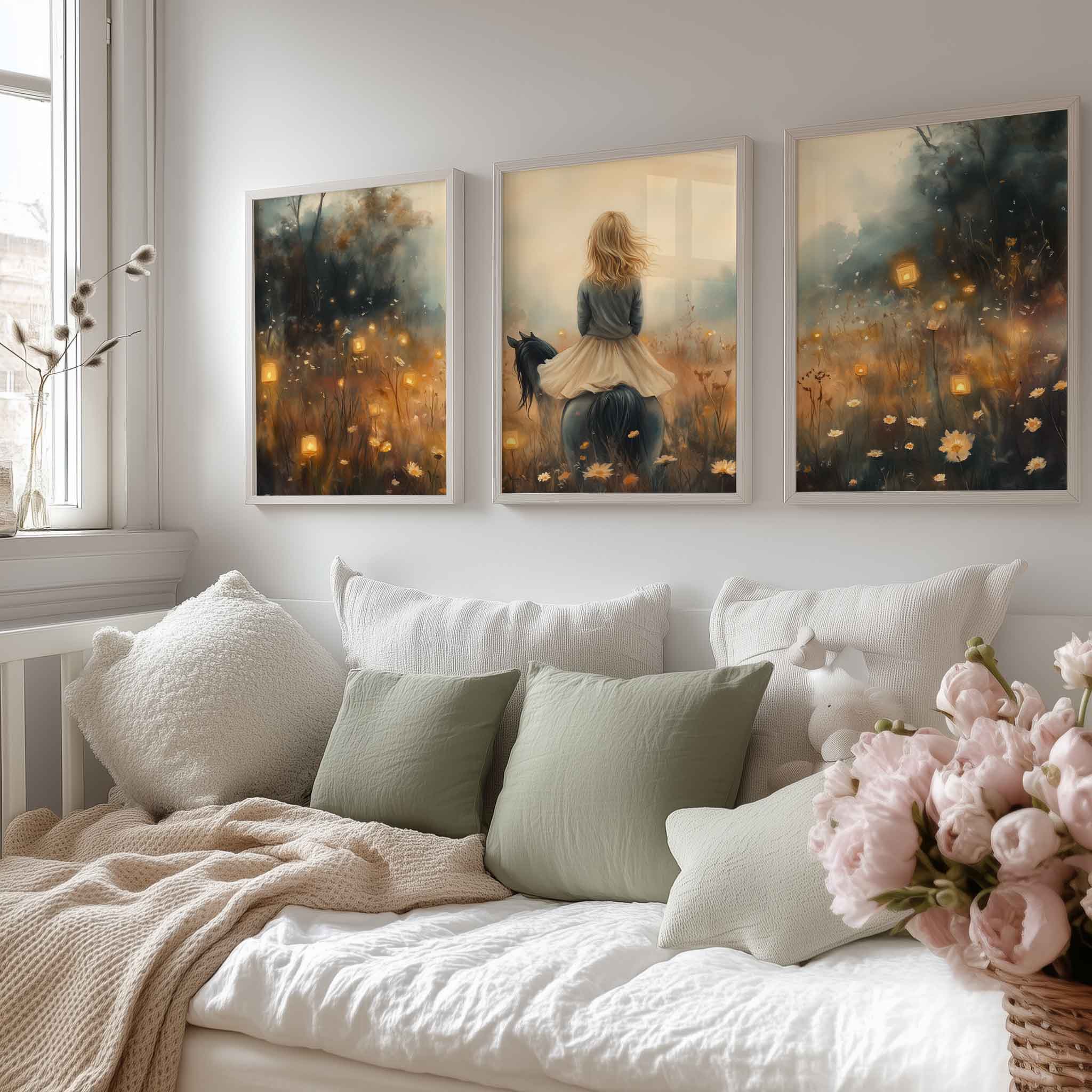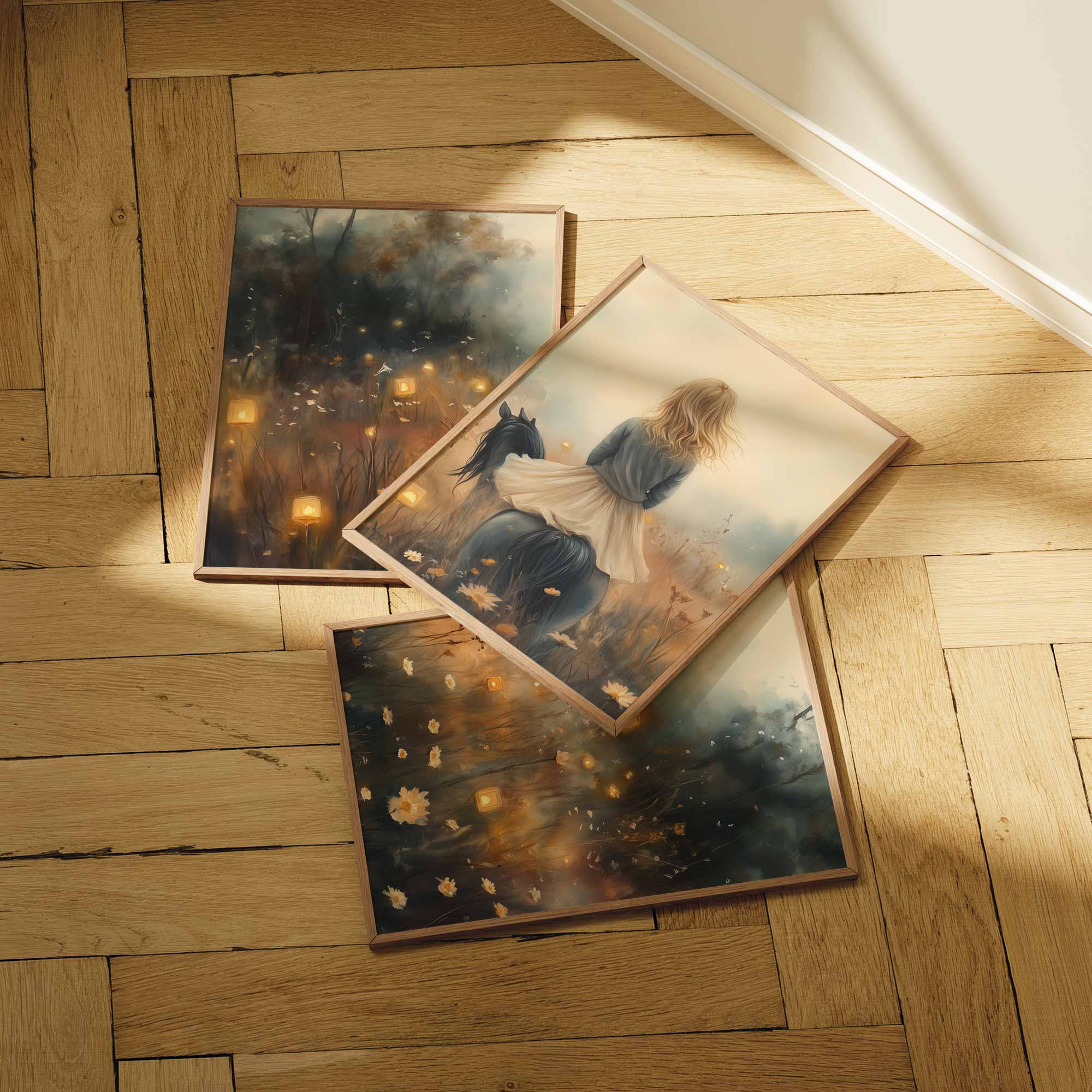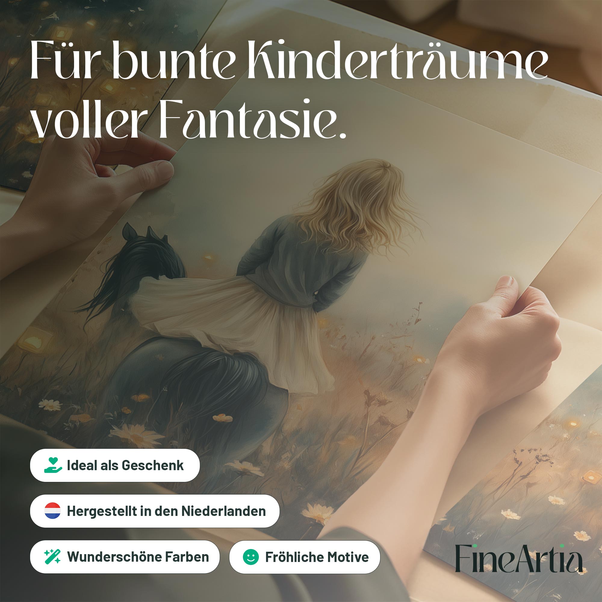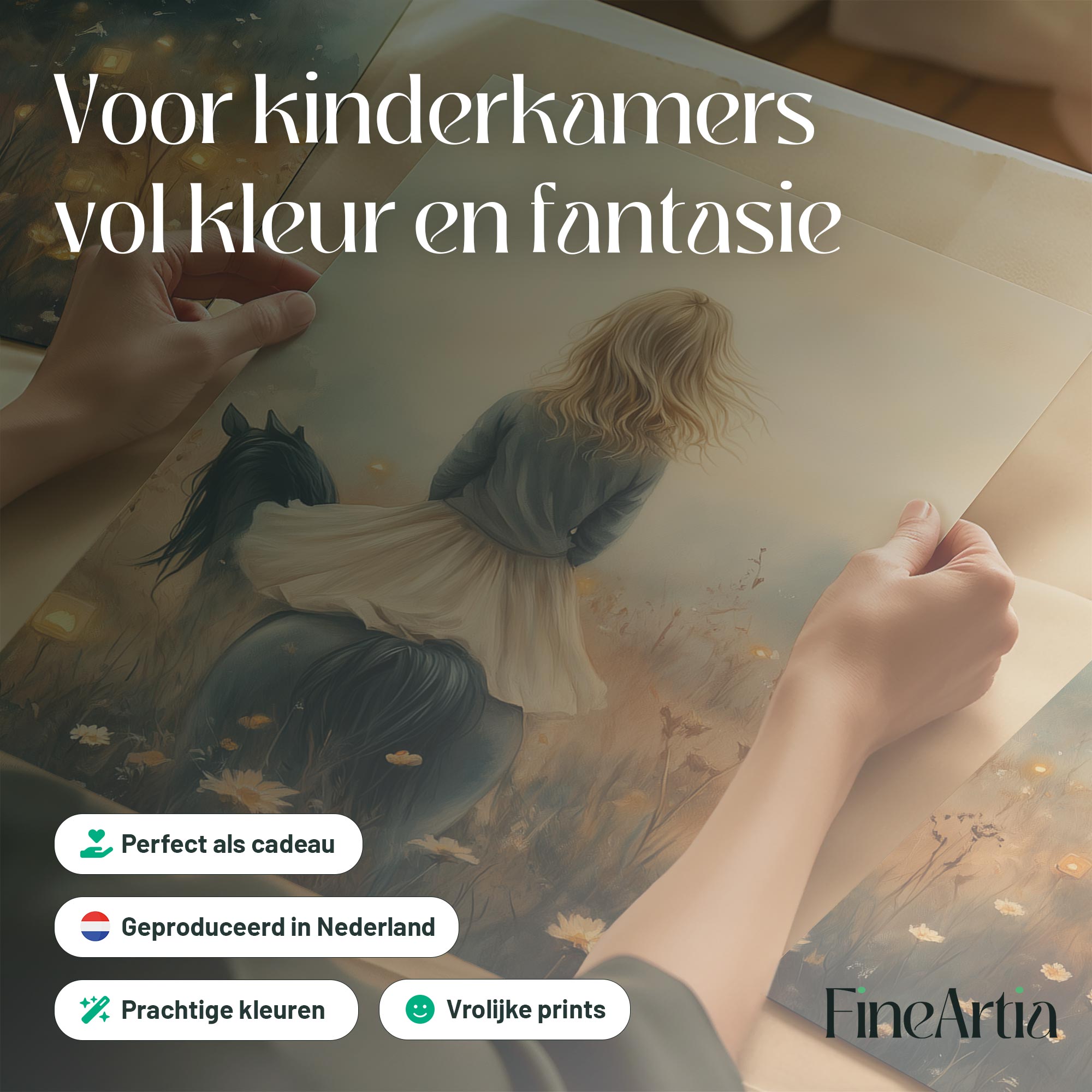 Terug naar collectie Posters Magisch Meisje op Paard tussen Bloemen en Lantaarns