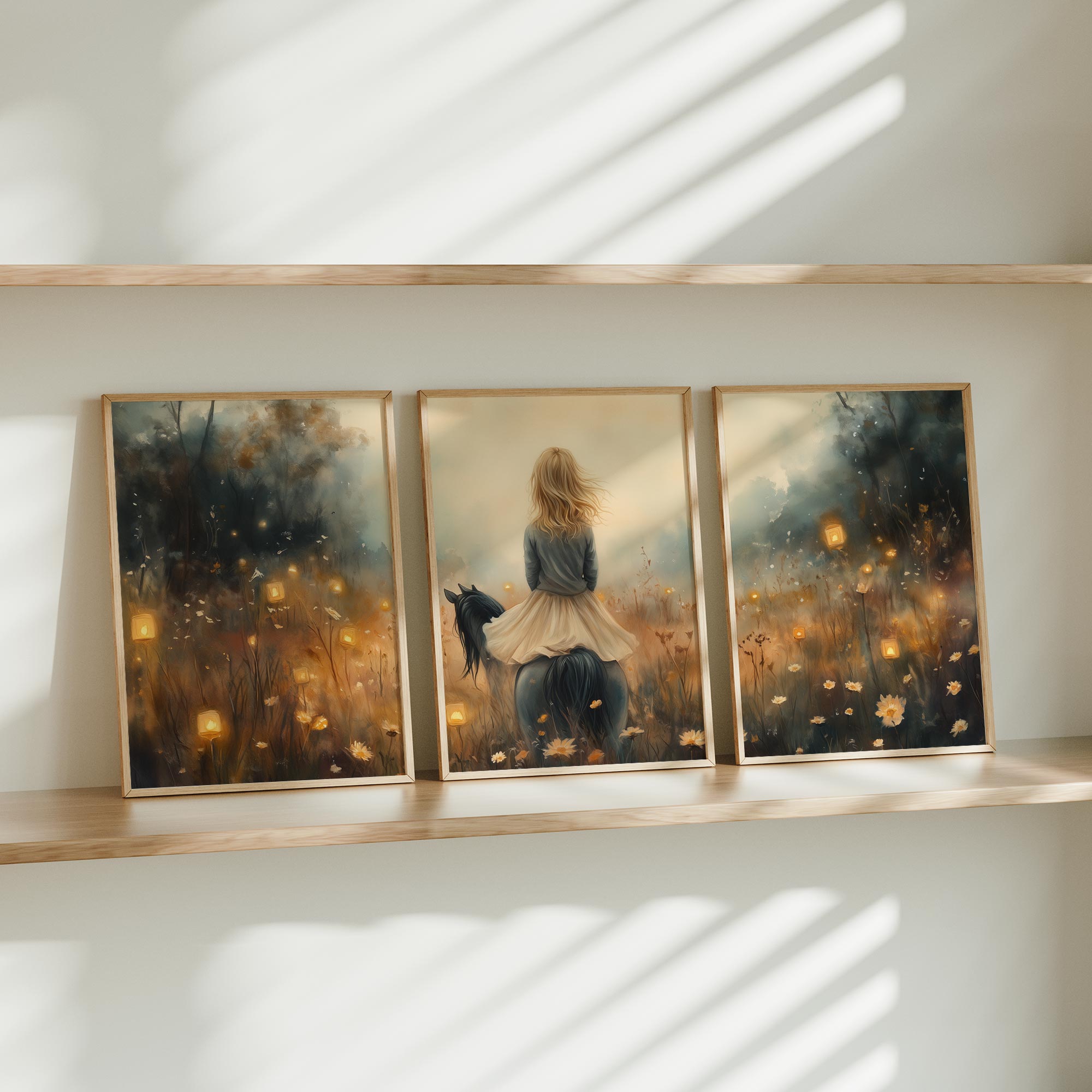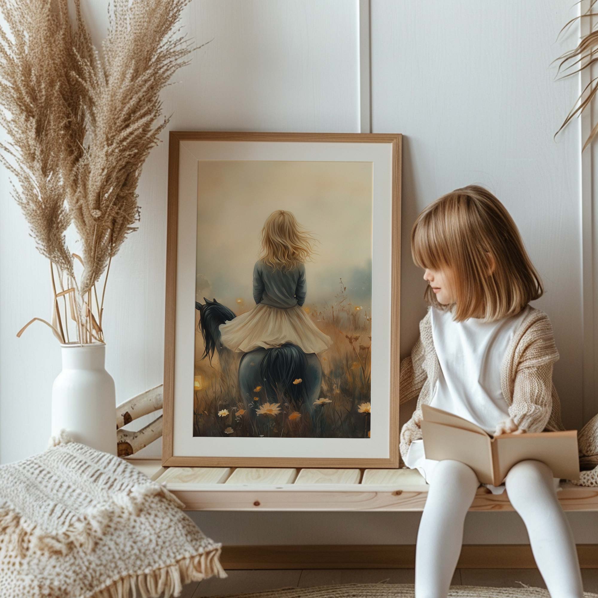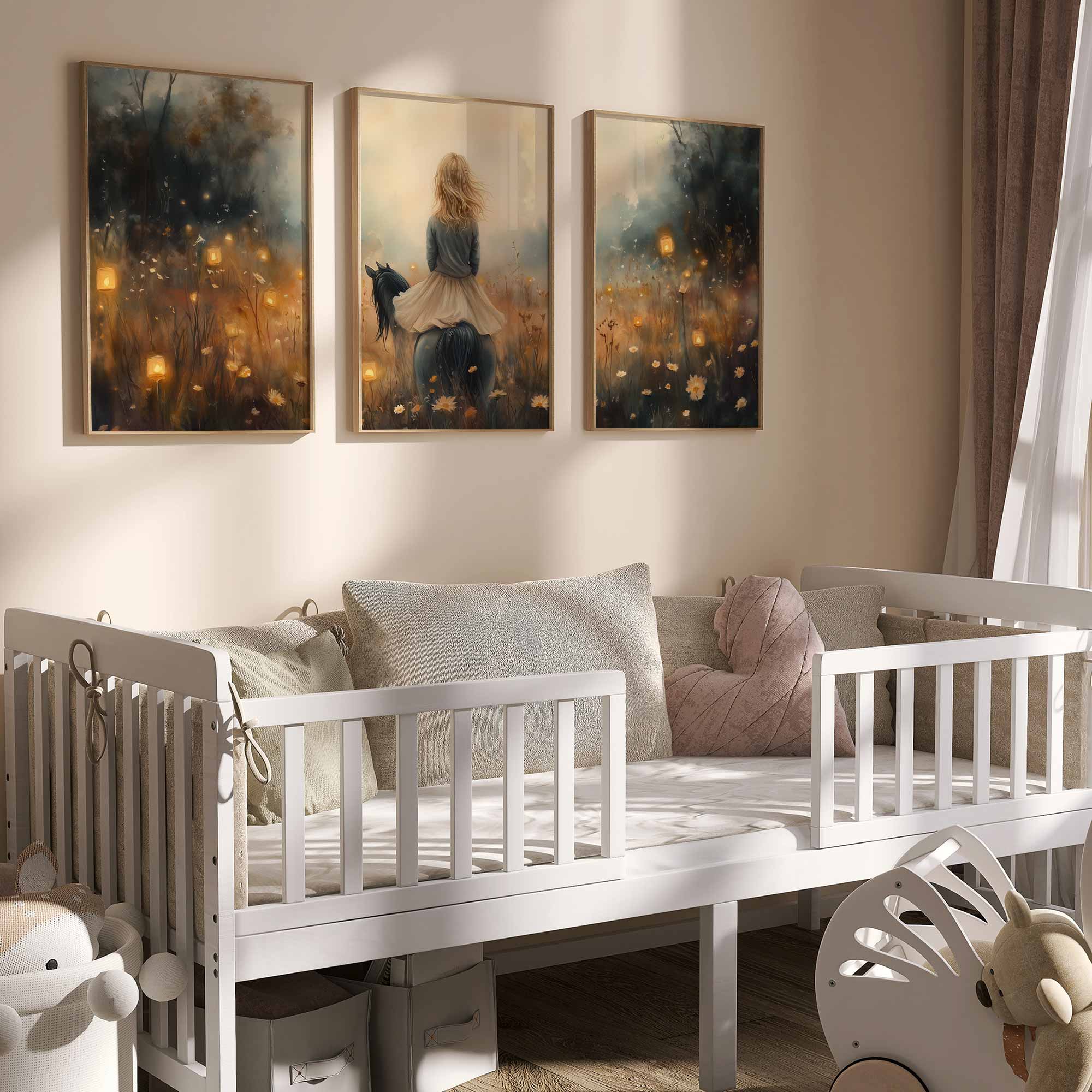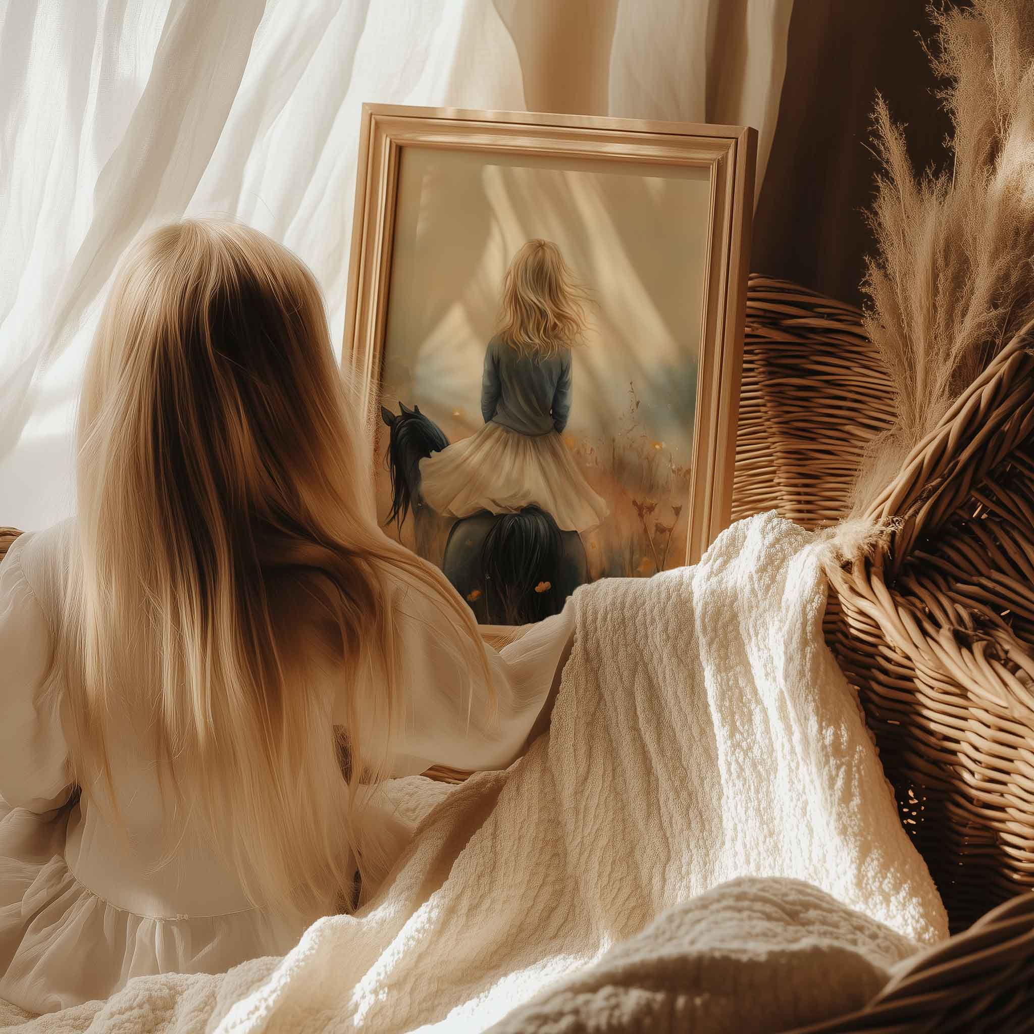 Terug naar collectie Posters Magisch Meisje op Paard tussen Bloemen en Lantaarns