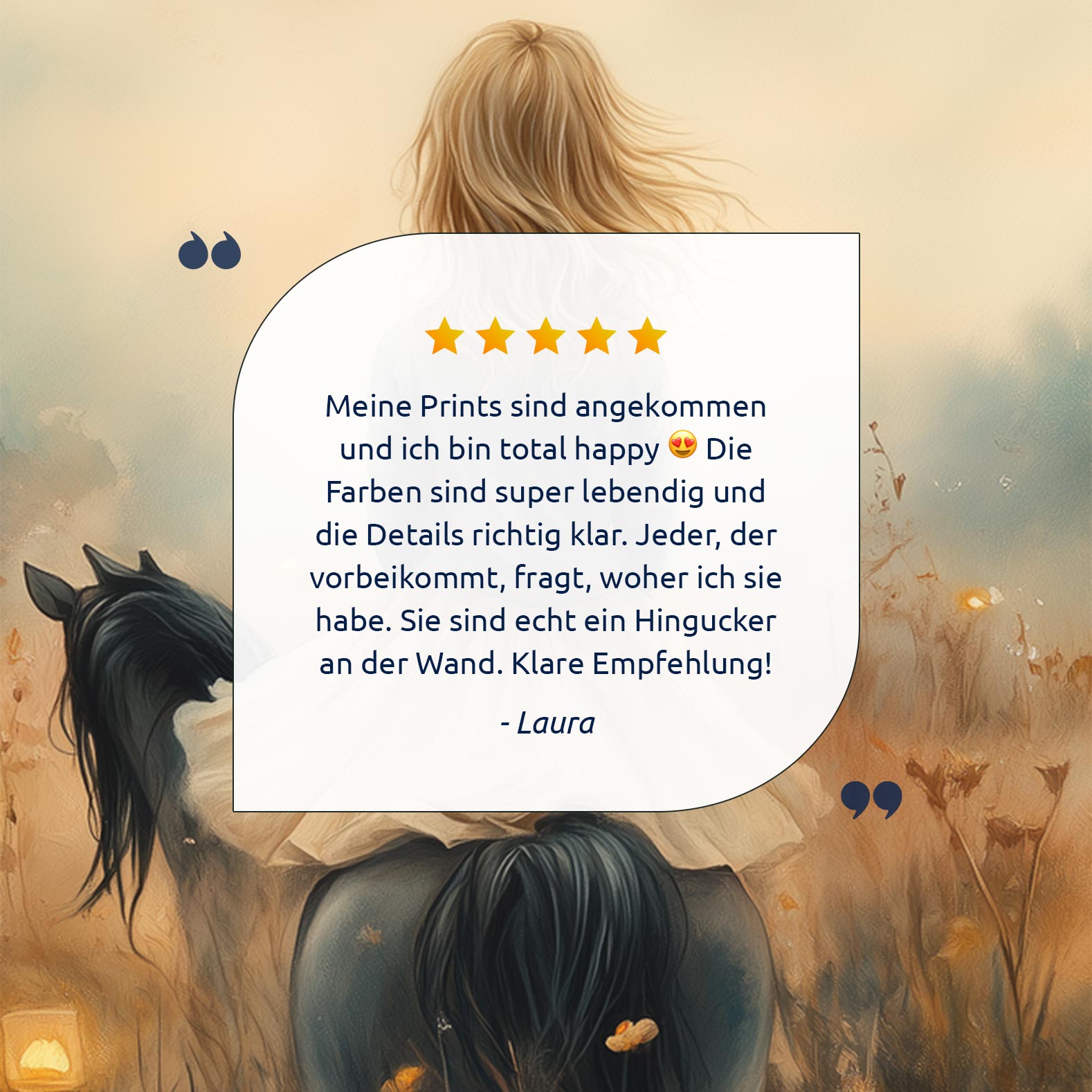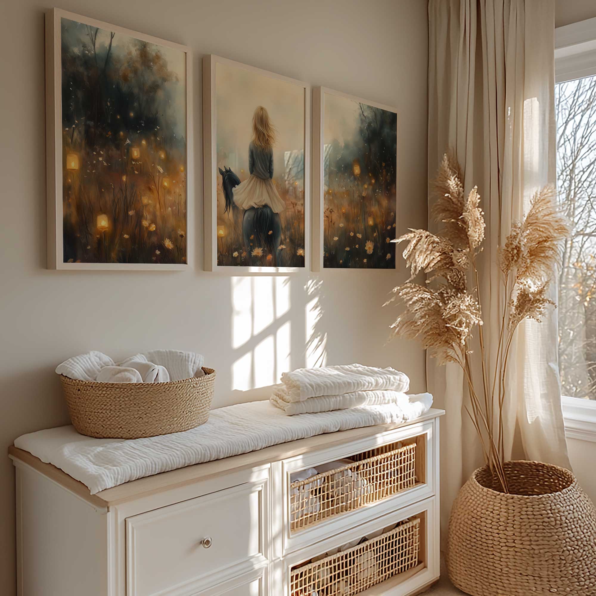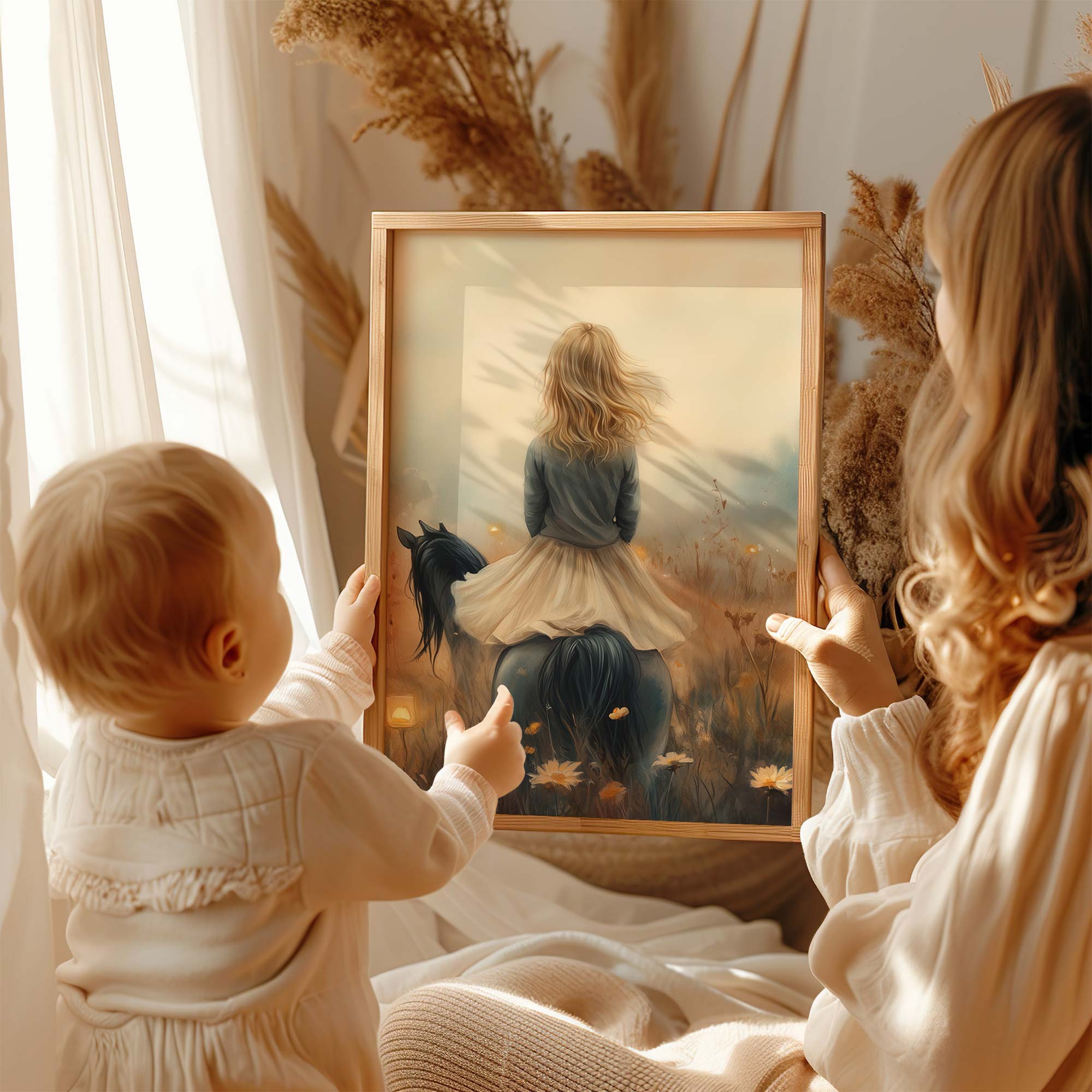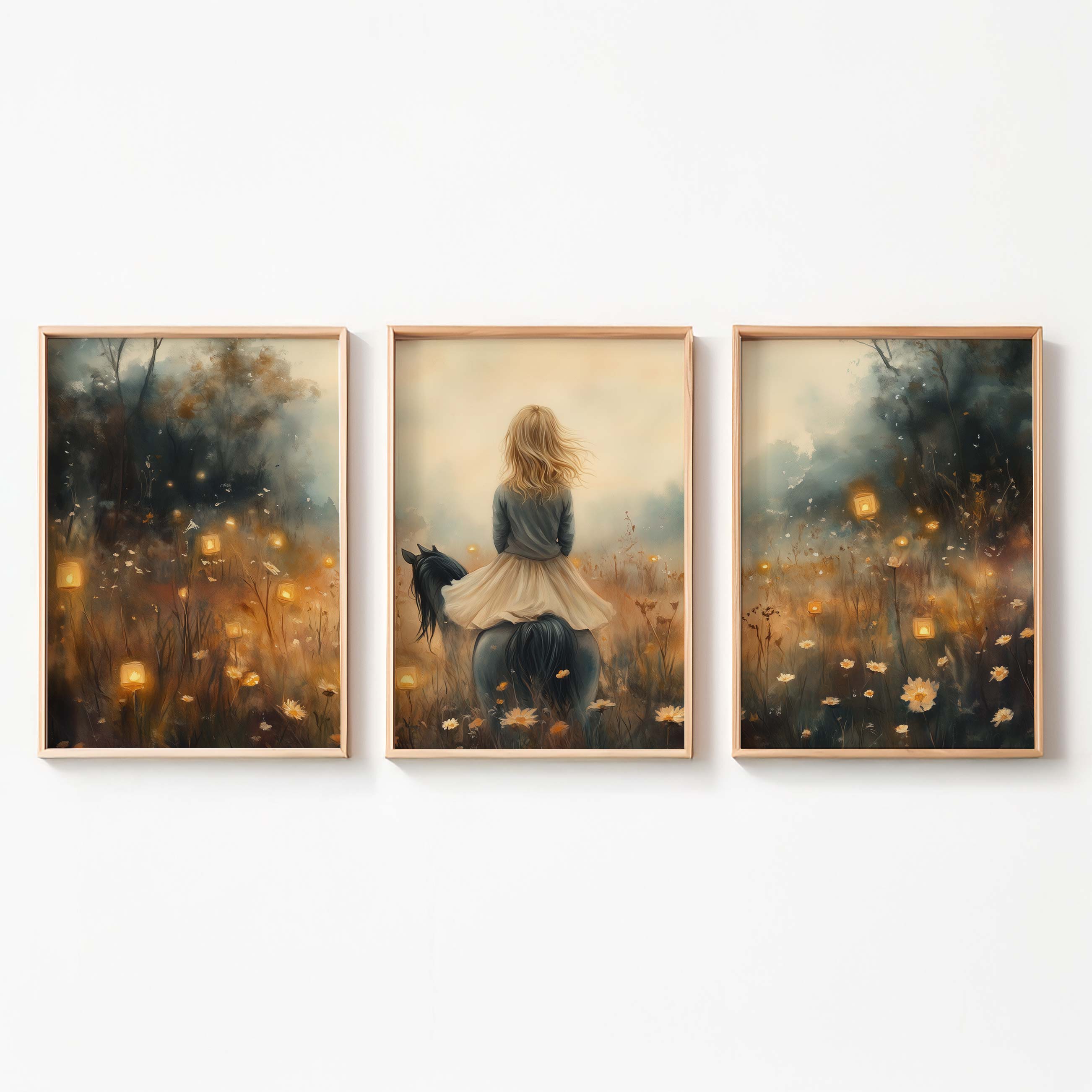 Terug naar collectie Posters Magisch Meisje op Paard tussen Bloemen en Lantaarns