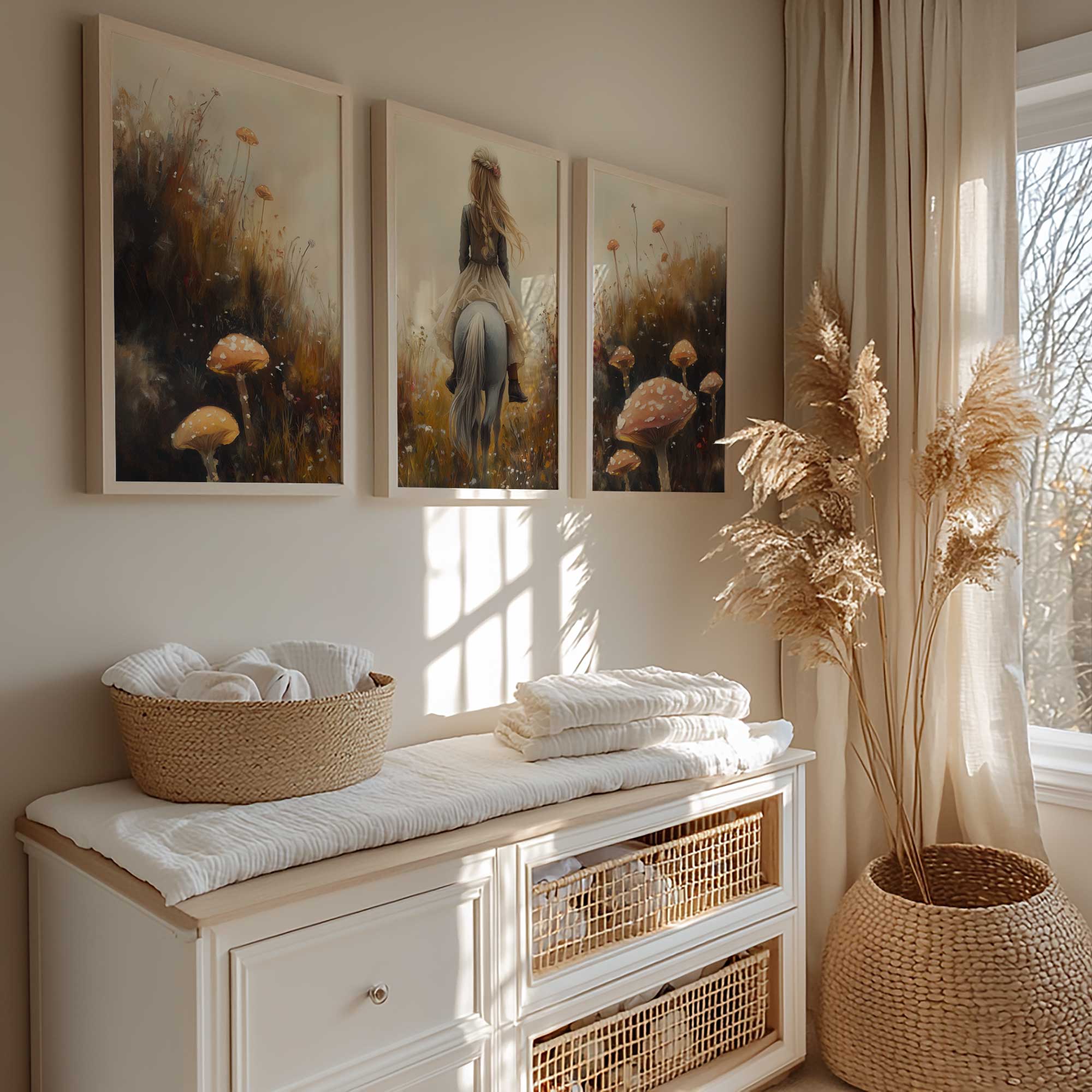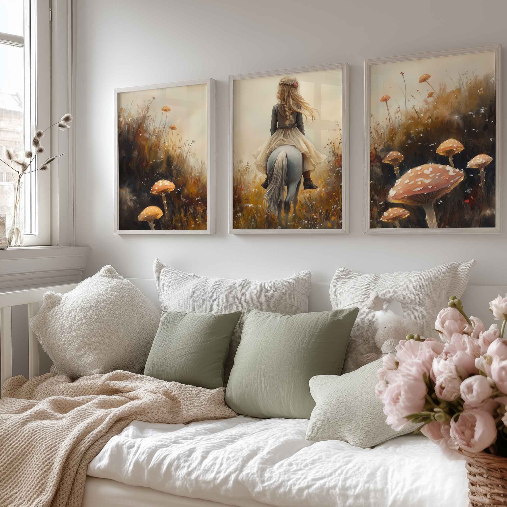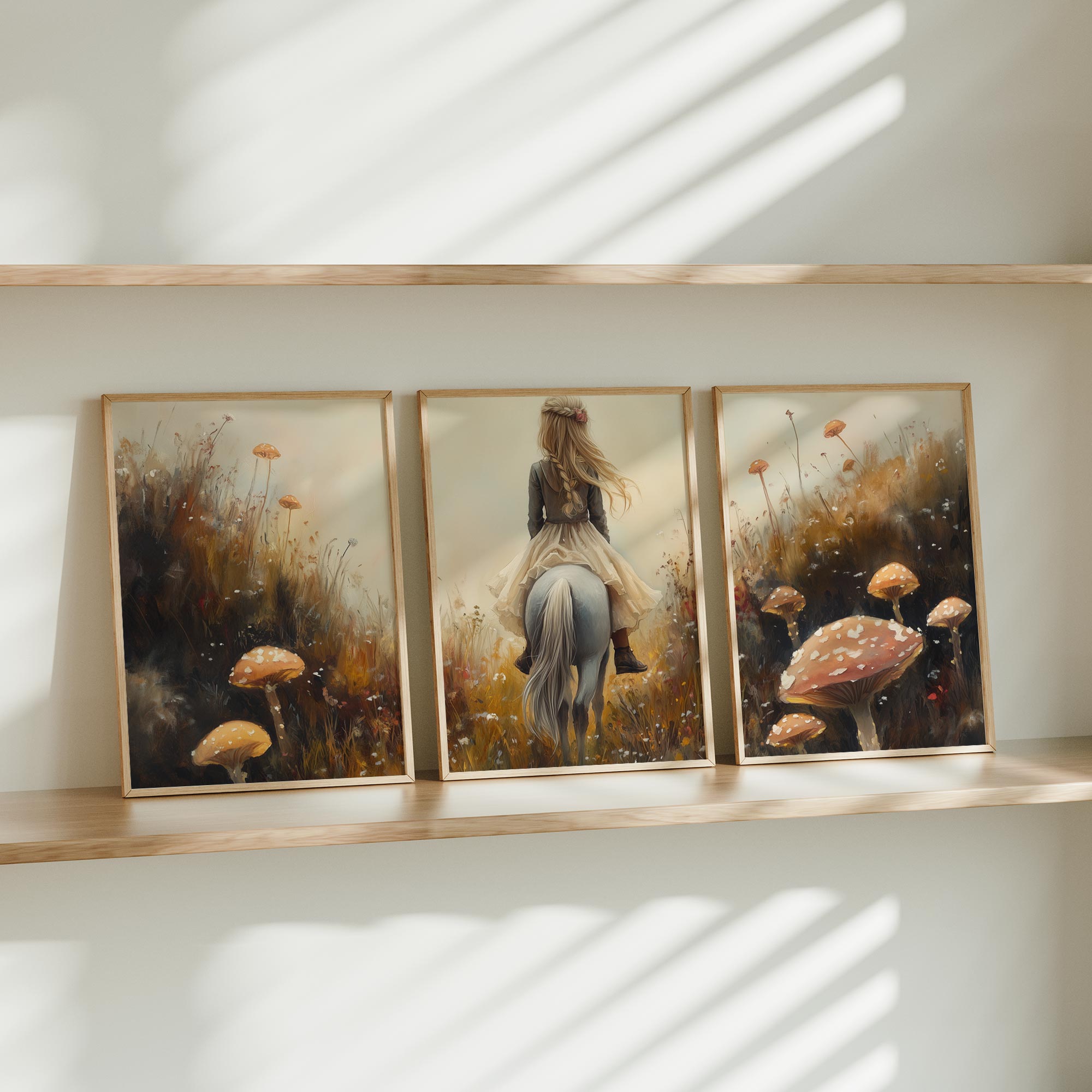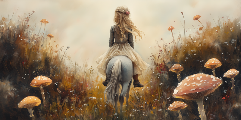 Magisch Meisje op Paard tussen Paddenstoelen