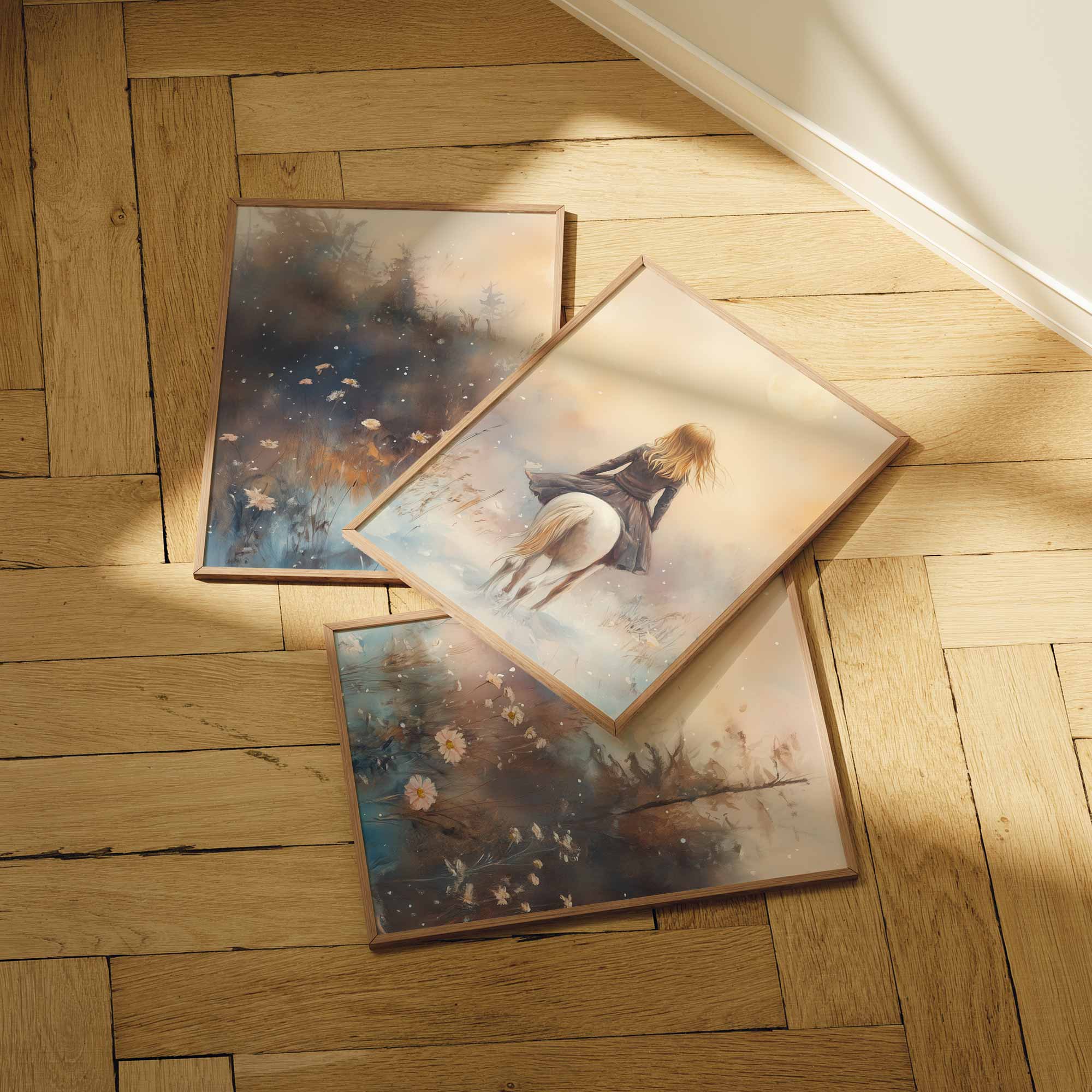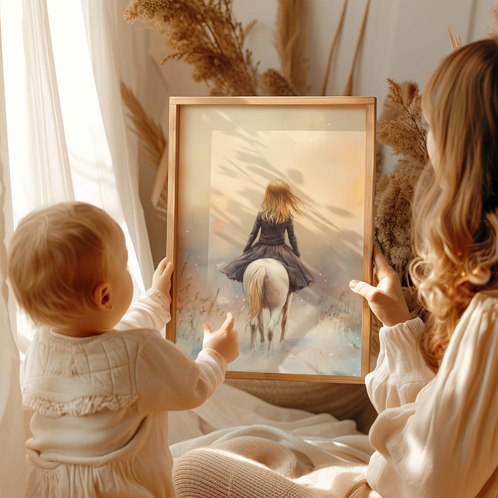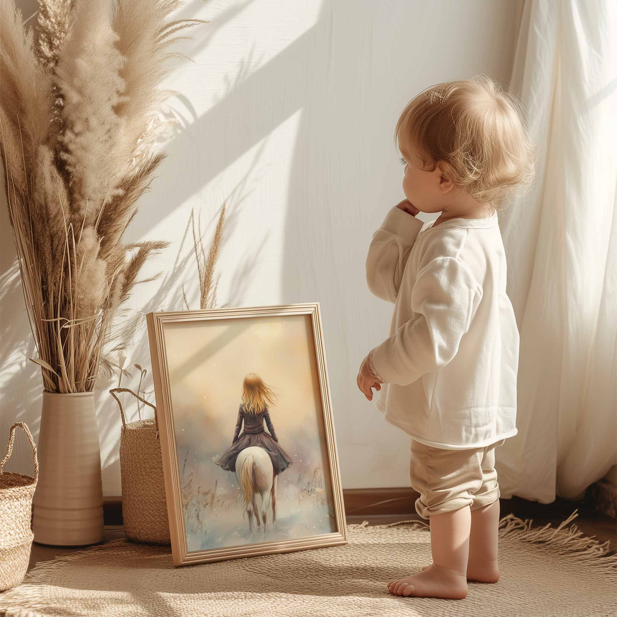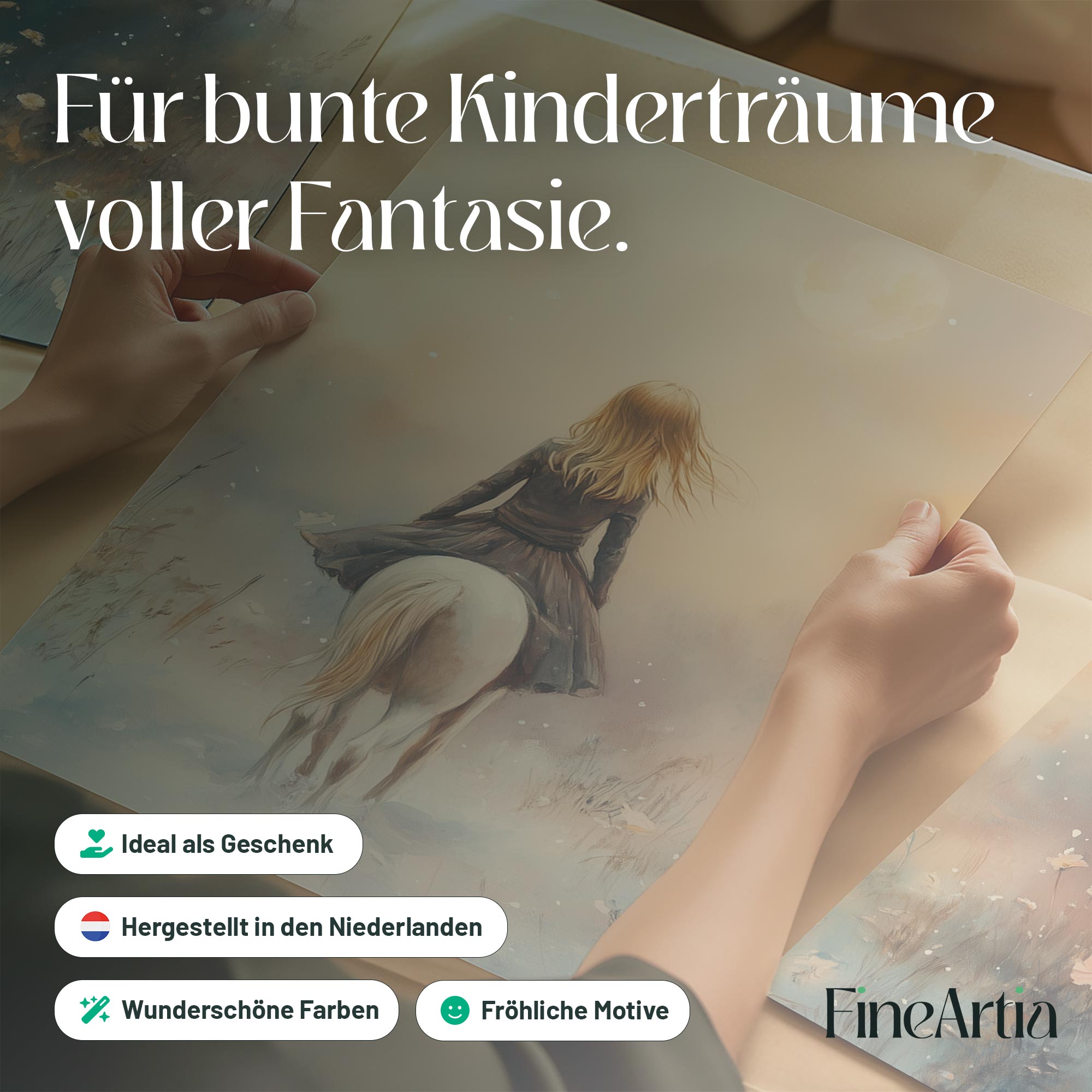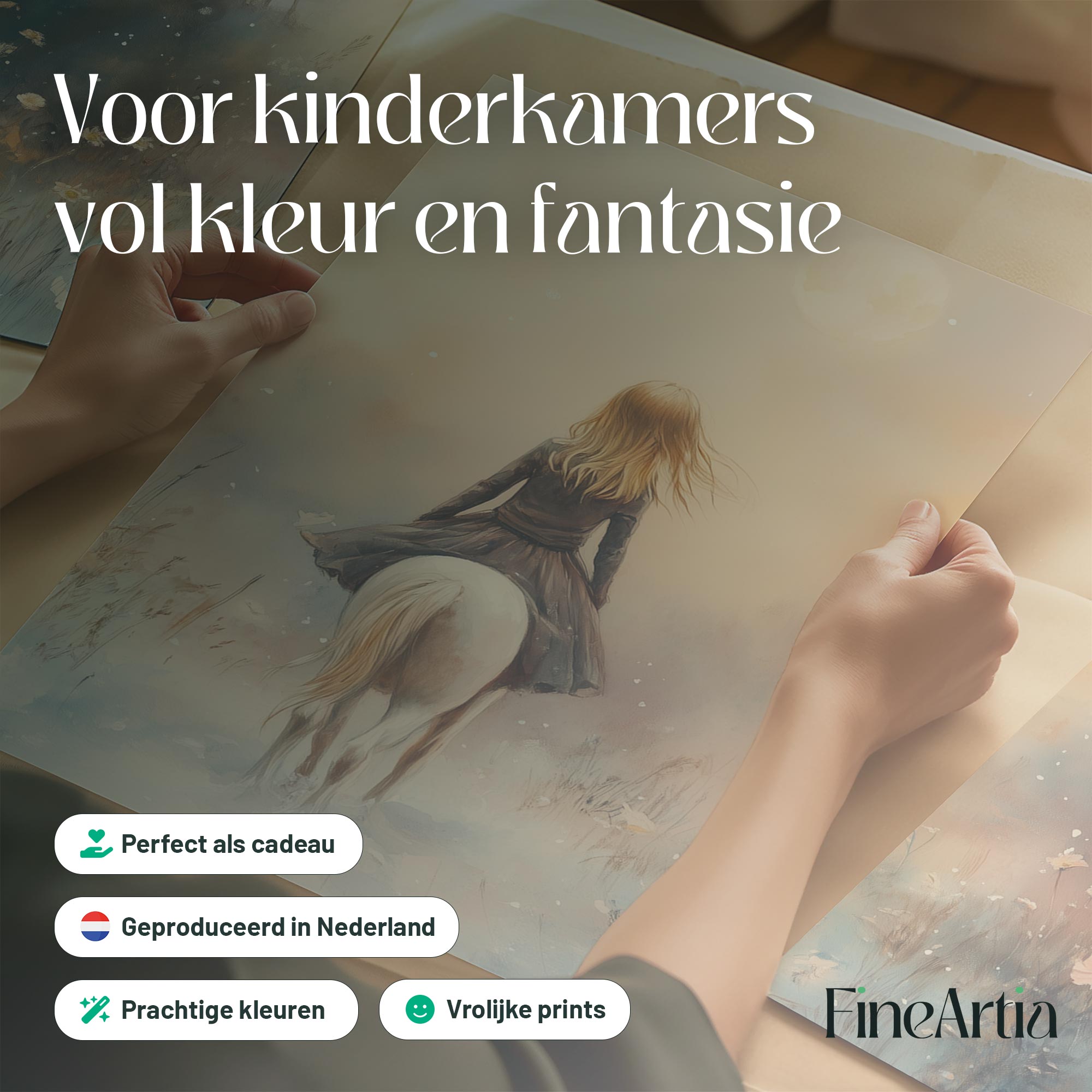 Terug naar collectie Posters Magisch Meisje op Witte Paard in Bloemenveld