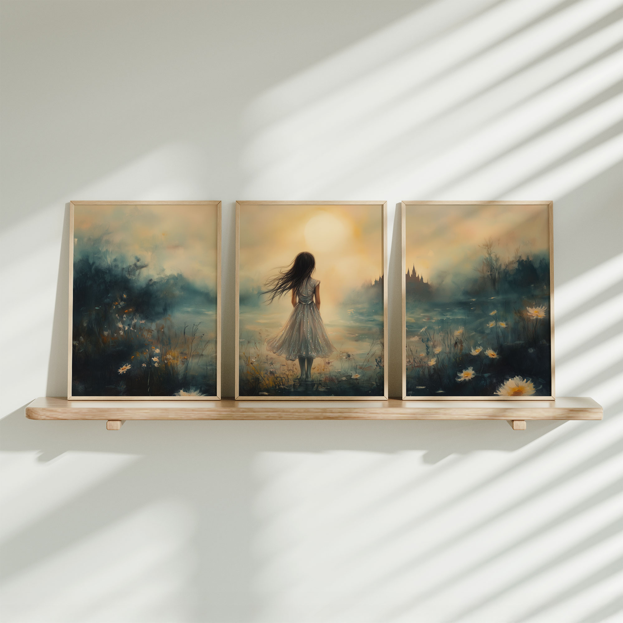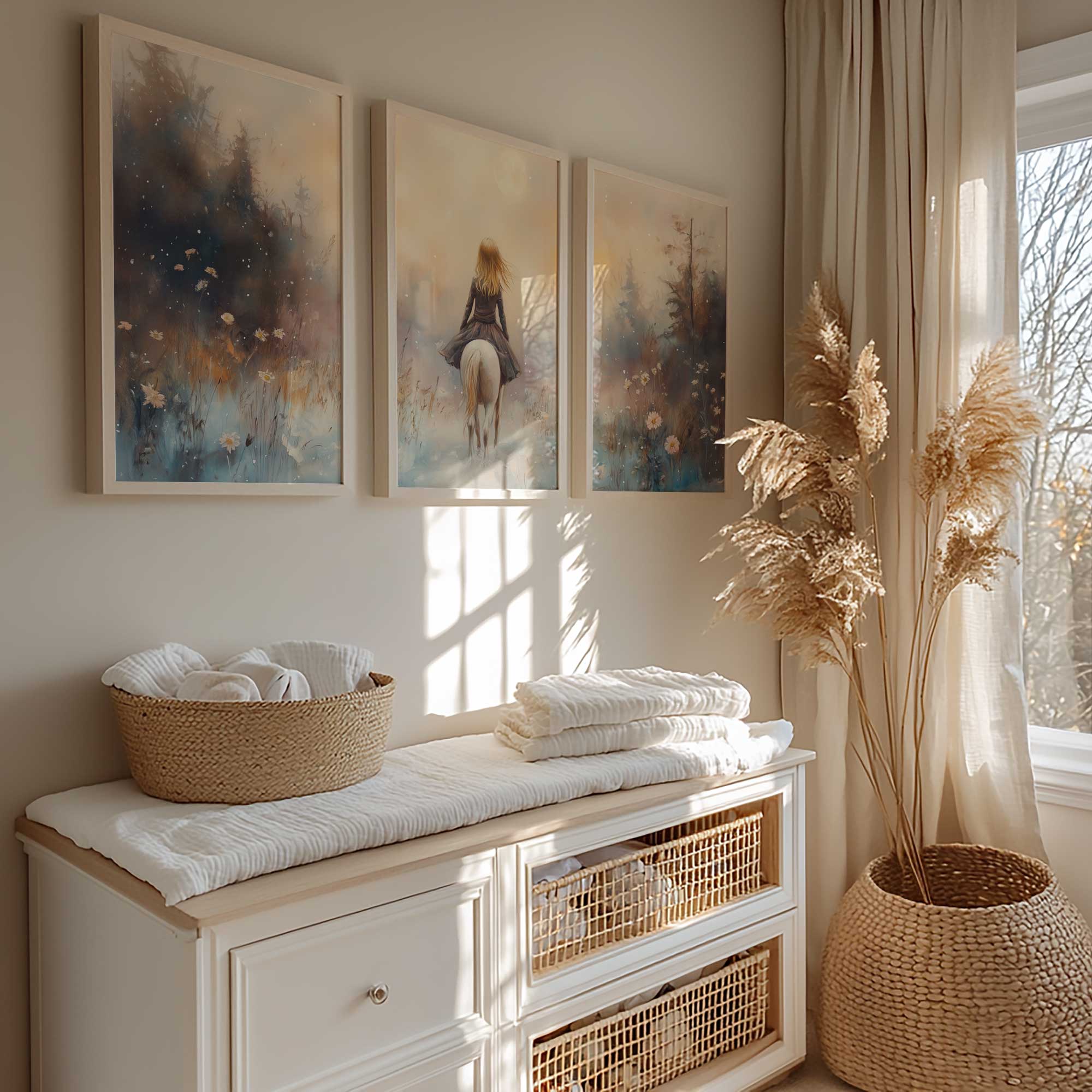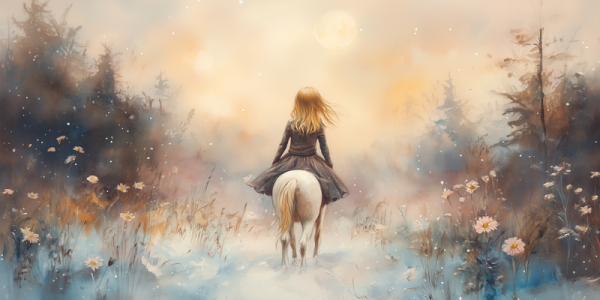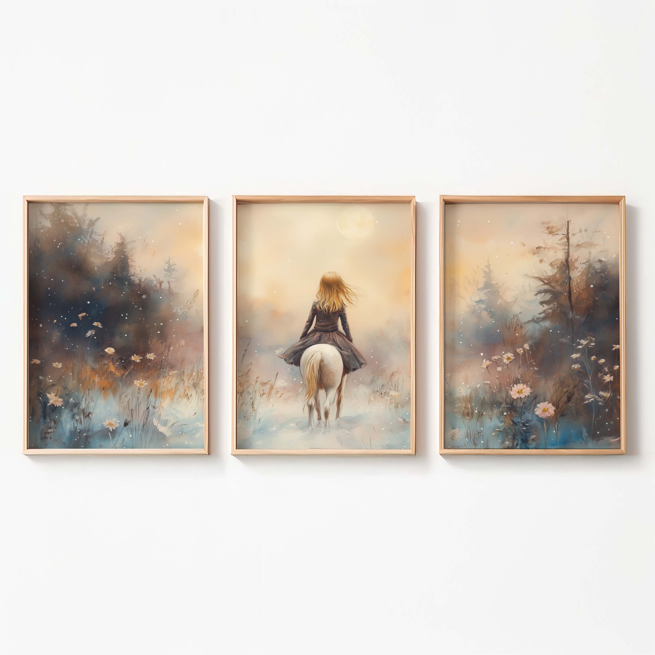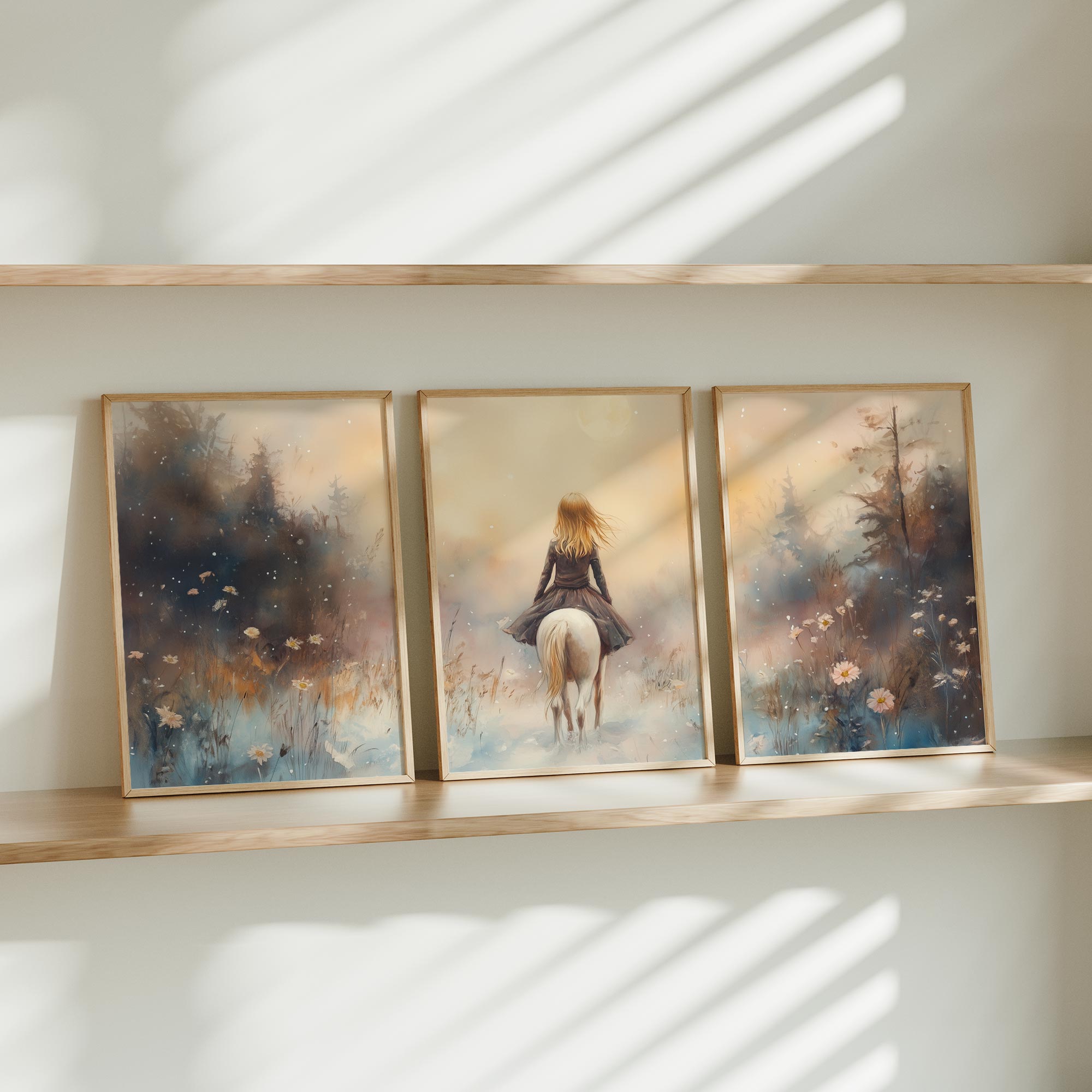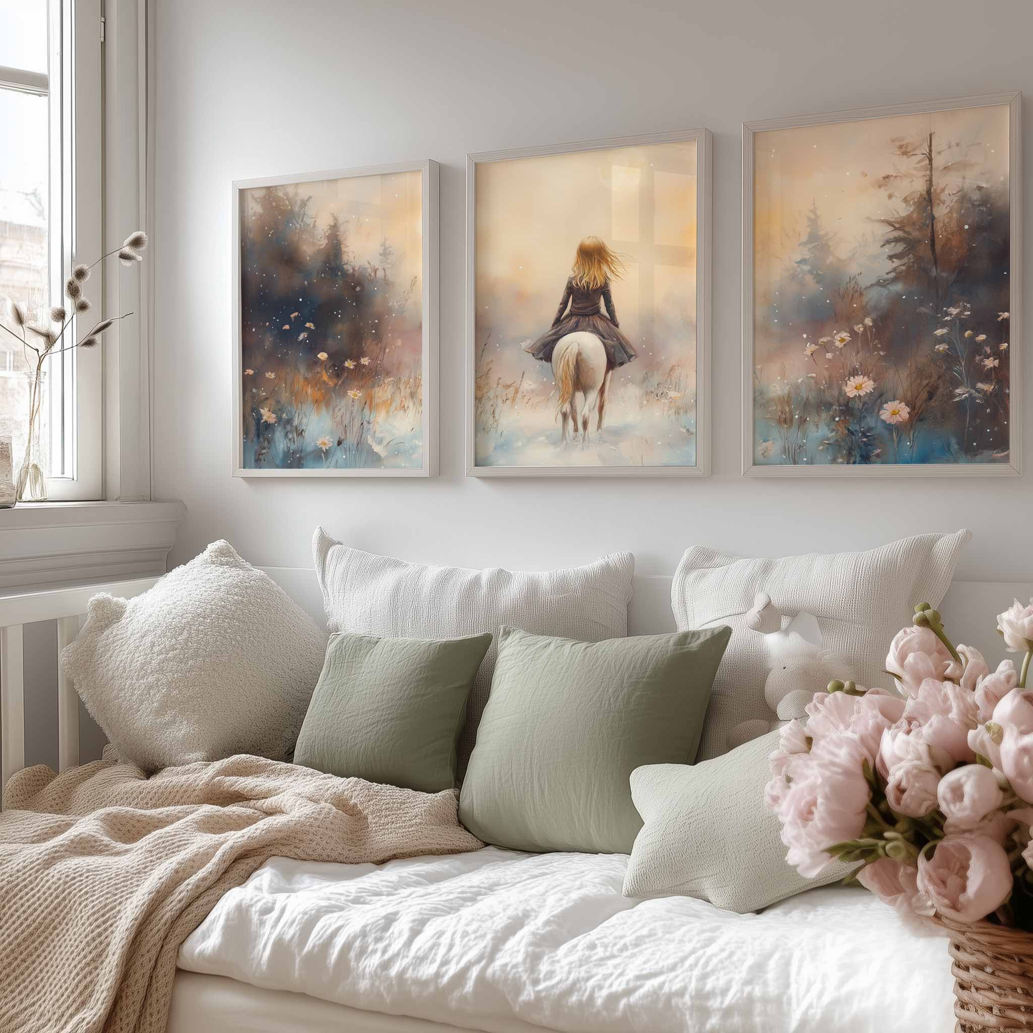 Terug naar collectie Posters Magisch Meisje op Witte Paard in Bloemenveld