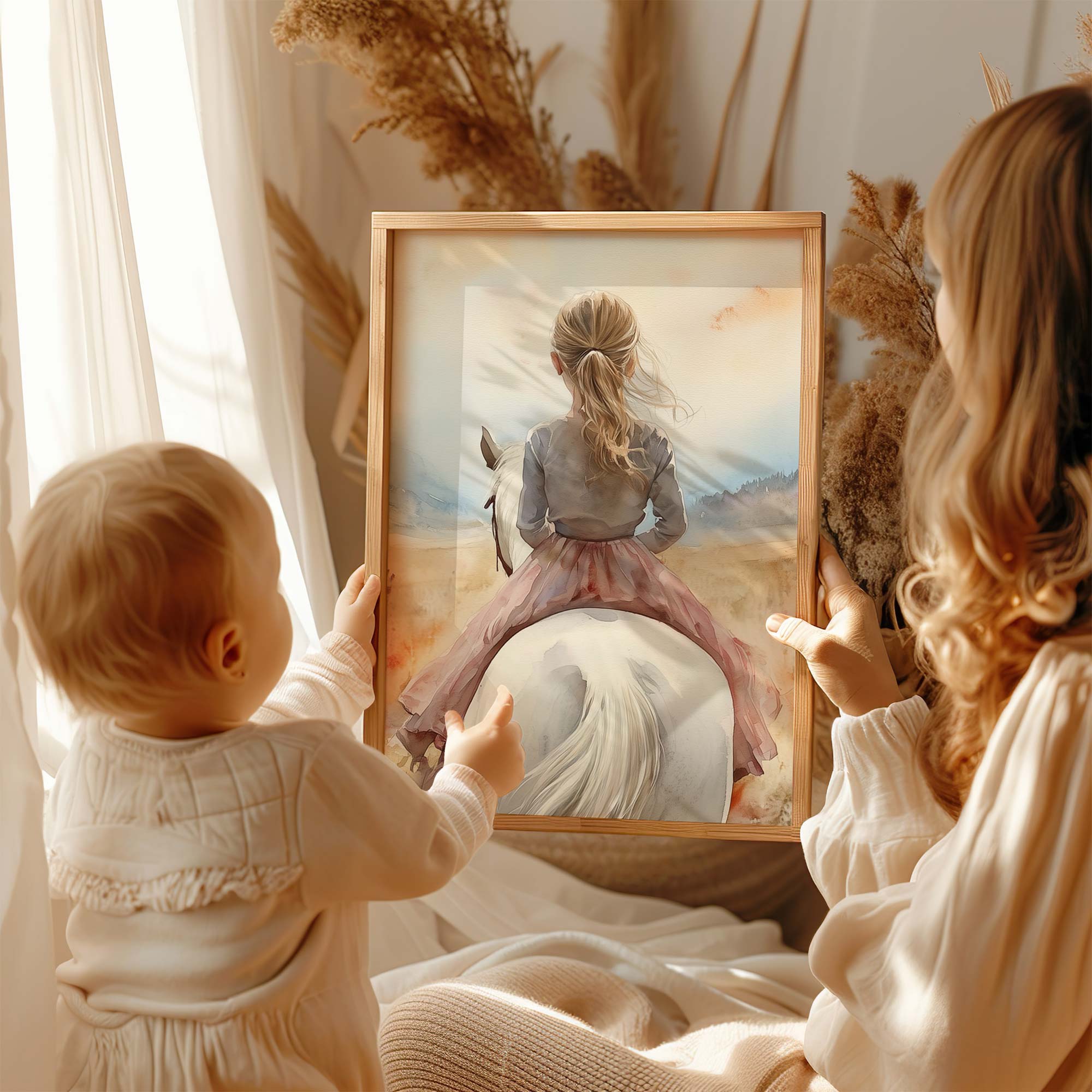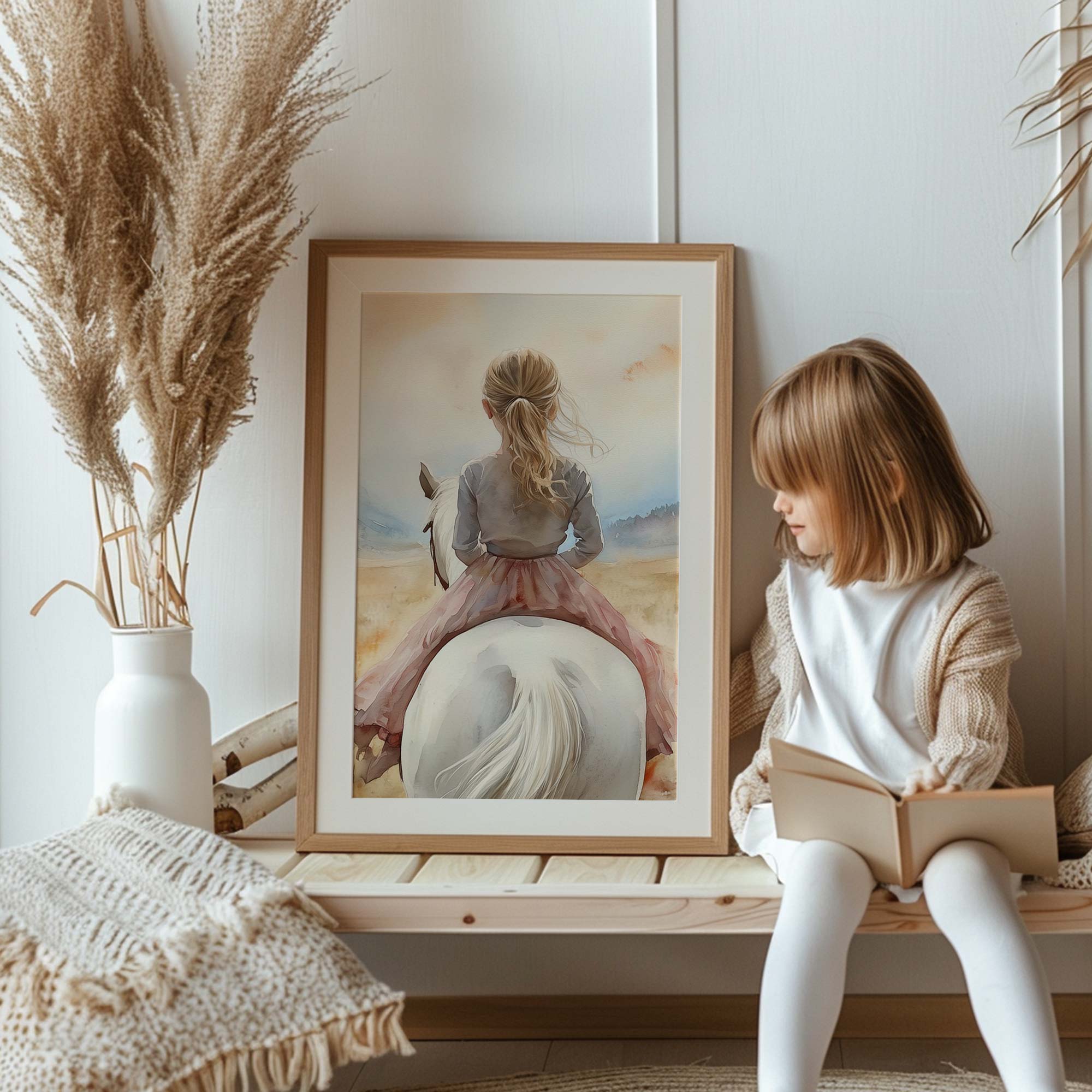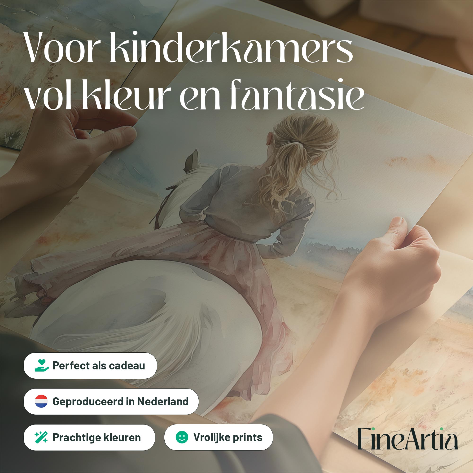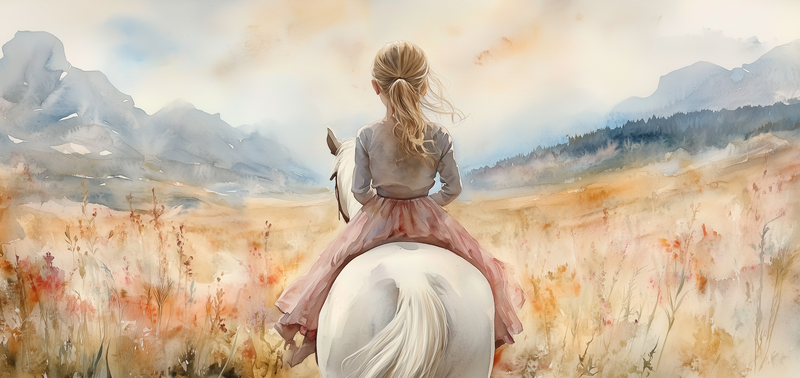 Magisch Meisje op Witte Paard in Dromerig Landschap