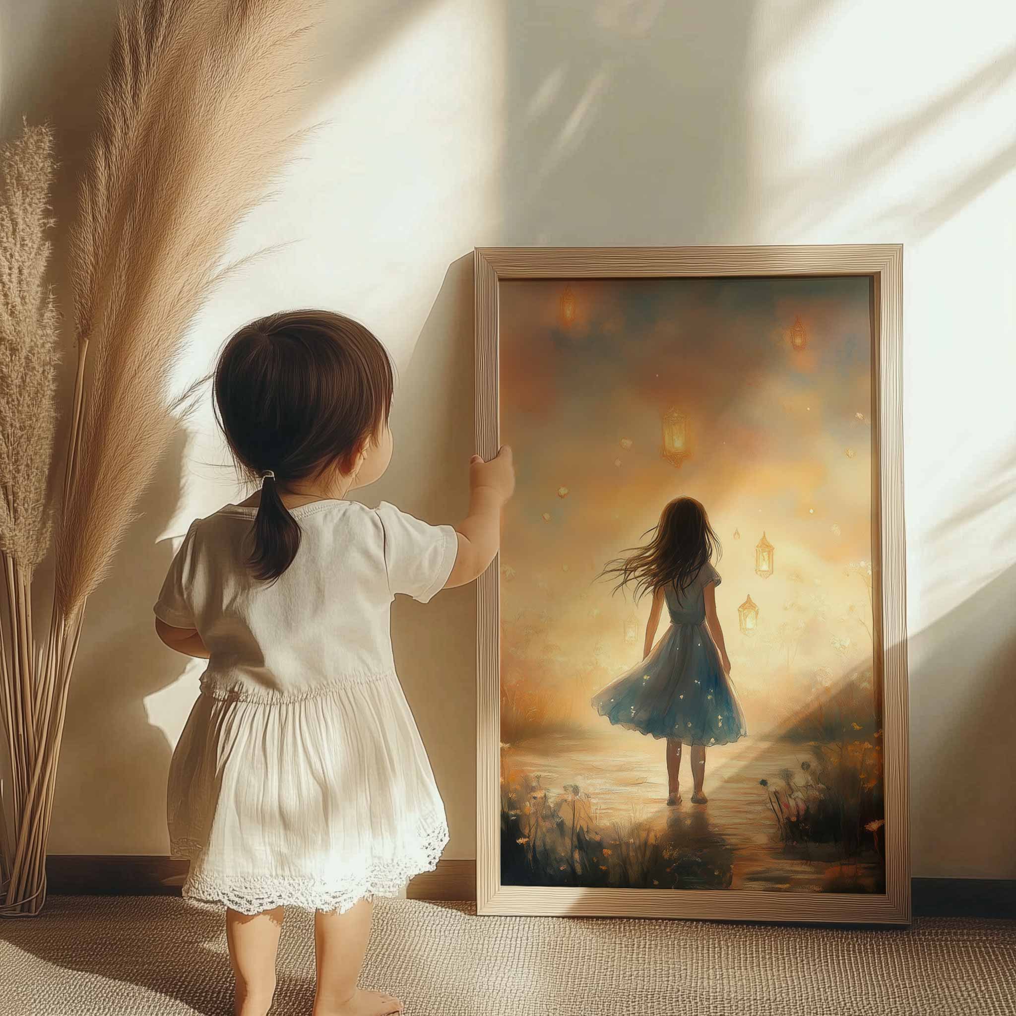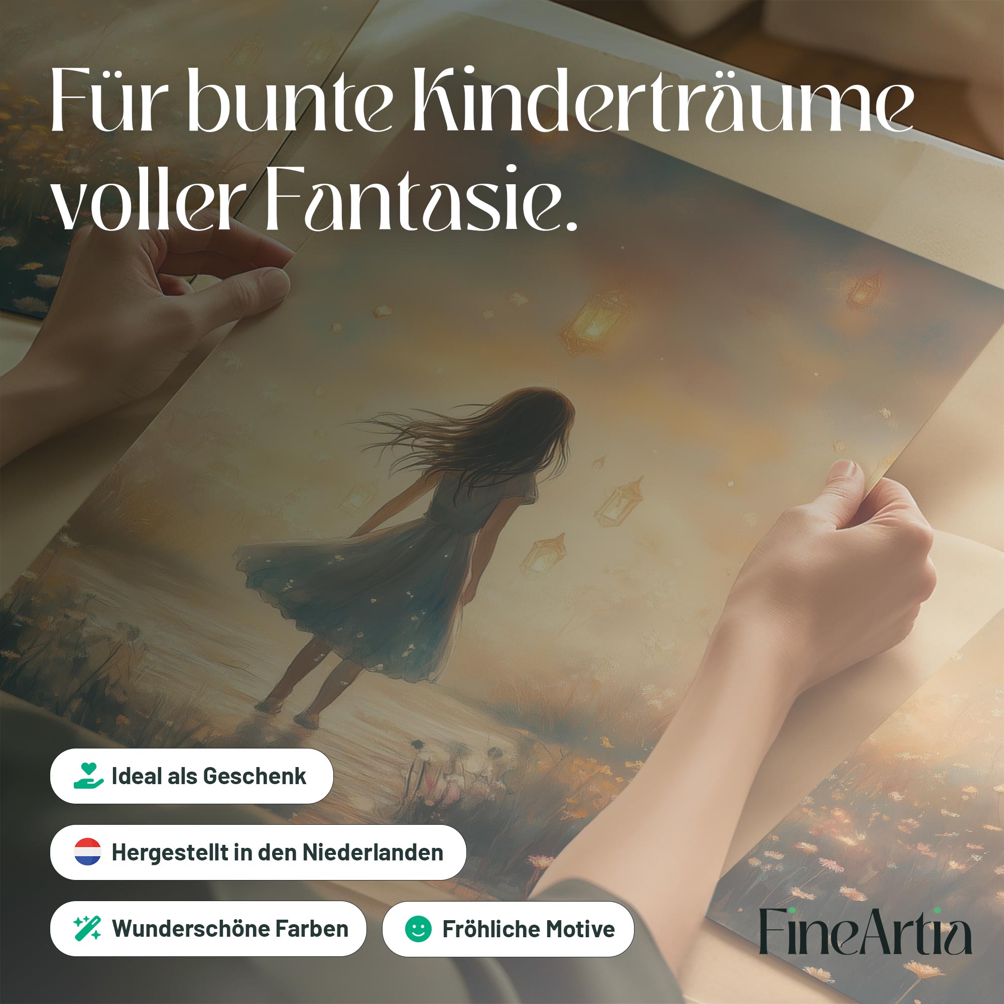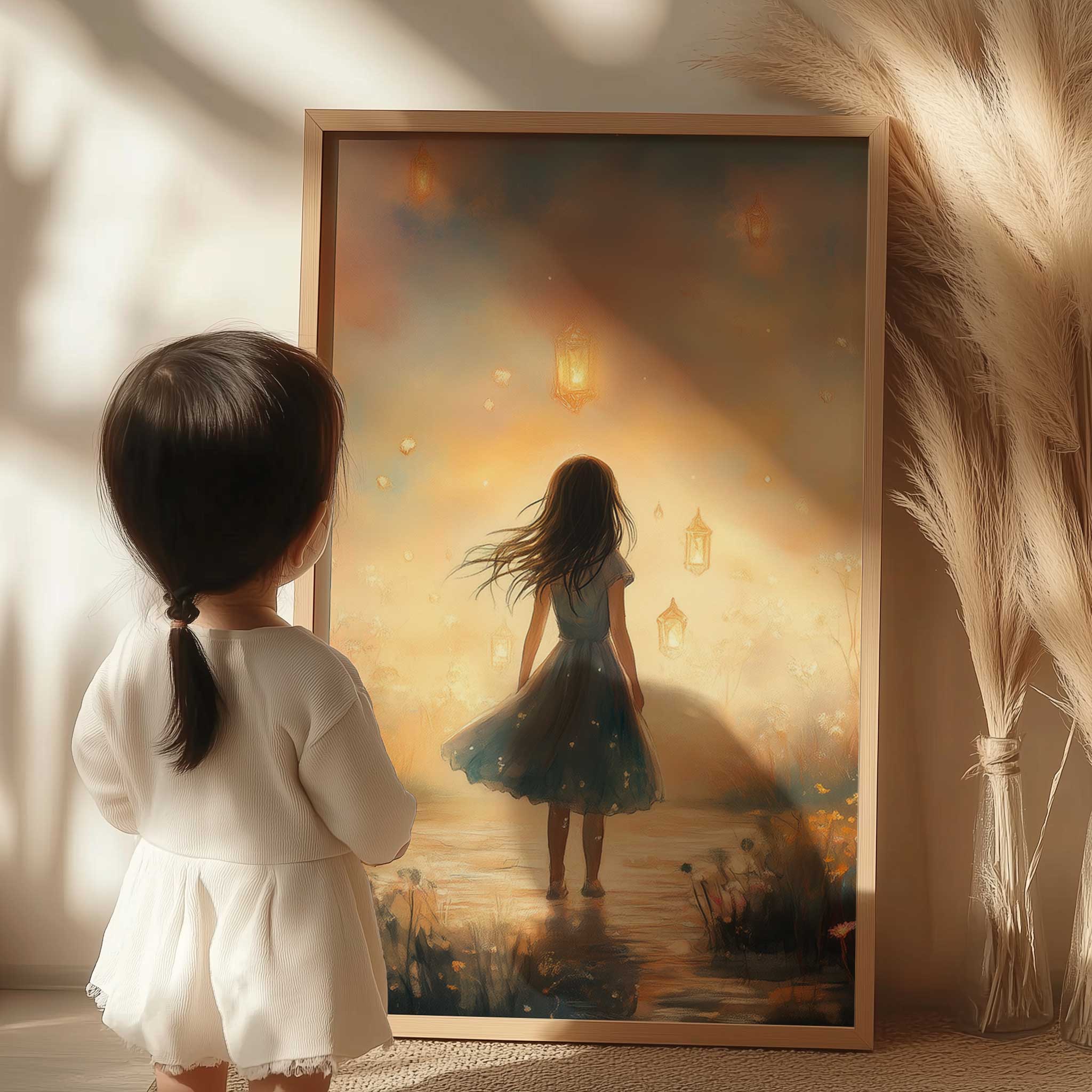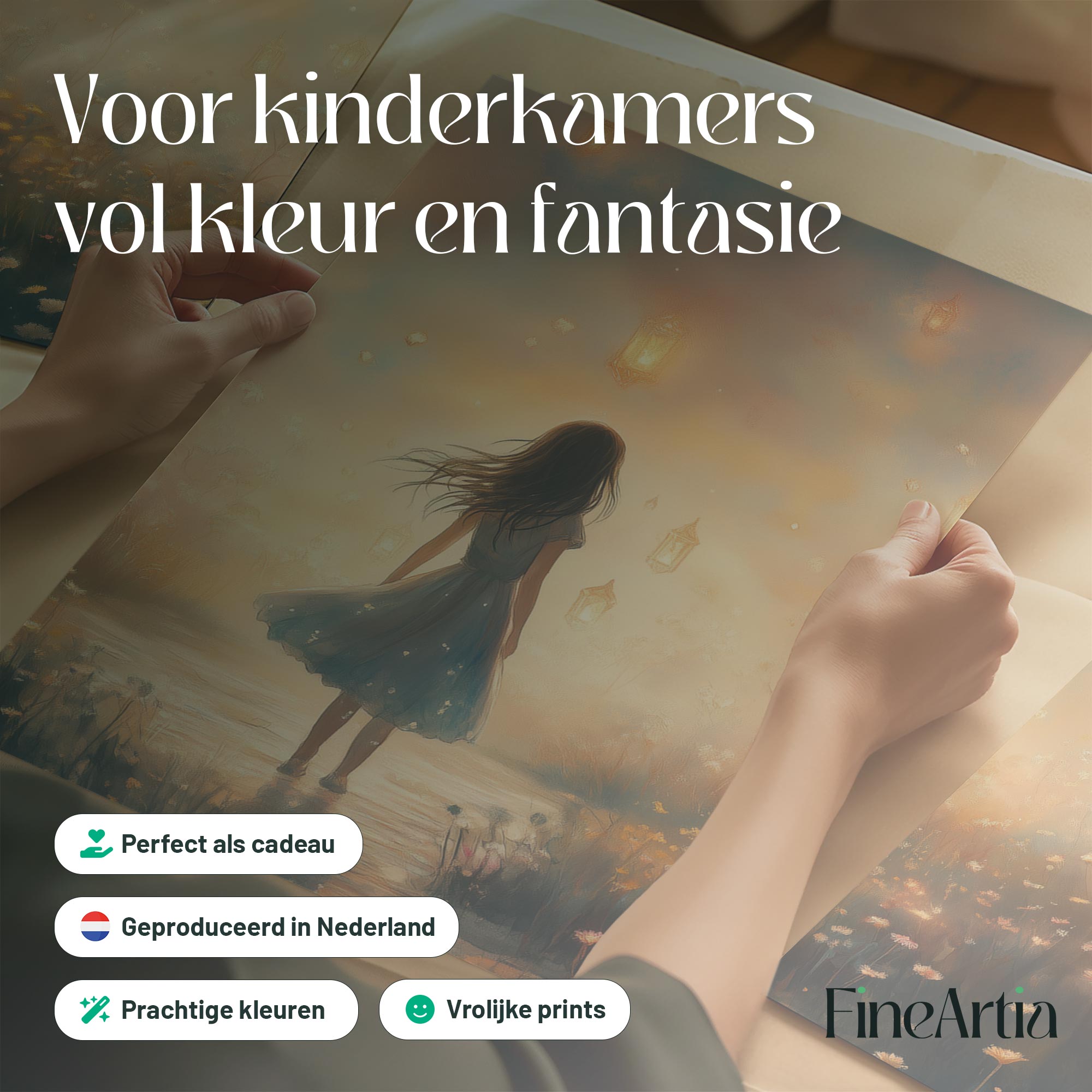 Terug naar collectie Posters Magisch Meisje tussen Gloeiende Lantaarns en Bloemen