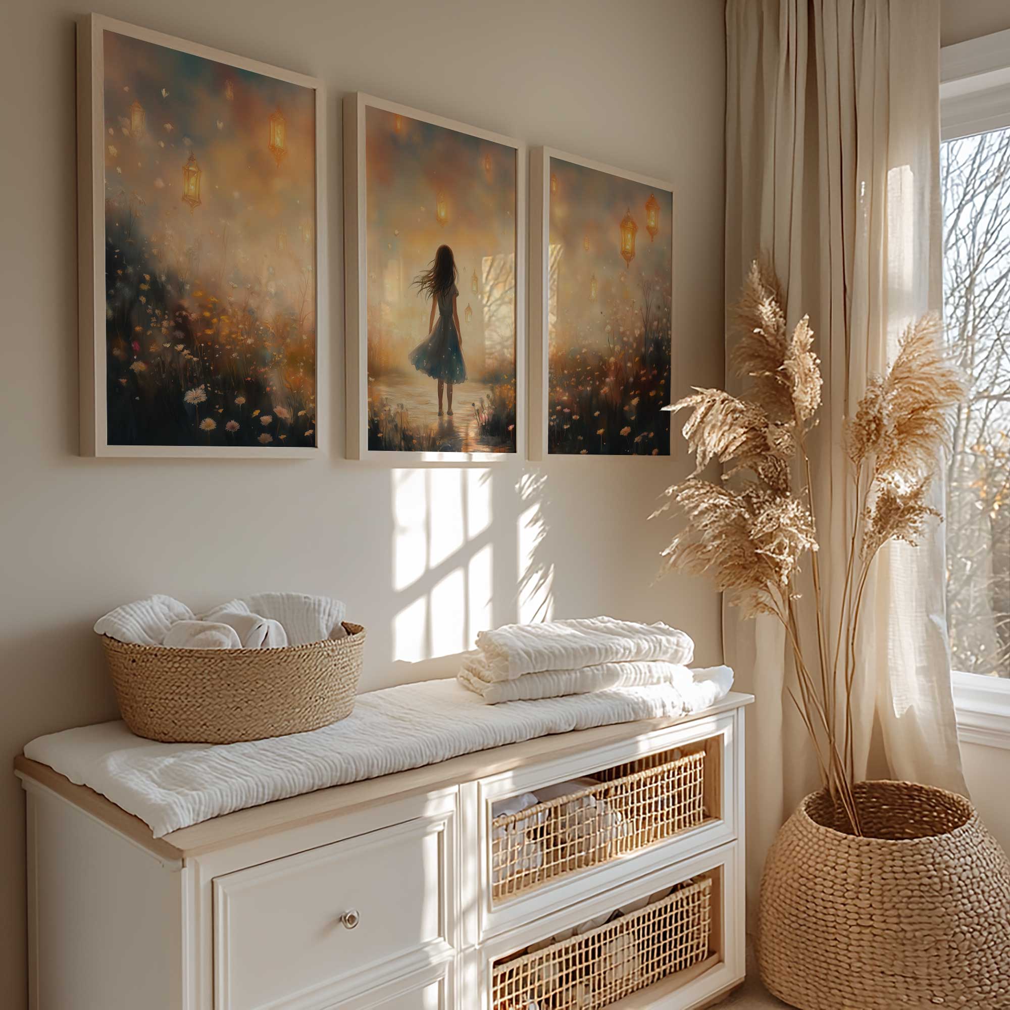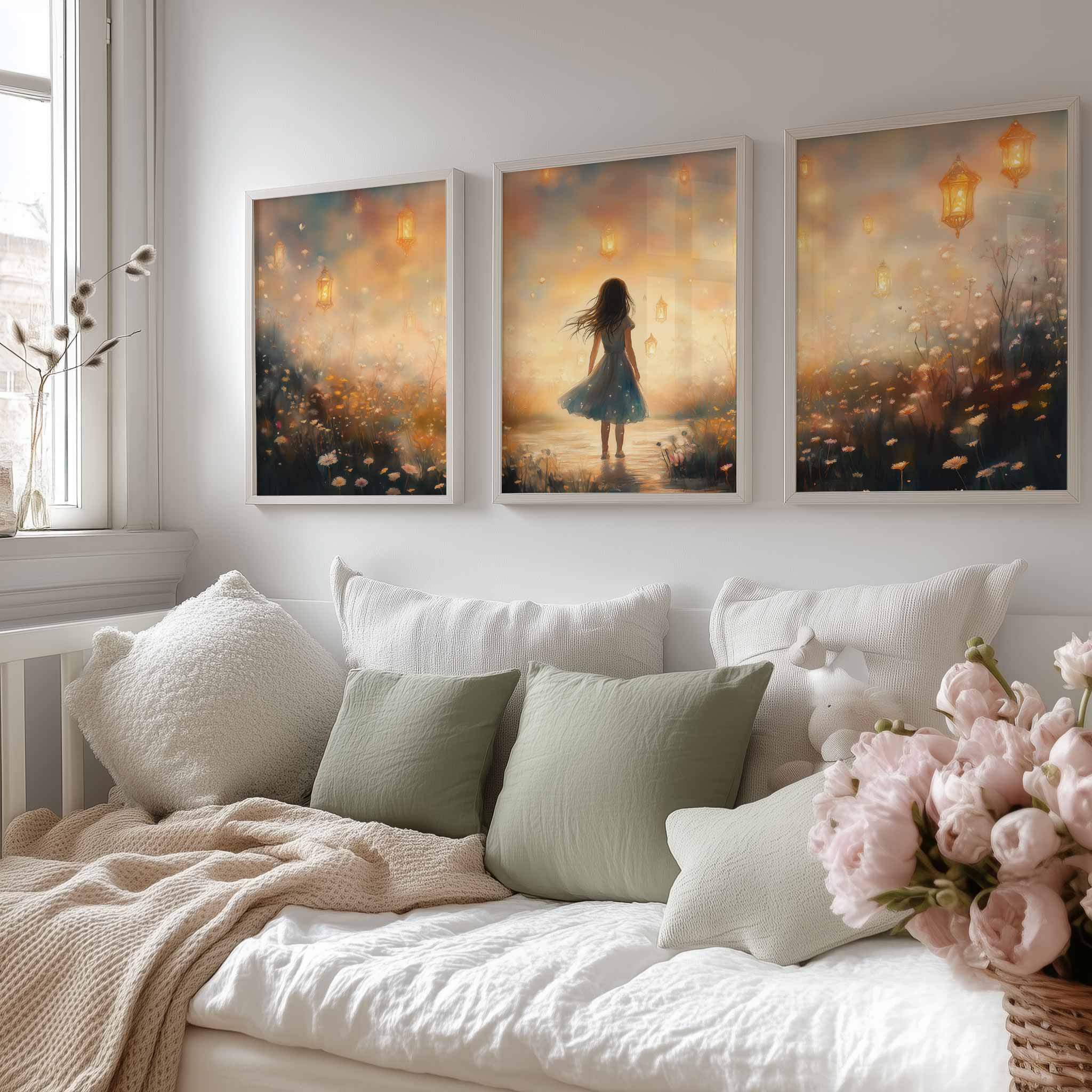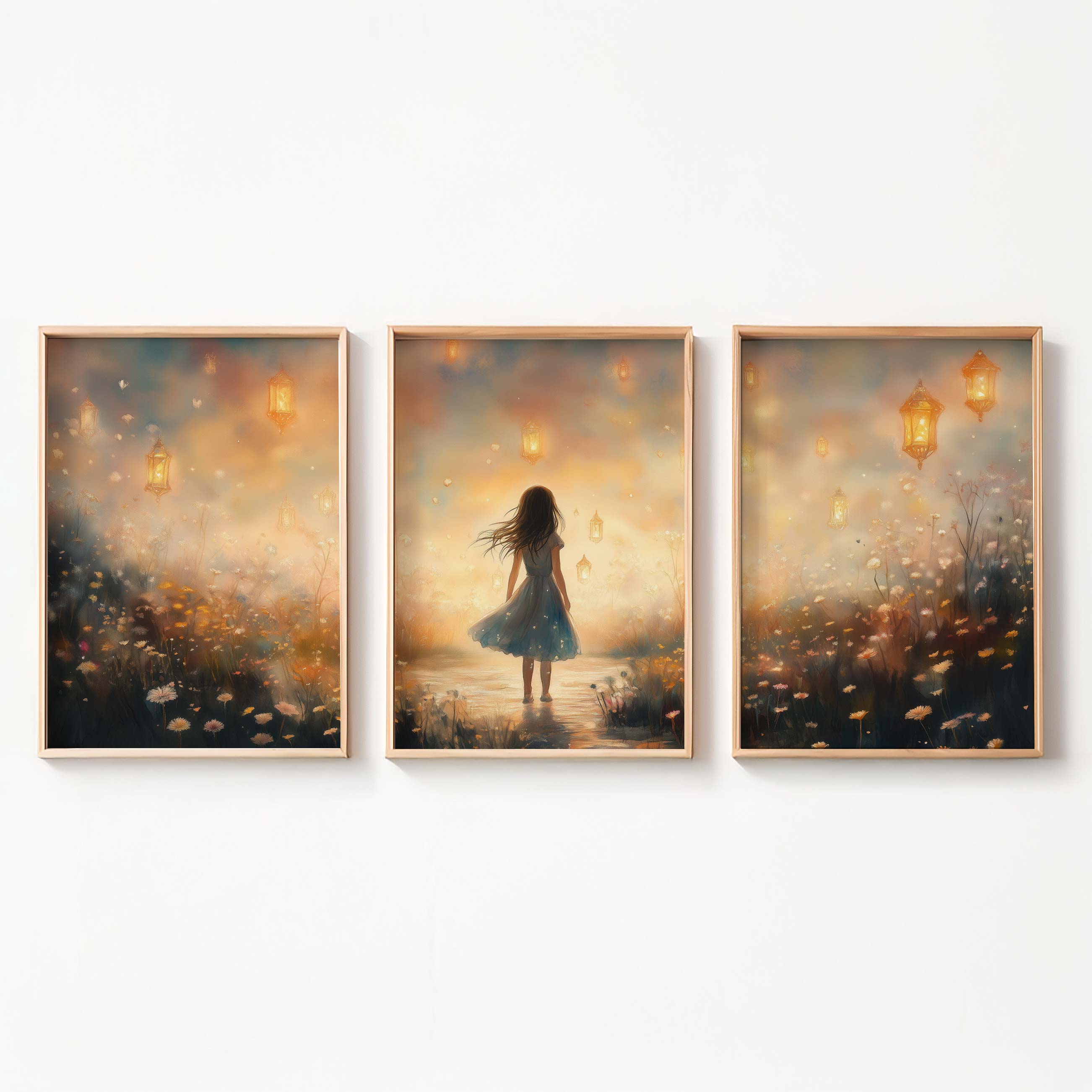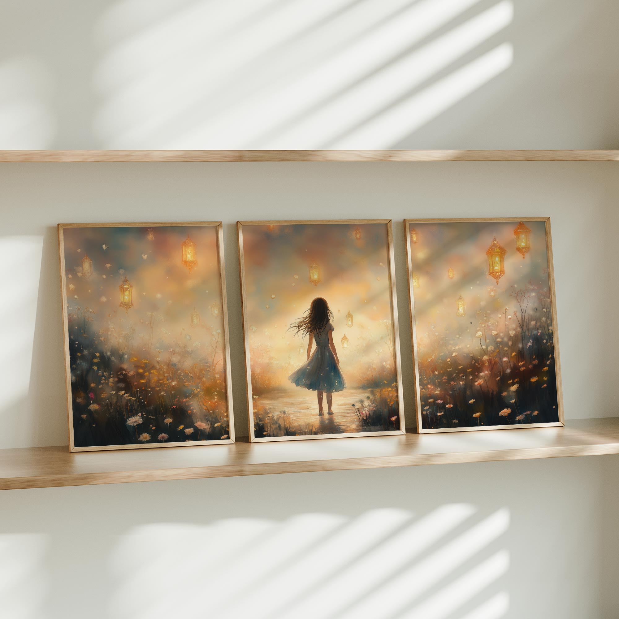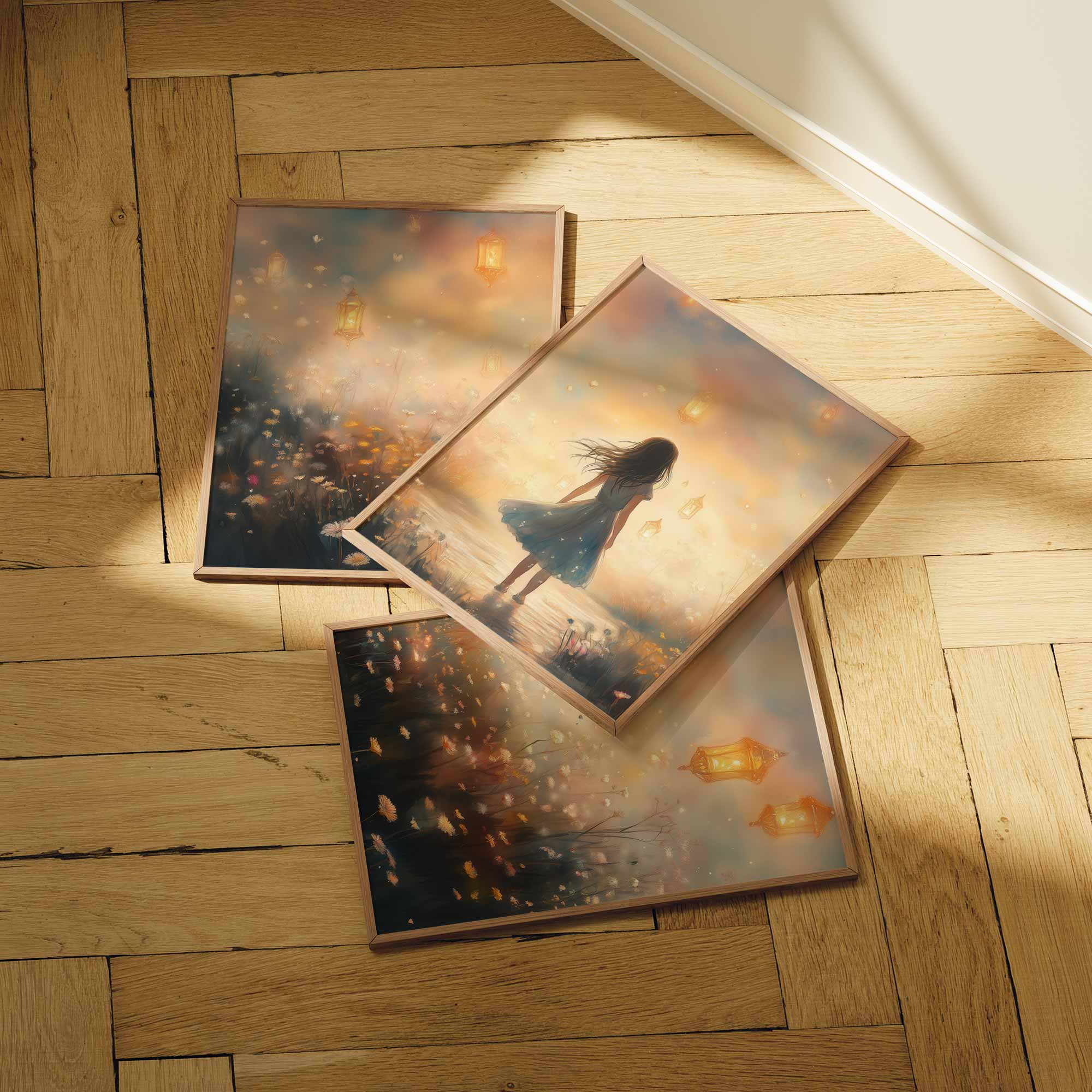 Terug naar collectie Posters Magisch Meisje tussen Gloeiende Lantaarns en Bloemen