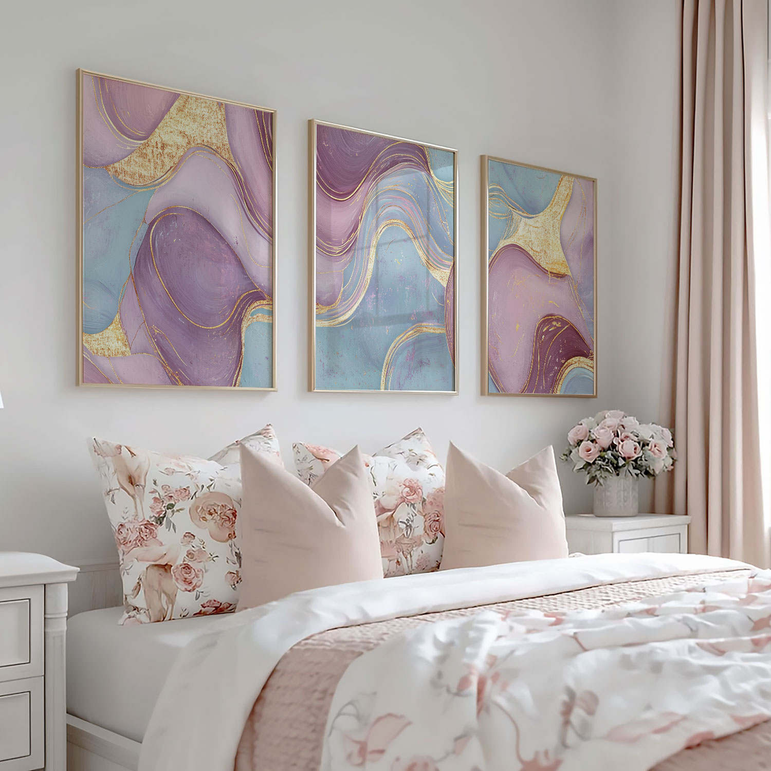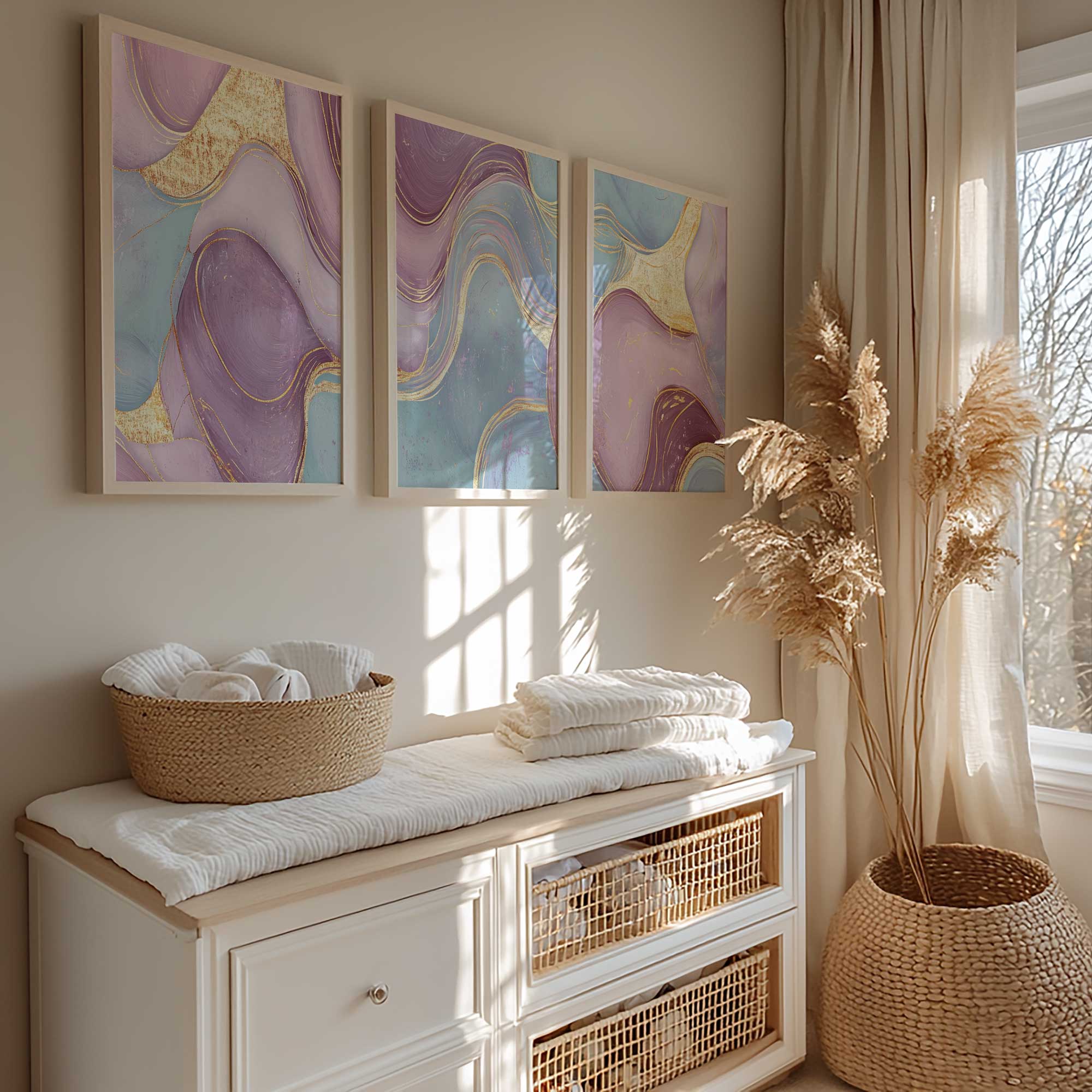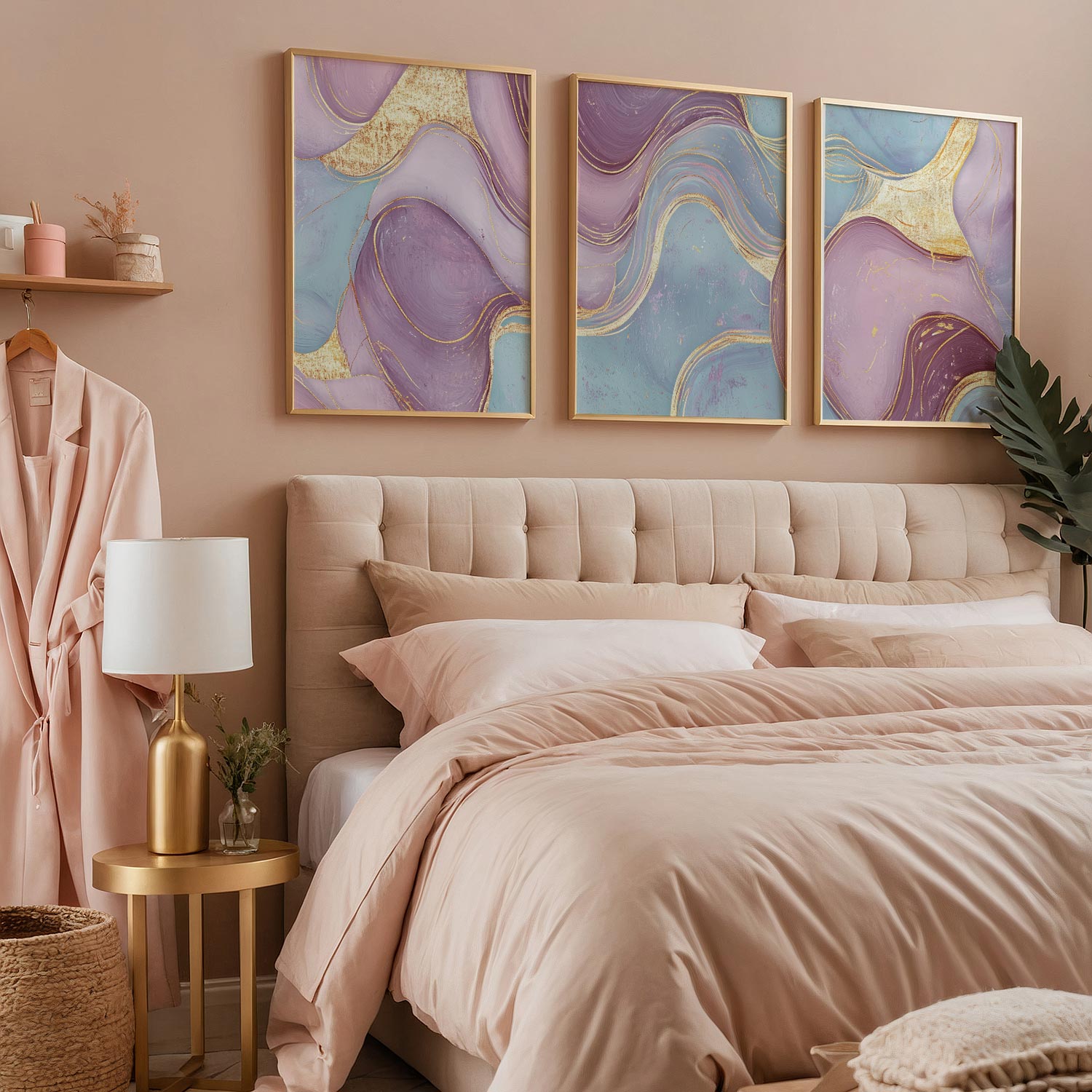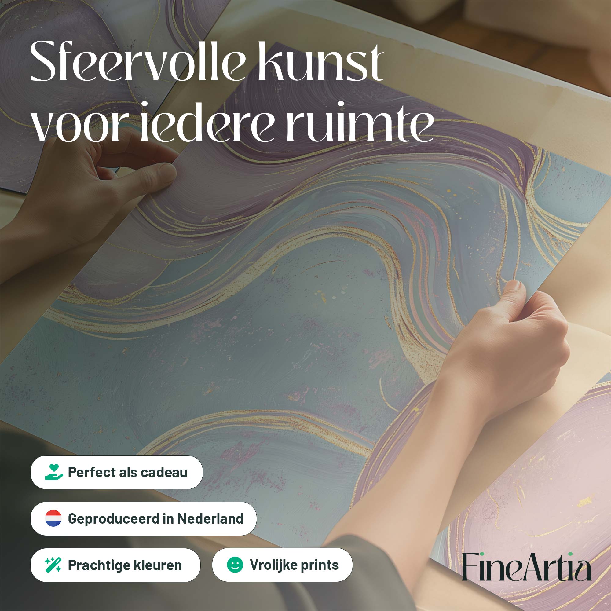 Magisch Paars & Goud: Speelse Abstracte Wanddecoratie