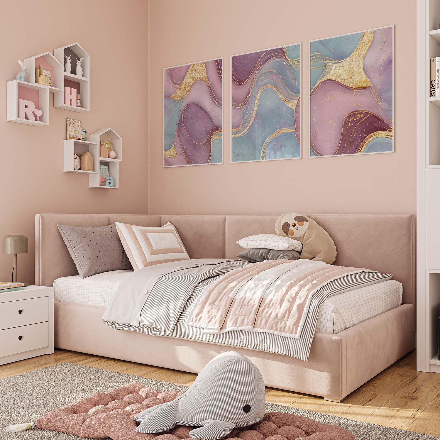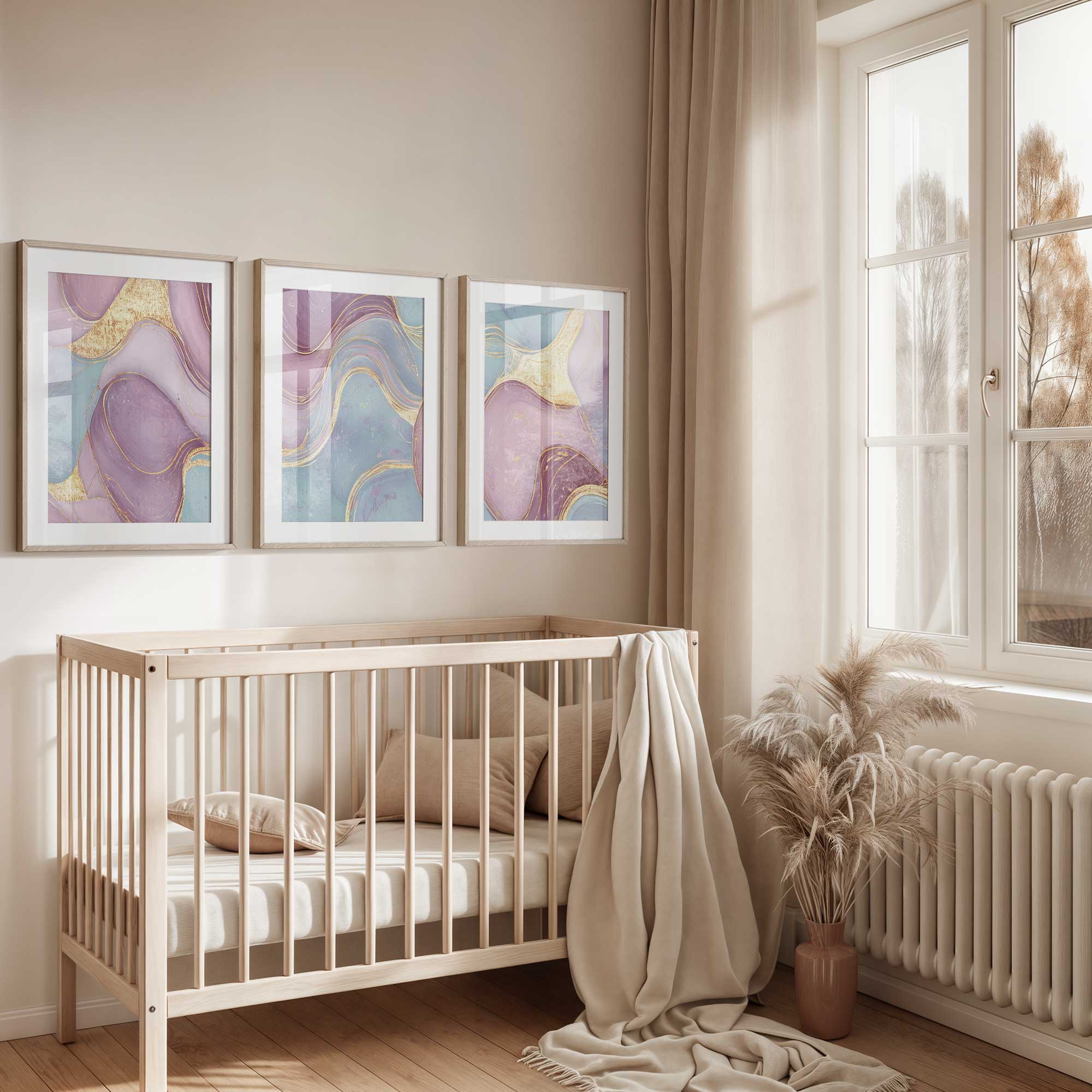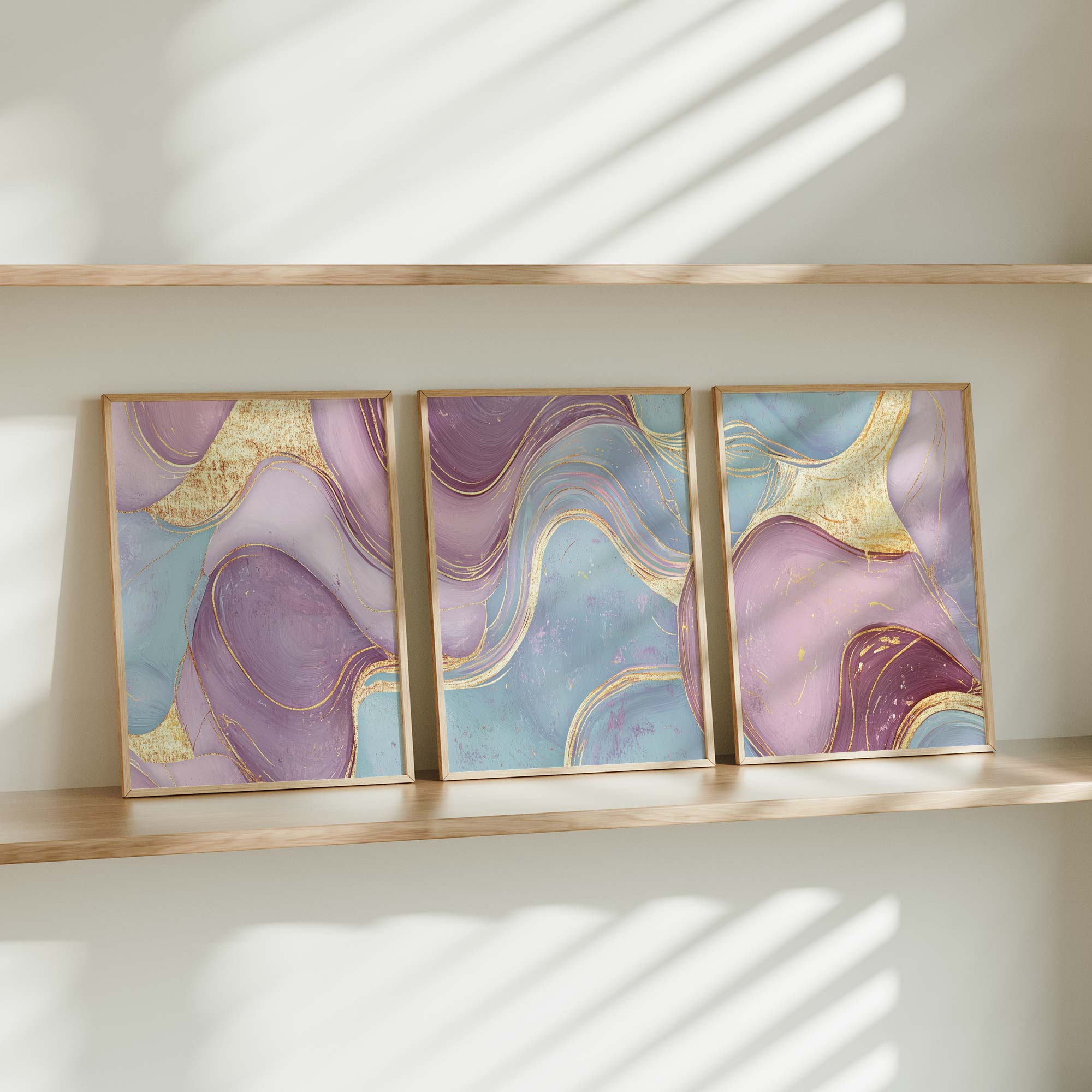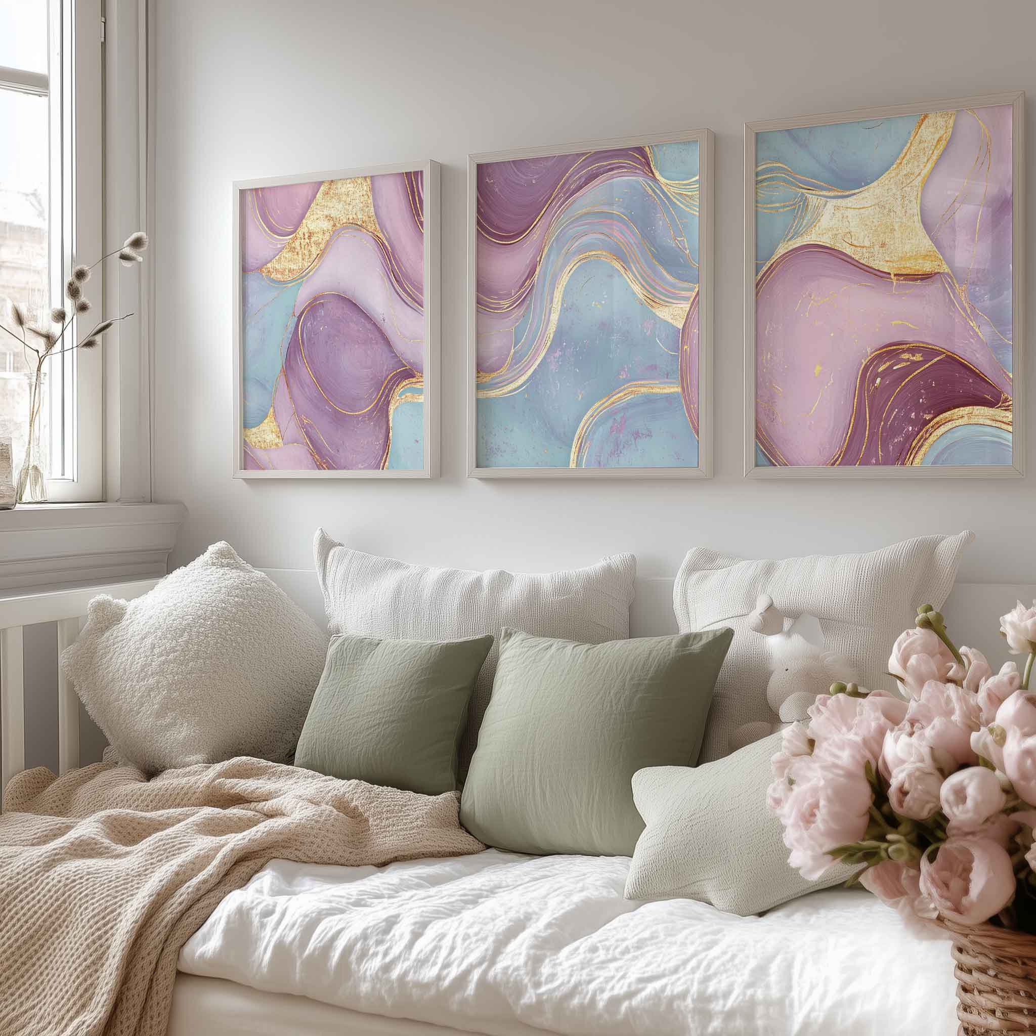 Magisch Paars & Goud: Speelse Abstracte Wanddecoratie