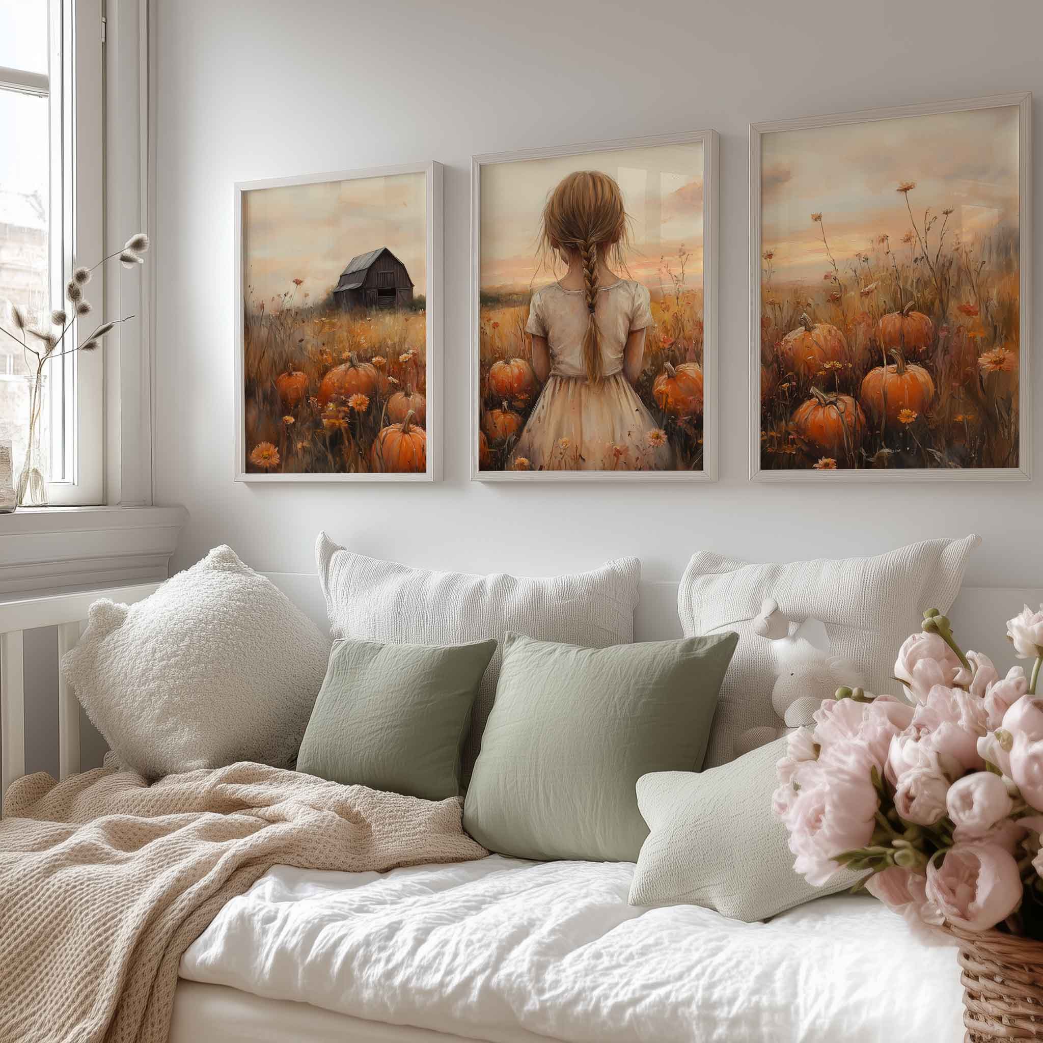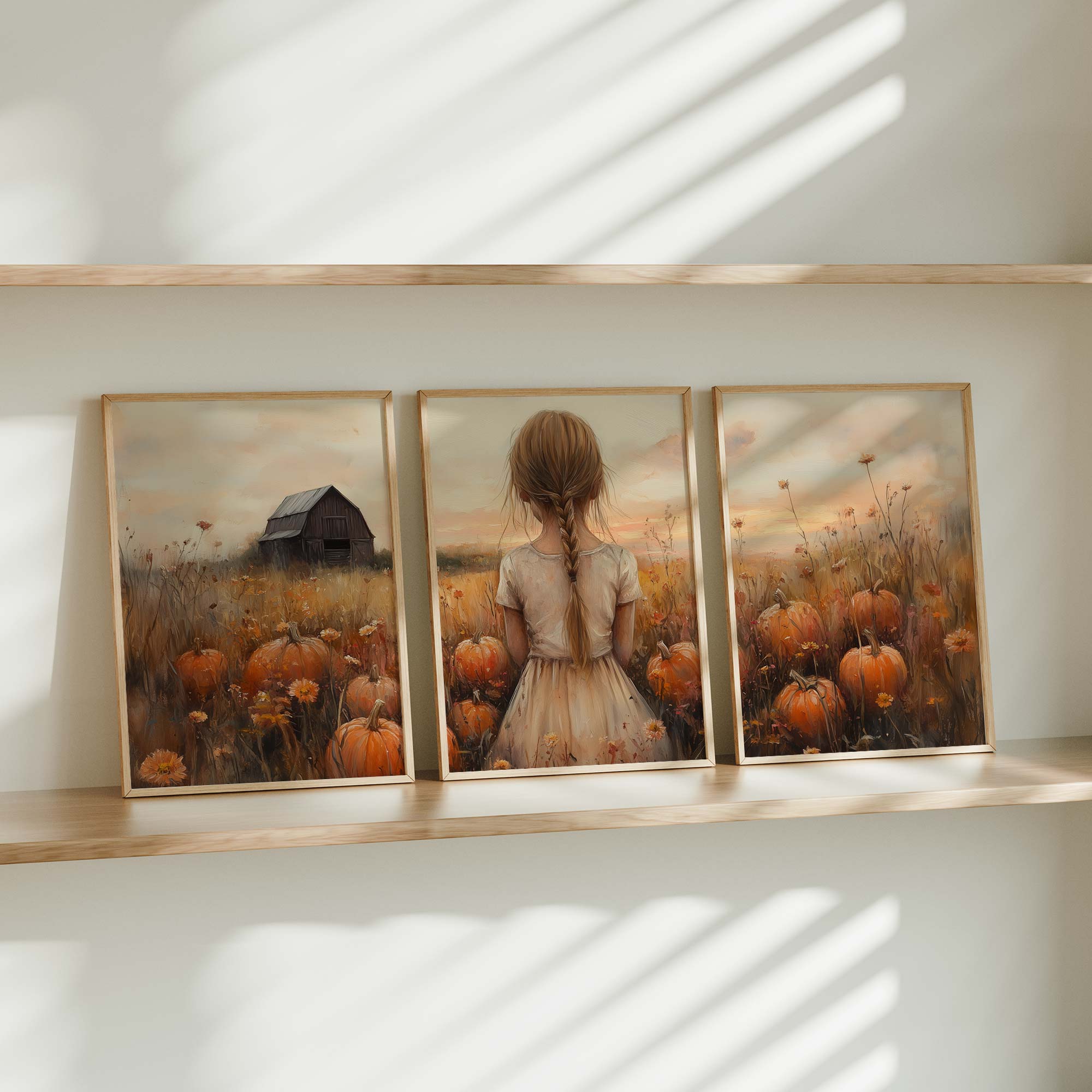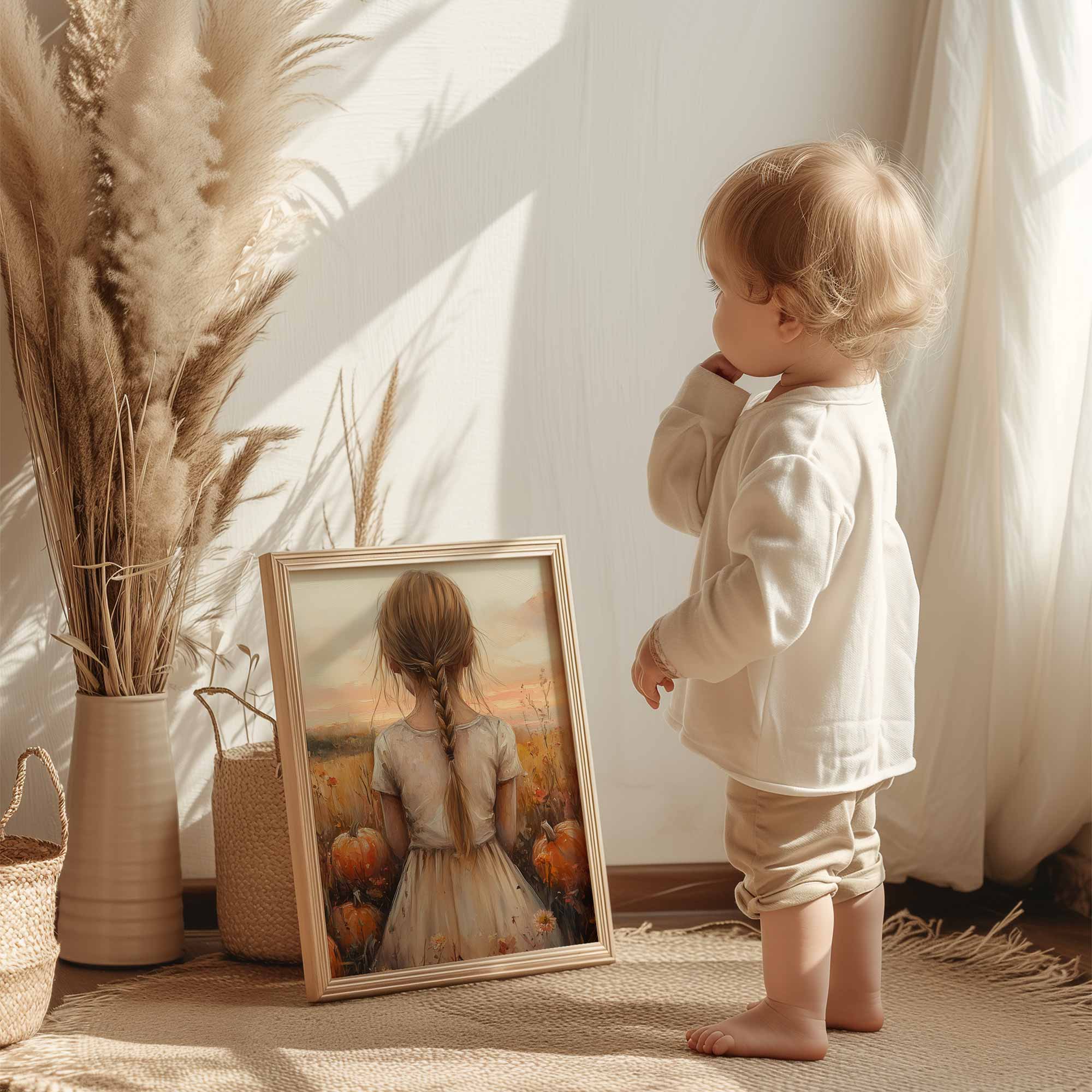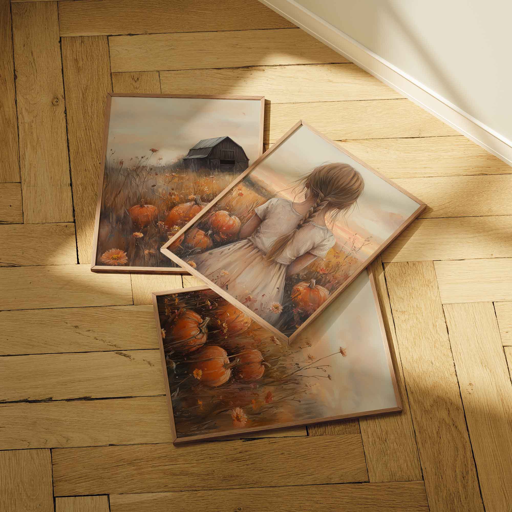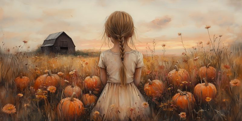 Magisch Pompoenveld met Dromerig Meisje