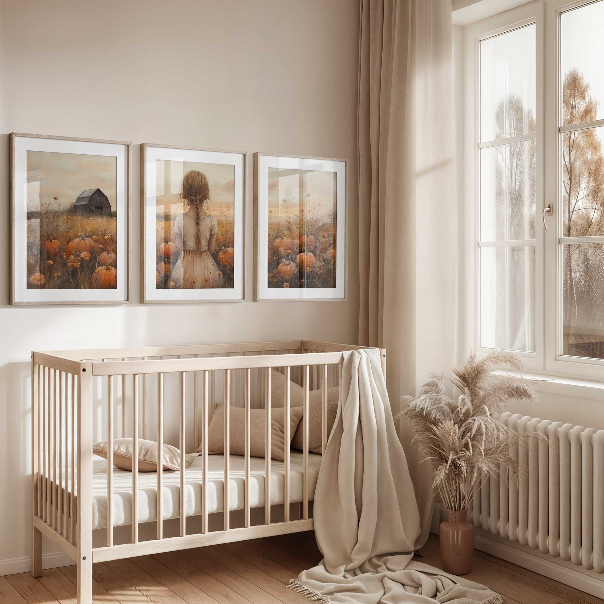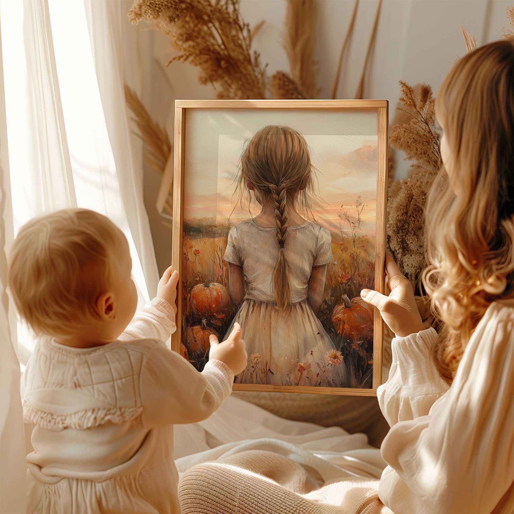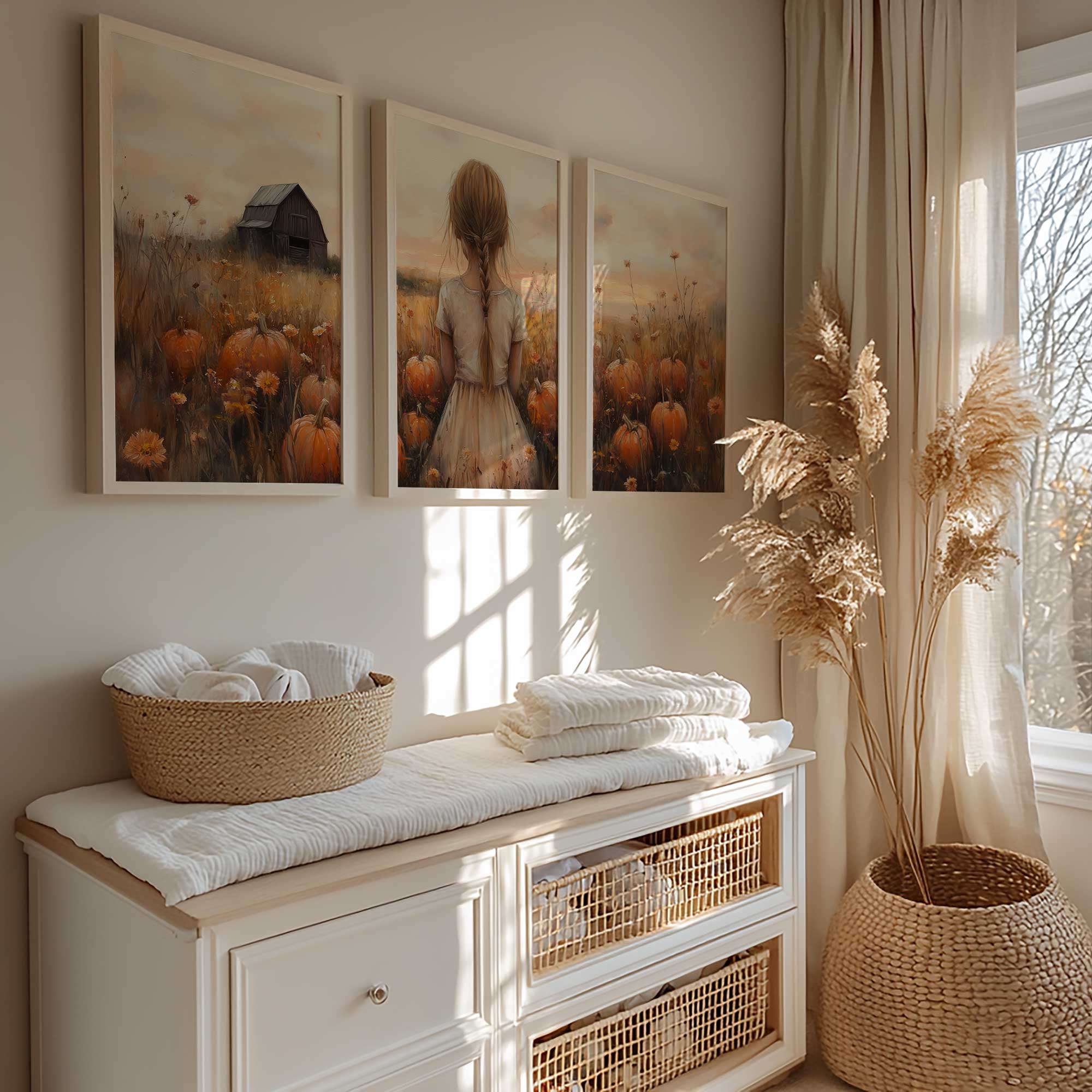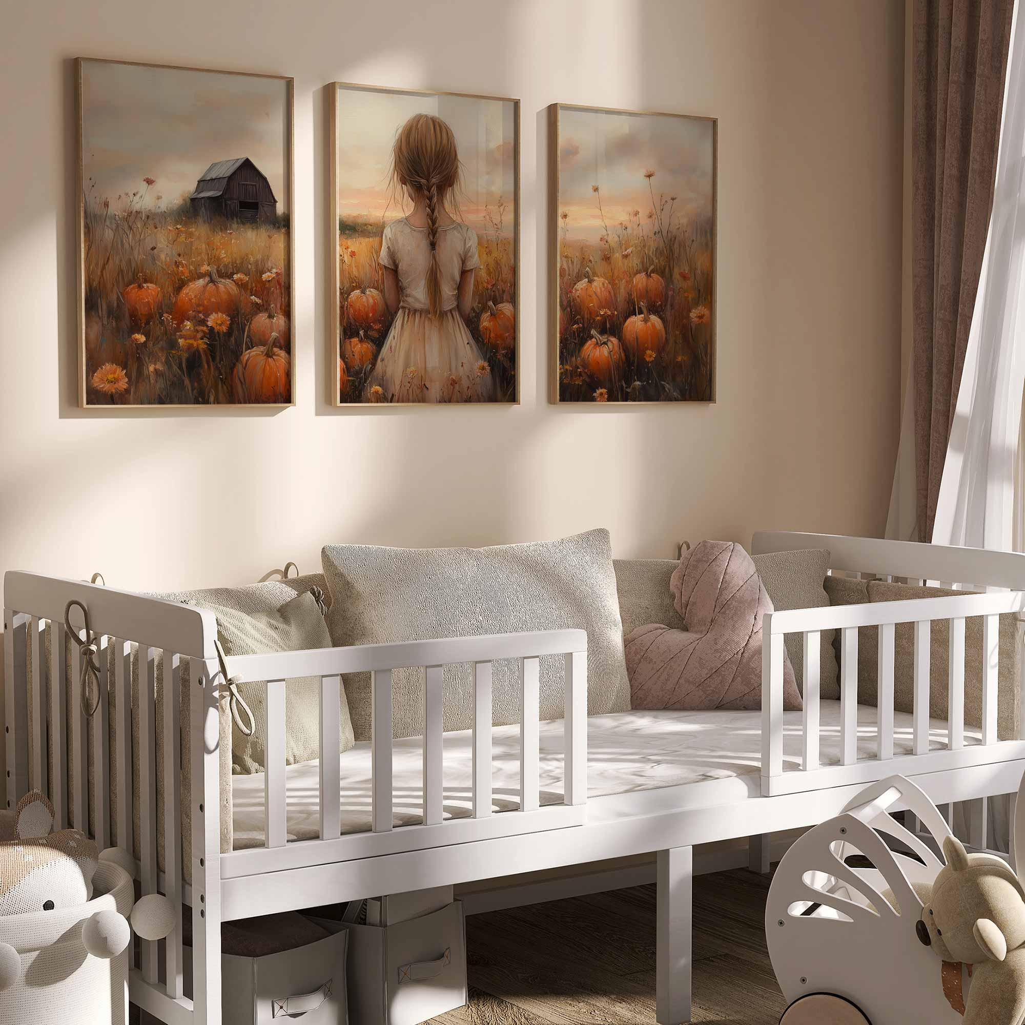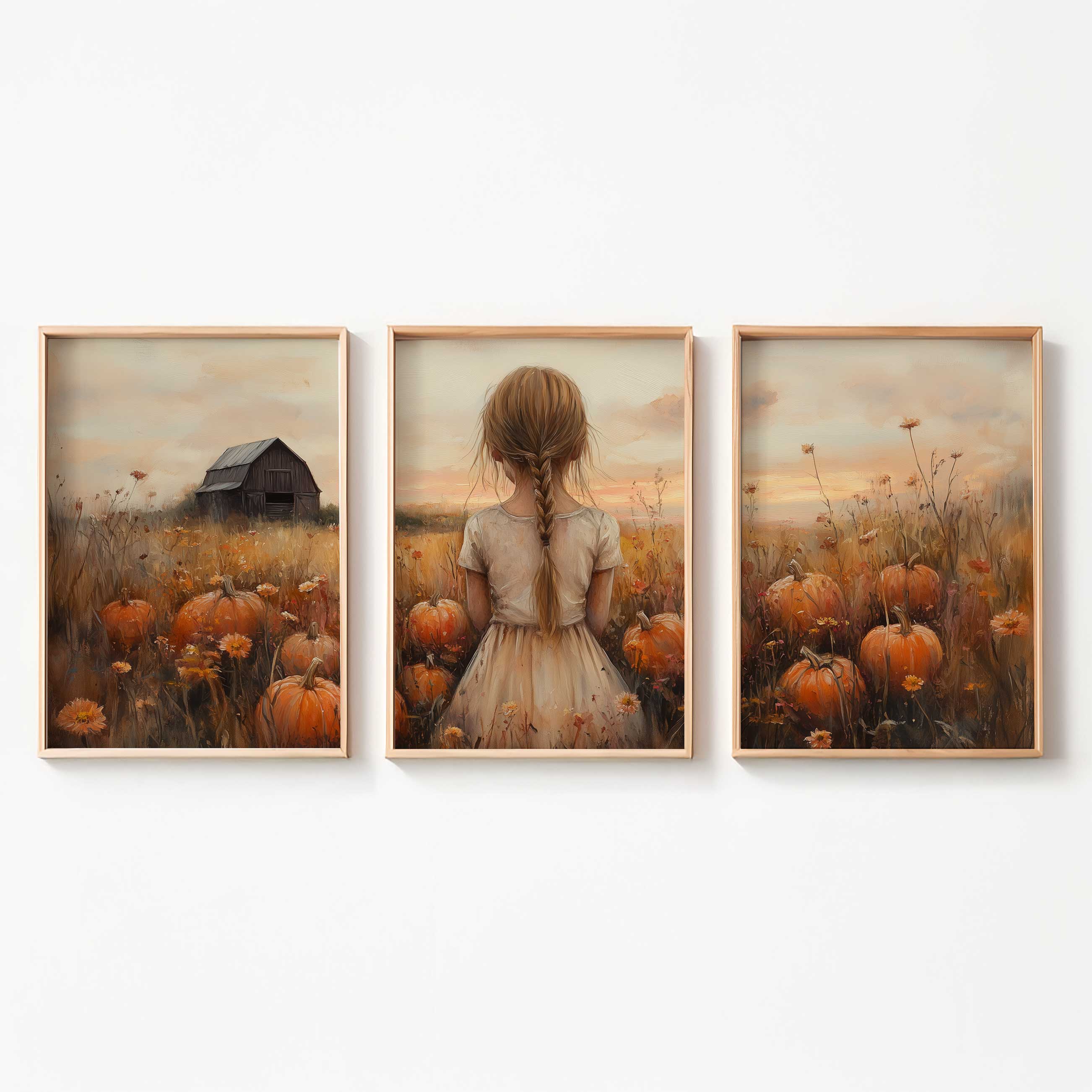 Magisch Pompoenveld met Dromerig Meisje