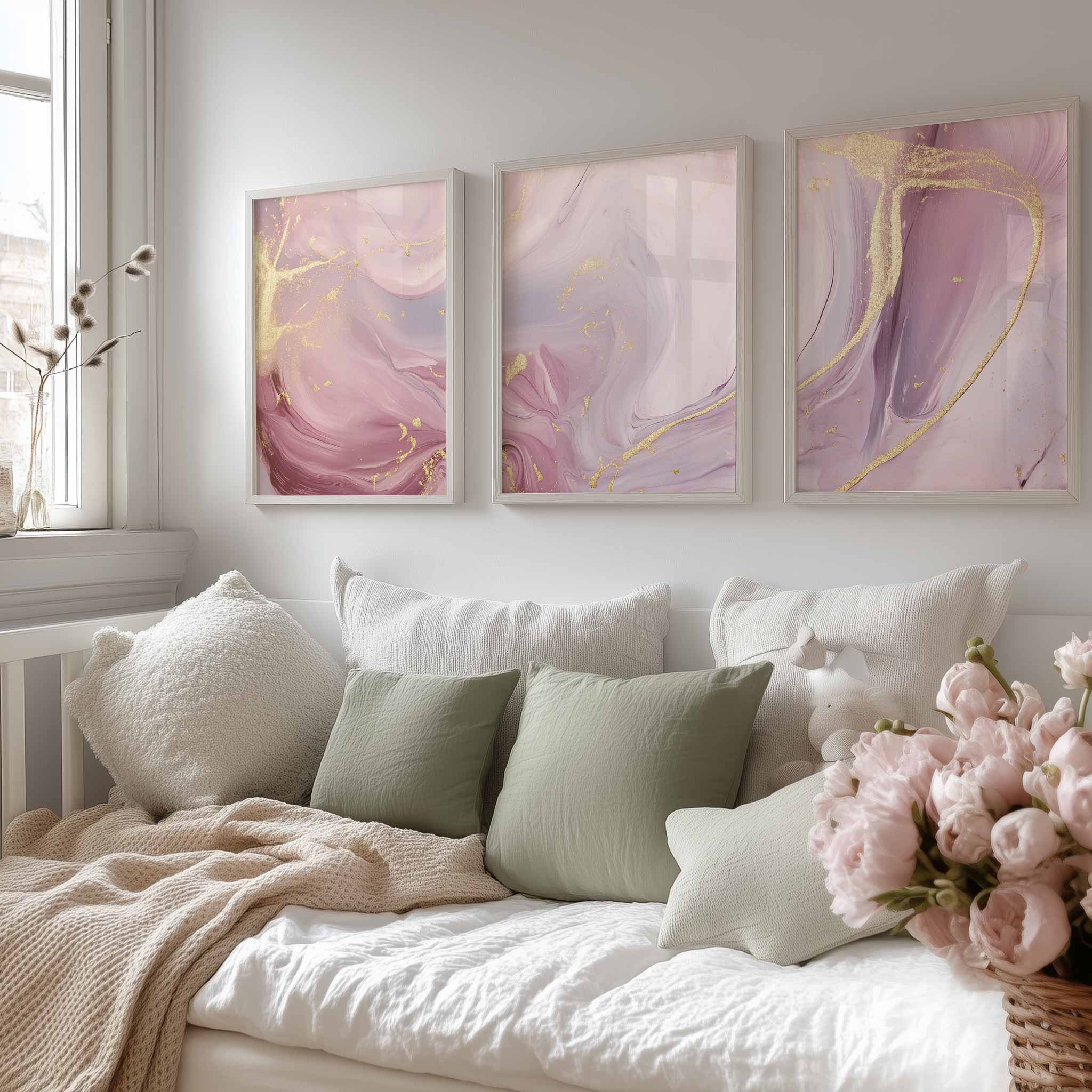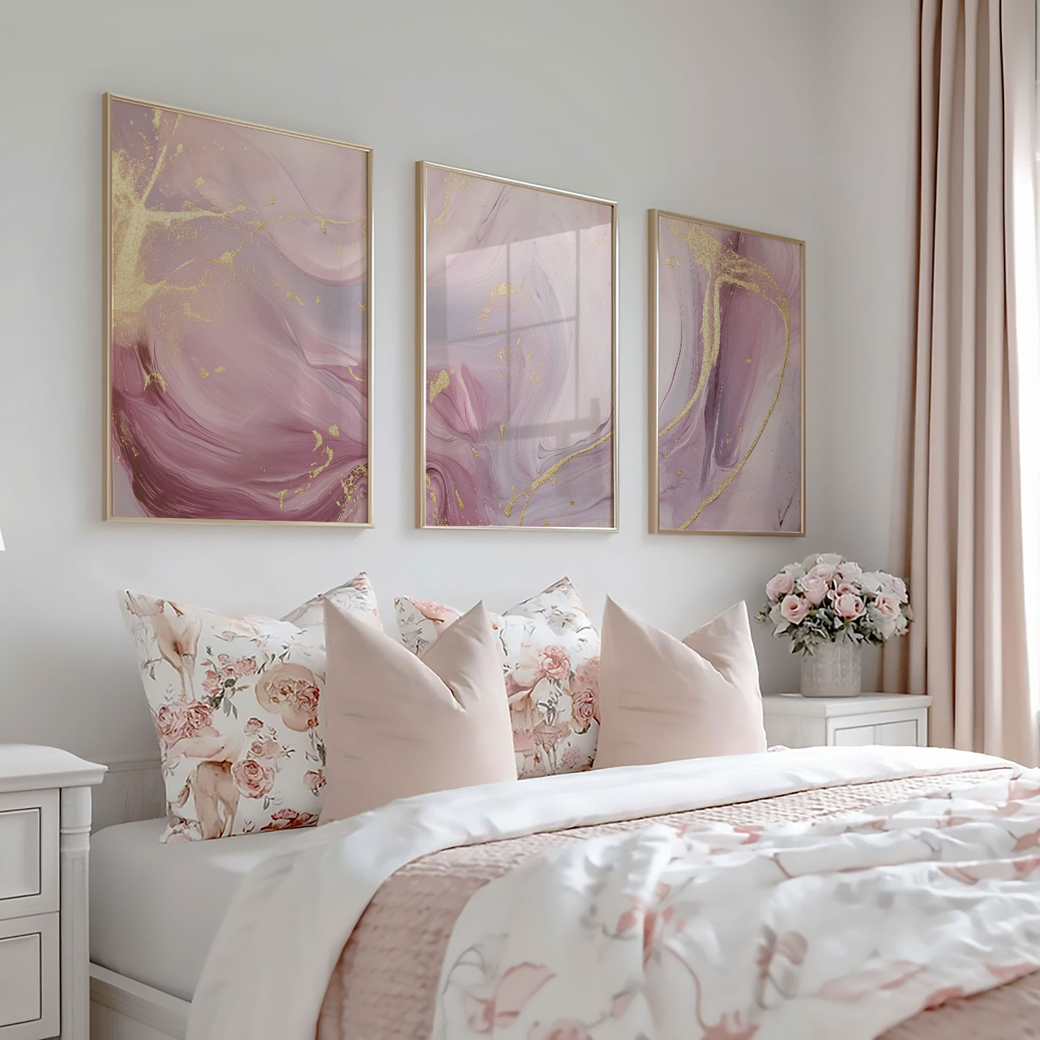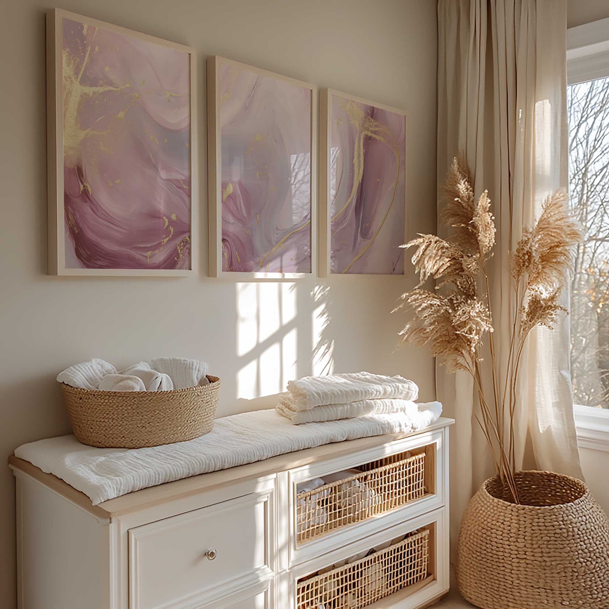 Magisch Roze & Paars Glitterlandschap met Gouden Accenten