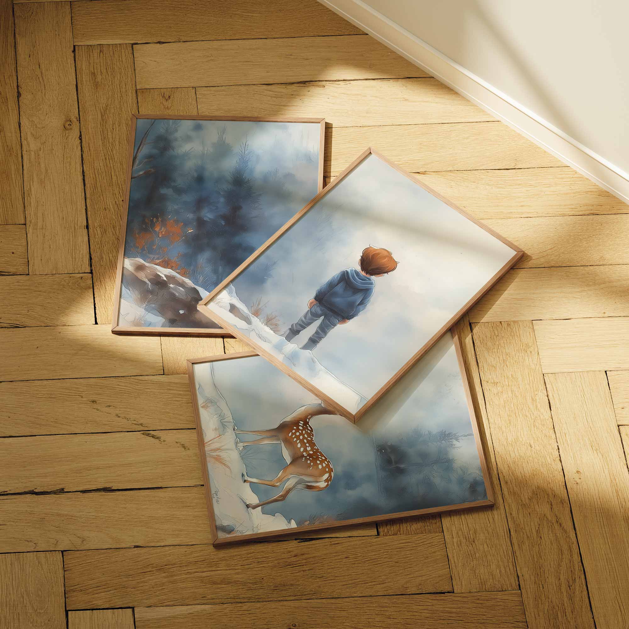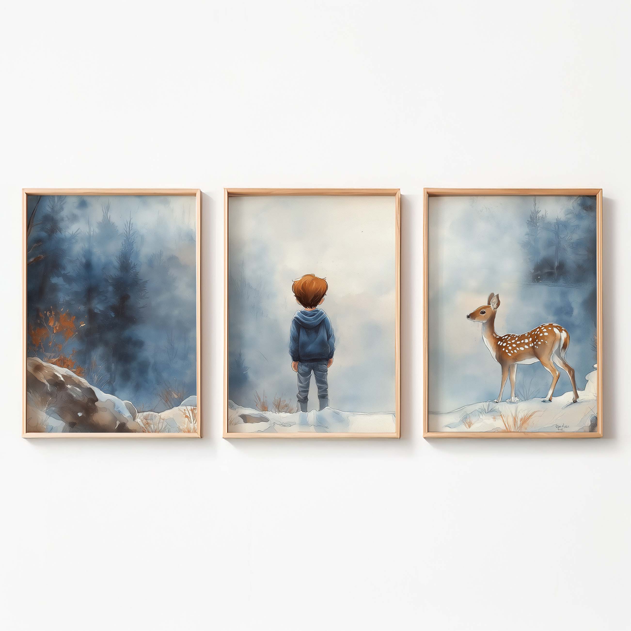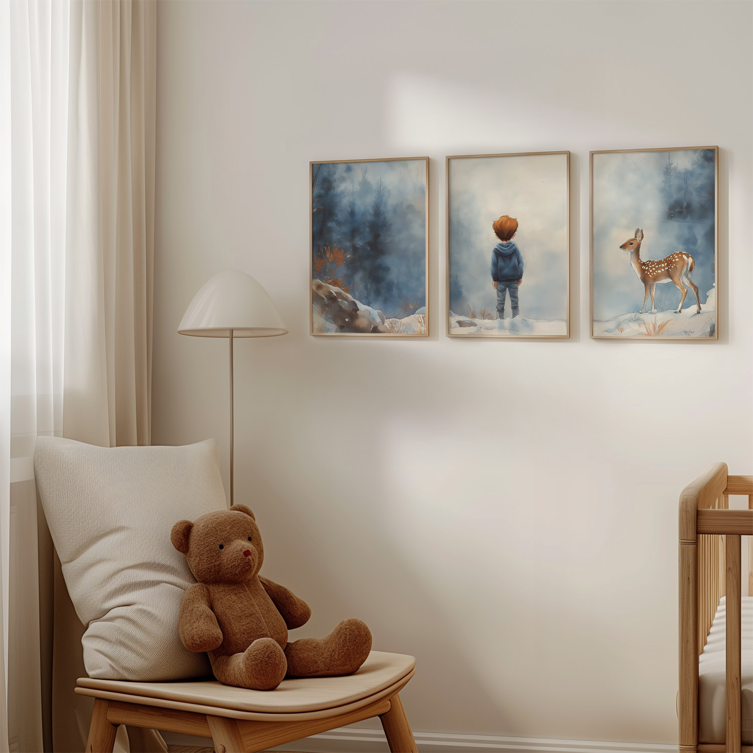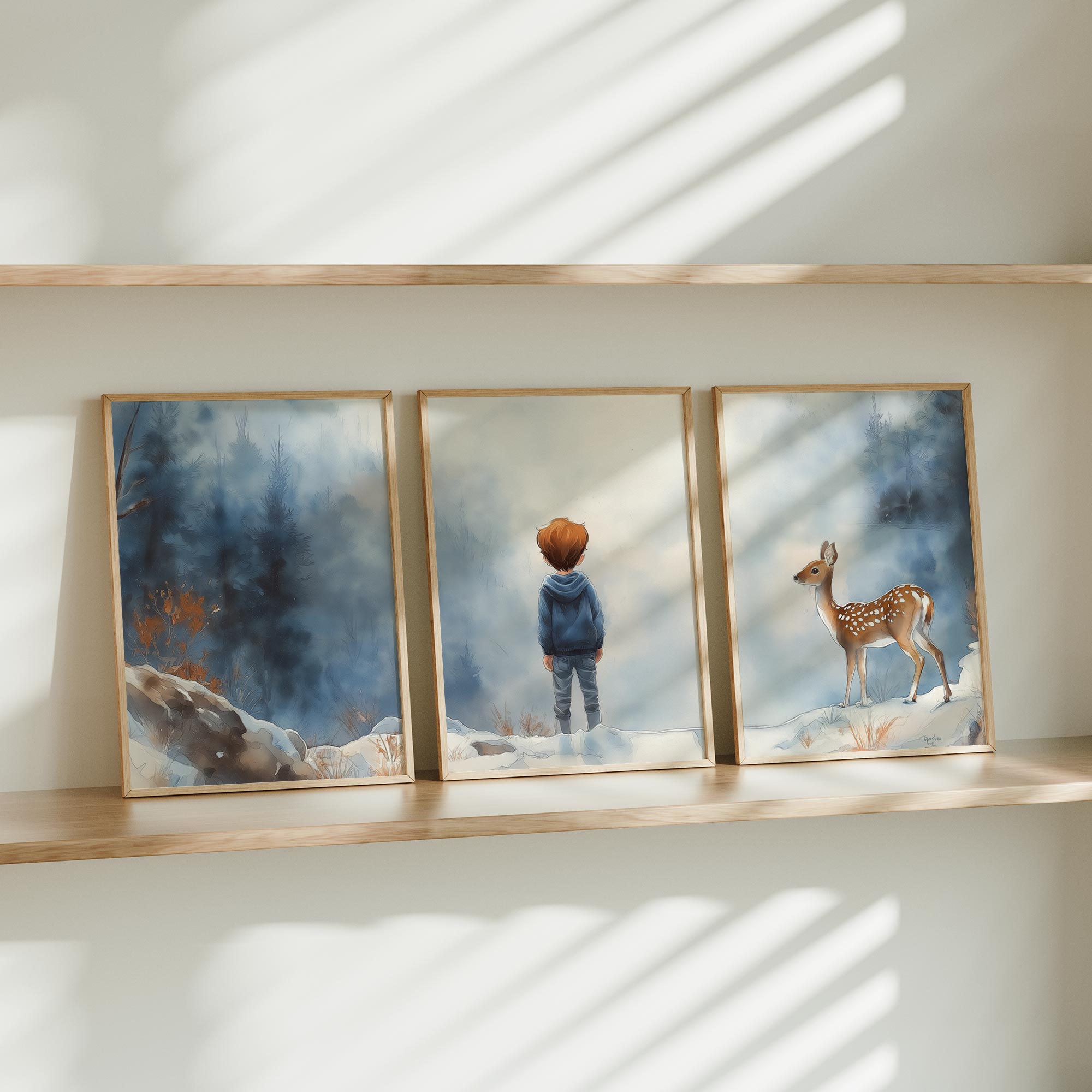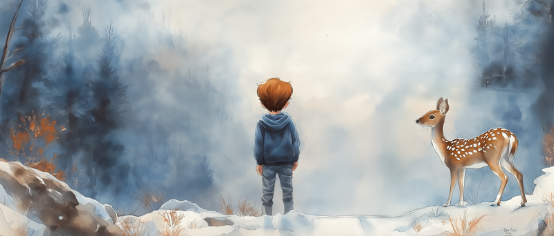 Magisch Winterbos: Jongen en Hert in Sneeuw