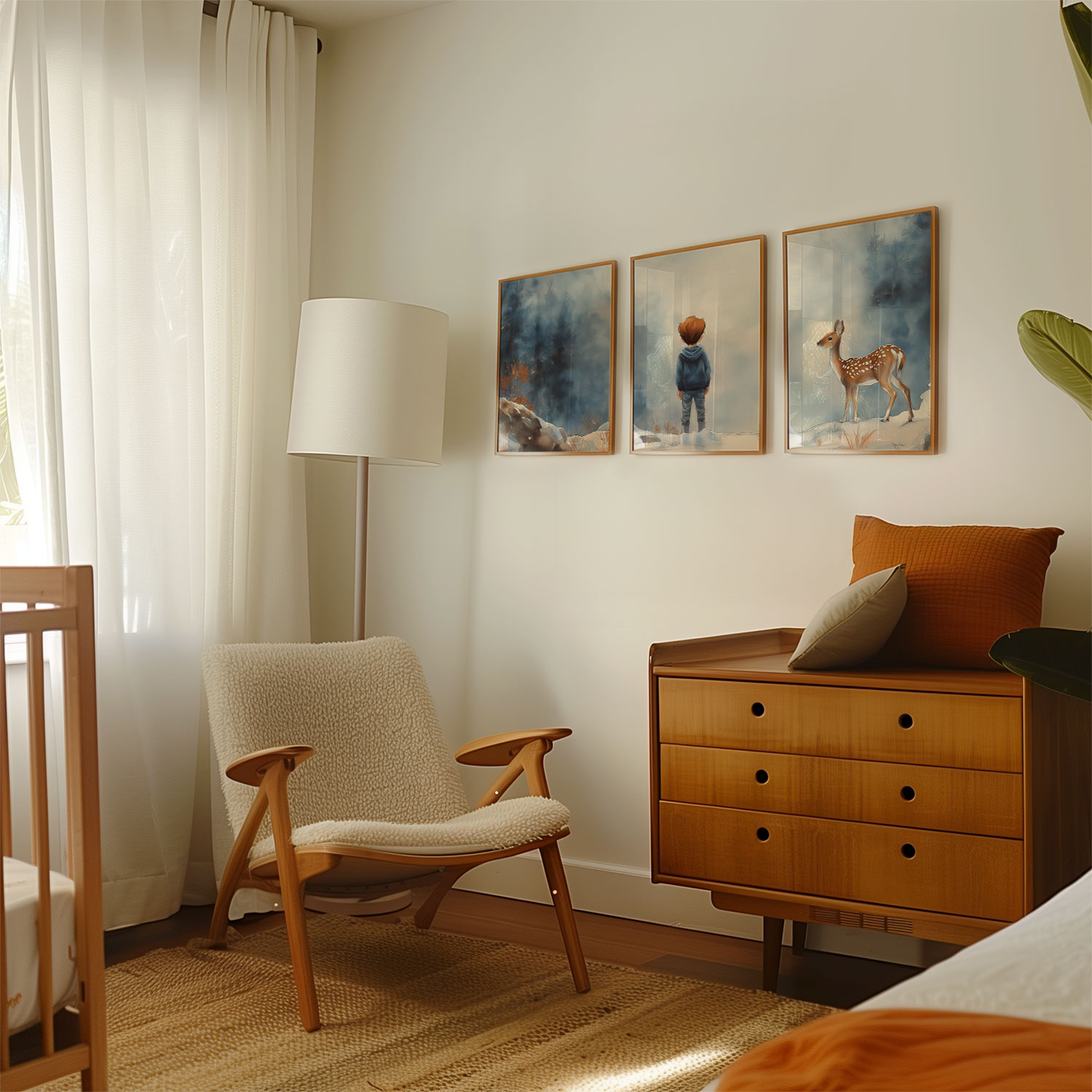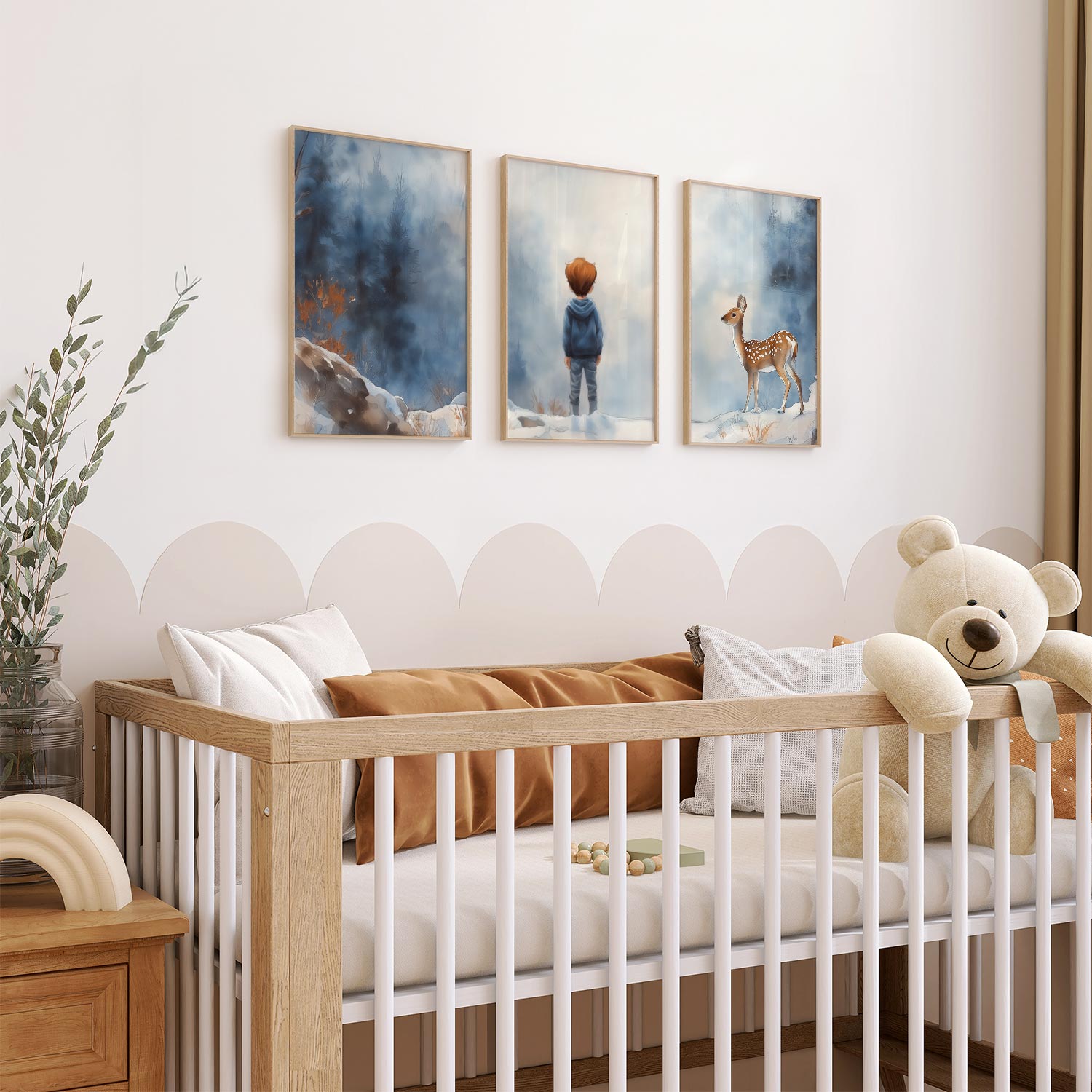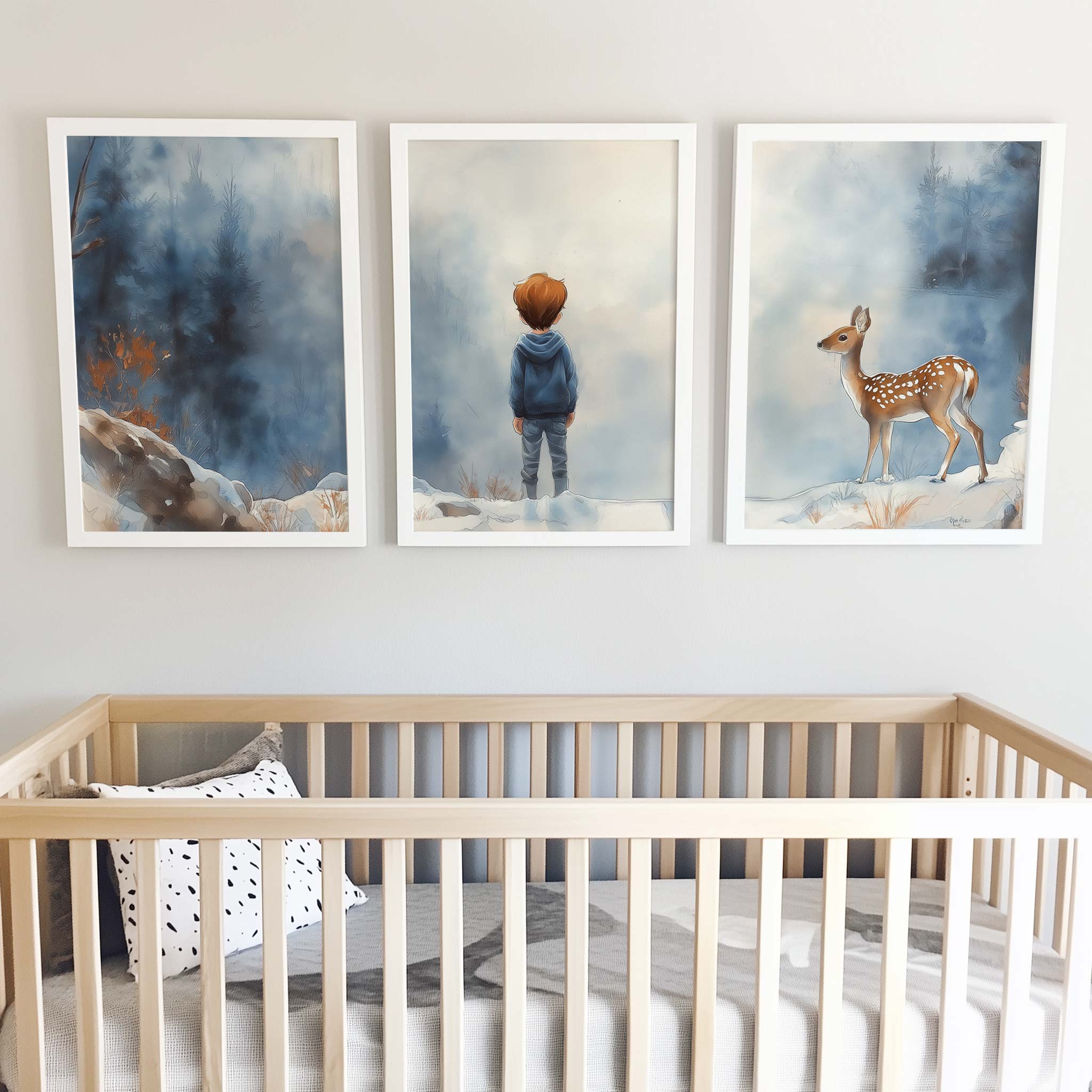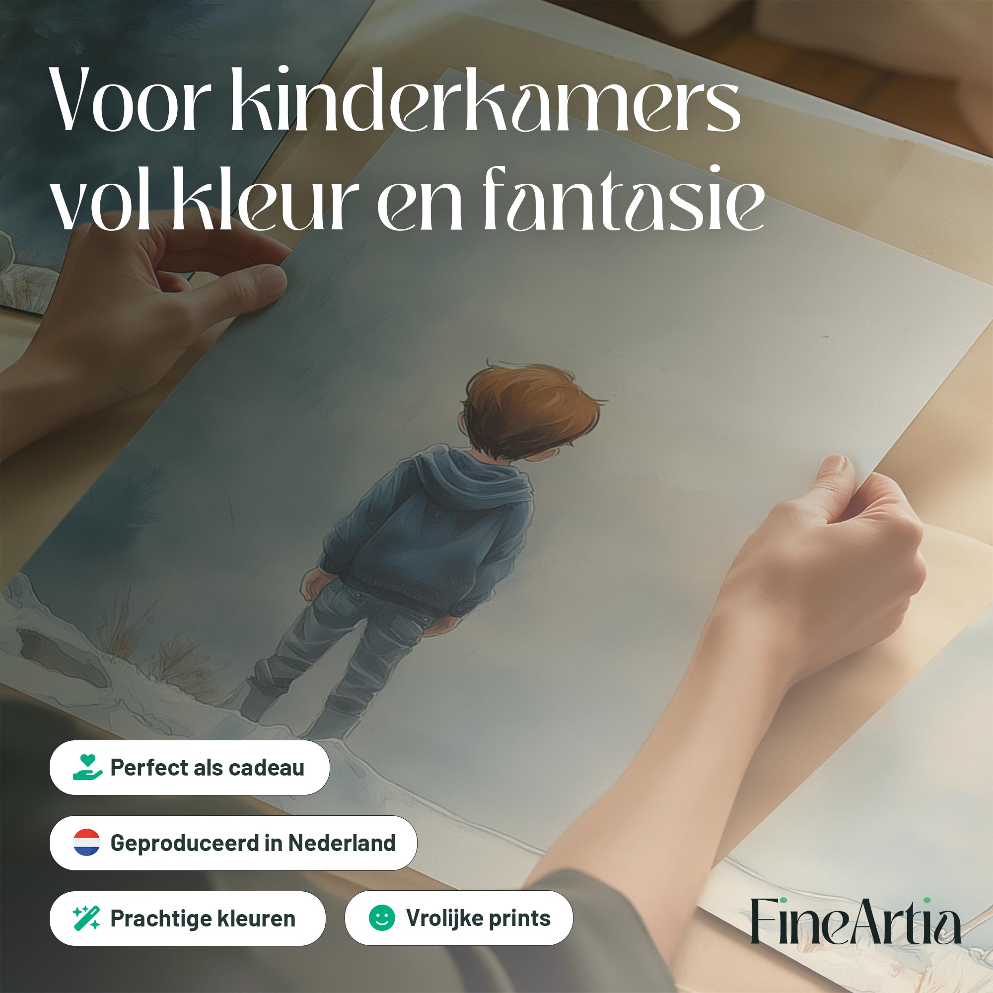 Magisch Winterbos: Jongen en Hert in Sneeuw