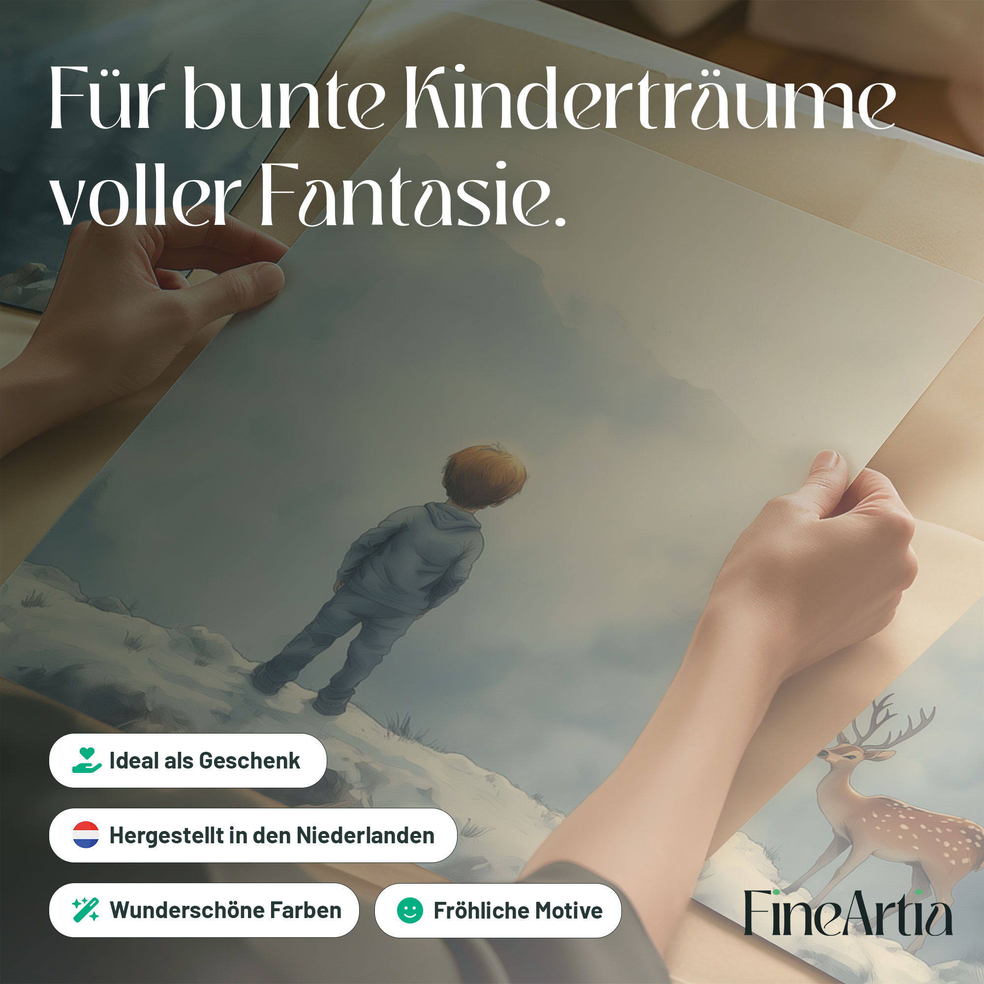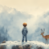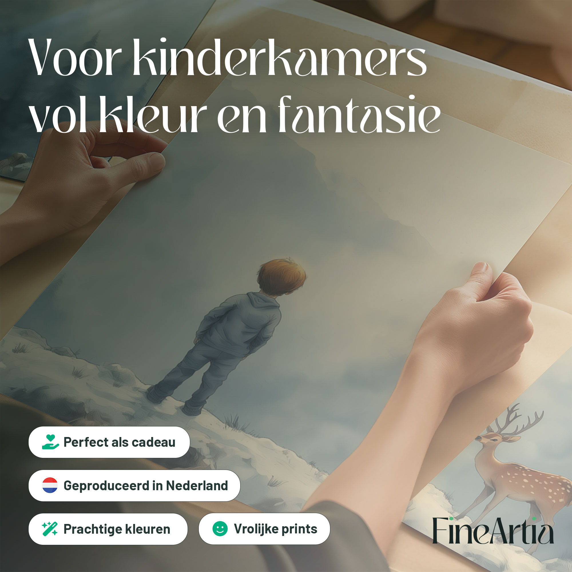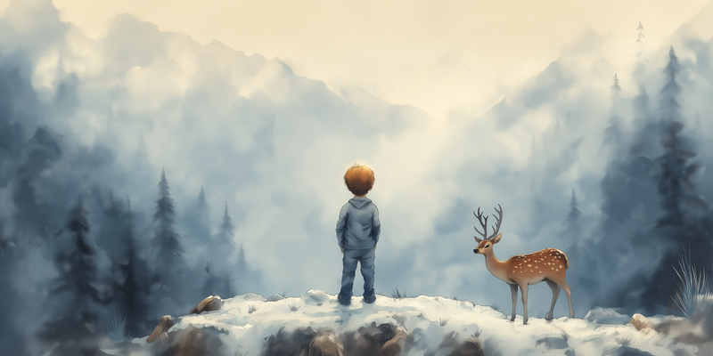 Magisch Wintermoment: Jongen en Hert in Sneeuw