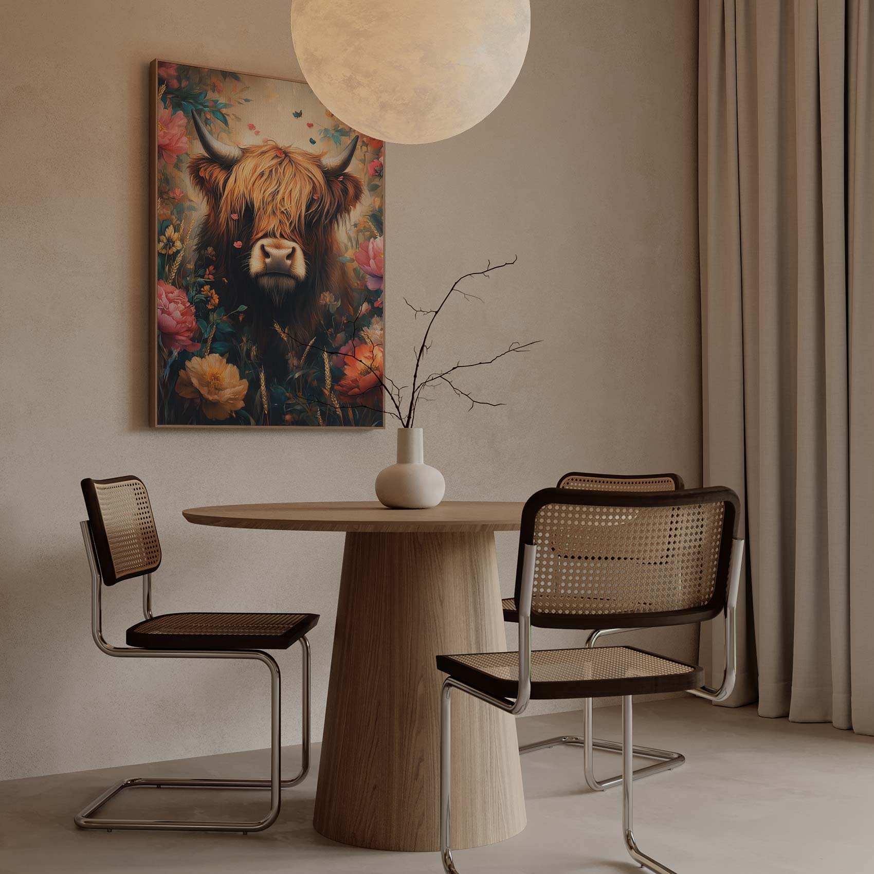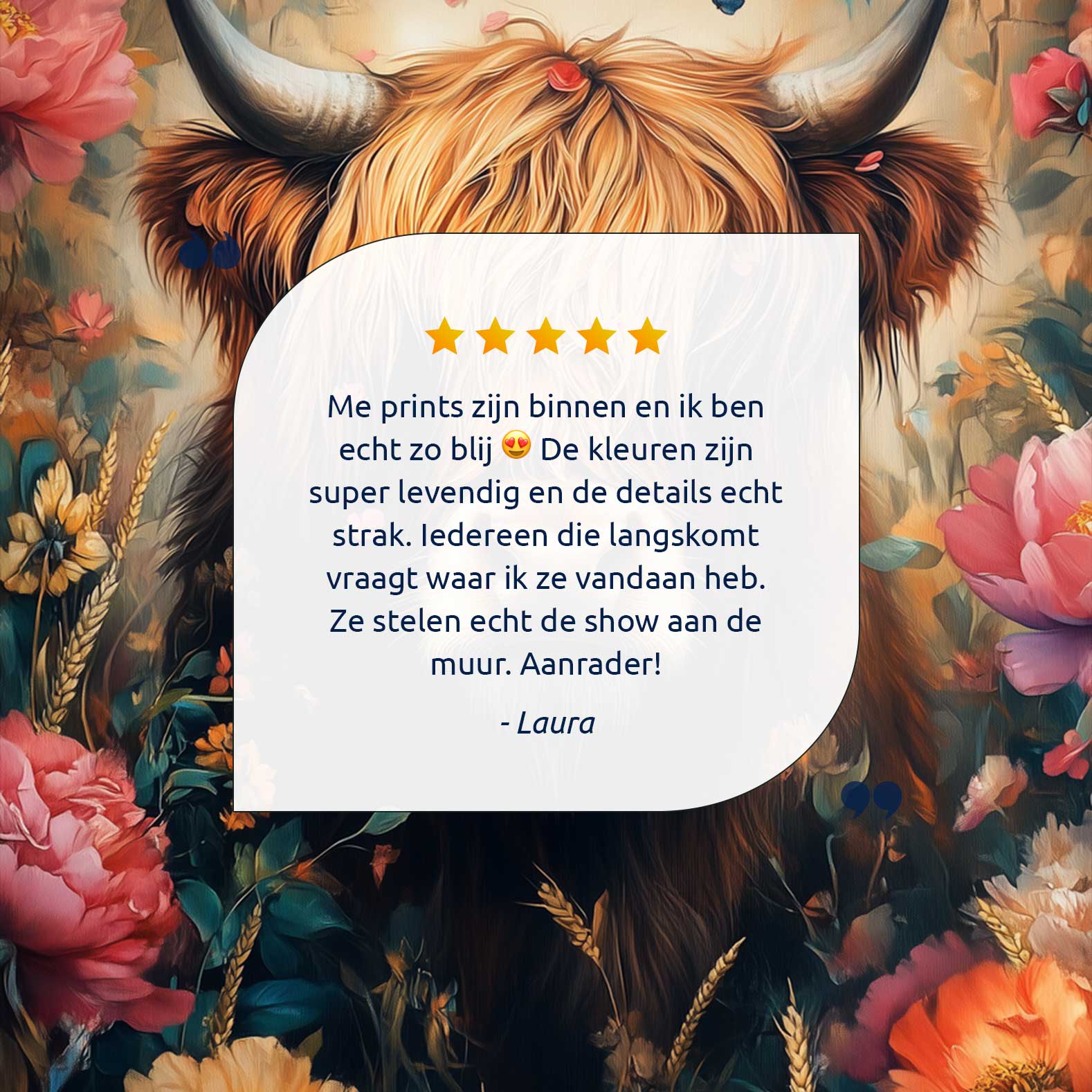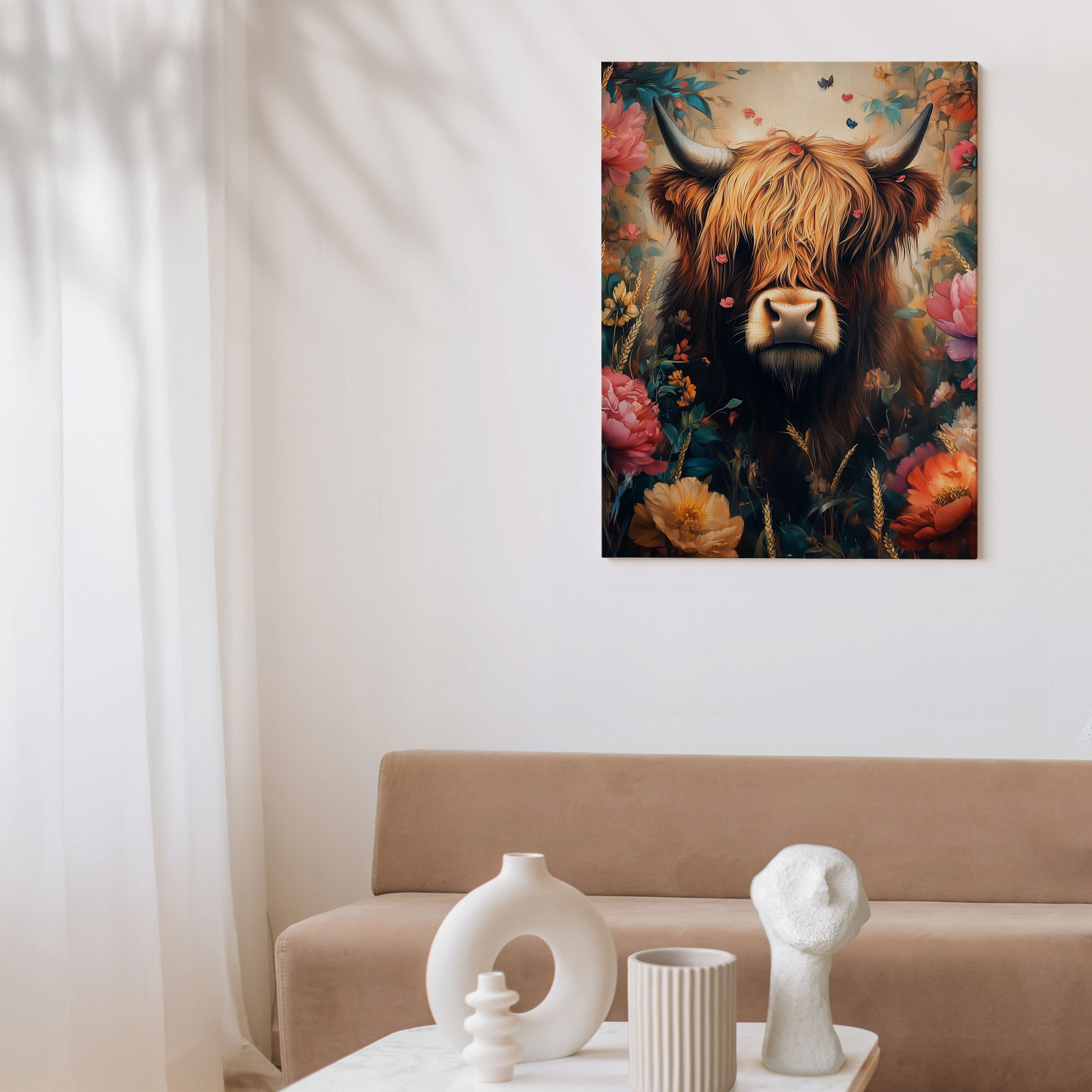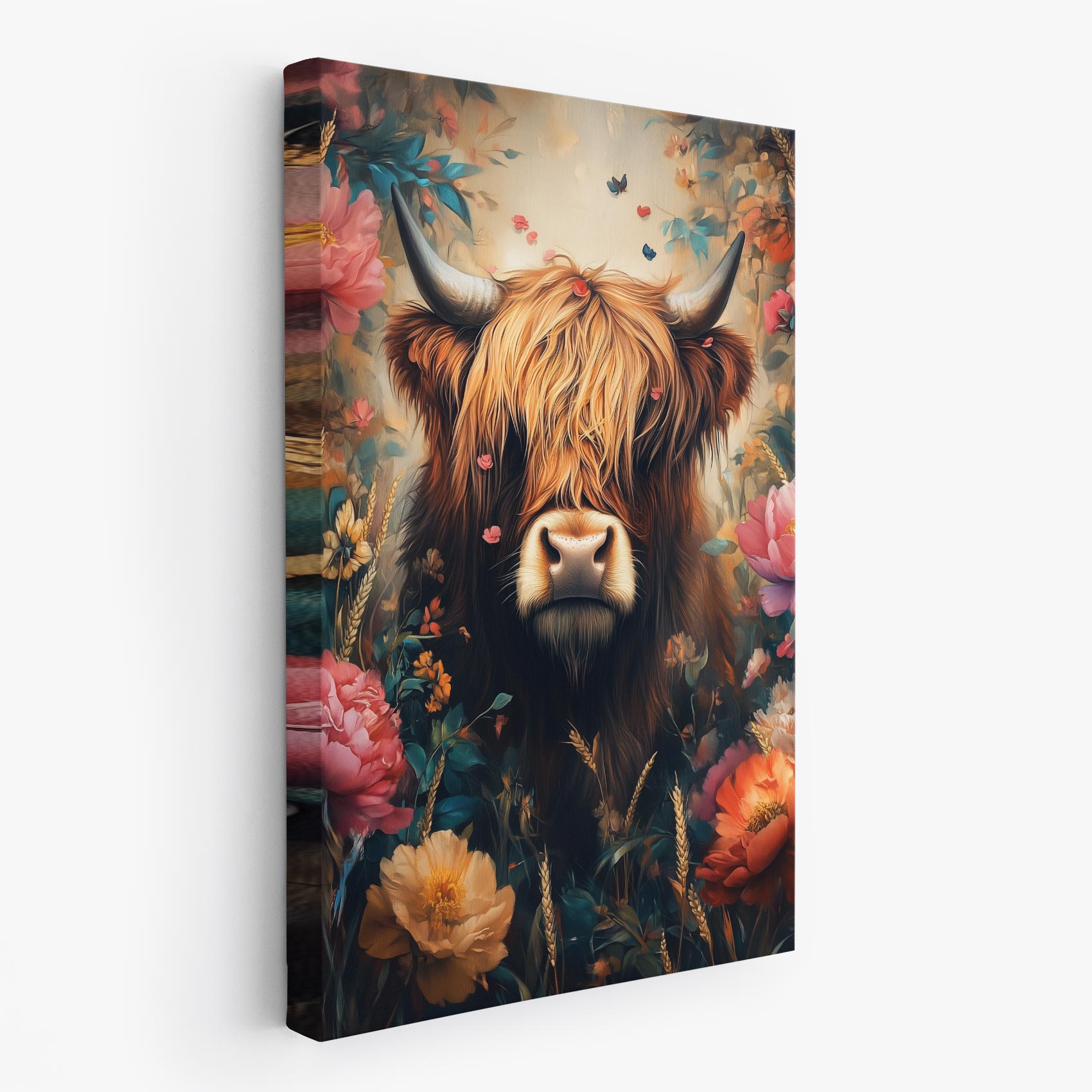 Terug naar collectie Canvas Magische koe in bloementuin