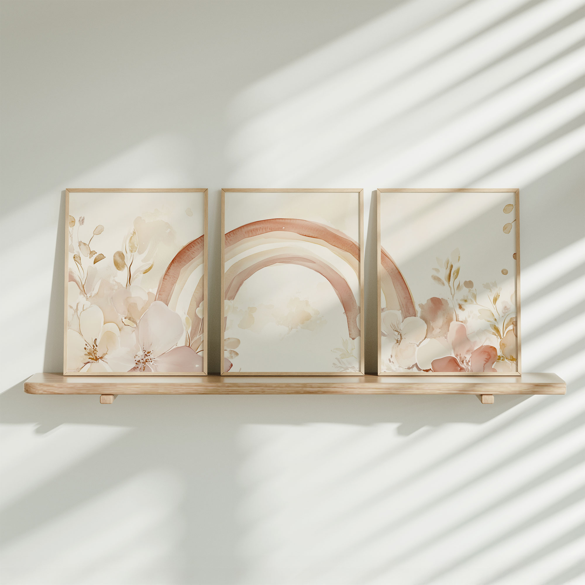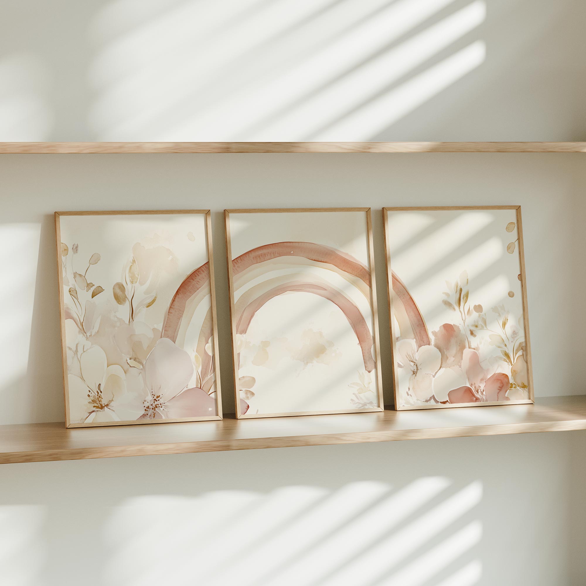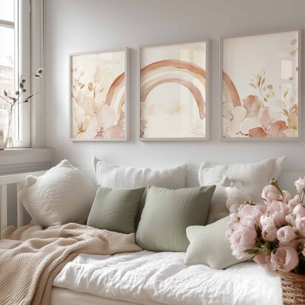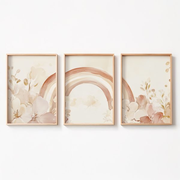 Magische Regenboog en Bloemen in Pastel Watercolor Stijl