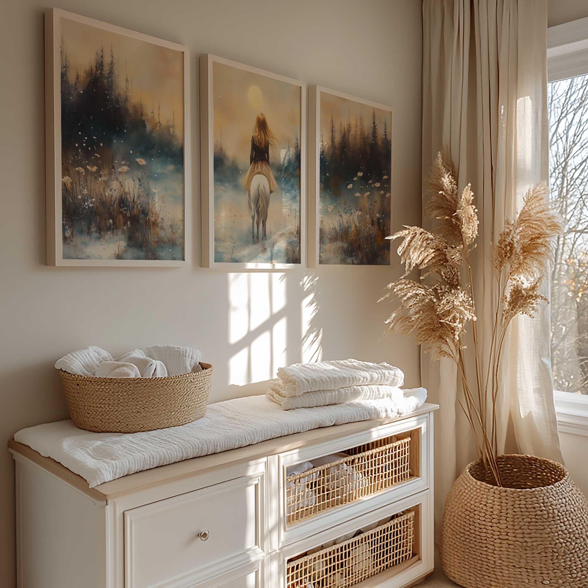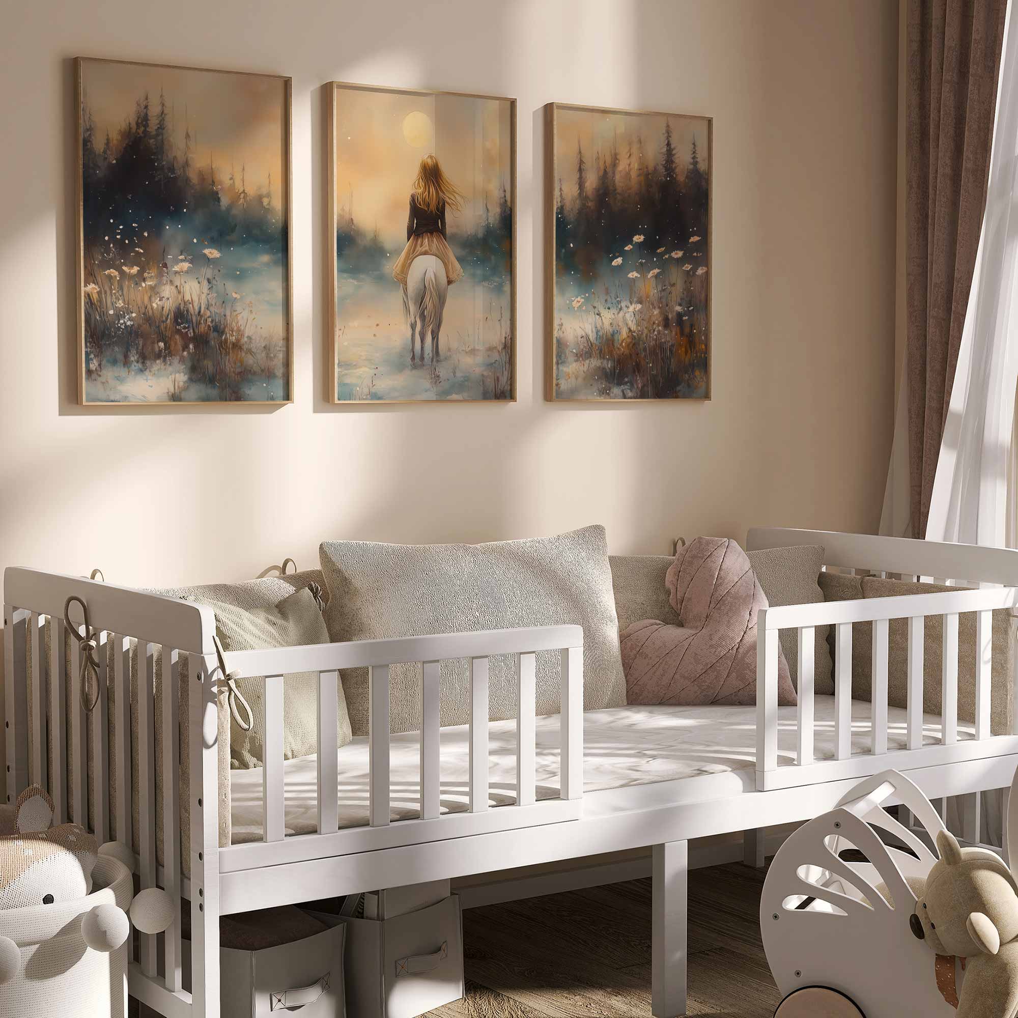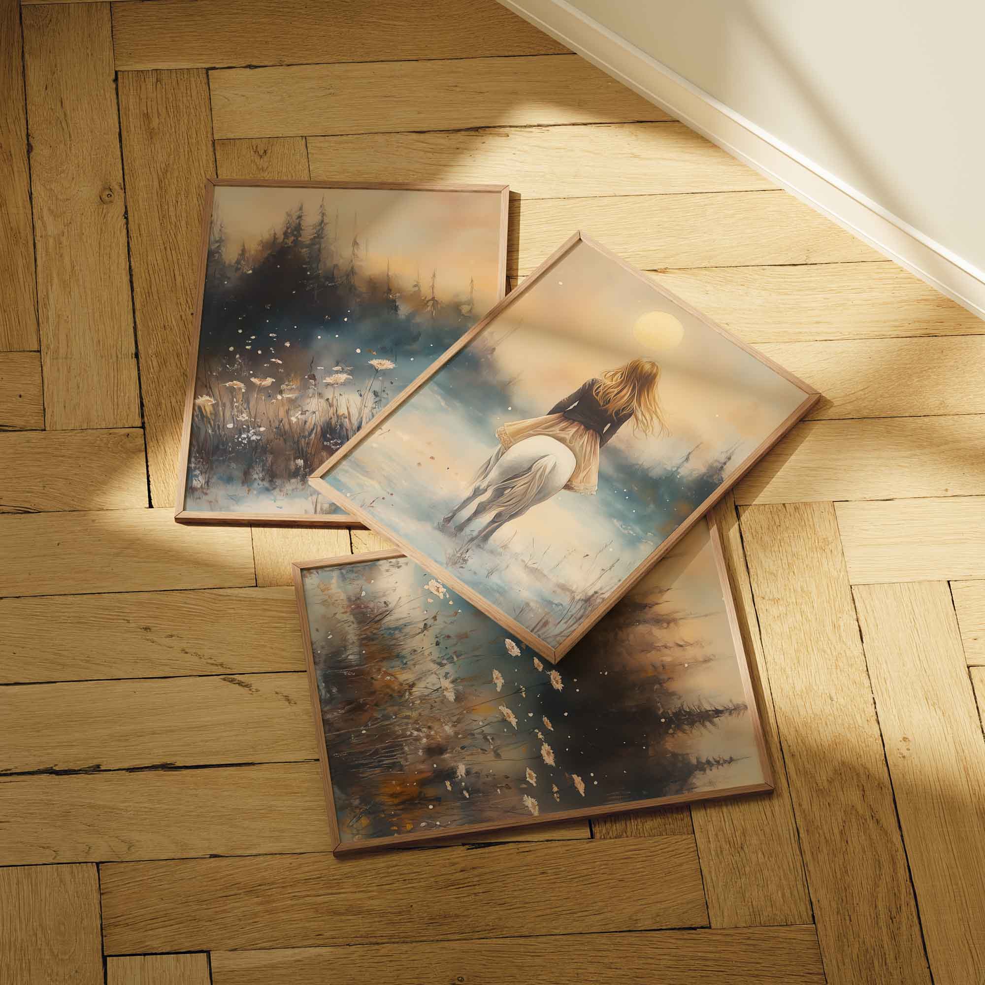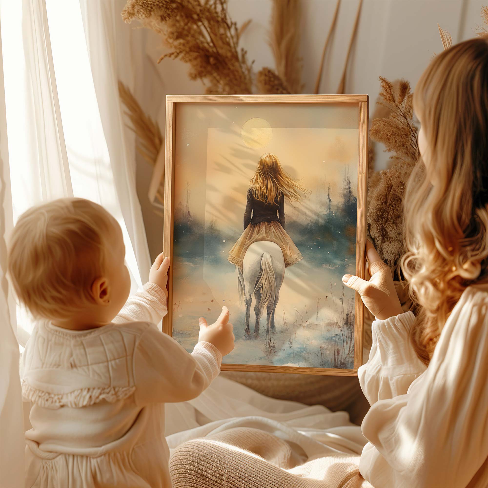 Terug naar collectie Posters Magische Sneeuwprinses op Witte Paard bij Volle Maan