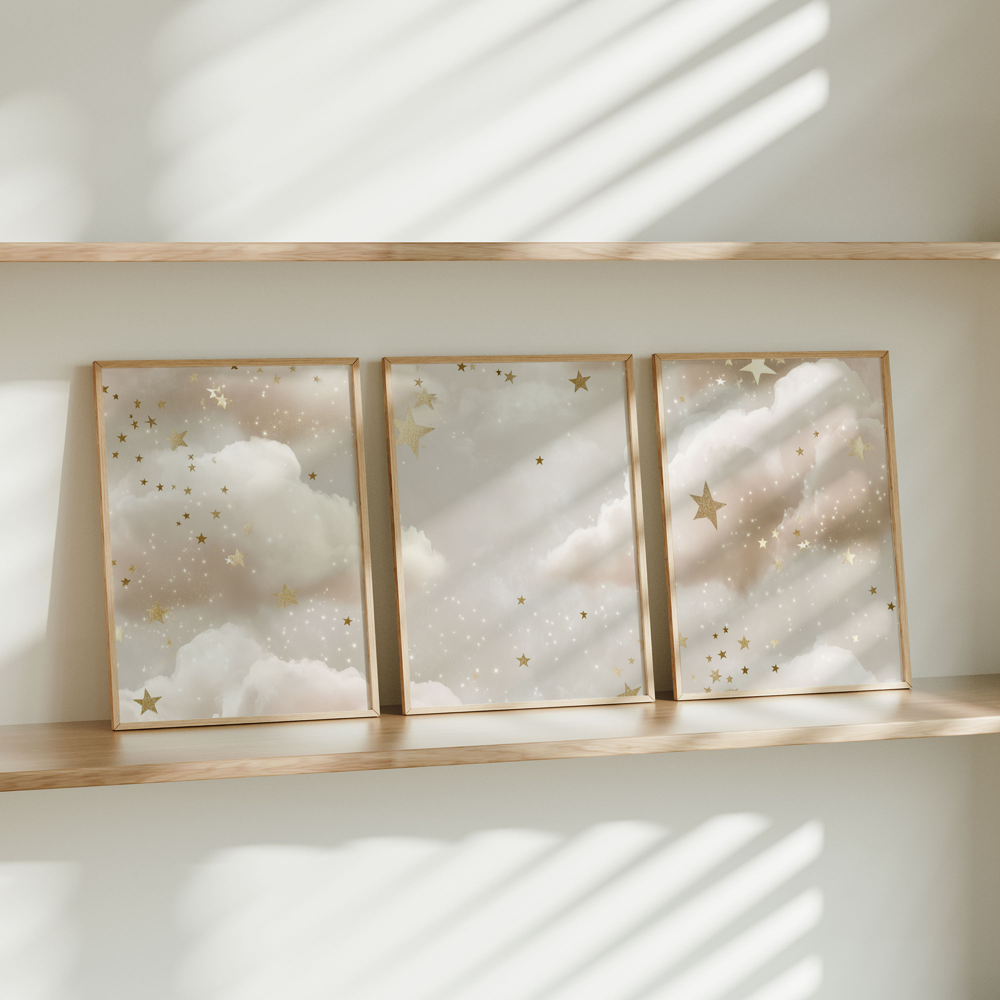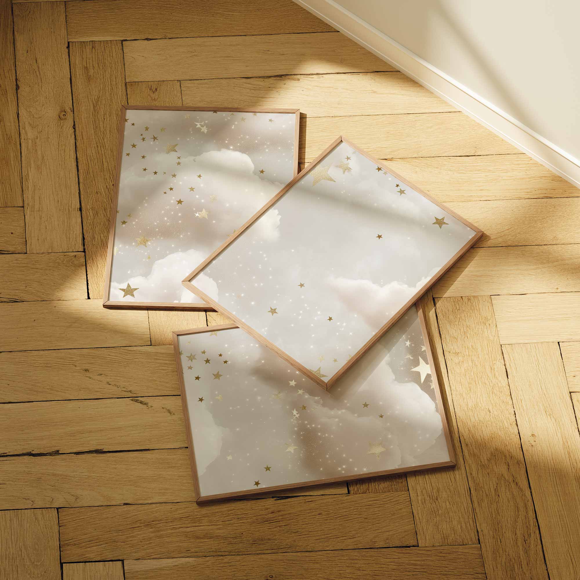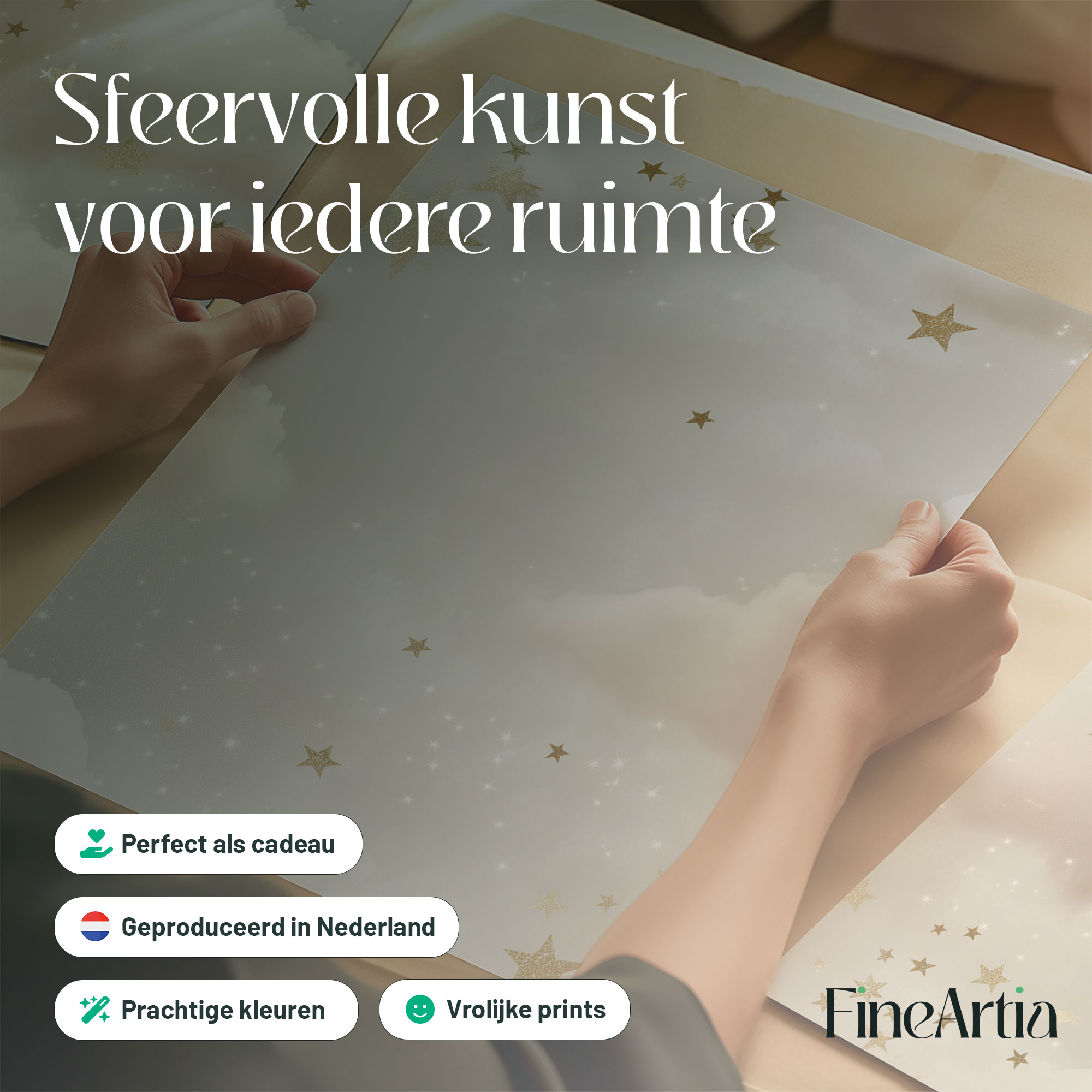 Magische Sterrenhemel: Dromerige Gouden Sterren en Wolken